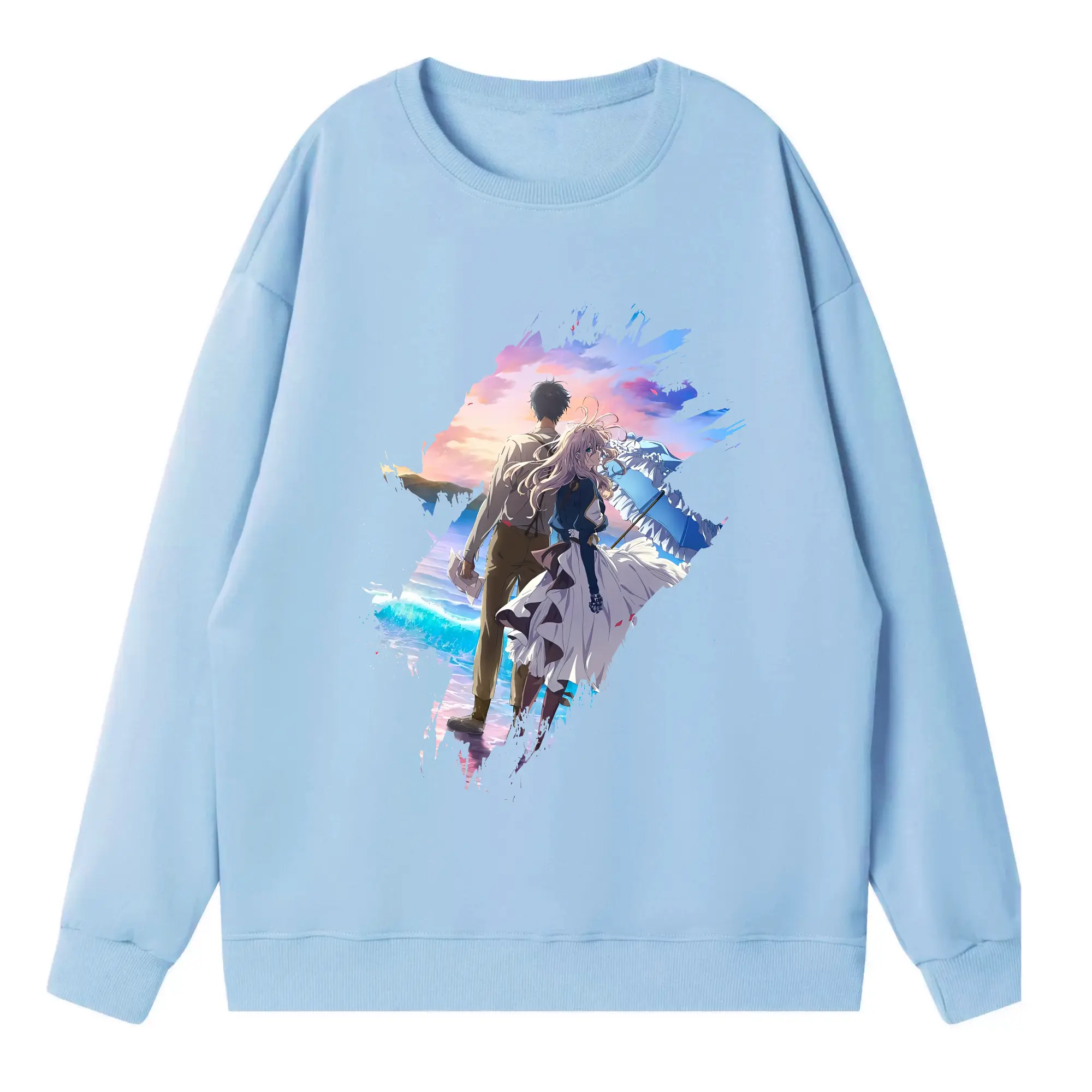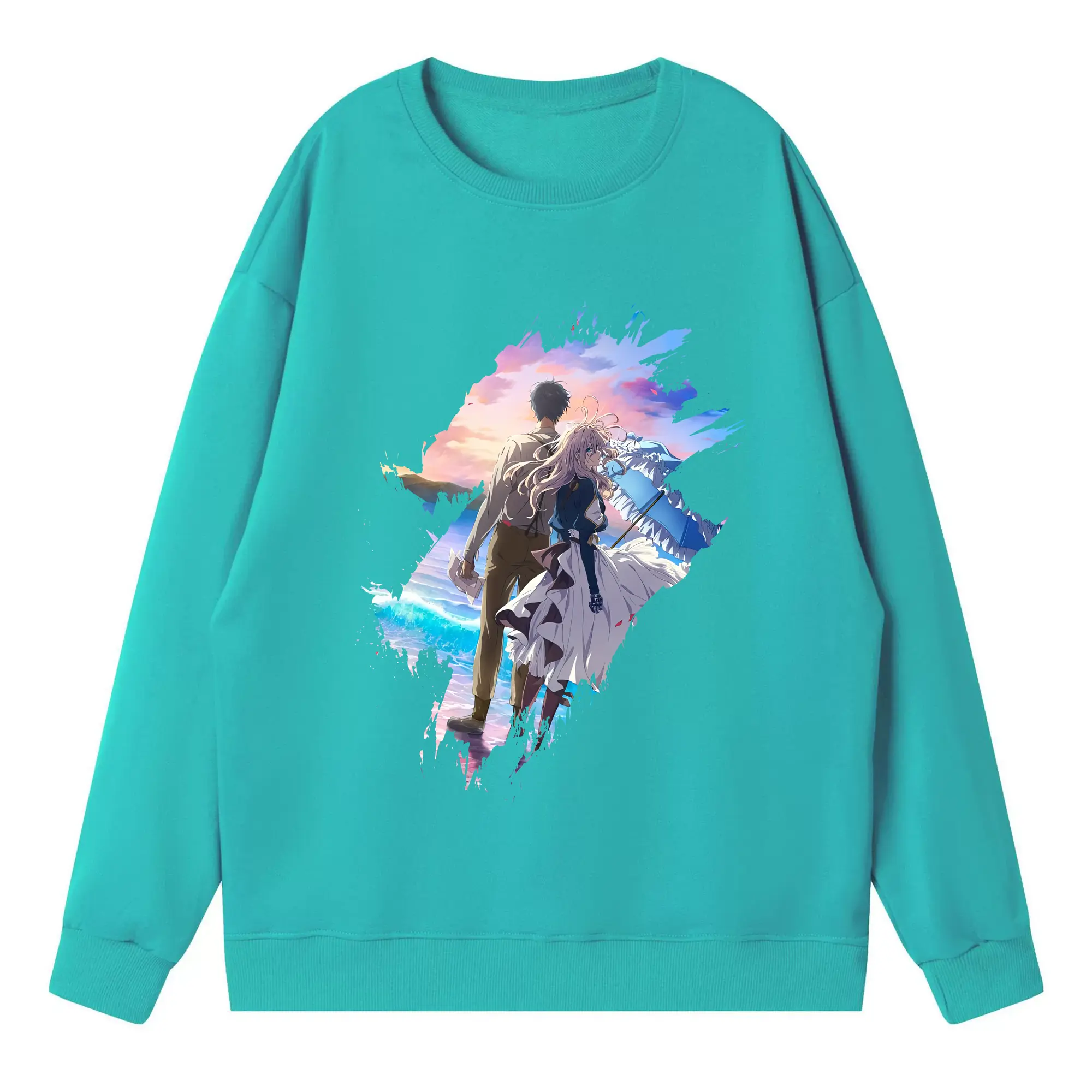 ヴァイオレット・エヴァーガーデン グッズ,ヴァイオレット・エヴァーガーデン - 綿100% 半袖Tシャツ ・ フロントプリント ・ 快適 通気性 ・ 日常使い 散歩 スポーツ用