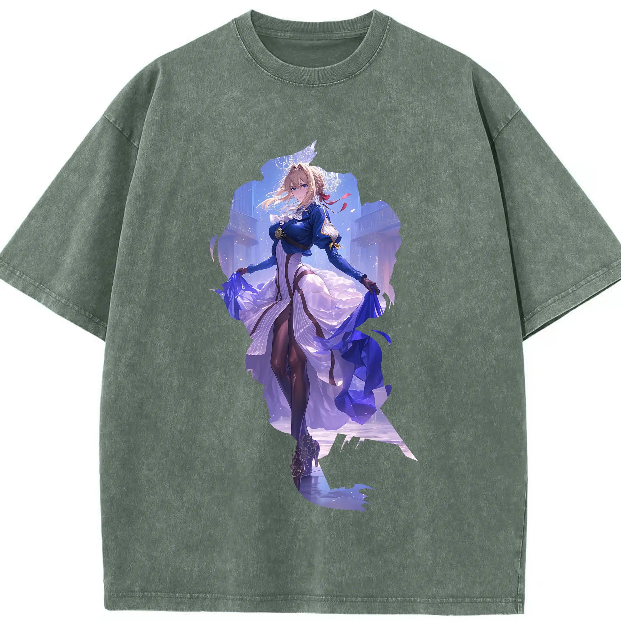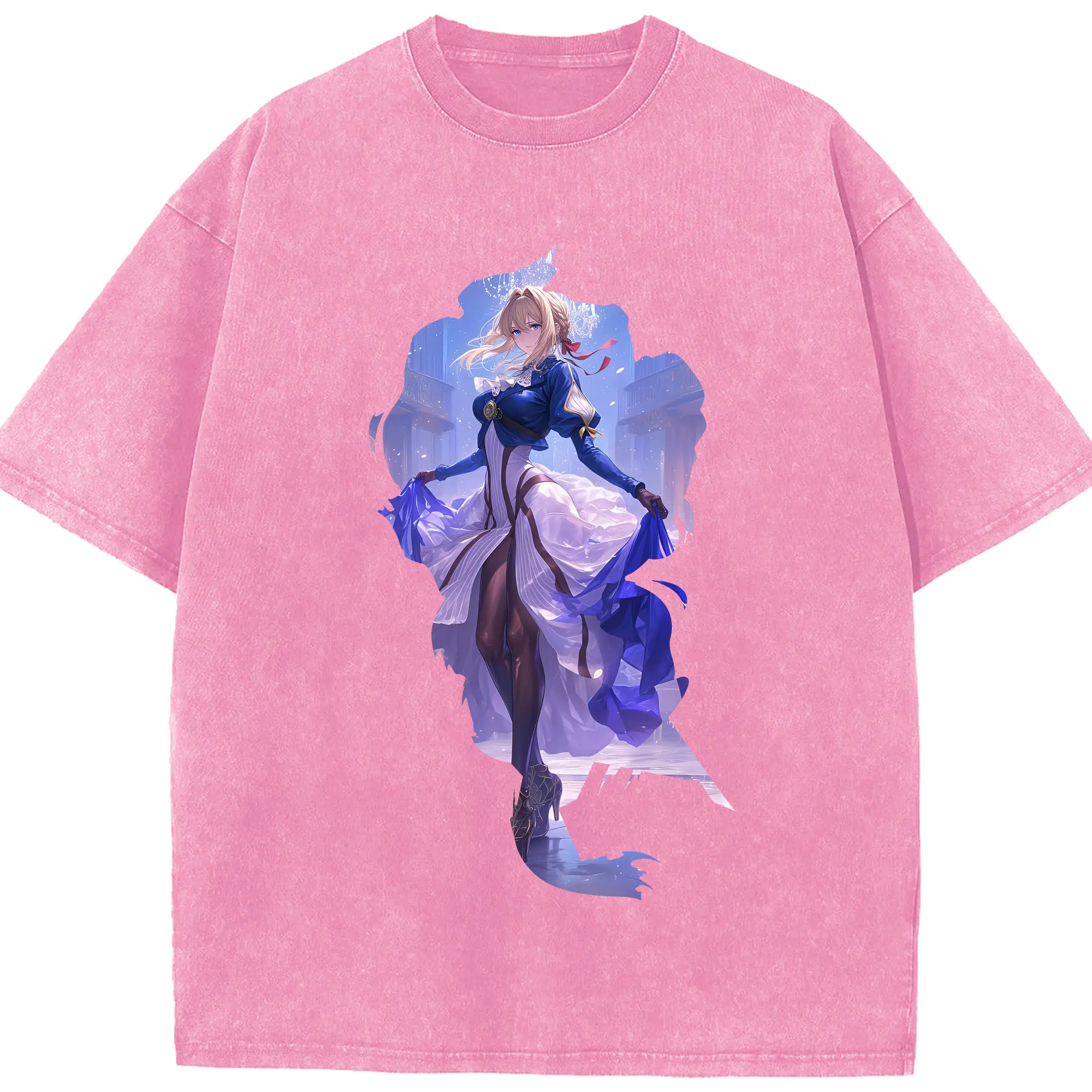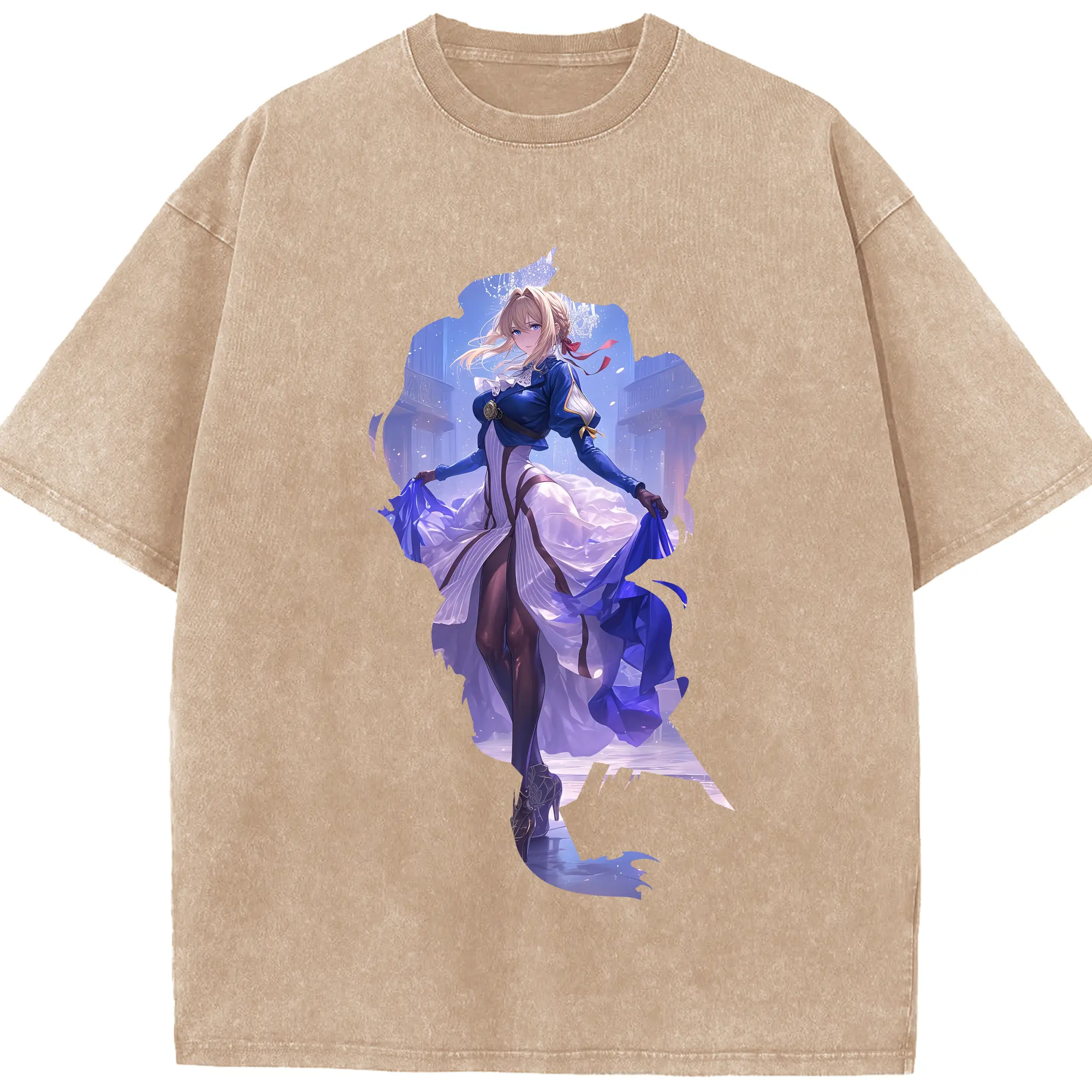 ヴァイオレット・エヴァーガーデン グッズ,ヴァイオレット・エヴァーガーデン - 綿100% ヴィンテージ風 半袖Tシャツ ・ 背面プリント ・ 柔らか肌触り ・ 通気性 快適 ・ スポーツ カジュアル 外出用