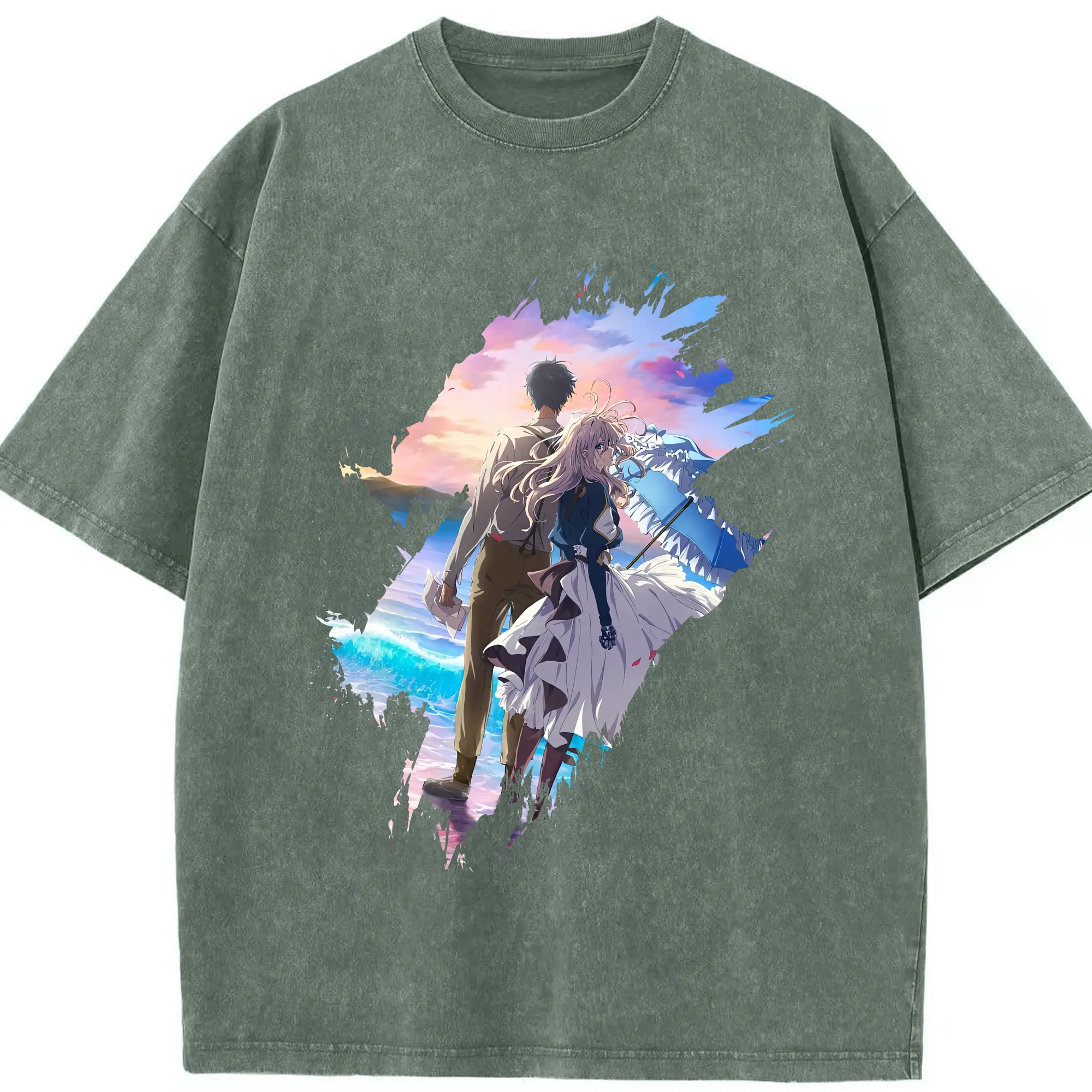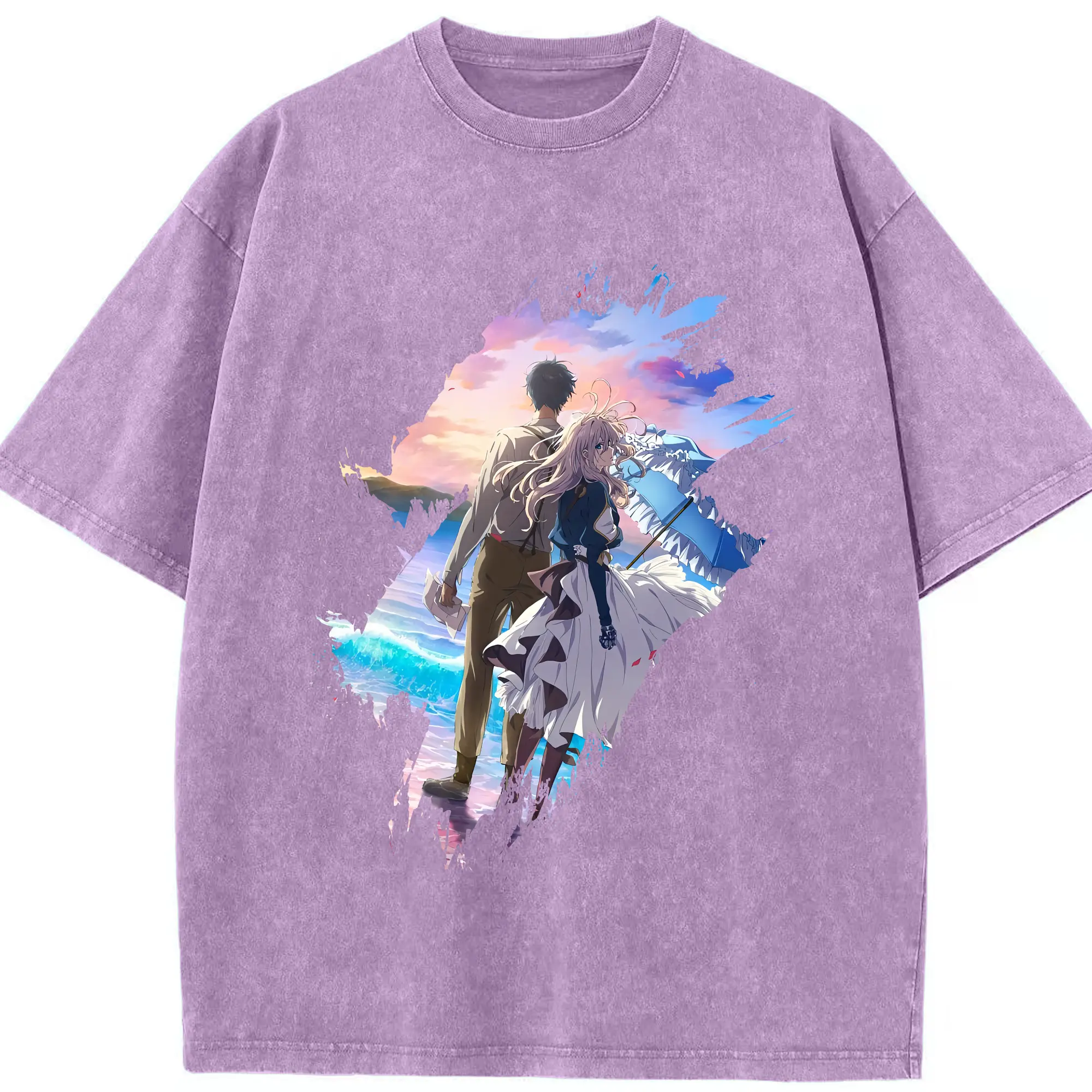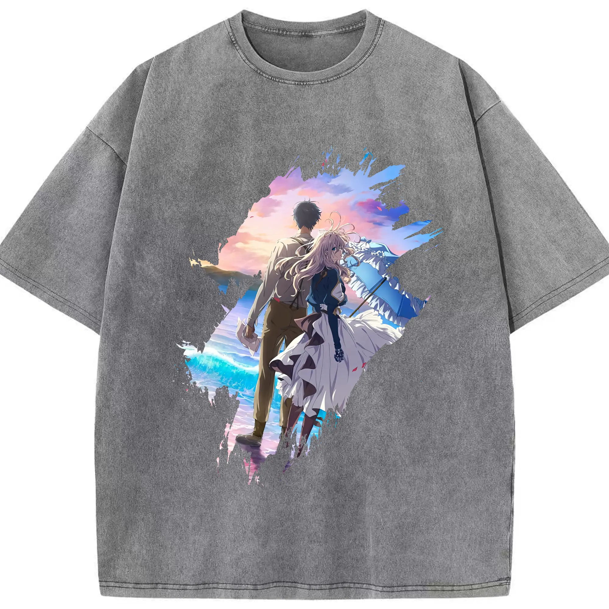 ヴァイオレット・エヴァーガーデン グッズ,ヴァイオレット・エヴァーガーデン - 綿100% ヴィンテージ風 半袖Tシャツ ・ 背面プリント ・ 柔らか肌触り ・ 通気性 快適 ・ スポーツ カジュアル 外出用