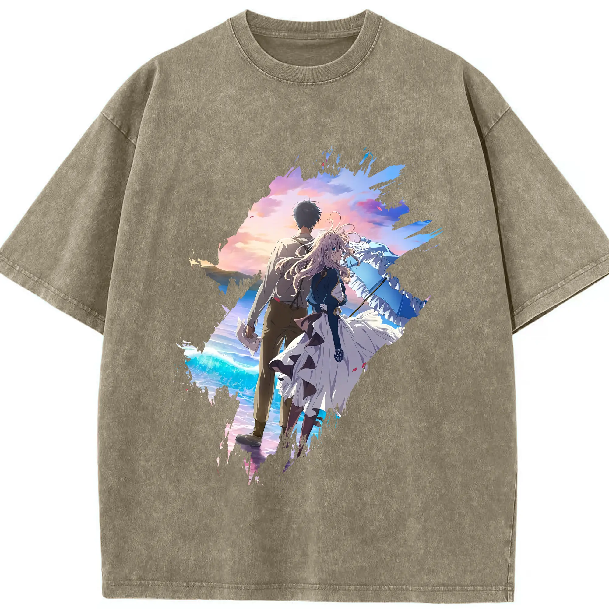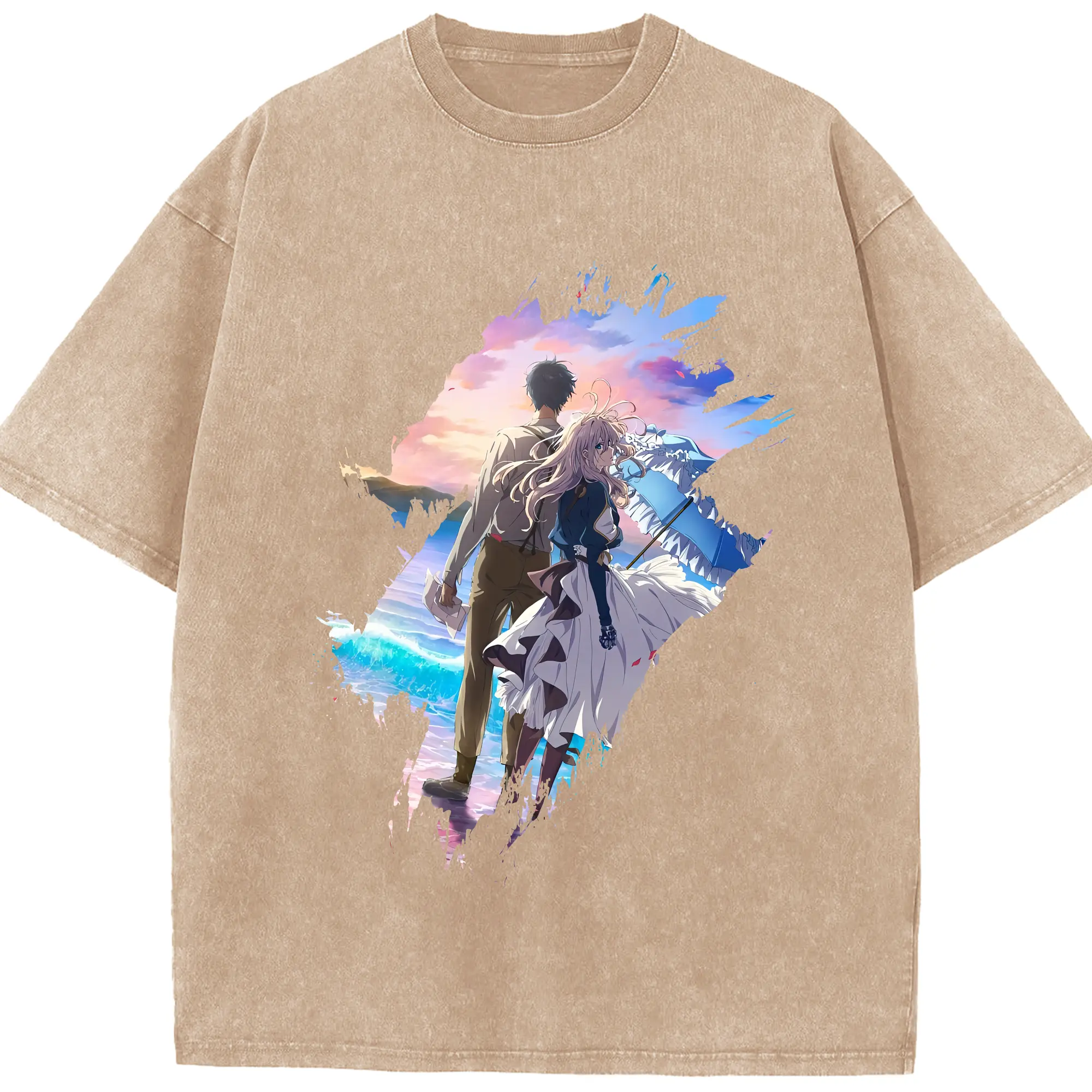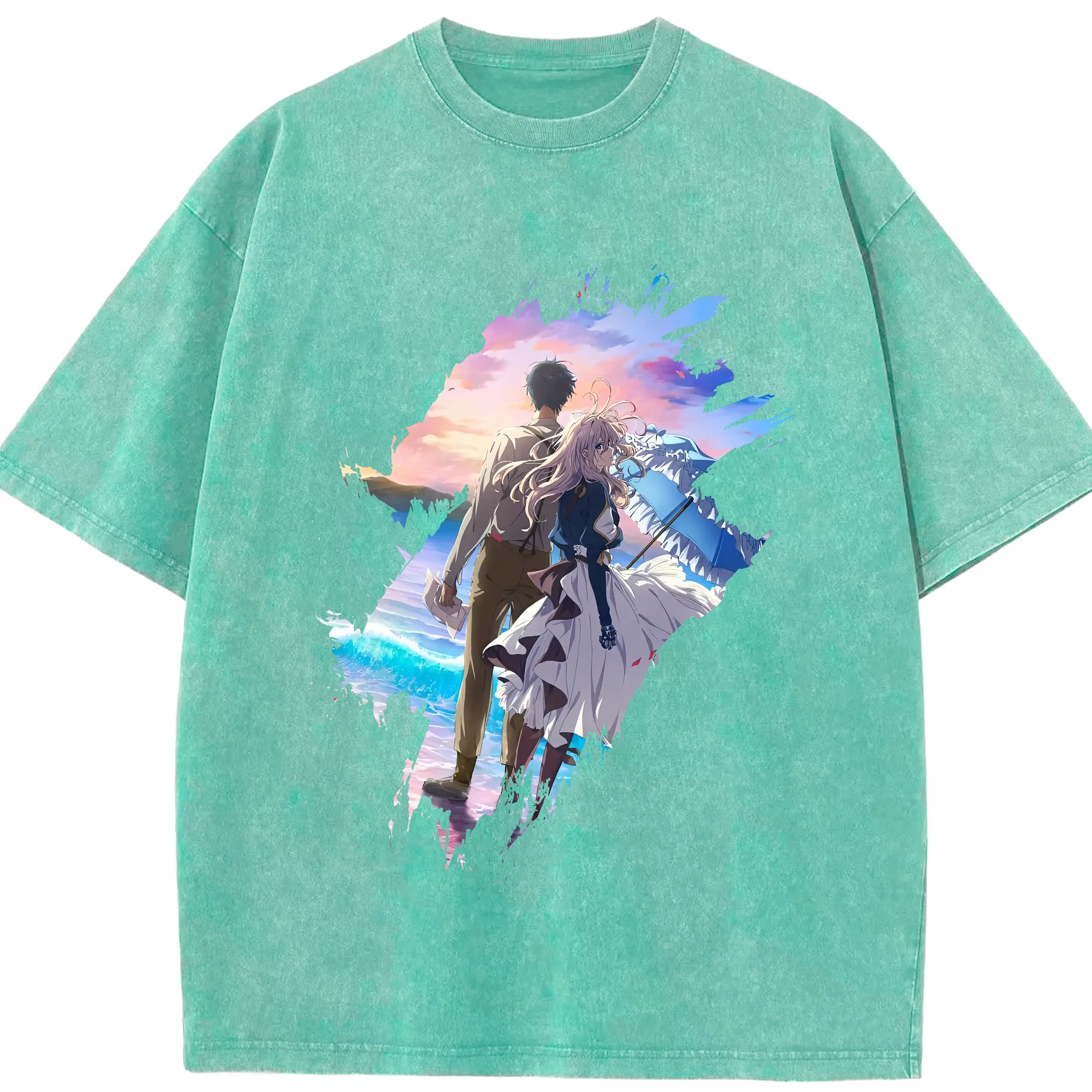 ヴァイオレット・エヴァーガーデン グッズ,ヴァイオレット・エヴァーガーデン - 綿100% ヴィンテージ風 半袖Tシャツ ・ 背面プリント ・ 柔らか肌触り ・ 通気性 快適 ・ スポーツ カジュアル 外出用