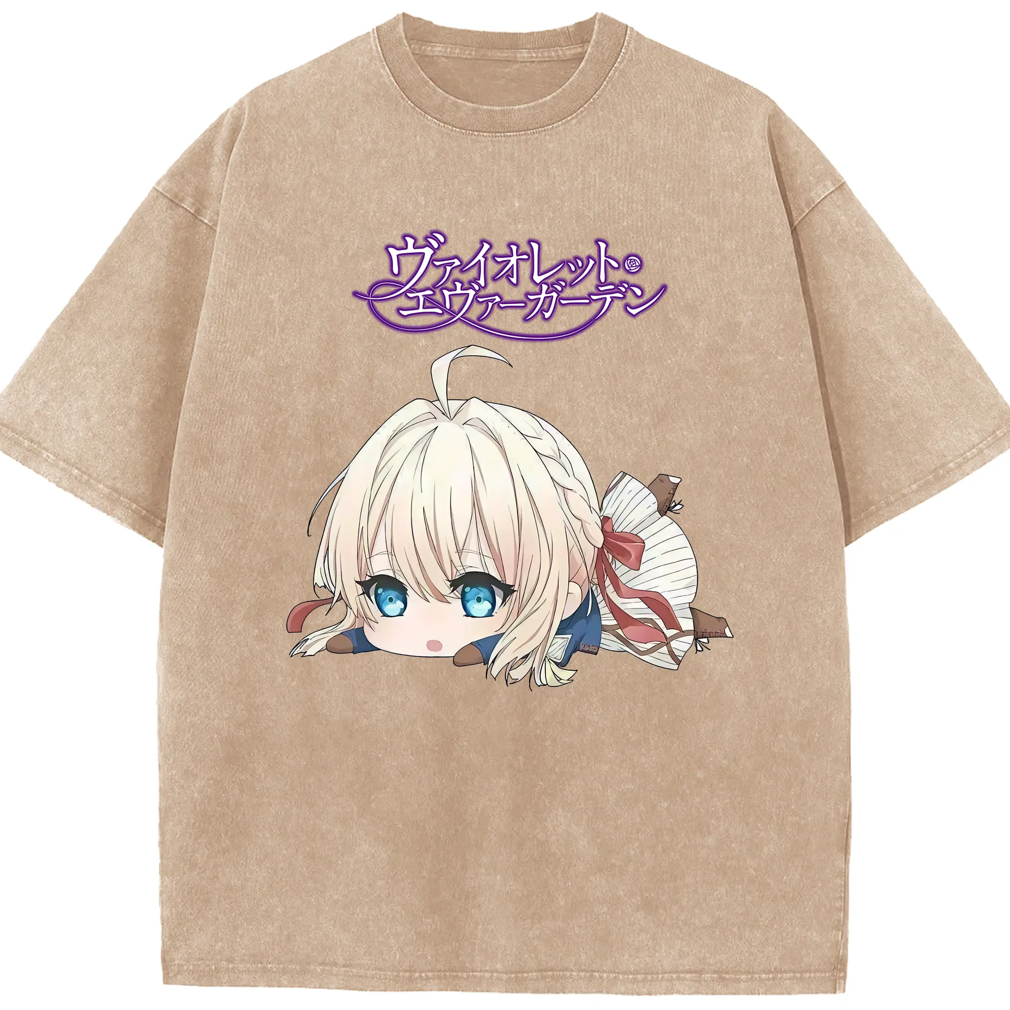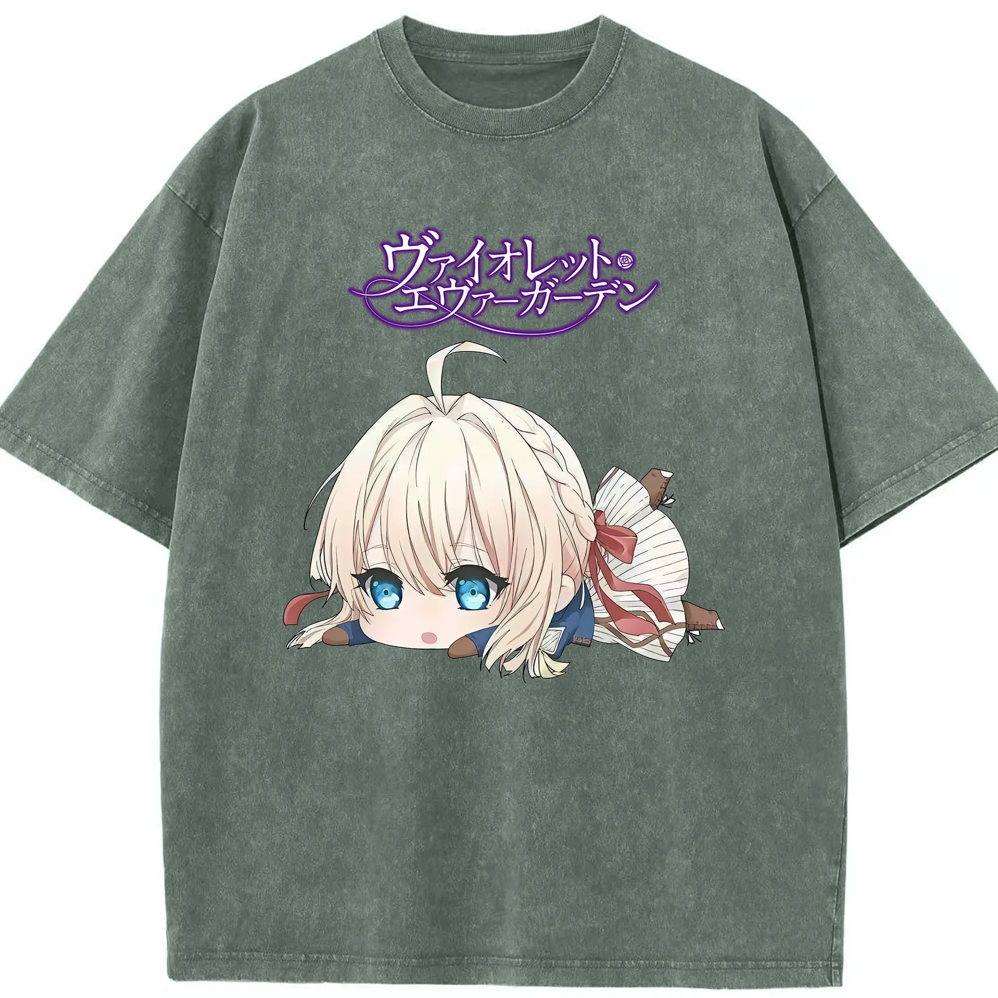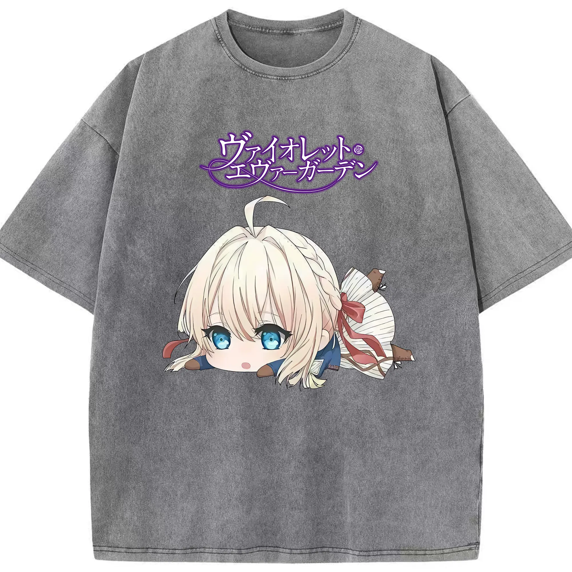 ヴァイオレット・エヴァーガーデン グッズ,ヴァイオレット・エヴァーガーデン - 綿100% ヴィンテージ風 半袖Tシャツ ・ 背面プリント ・ 柔らか肌触り ・ 通気性 快適 ・ スポーツ カジュアル 外出用