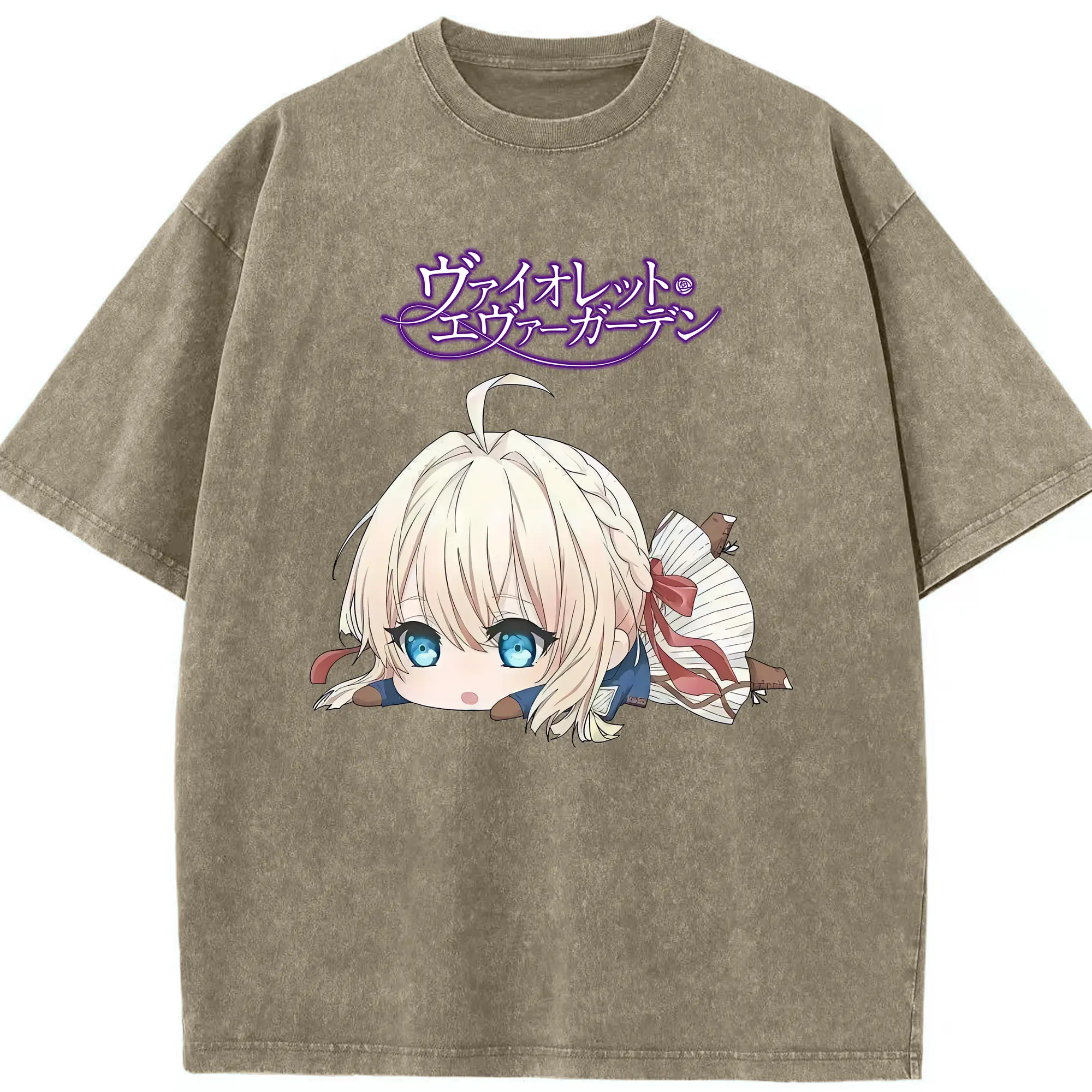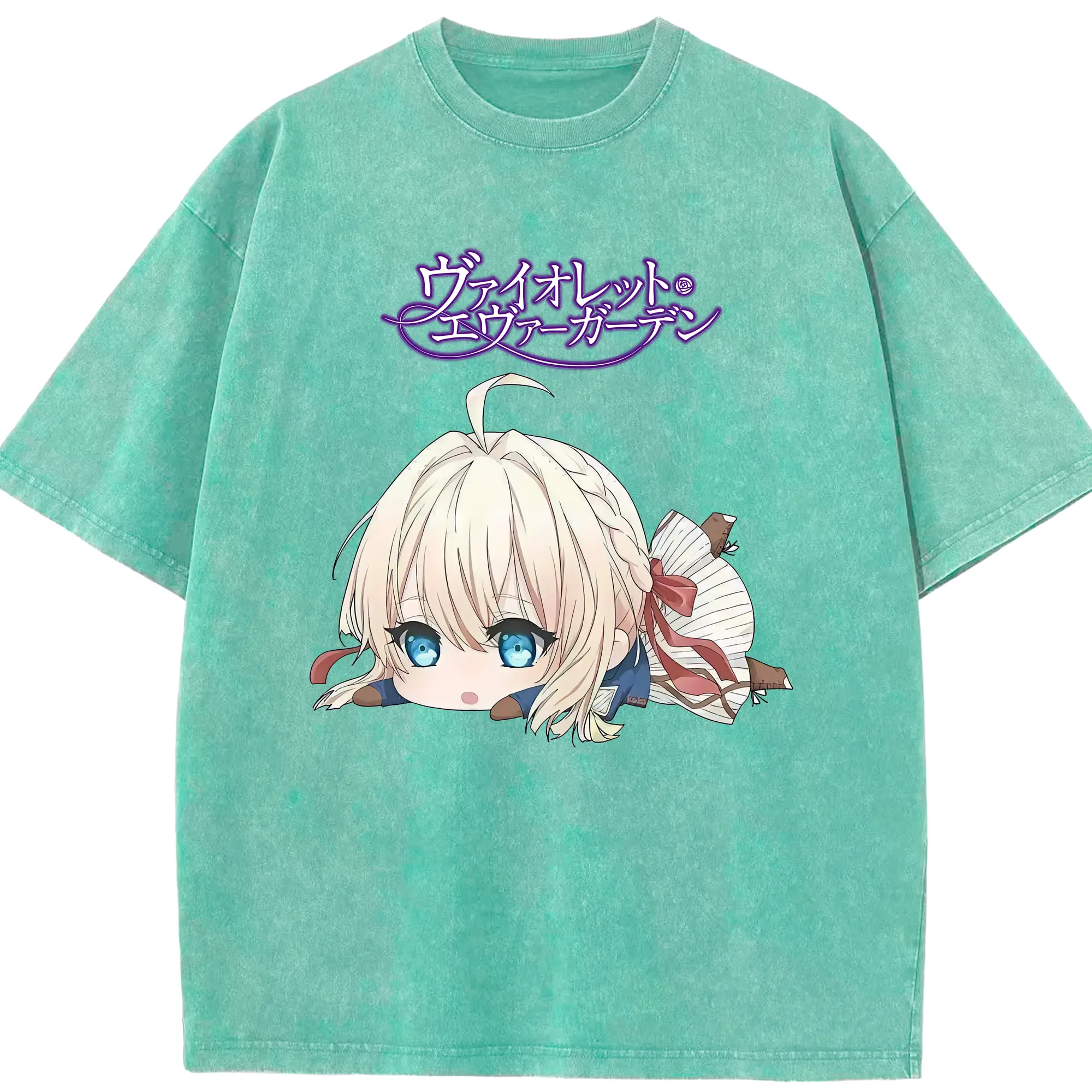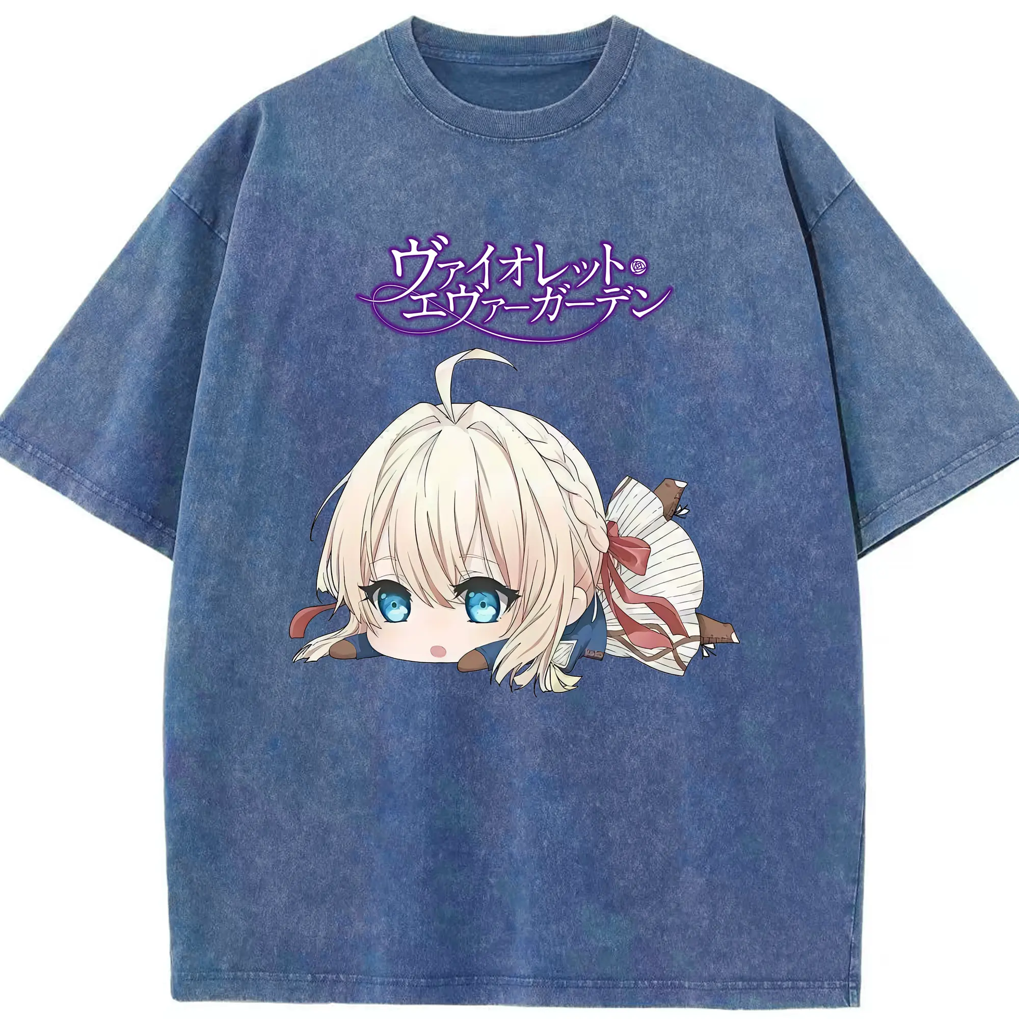 ヴァイオレット・エヴァーガーデン グッズ,ヴァイオレット・エヴァーガーデン - 綿100% ヴィンテージ風 半袖Tシャツ ・ 背面プリント ・ 柔らか肌触り ・ 通気性 快適 ・ スポーツ カジュアル 外出用
