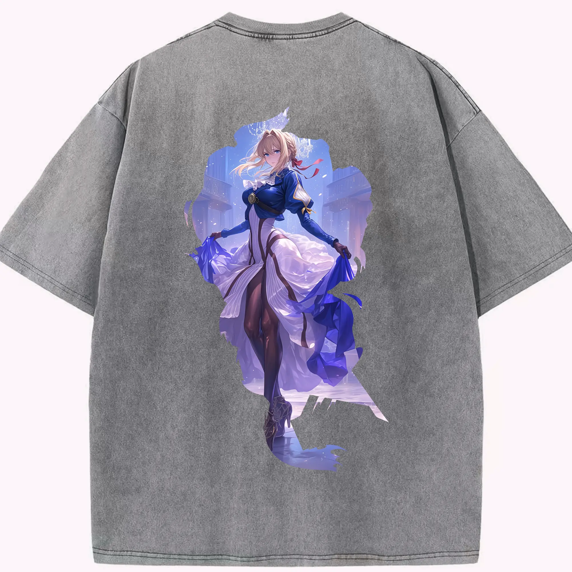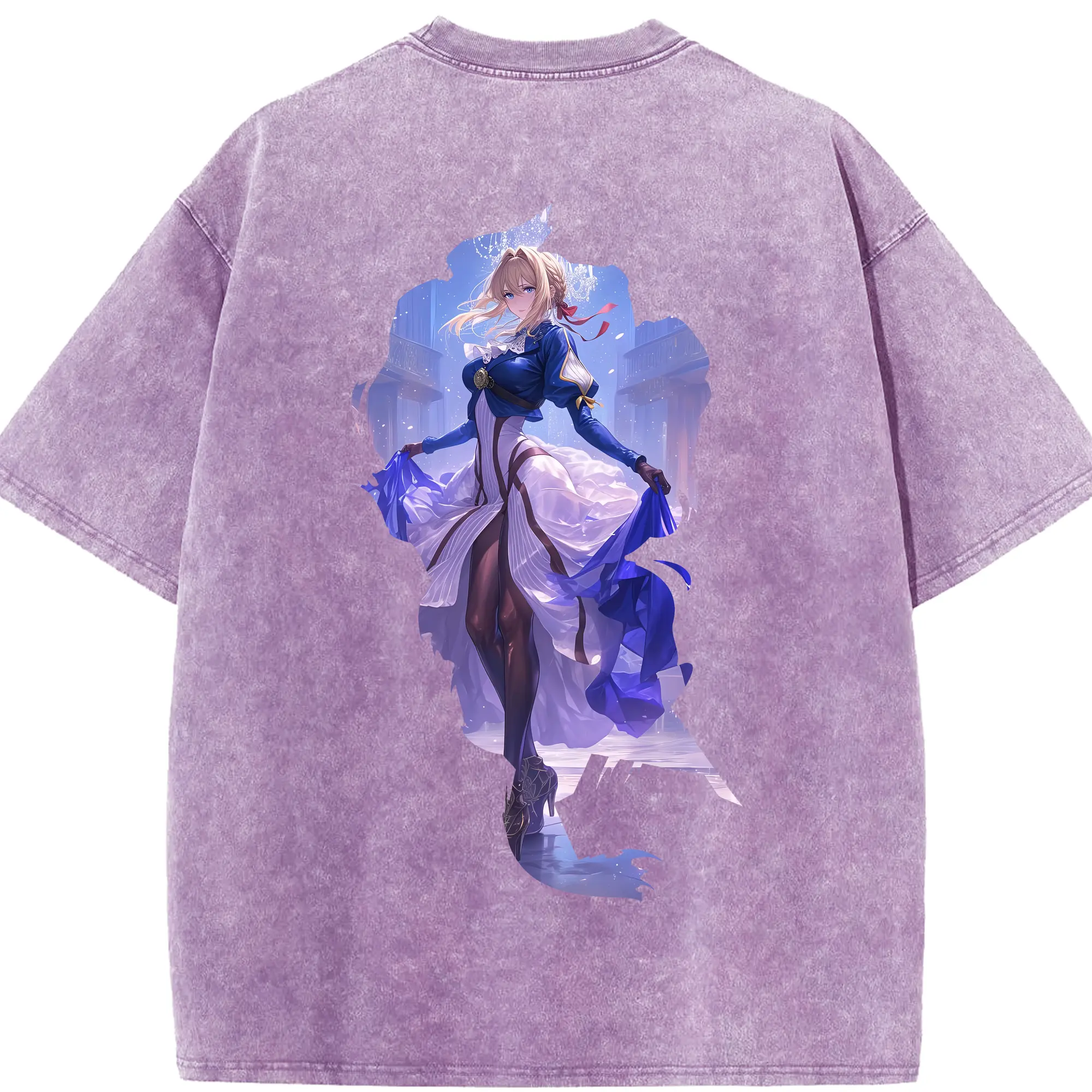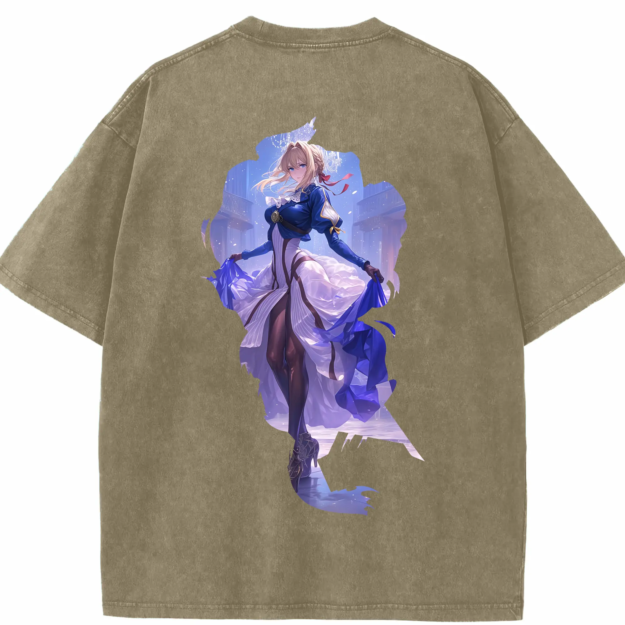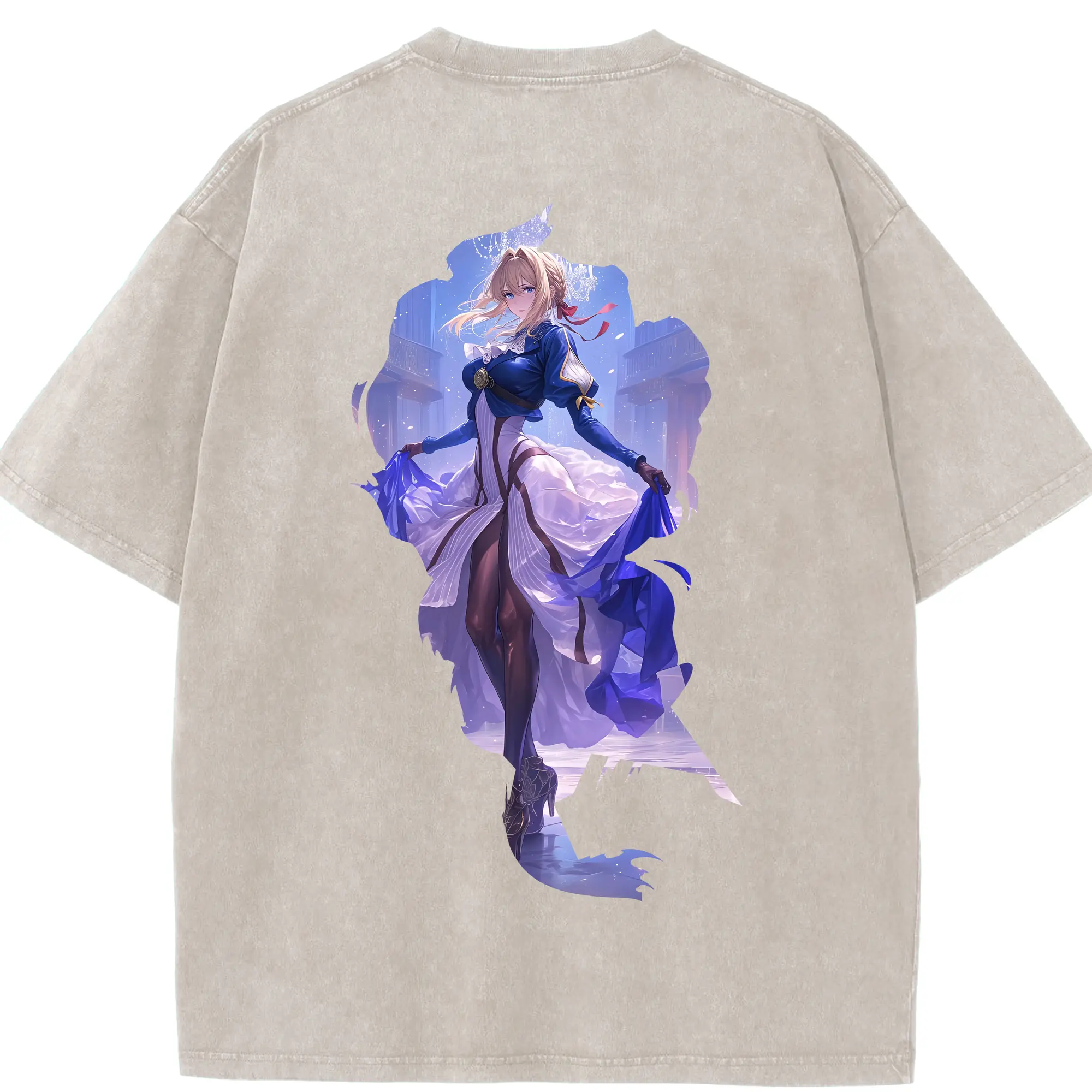 ヴァイオレット・エヴァーガーデン グッズ,ヴァイオレット・エヴァーガーデン - 綿100% ヴィンテージ風 半袖Tシャツ ・ フロントプリント ・ 柔らか肌触り ・ 通気性 快適 ・ スポーツ カジュアル 外出用