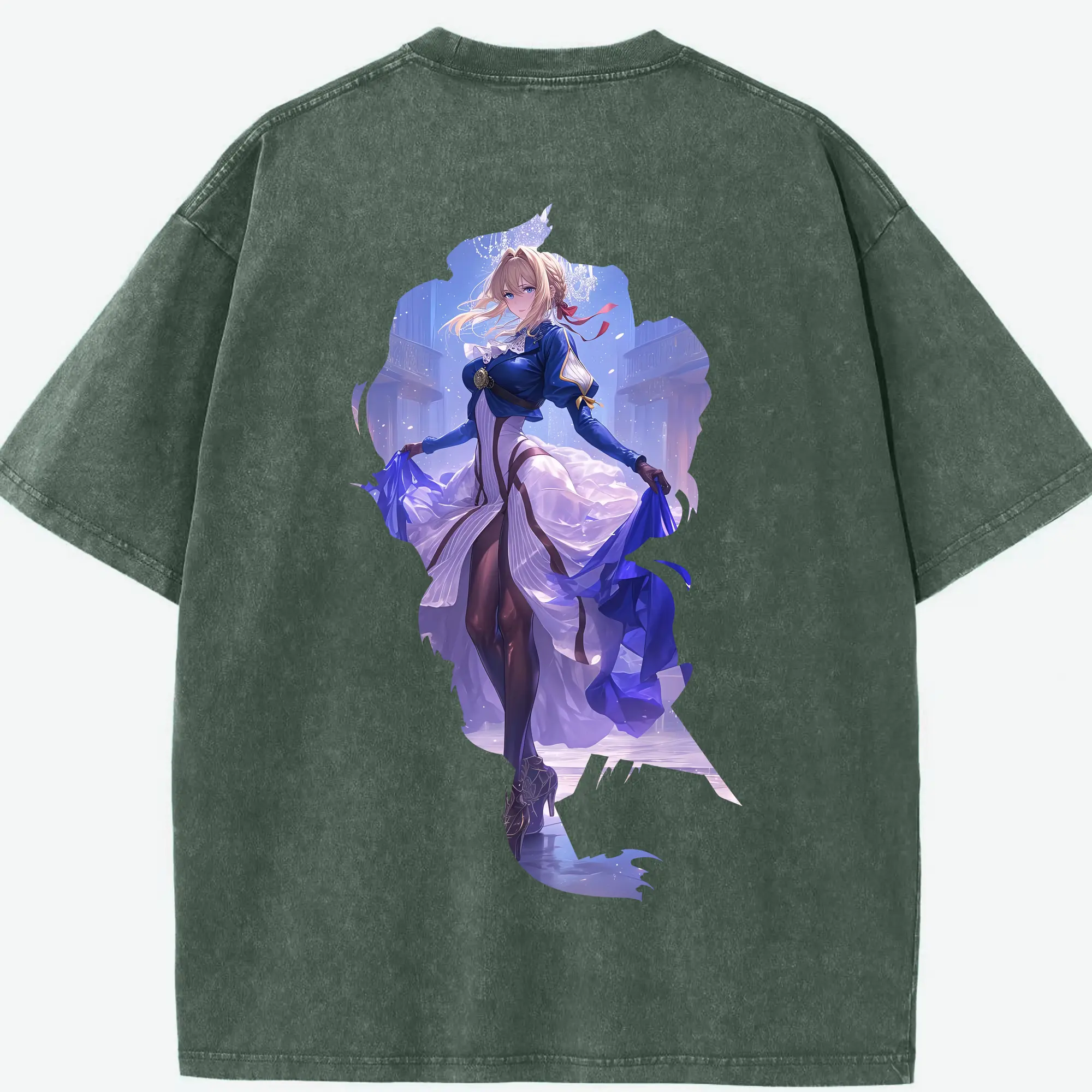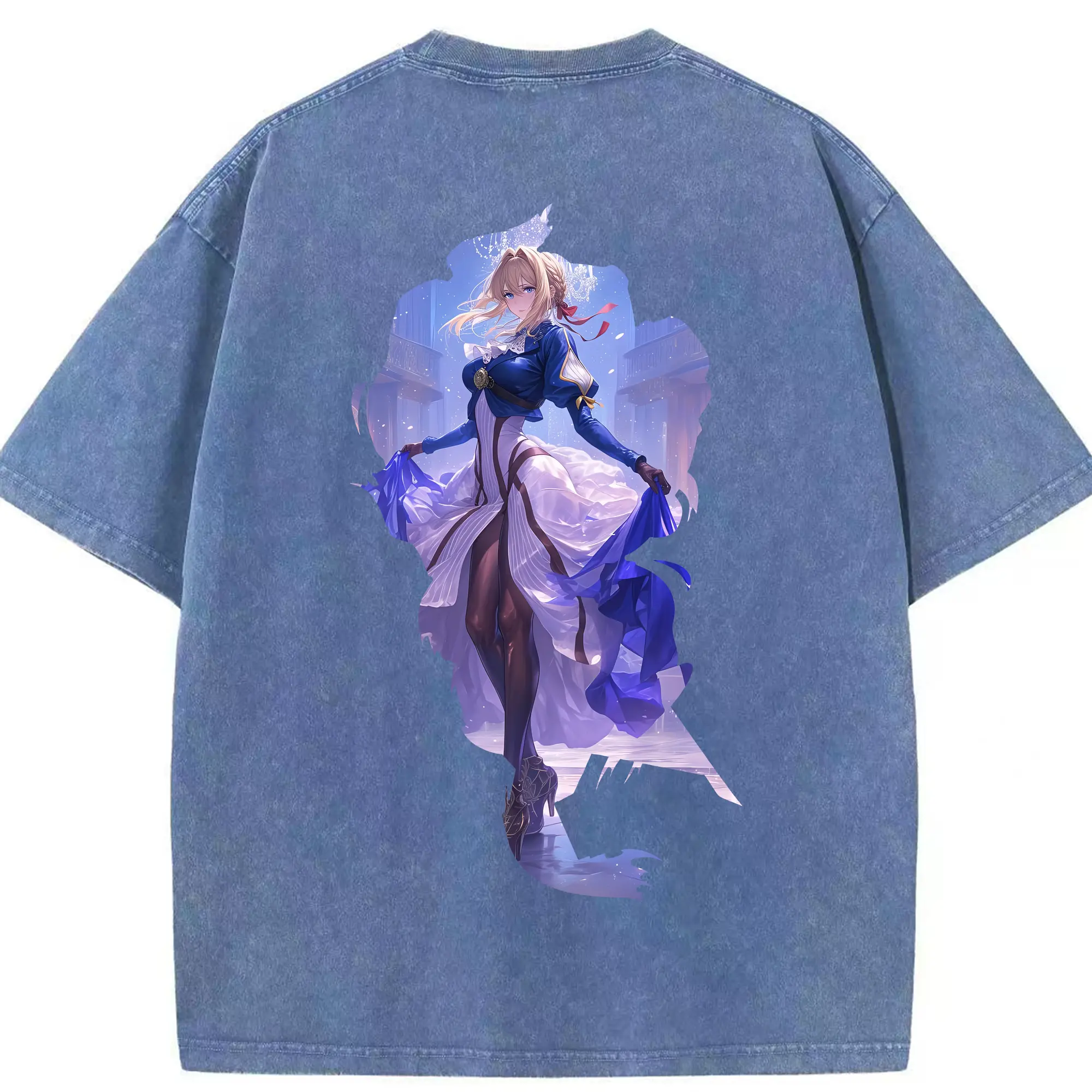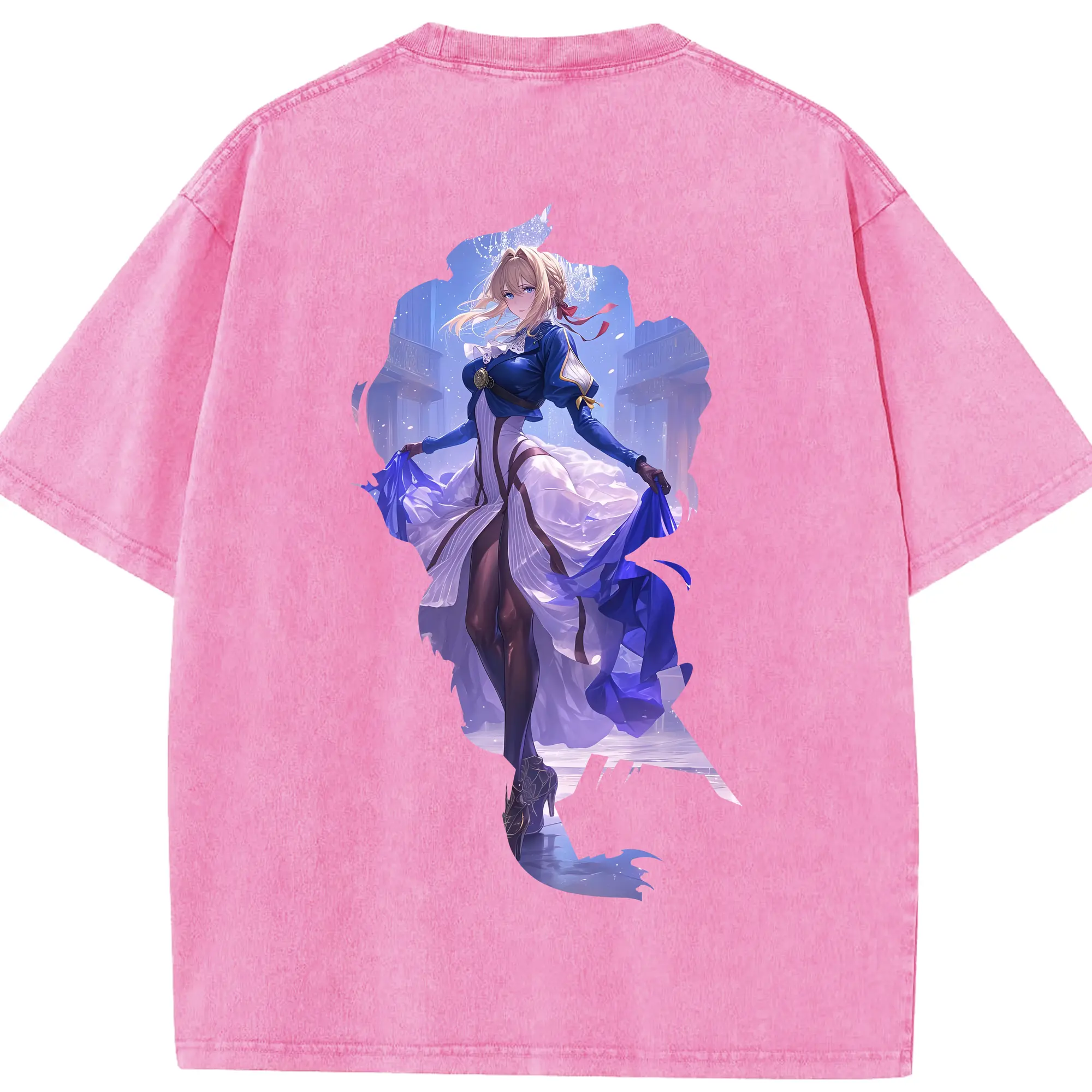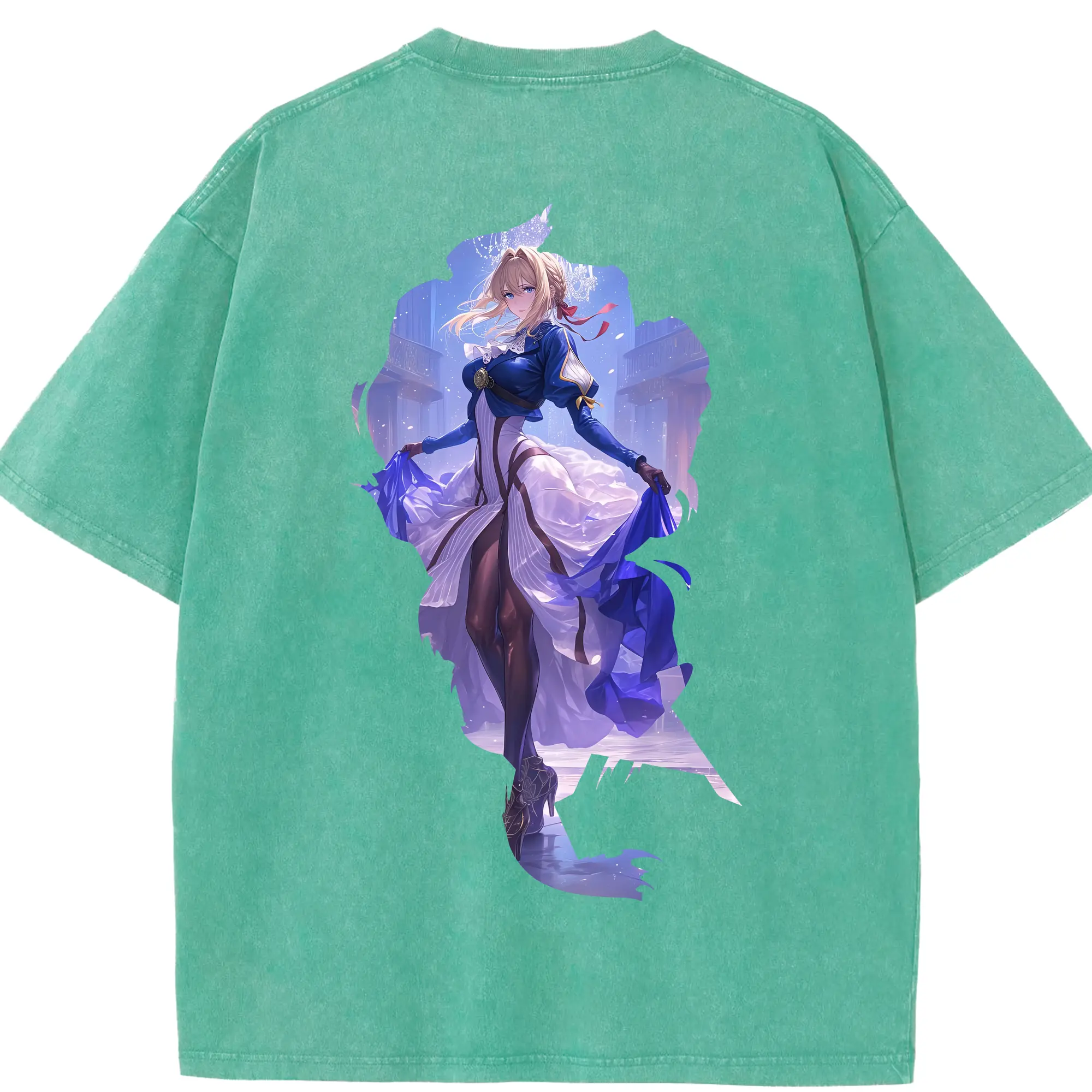 ヴァイオレット・エヴァーガーデン グッズ,ヴァイオレット・エヴァーガーデン - 綿100% ヴィンテージ風 半袖Tシャツ ・ フロントプリント ・ 柔らか肌触り ・ 通気性 快適 ・ スポーツ カジュアル 外出用