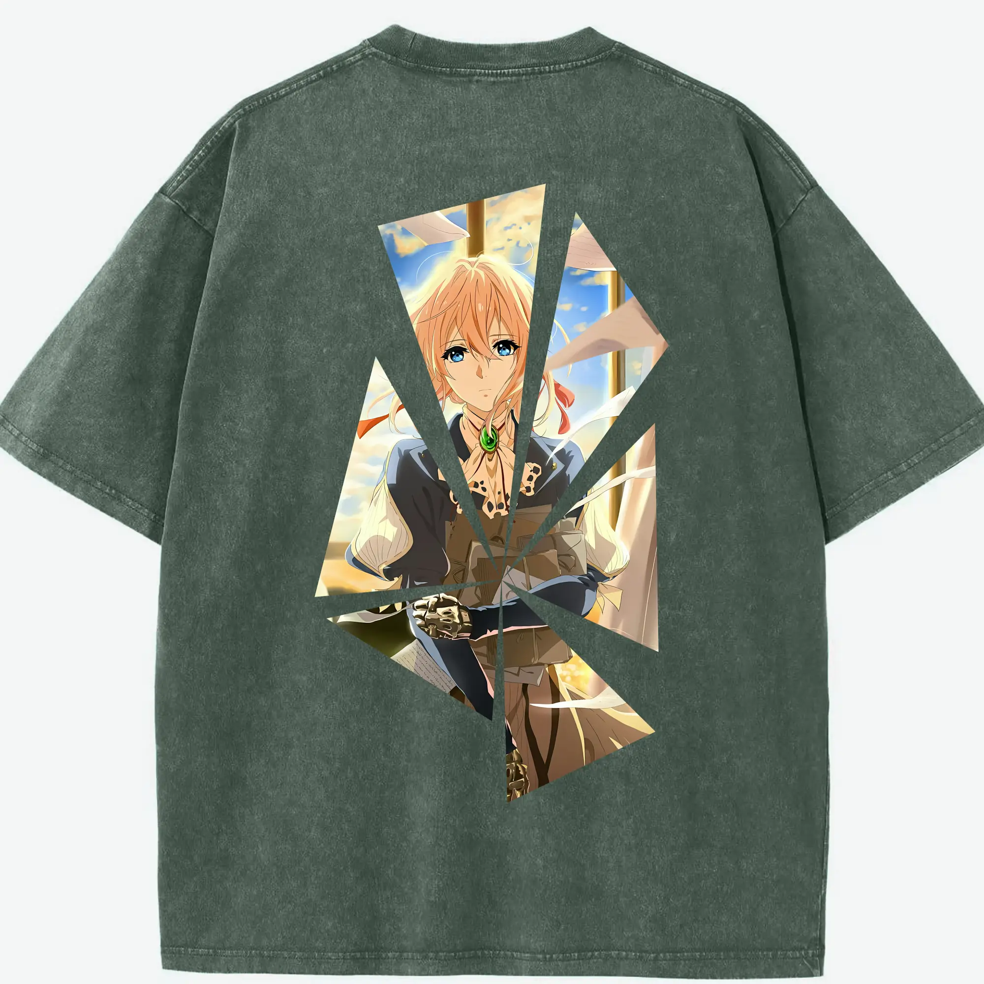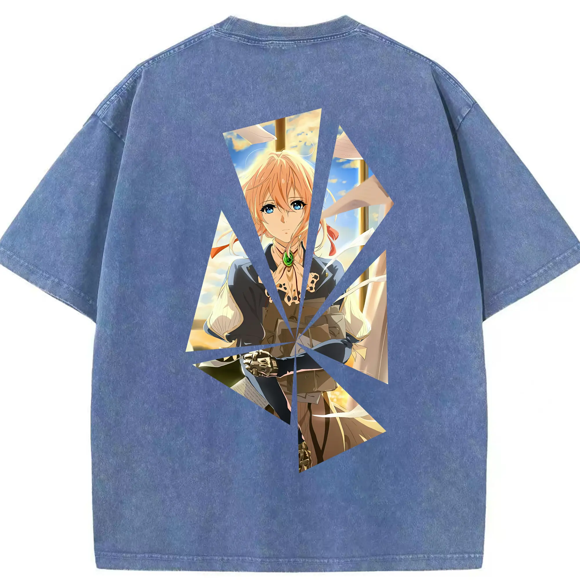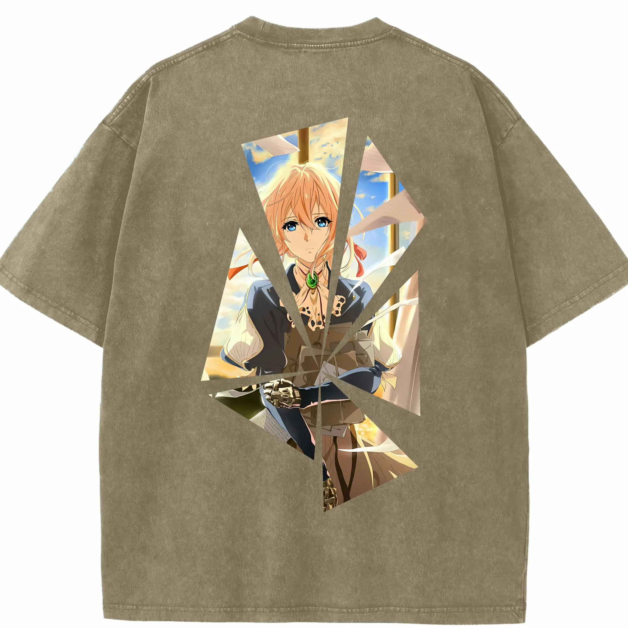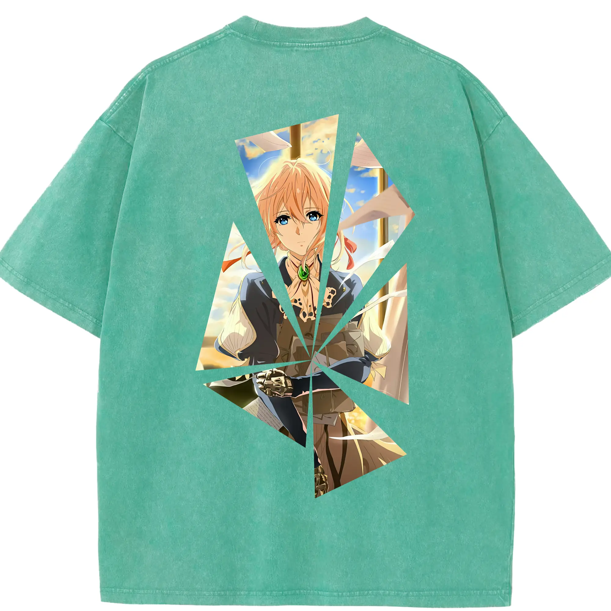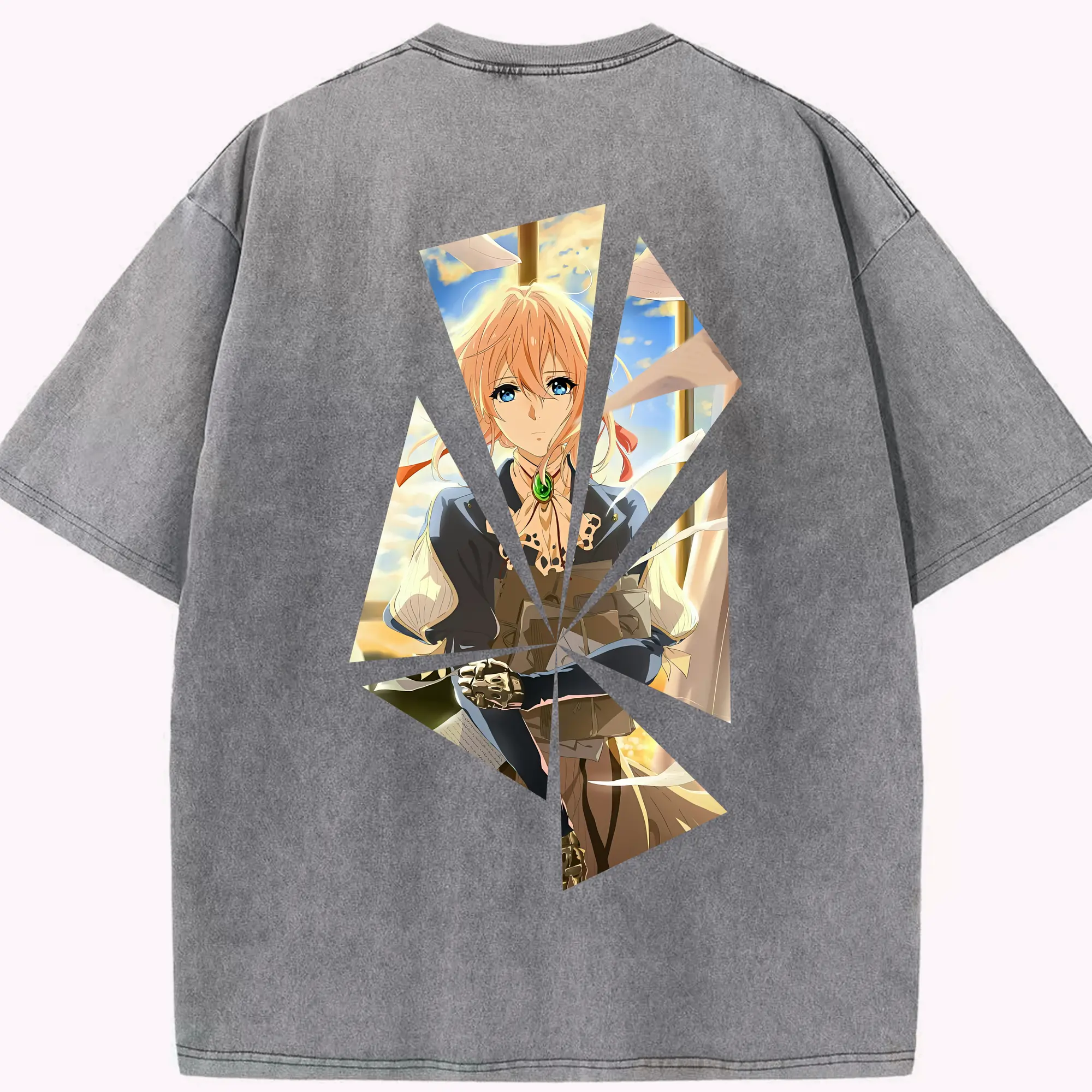 ヴァイオレット・エヴァーガーデン グッズ,ヴァイオレット・エヴァーガーデン - 綿100% ヴィンテージ風 半袖Tシャツ ・ フロントプリント ・ 柔らか肌触り ・ 通気性 快適 ・ スポーツ カジュアル 外出用