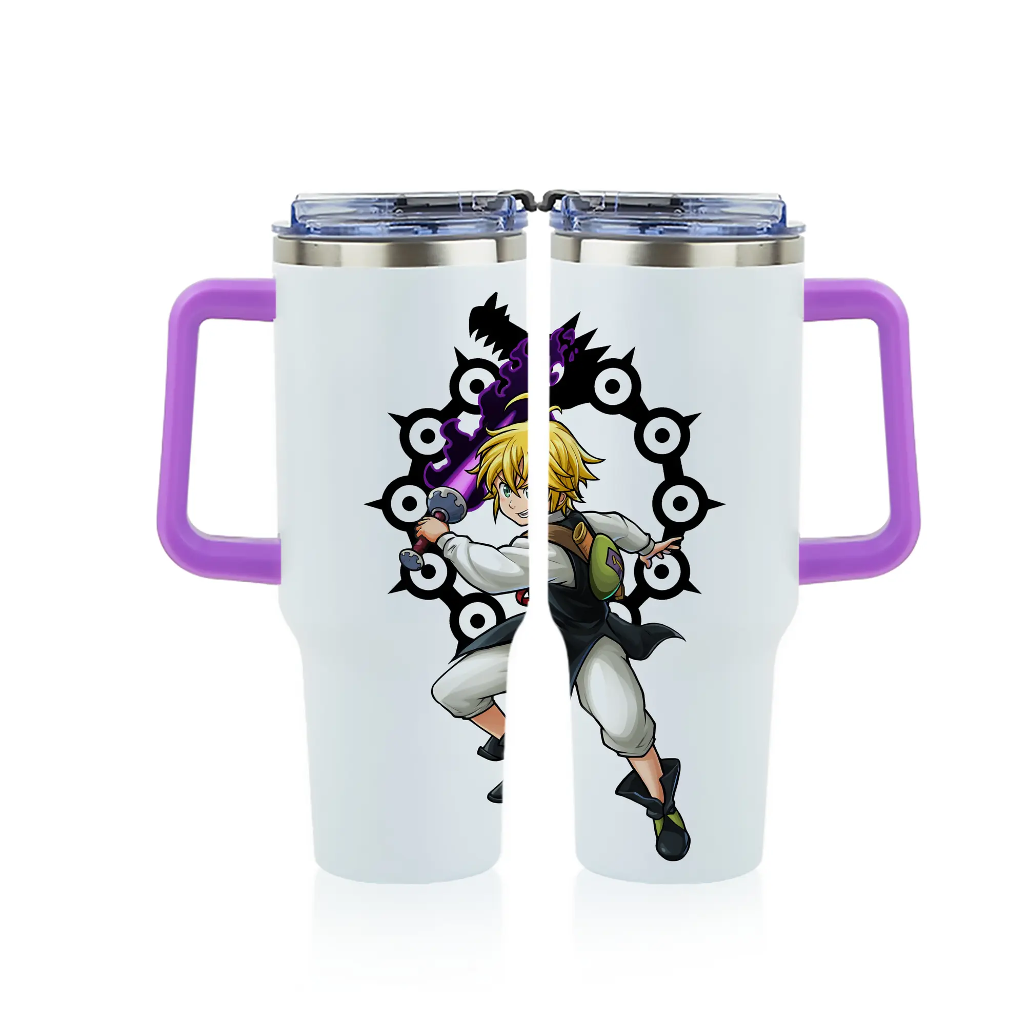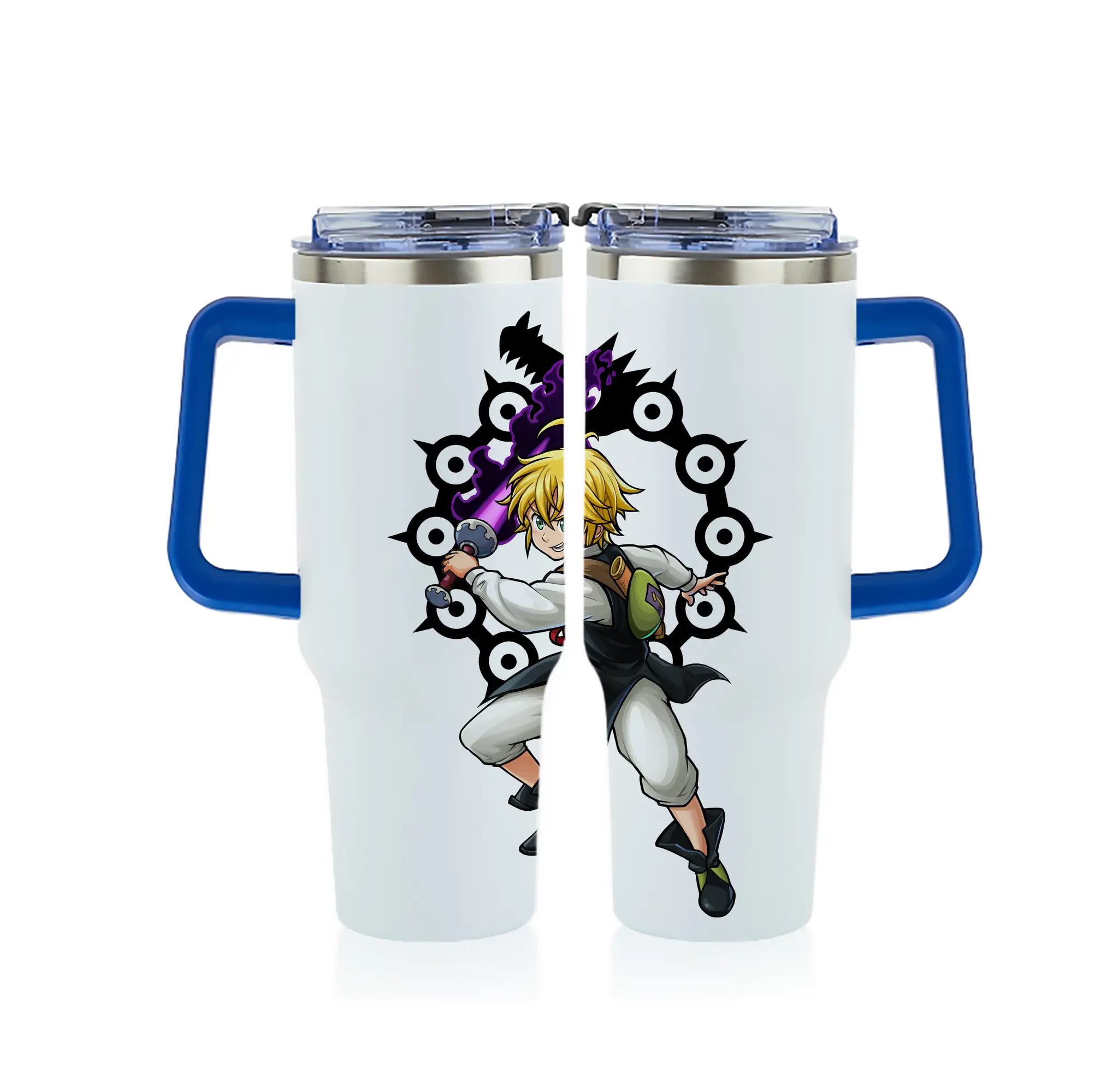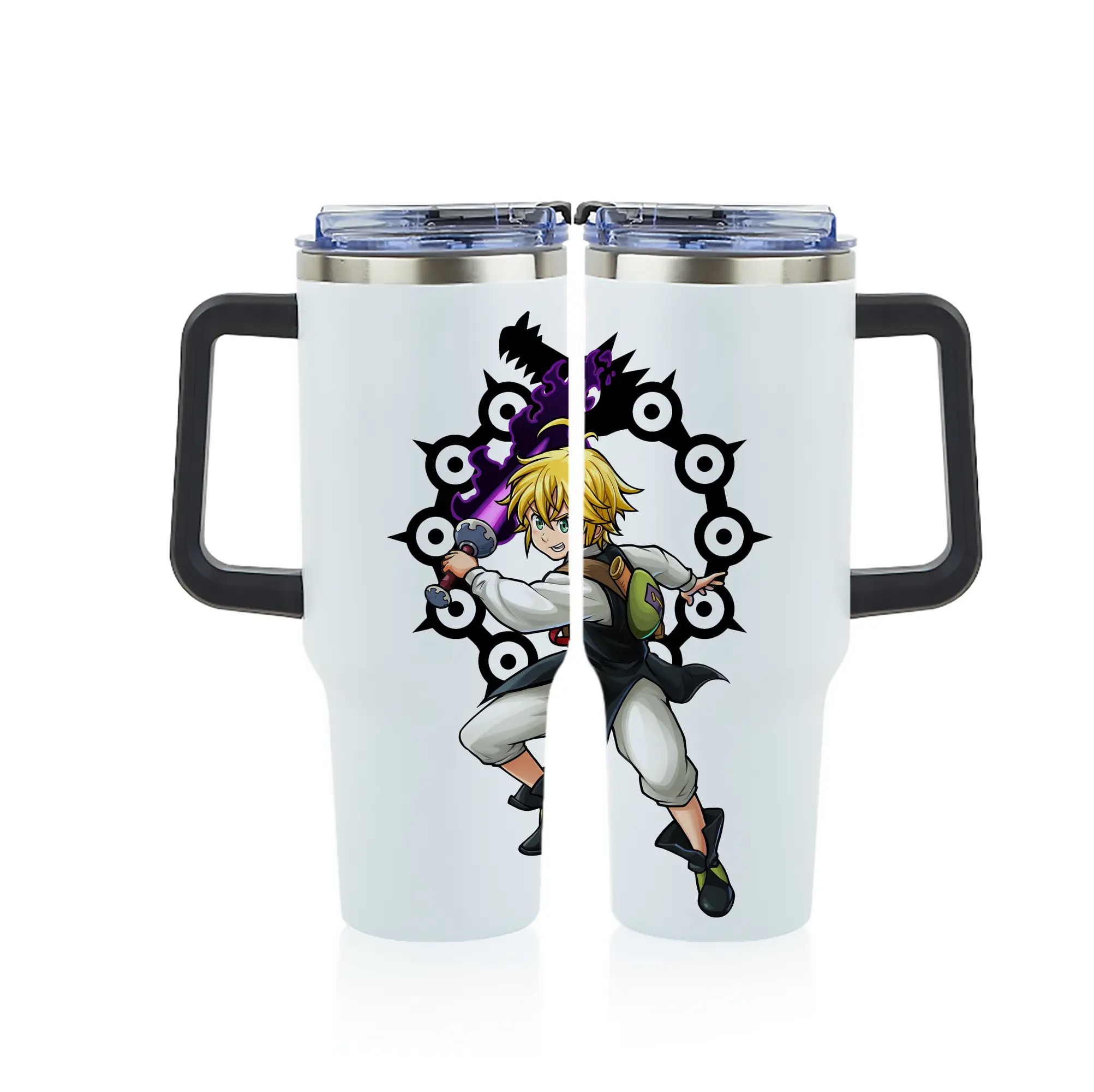 七つの大罪 グッズ メリオダス - 1200mL フルプリント車用タンブラー ・ 304ステンレス 内側 ・ 201ステンレス 外側 ・ 保温 保冷 ・ 通勤 ドライブ アウトドア用