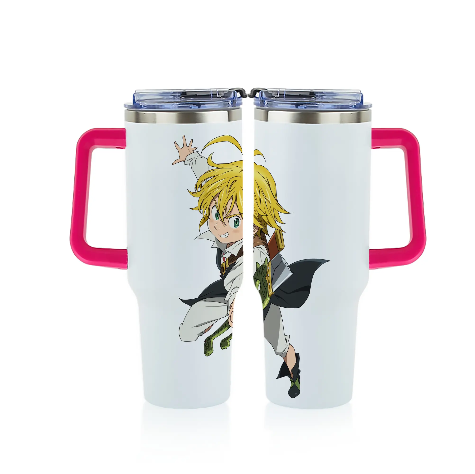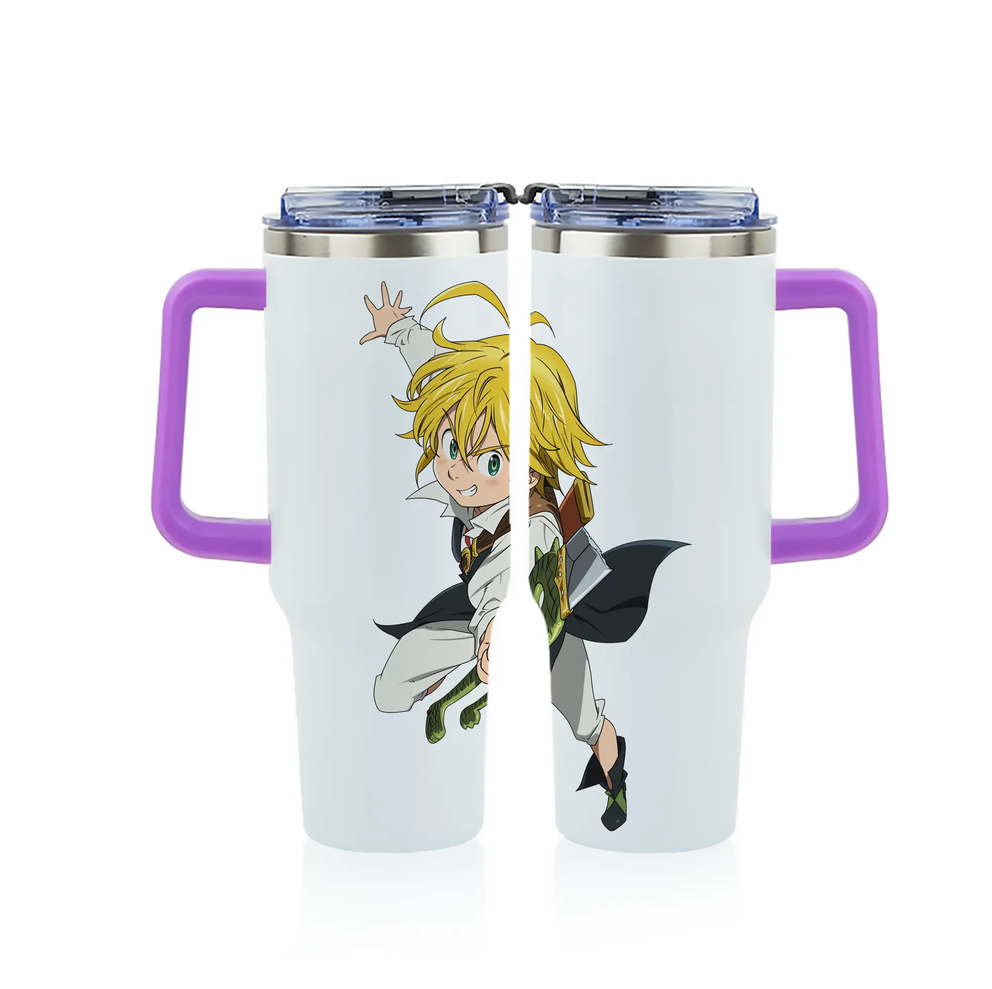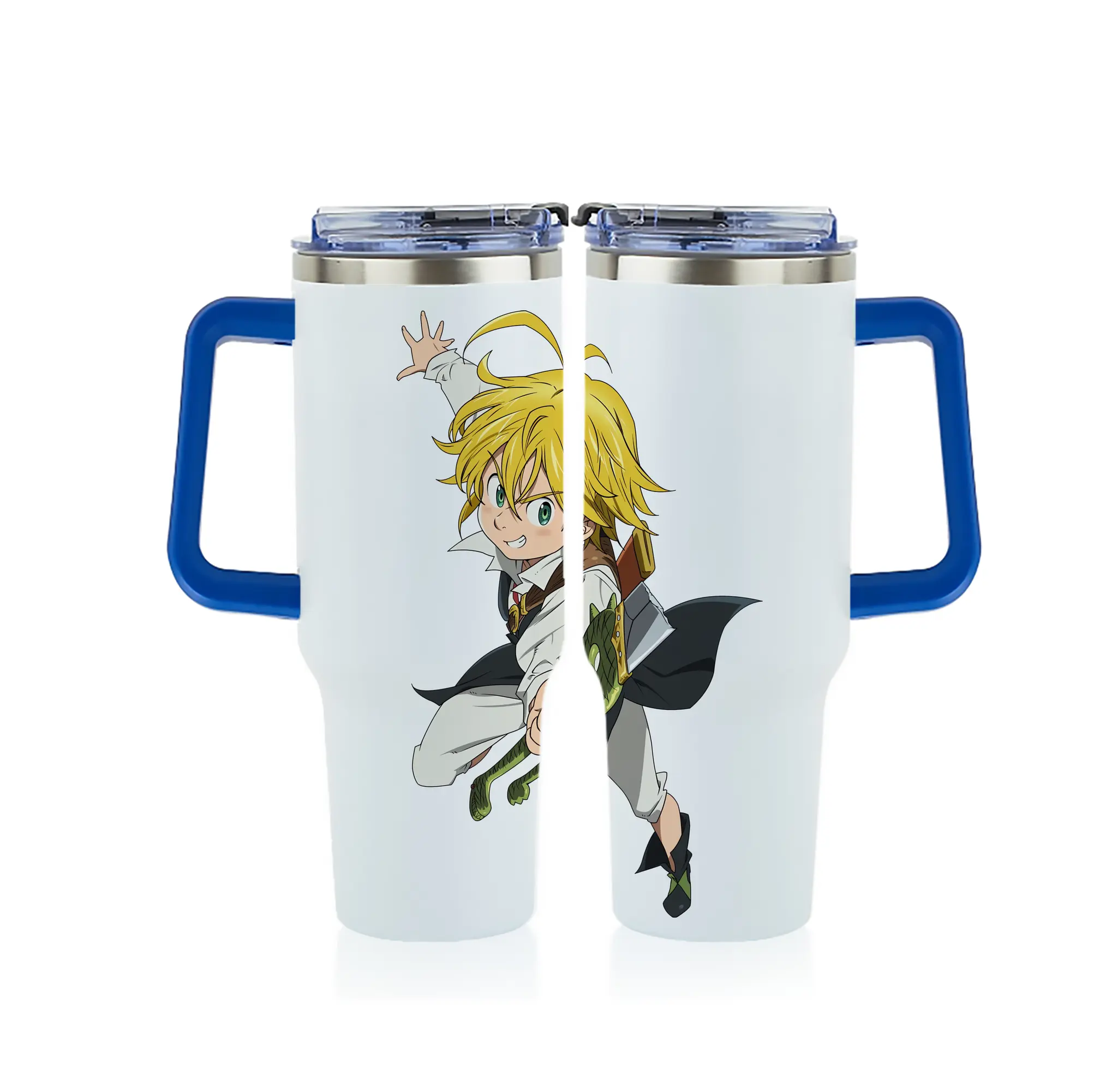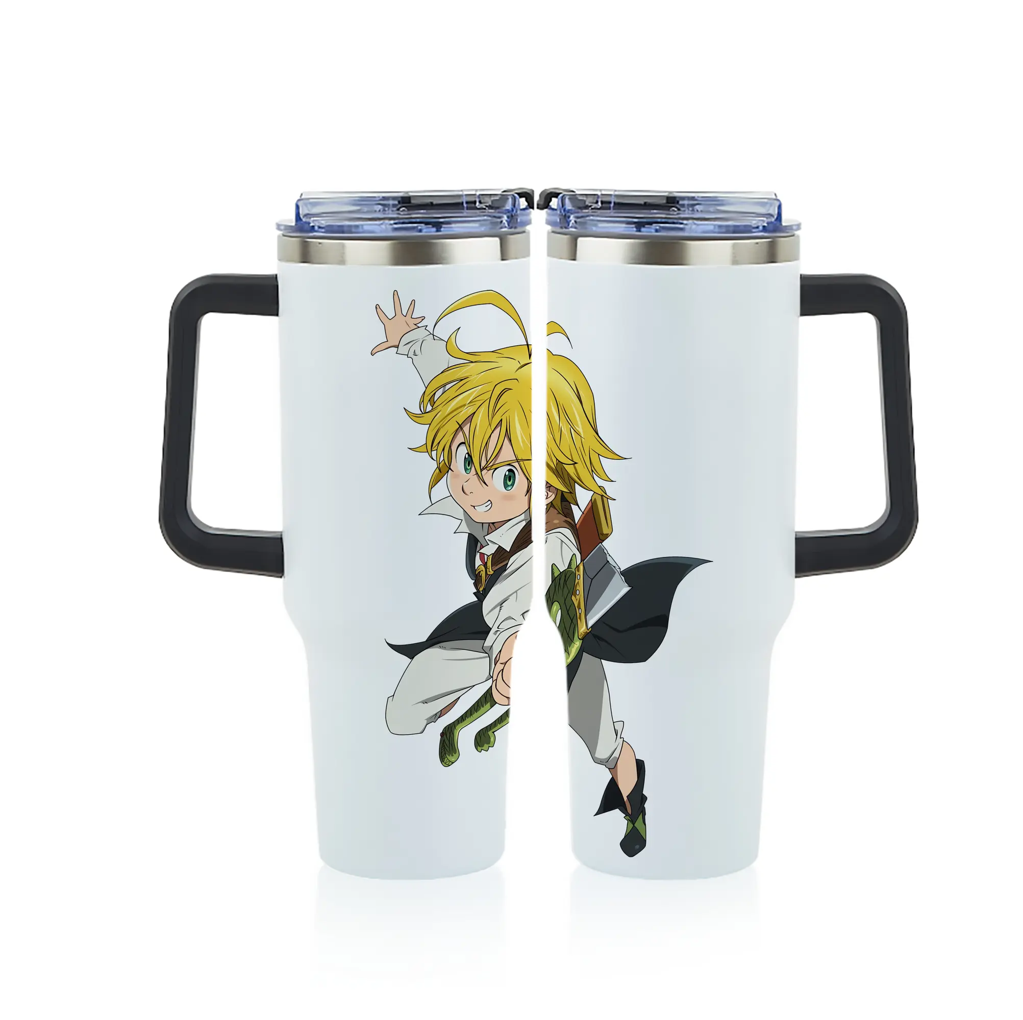 七つの大罪 グッズ メリオダス - 1200mL フルプリント車用タンブラー ・ 304ステンレス 内側 ・ 201ステンレス 外側 ・ 保温 保冷 ・ 通勤 ドライブ アウトドア用
