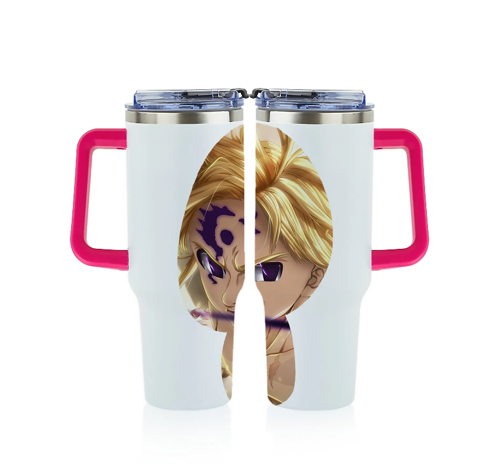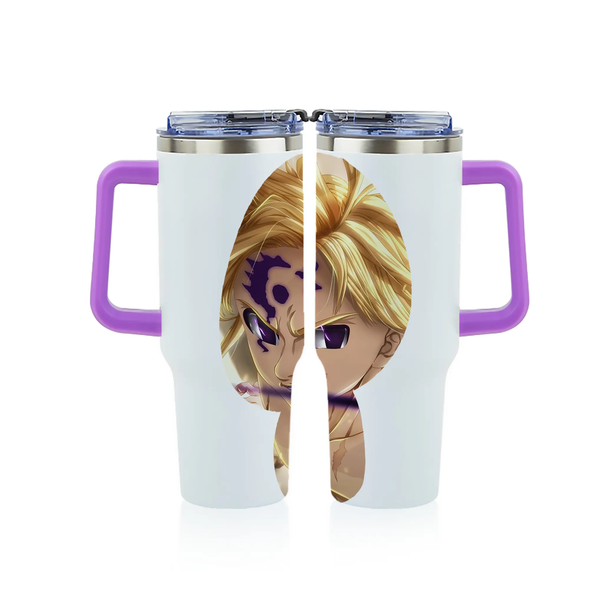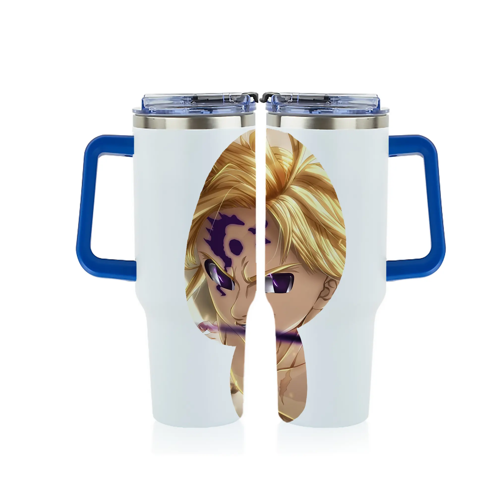 七つの大罪 グッズ メリオダス - 1200mL フルプリント車用タンブラー ・ 304ステンレス 内側 ・ 201ステンレス 外側 ・ 保温 保冷 ・ 通勤 ドライブ アウトドア用