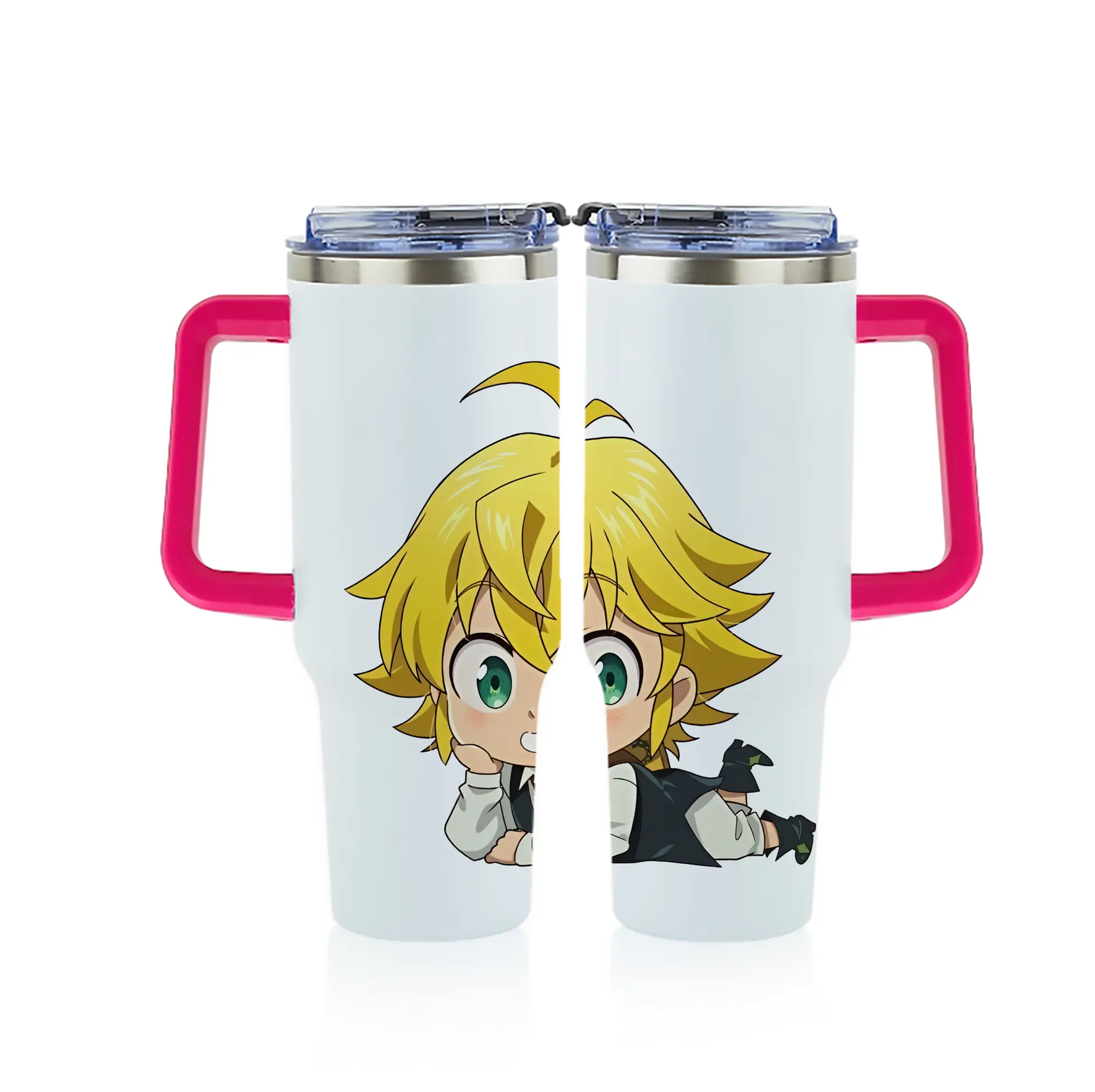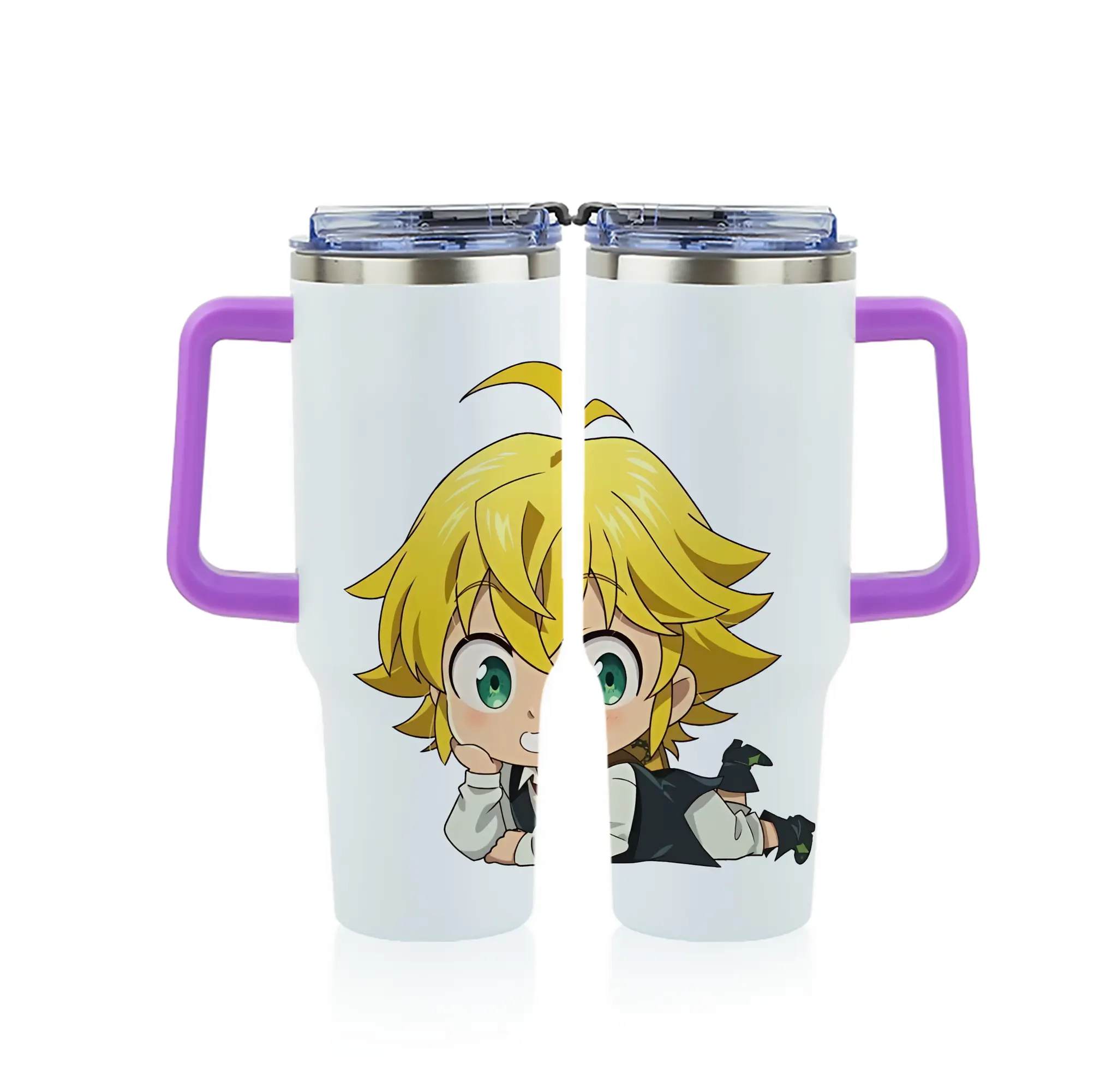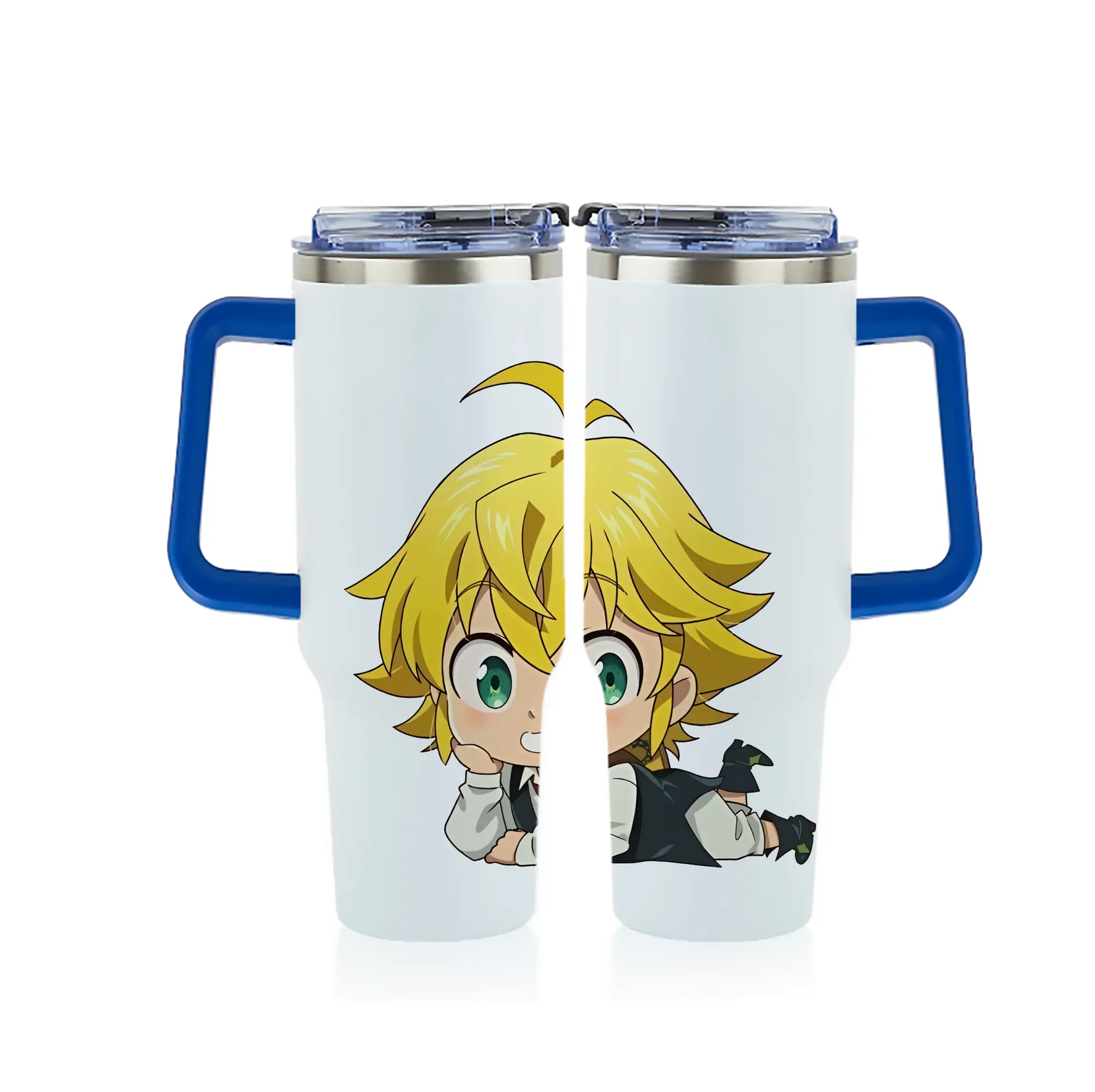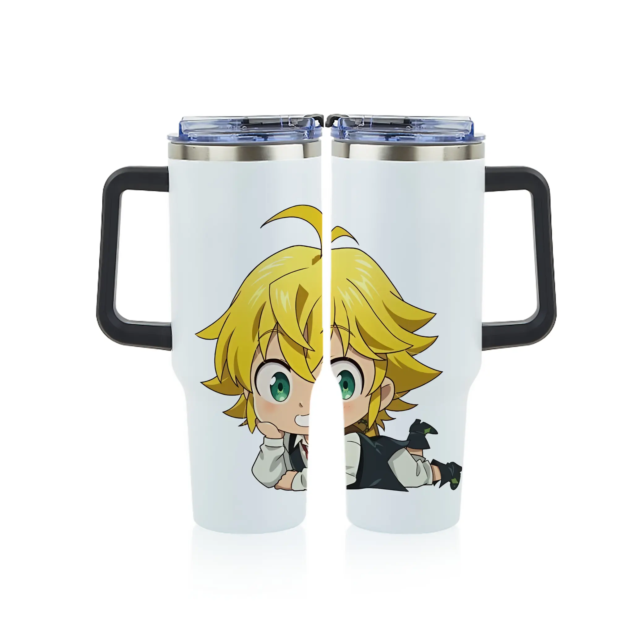 七つの大罪 グッズ メリオダス - 1200mL フルプリント車用タンブラー ・ 304ステンレス 内側 ・ 201ステンレス 外側 ・ 保温 保冷 ・ 通勤 ドライブ アウトドア用