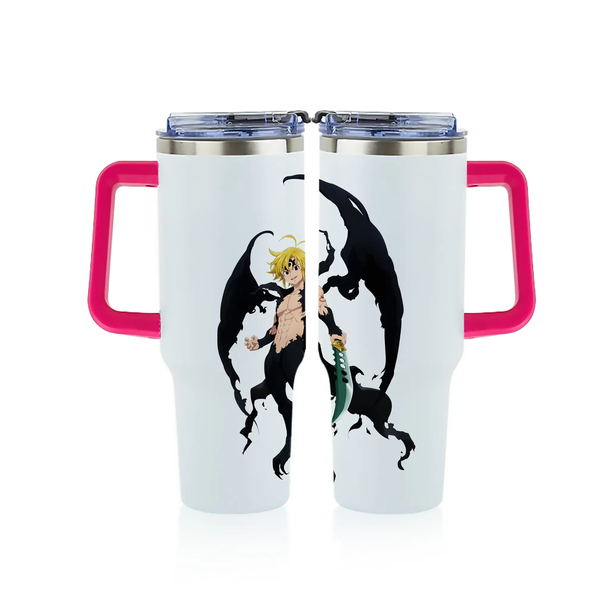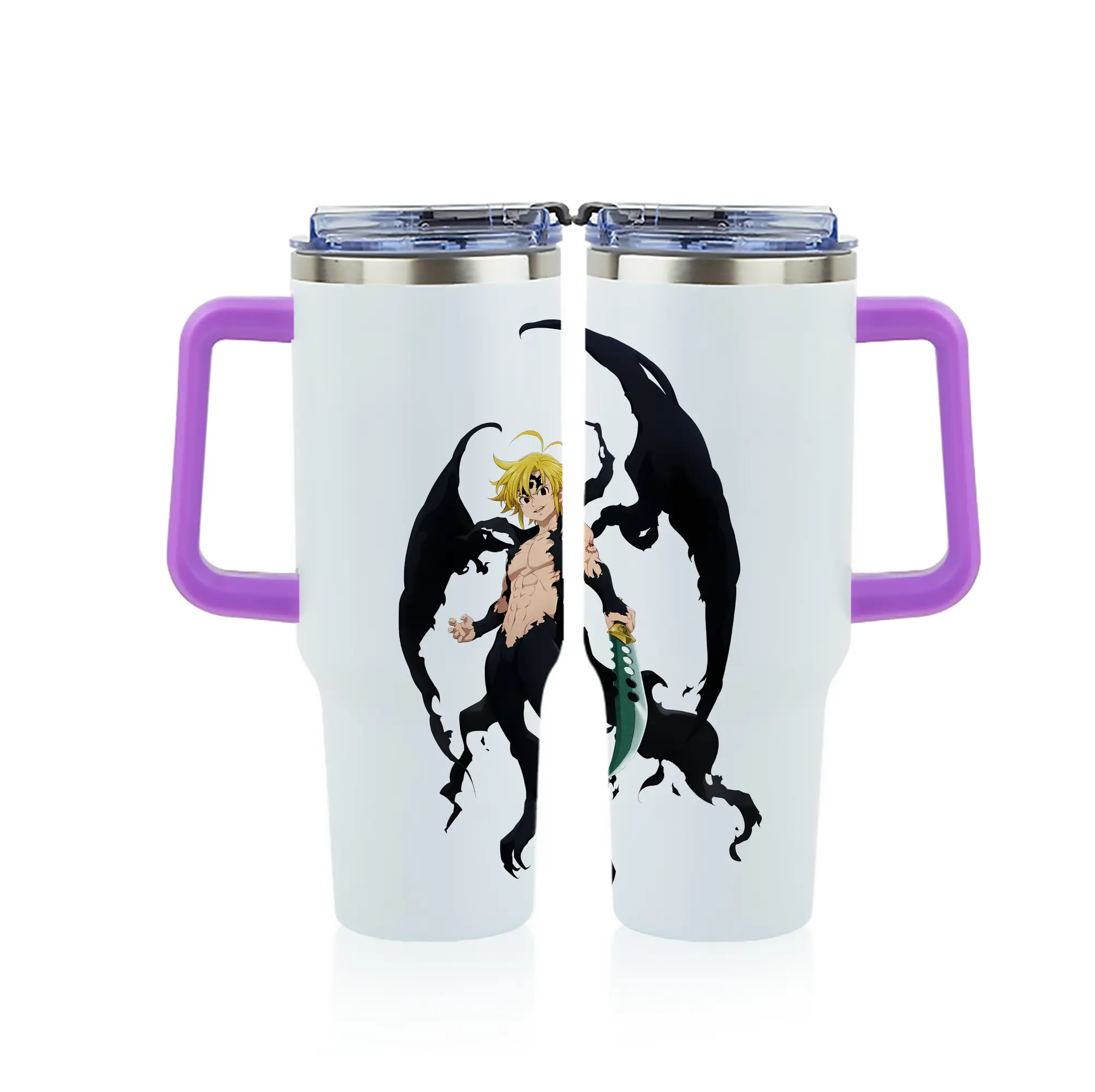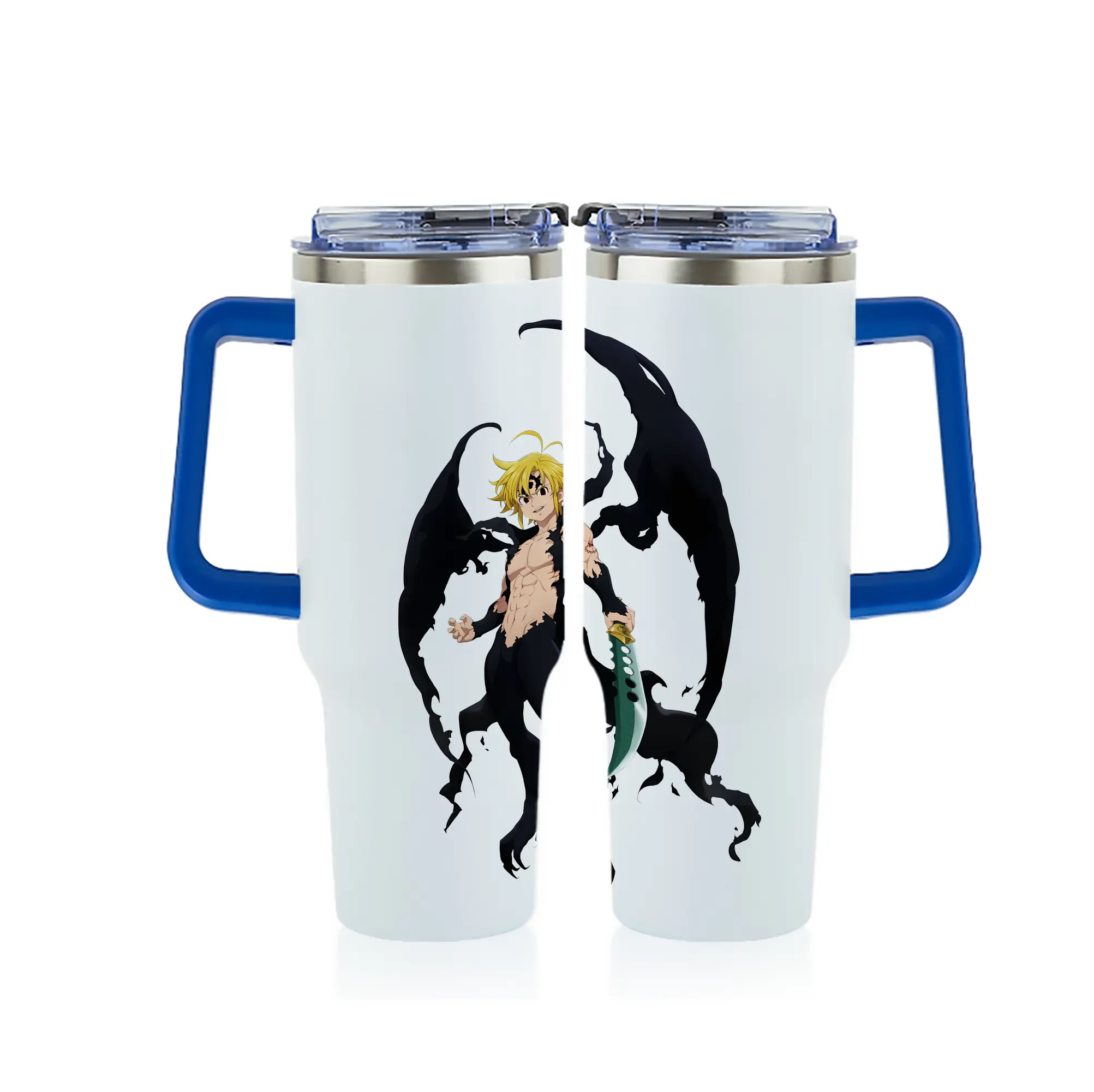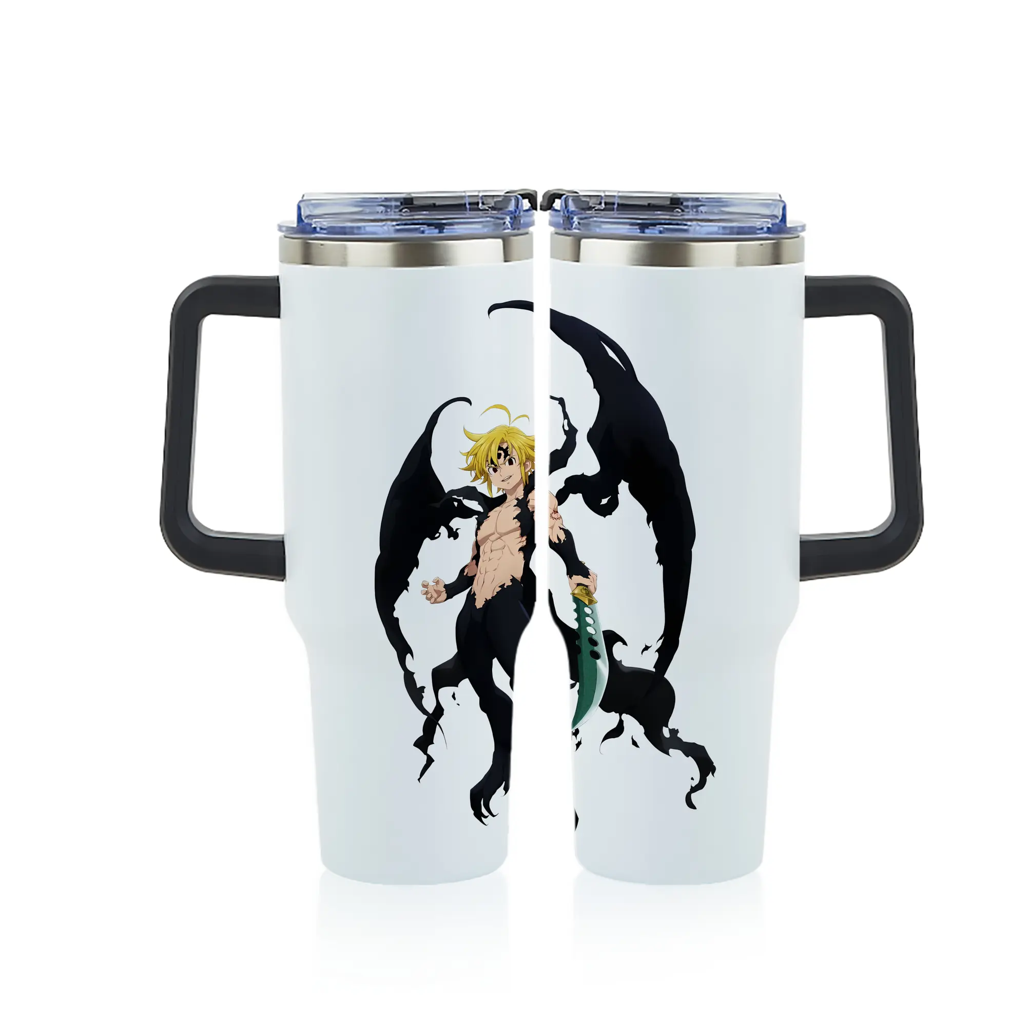 七つの大罪 グッズ メリオダス - 1200mL フルプリント車用タンブラー ・ 304ステンレス 内側 ・ 201ステンレス 外側 ・ 保温 保冷 ・ 通勤 ドライブ アウトドア用