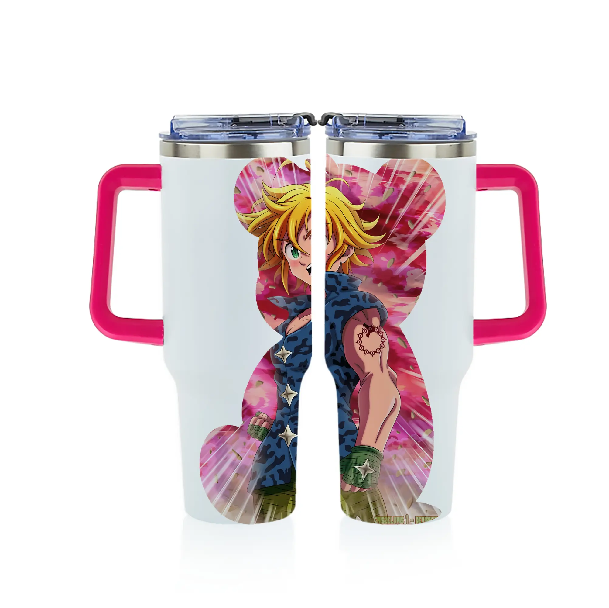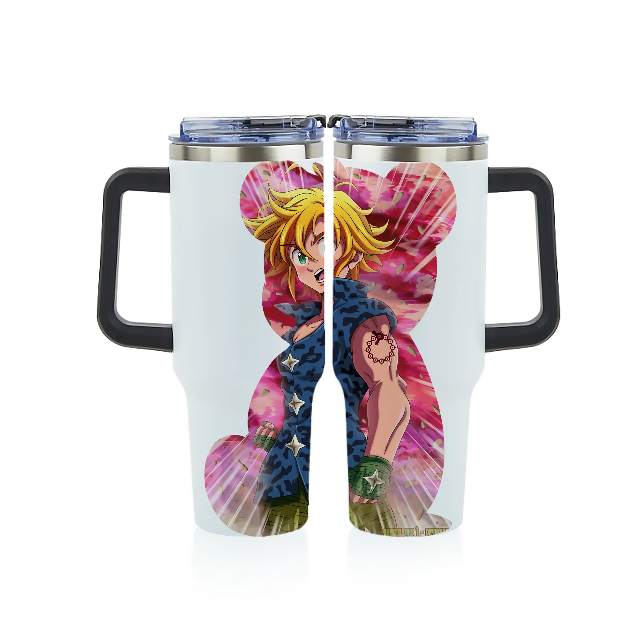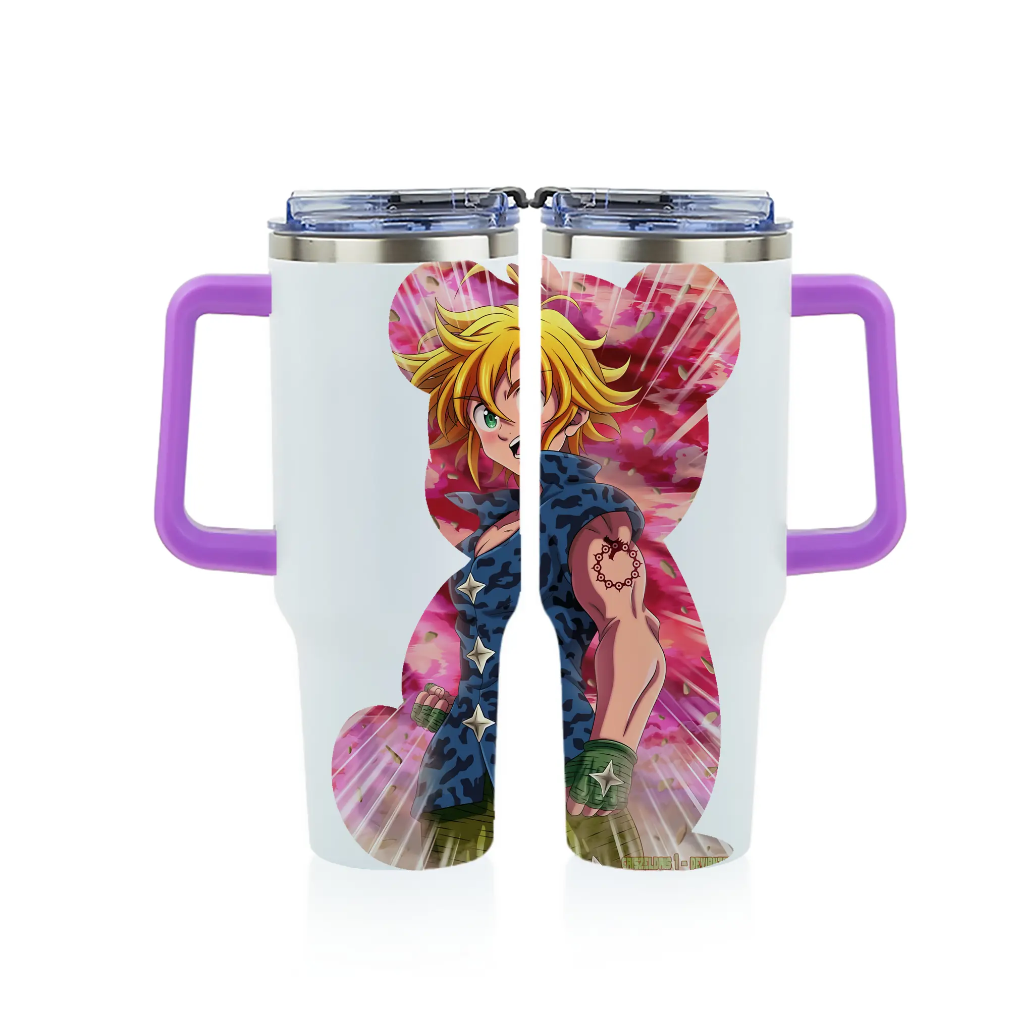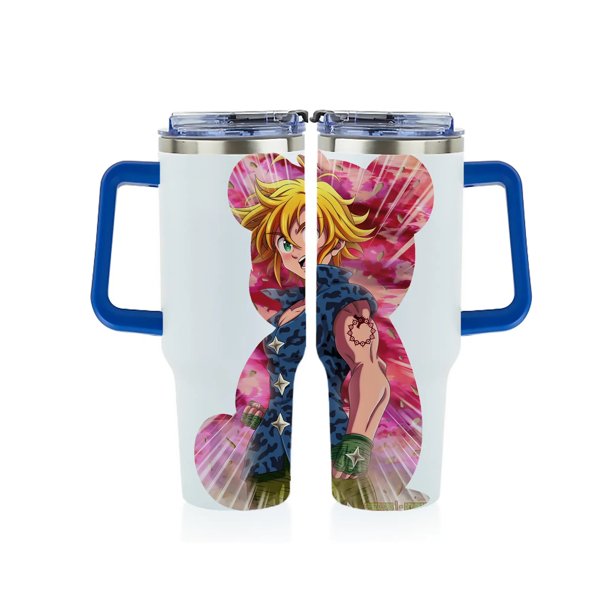 七つの大罪 グッズ メリオダス - 1200mL フルプリント車用タンブラー ・ 304ステンレス 内側 ・ 201ステンレス 外側 ・ 保温 保冷 ・ 通勤 ドライブ アウトドア用