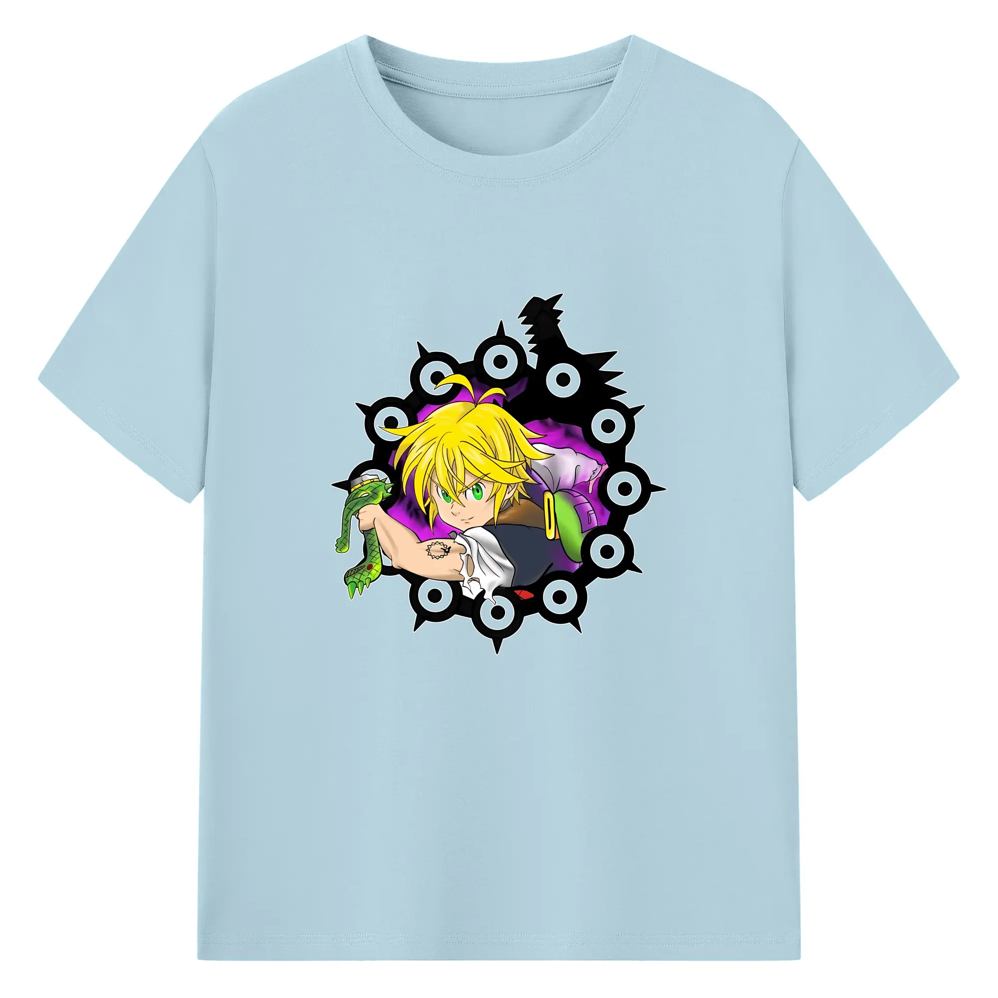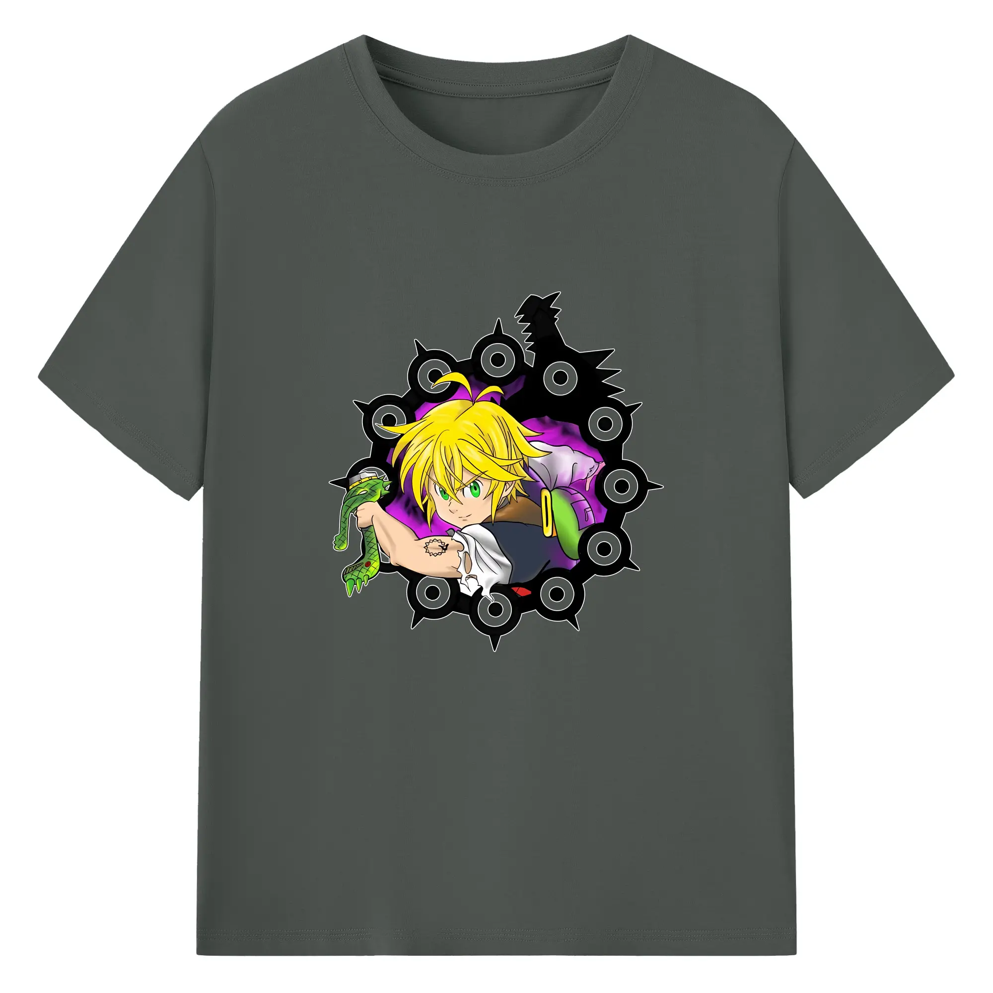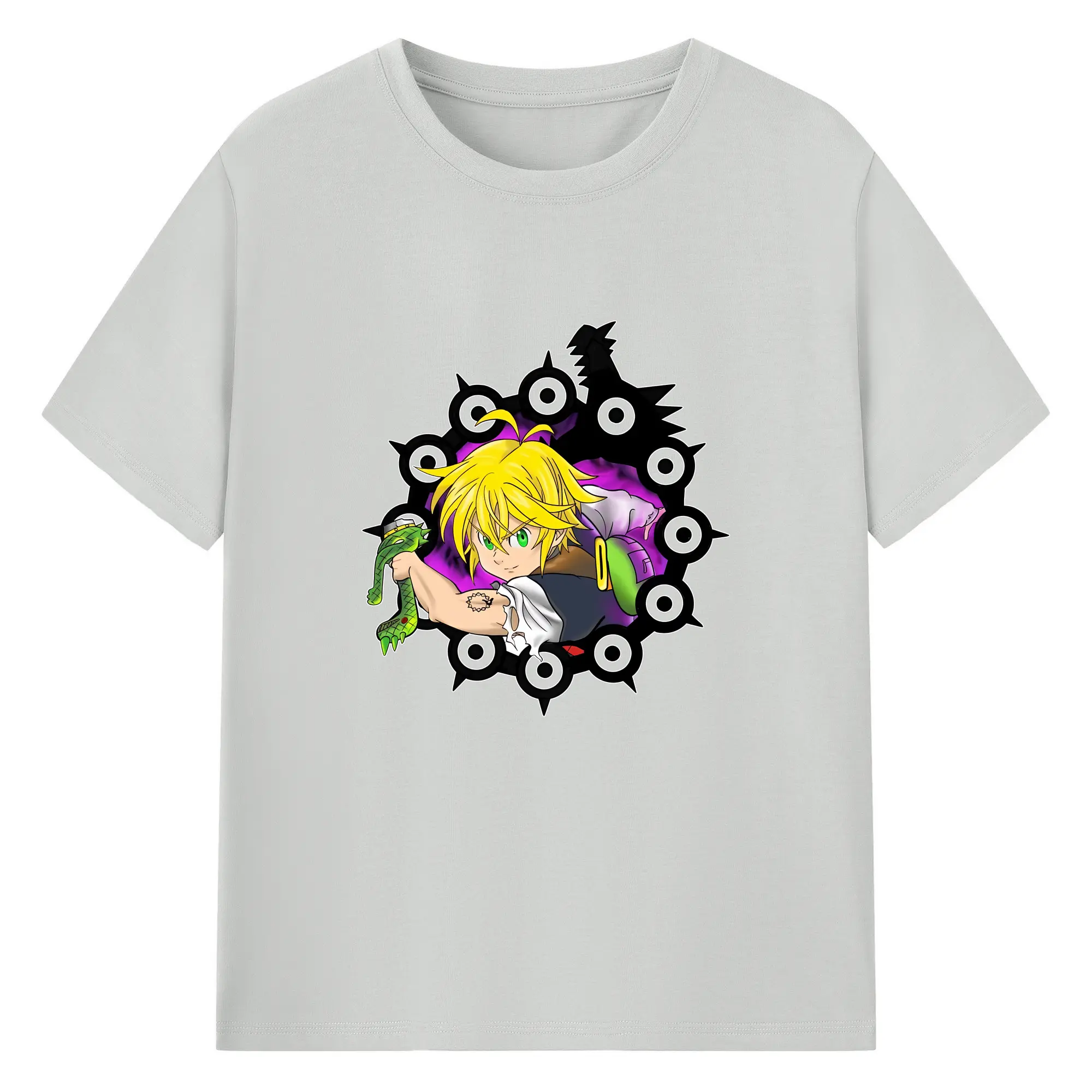 七つの大罪 グッズ メリオダス - 綿100% 半袖Tシャツ ・ バックプリント ・ 快適 通気性 ・ 日常使い 散歩 スポーツ用