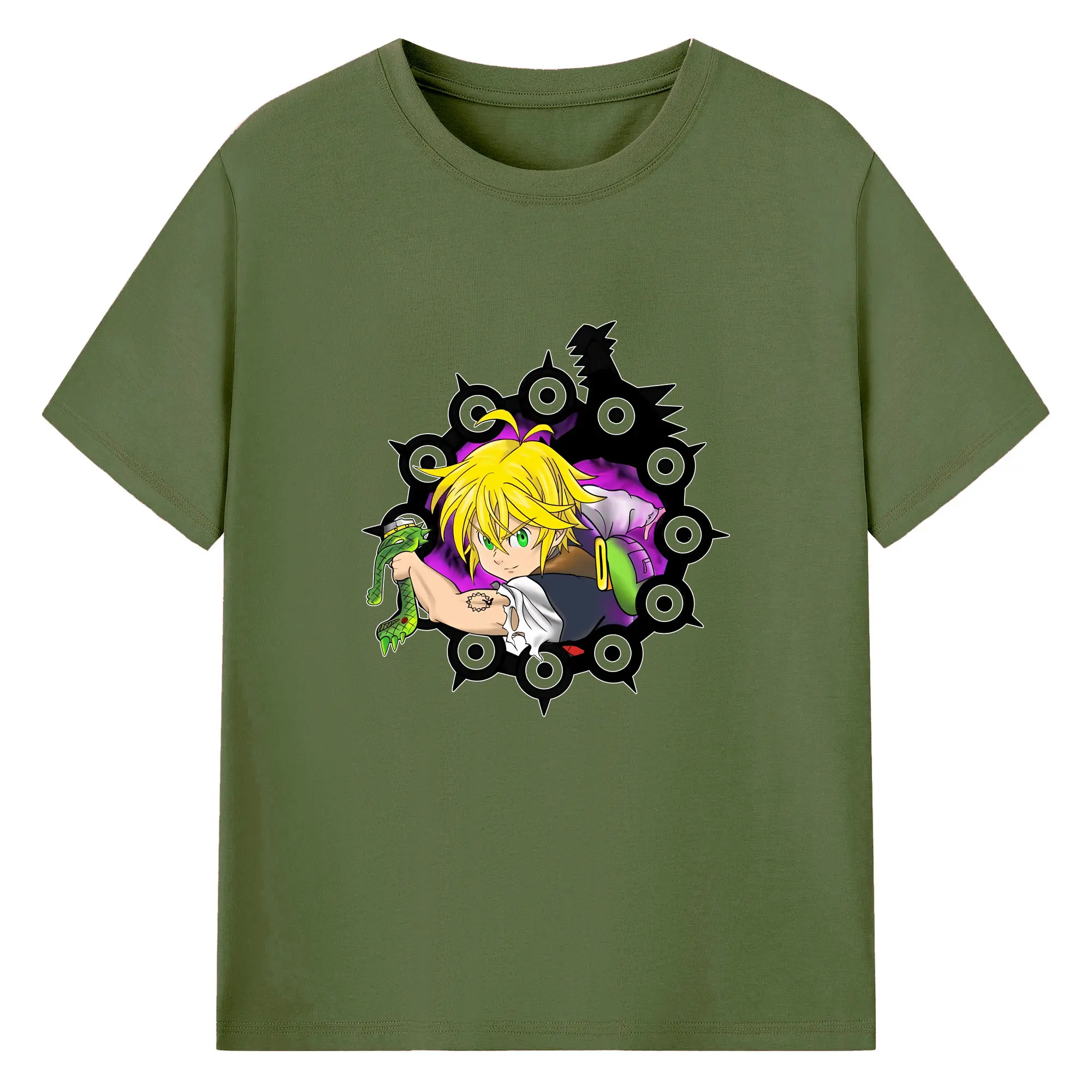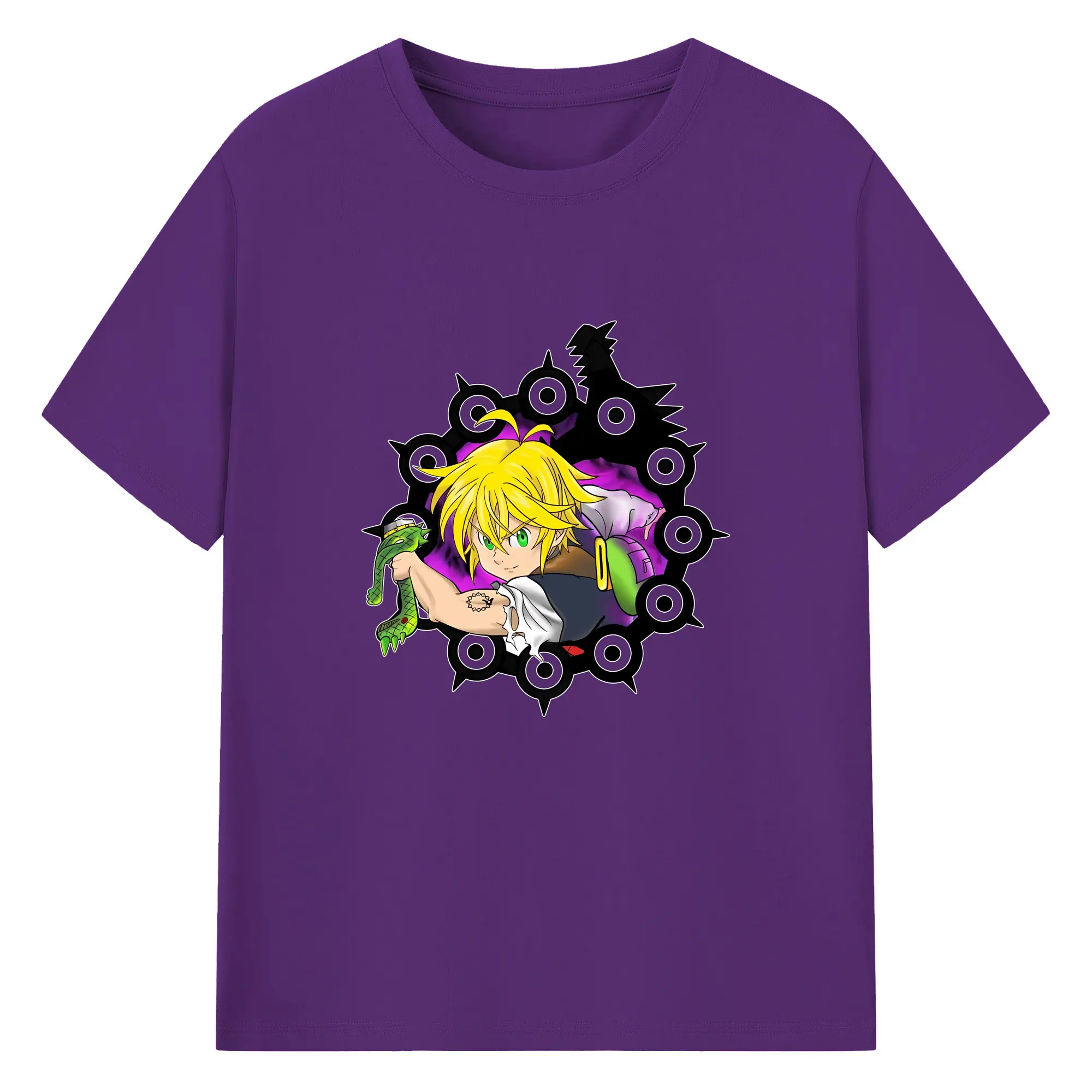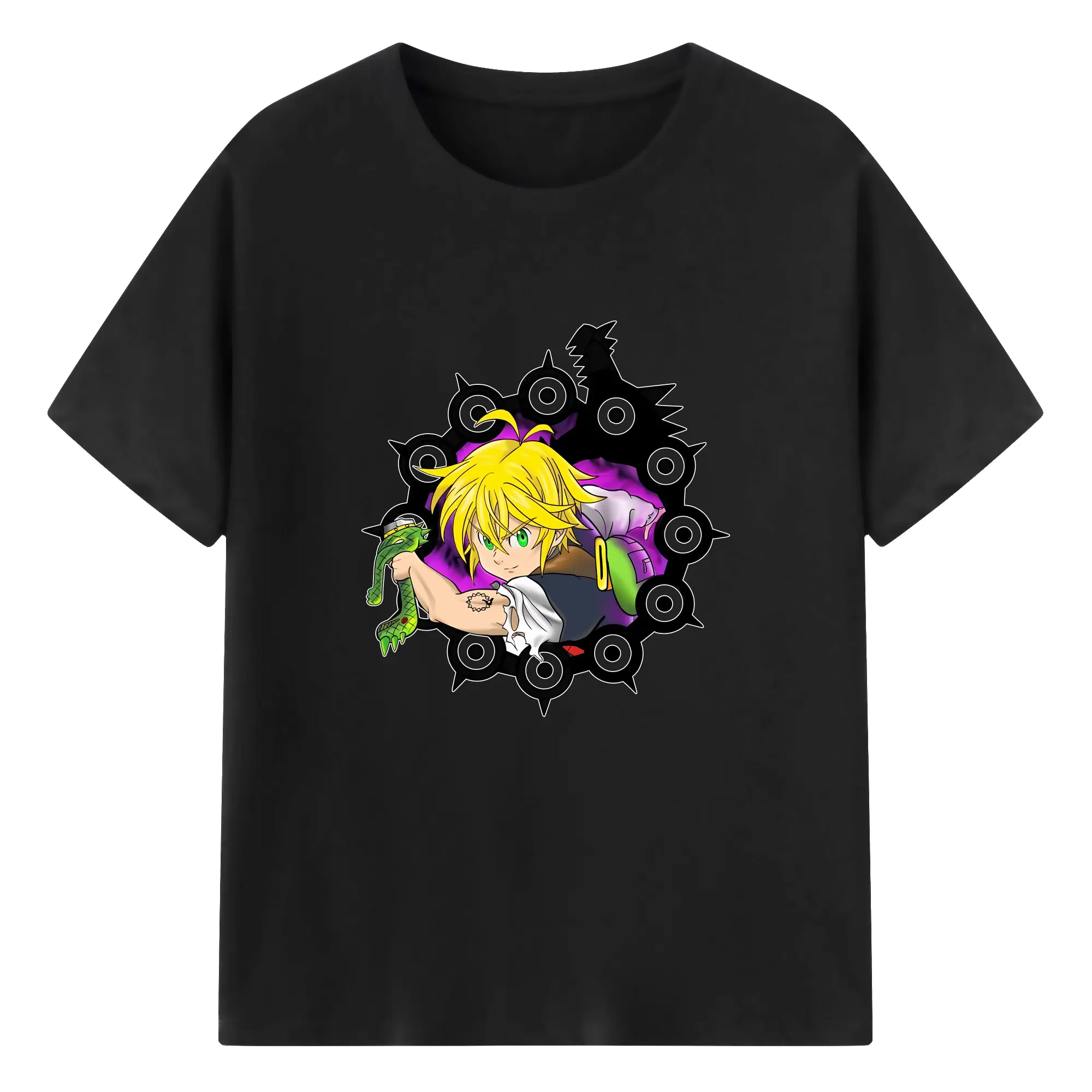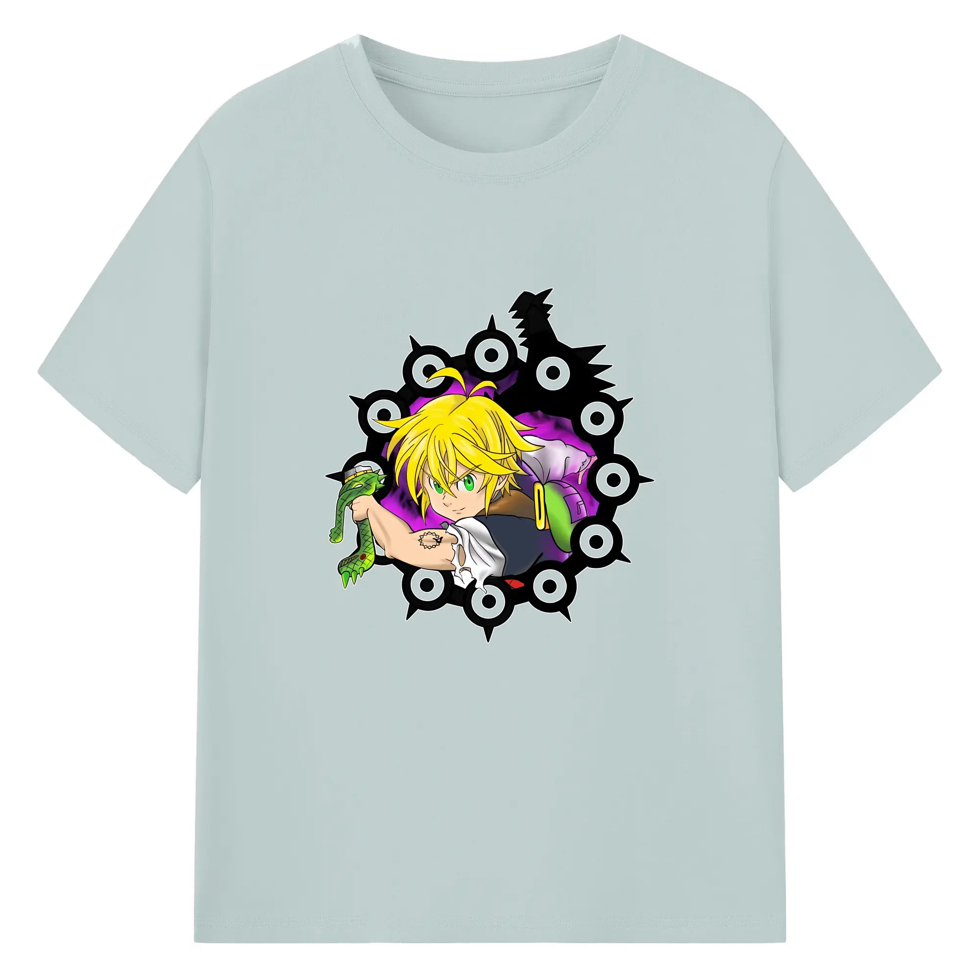 七つの大罪 グッズ メリオダス - 綿100% 半袖Tシャツ ・ バックプリント ・ 快適 通気性 ・ 日常使い 散歩 スポーツ用