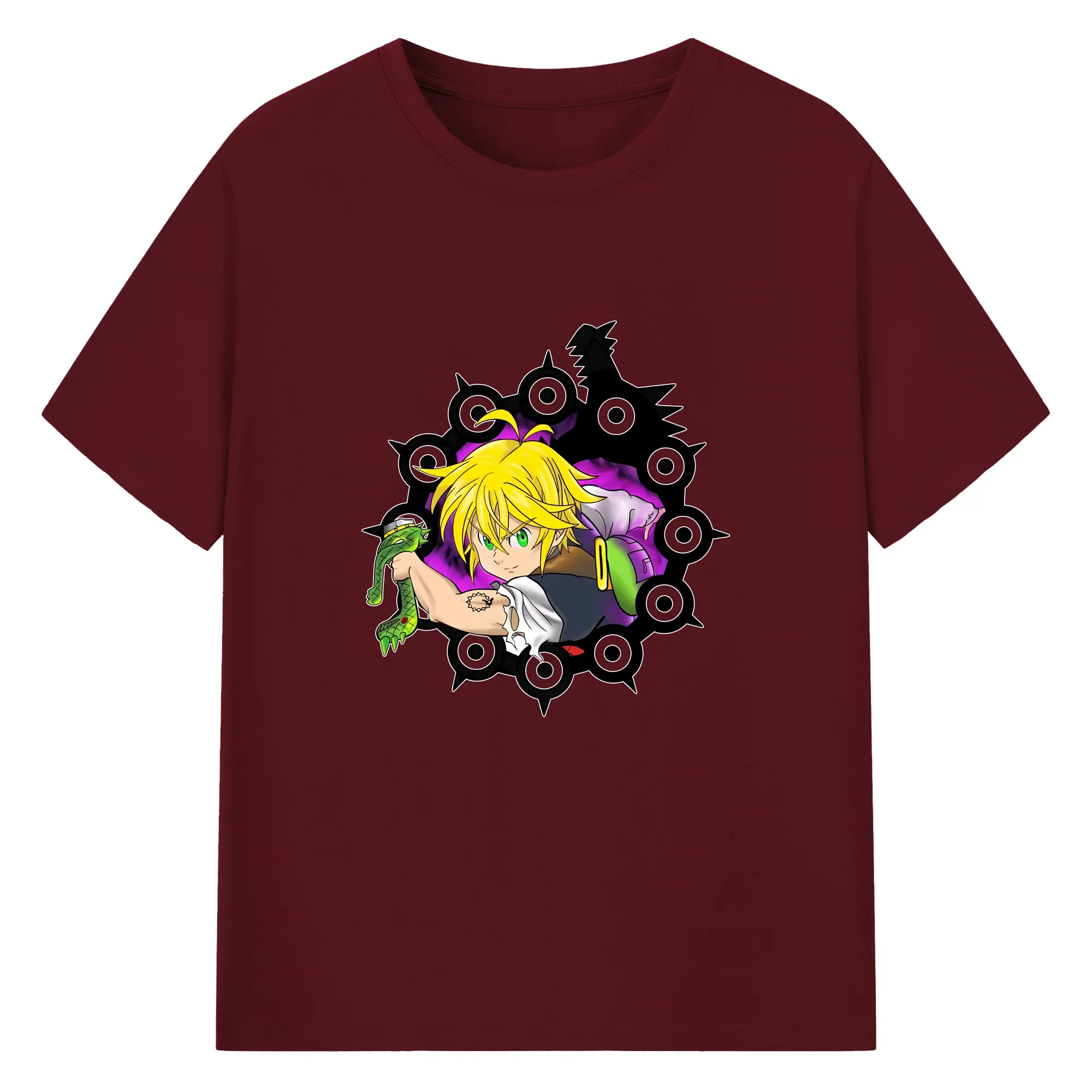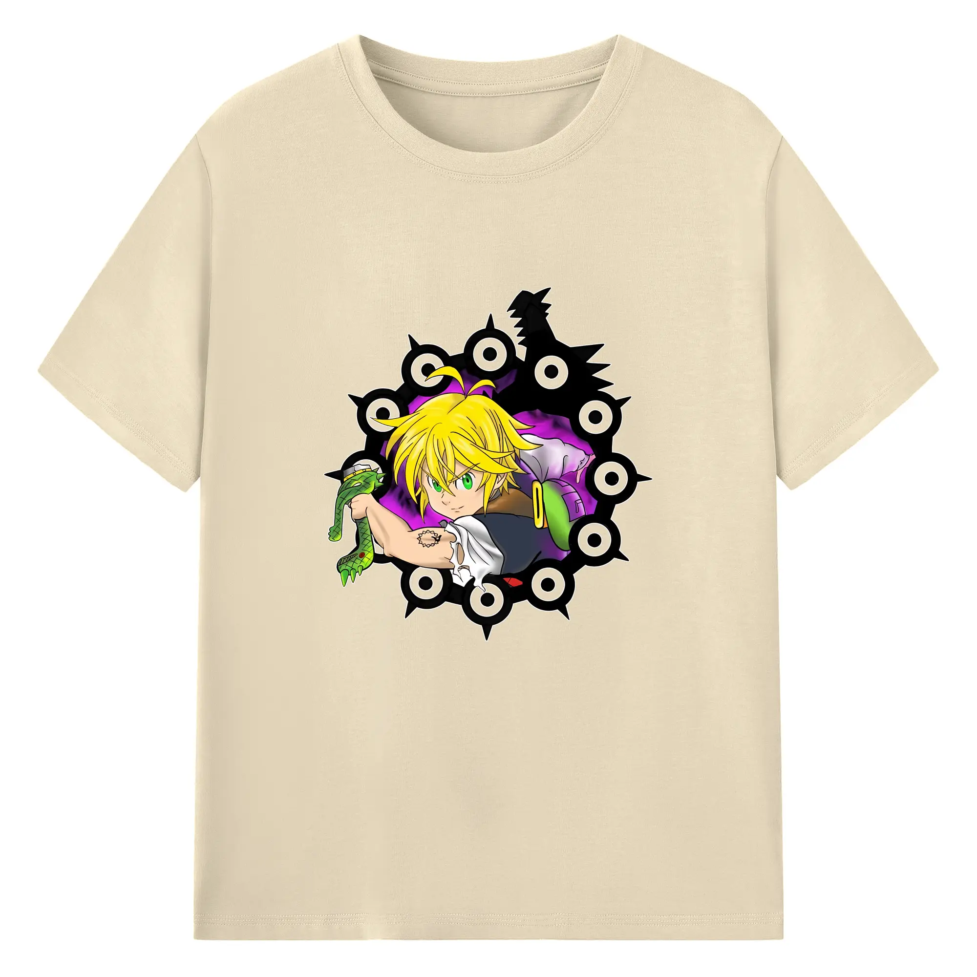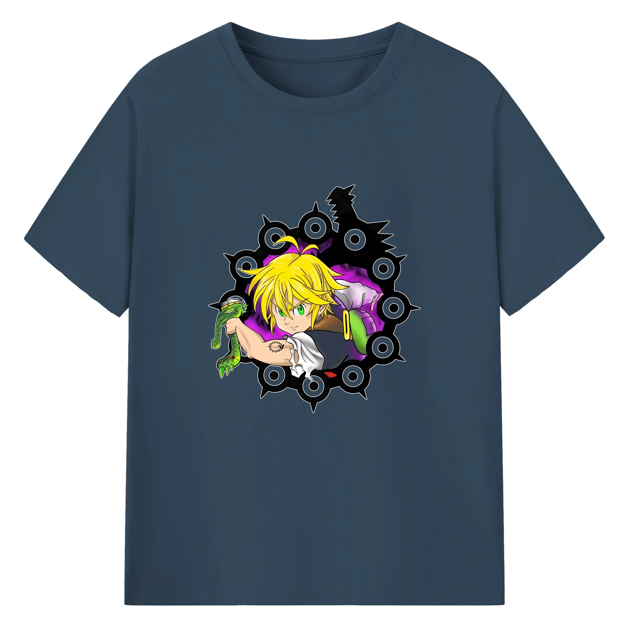 七つの大罪 グッズ メリオダス - 綿100% ヴィンテージ風 半袖Tシャツ ・ フロントプリント ・ 柔らか肌触り ・ 通気性 快適 ・ スポーツ カジュアル 外出用