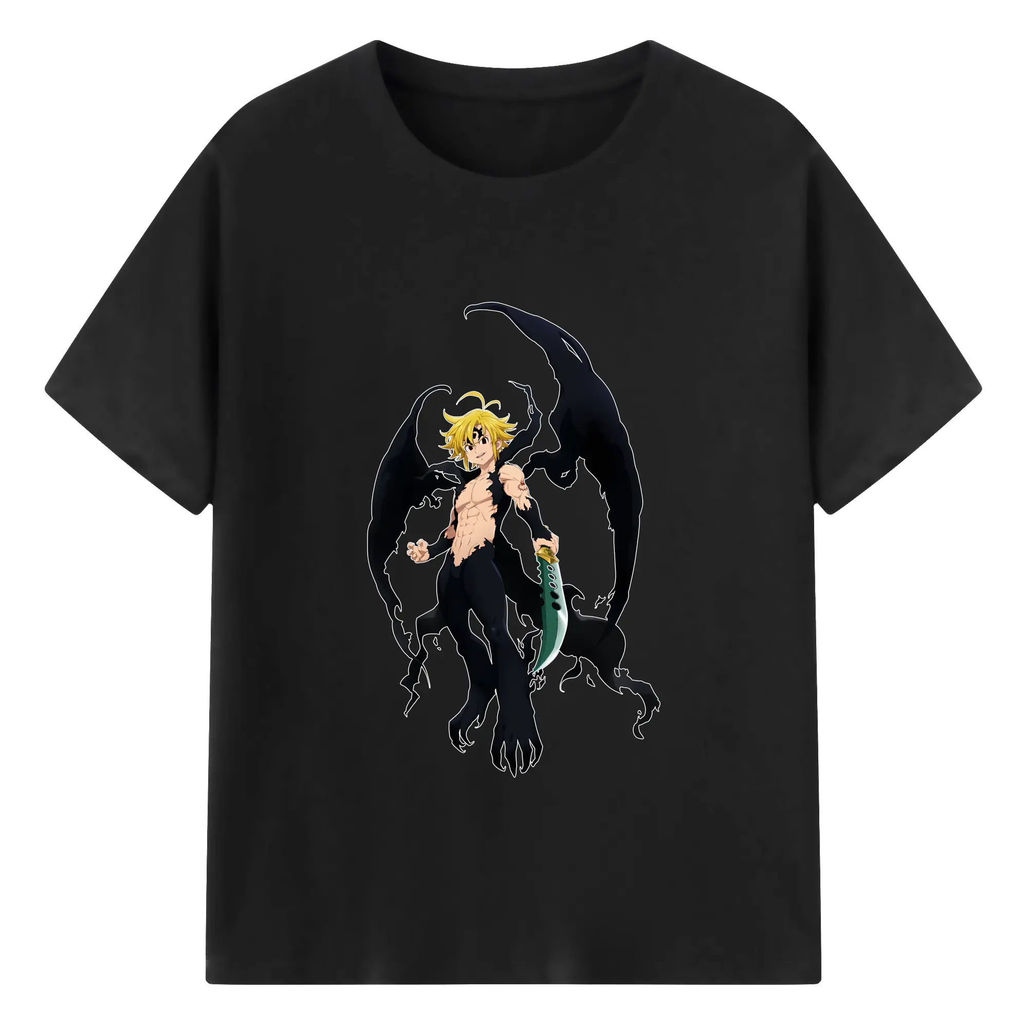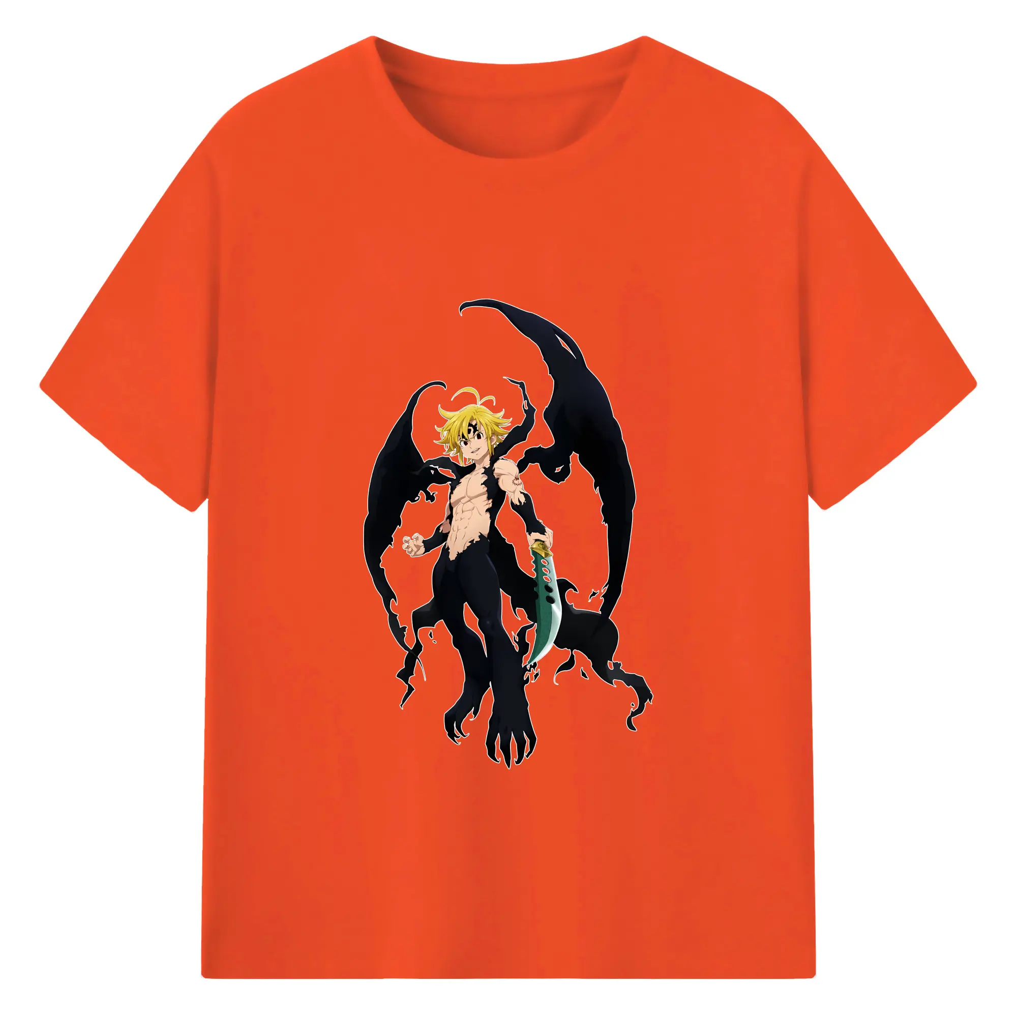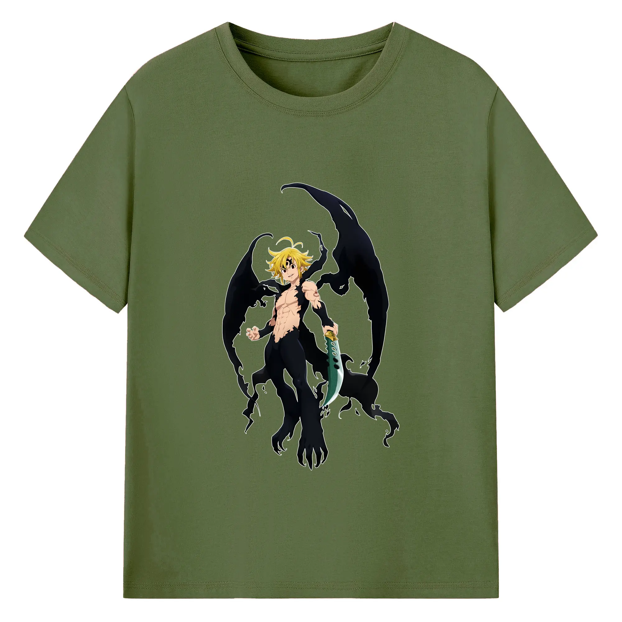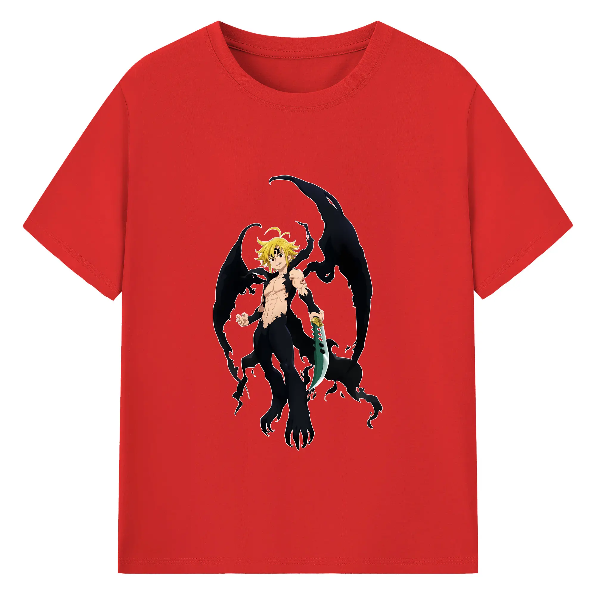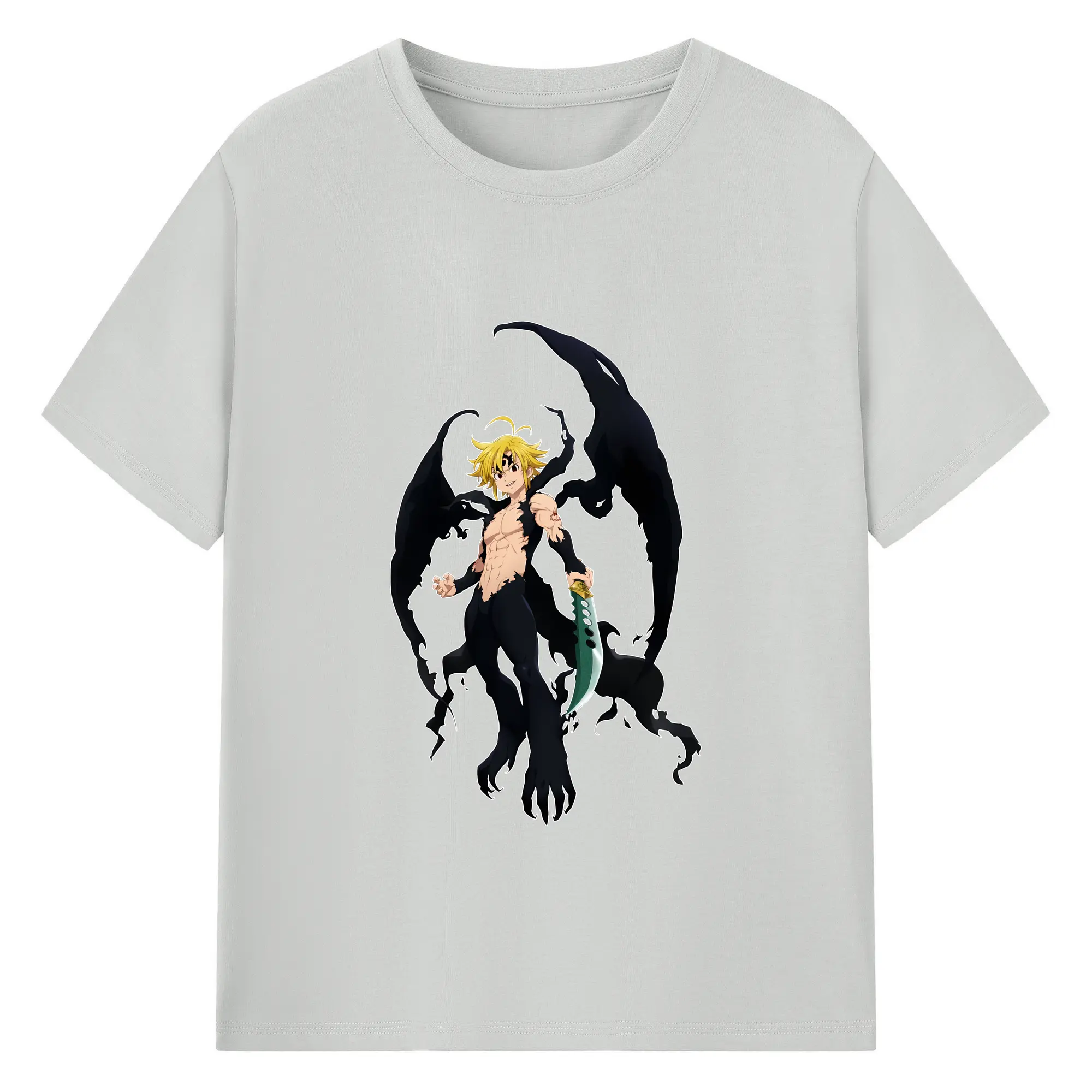 七つの大罪 グッズ メリオダス - 綿100% 半袖Tシャツ ・ バックプリント ・ 快適 通気性 ・ 日常使い 散歩 スポーツ用