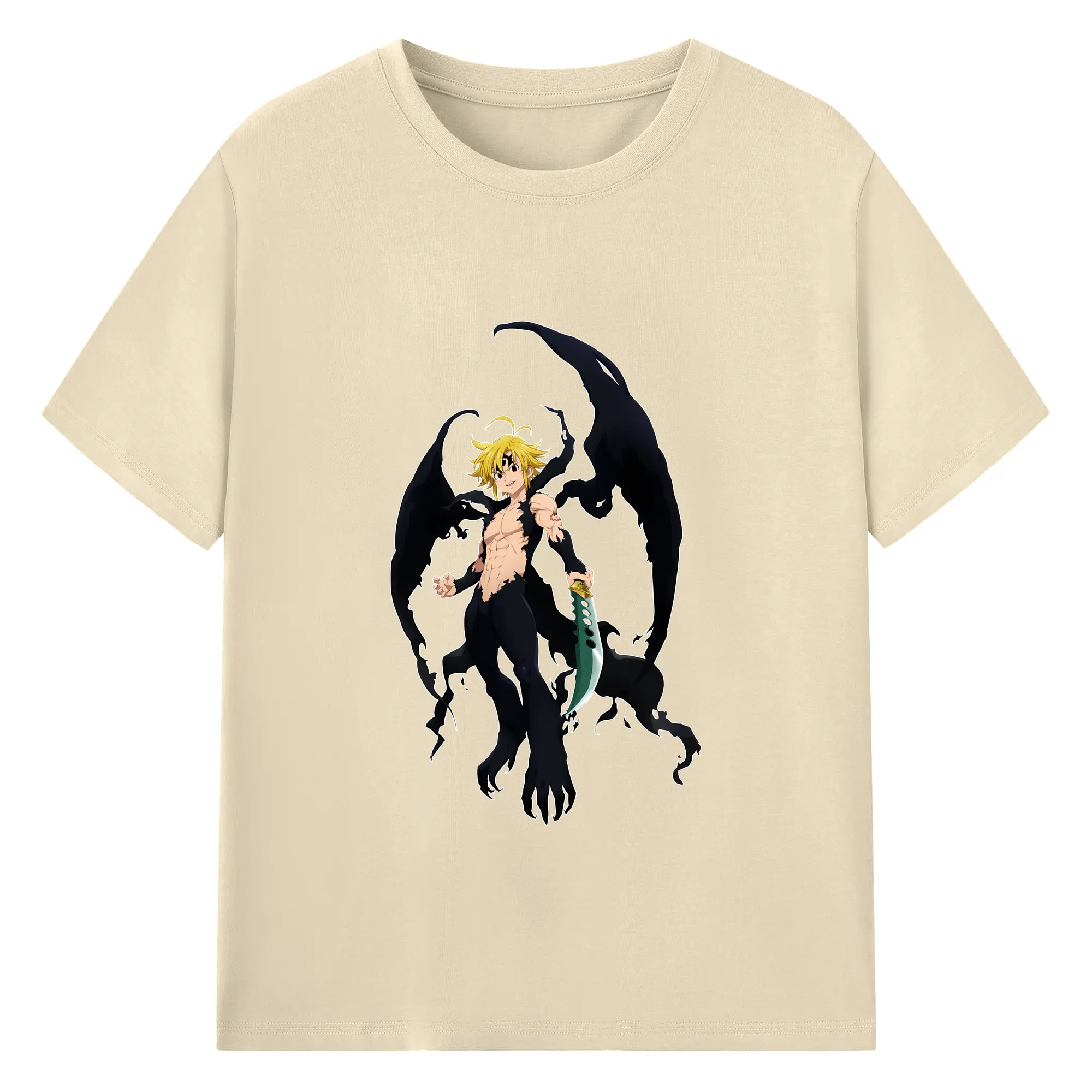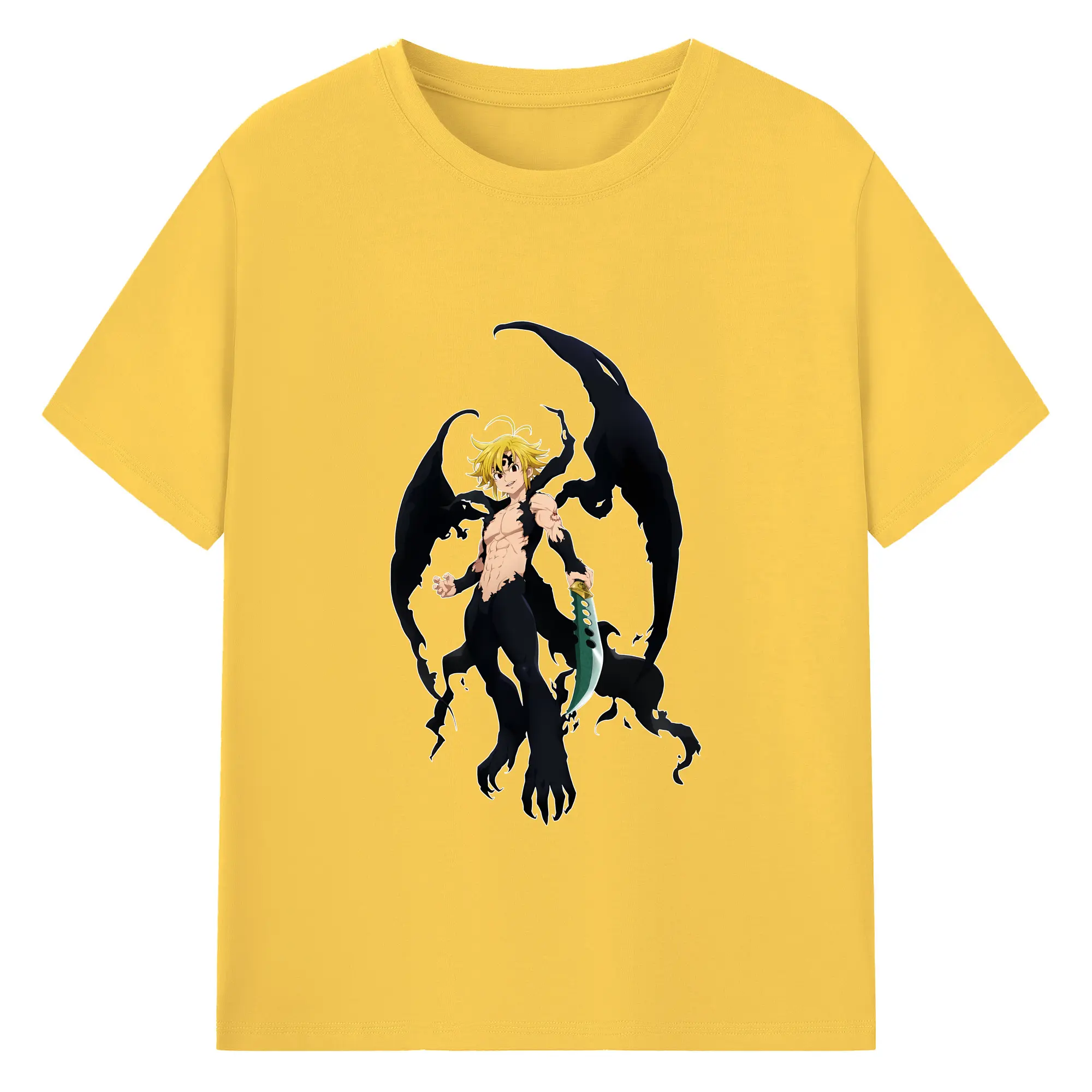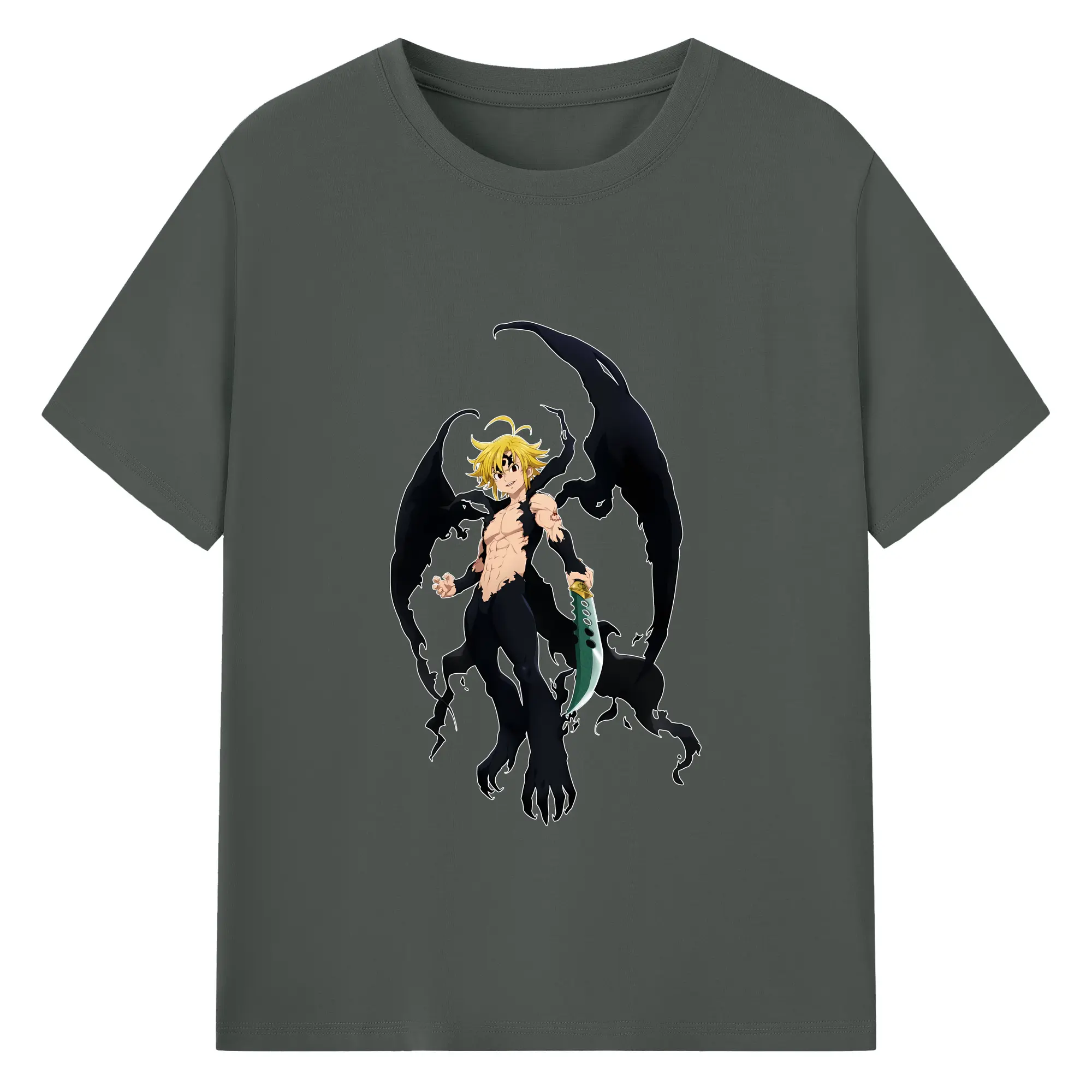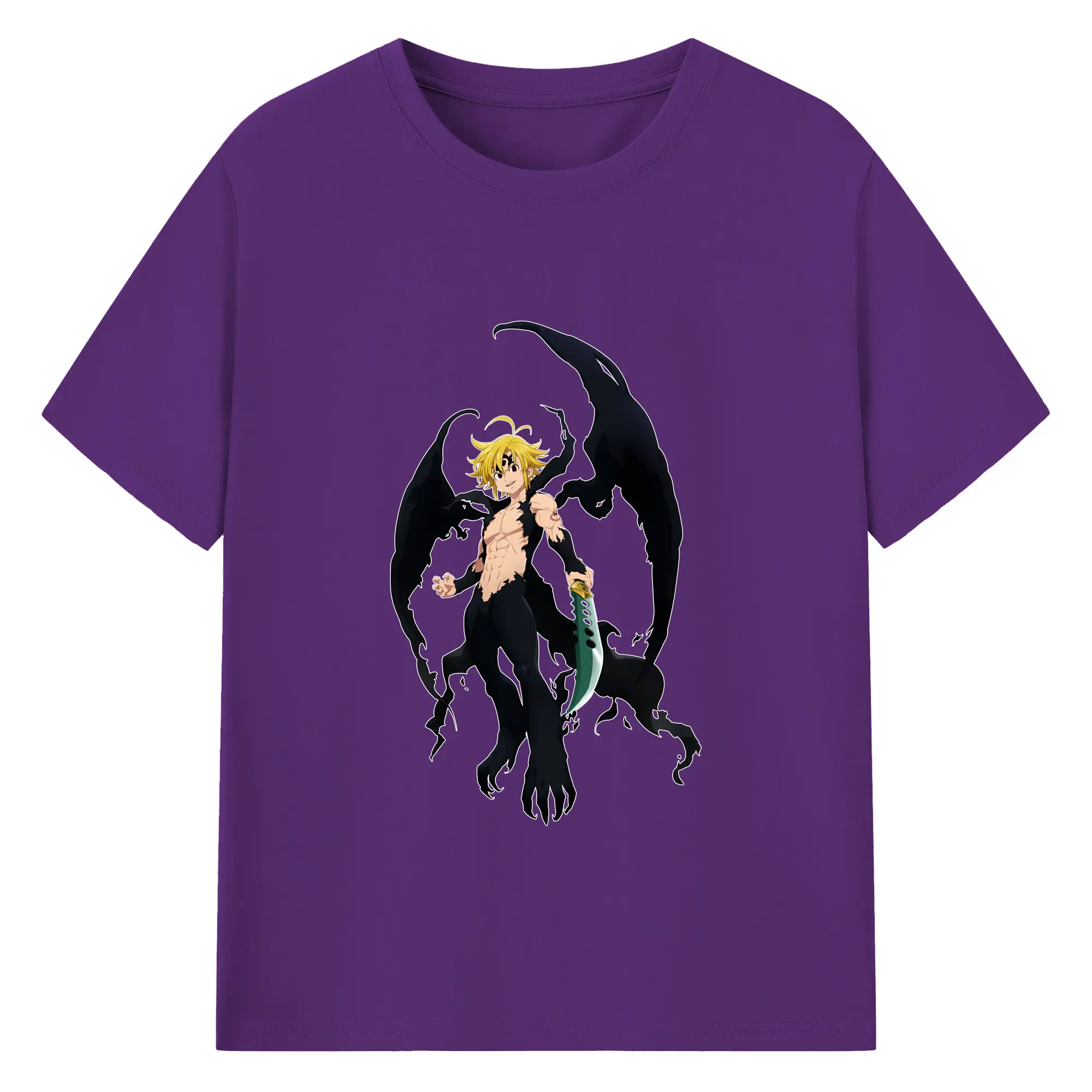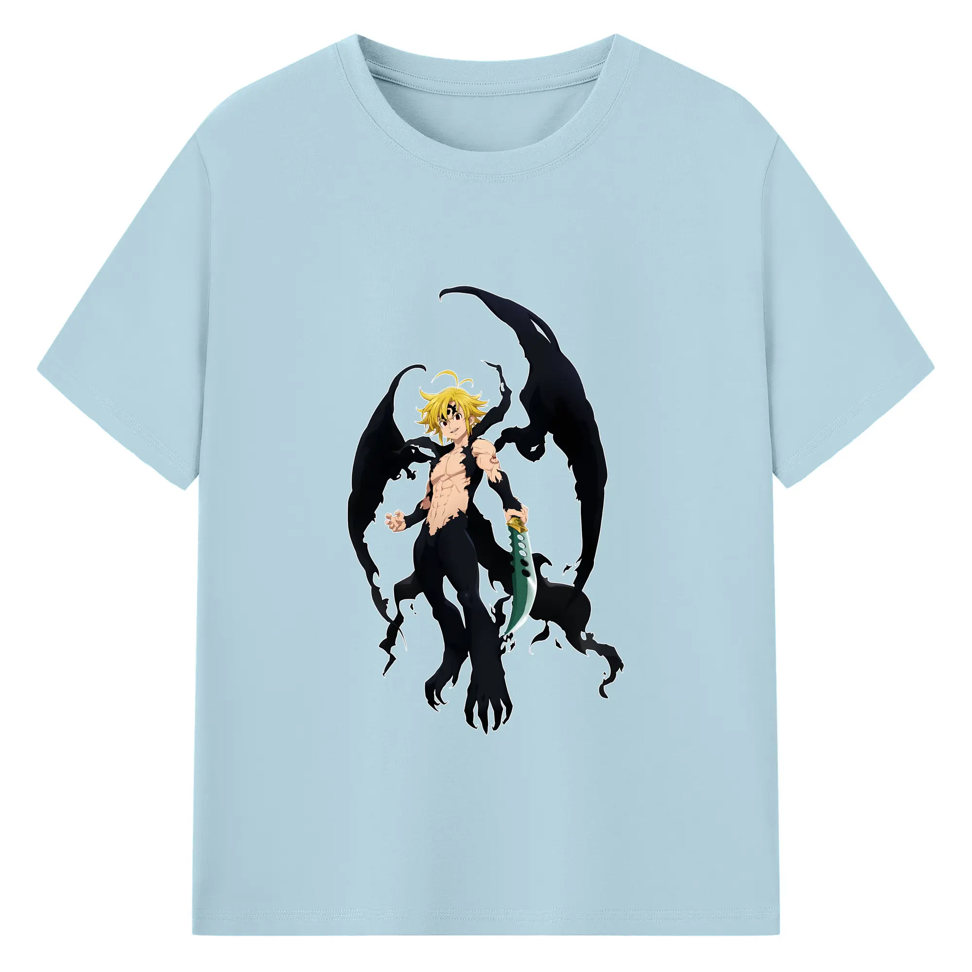 七つの大罪 グッズ メリオダス - 綿100% 半袖Tシャツ ・ バックプリント ・ 快適 通気性 ・ 日常使い 散歩 スポーツ用
