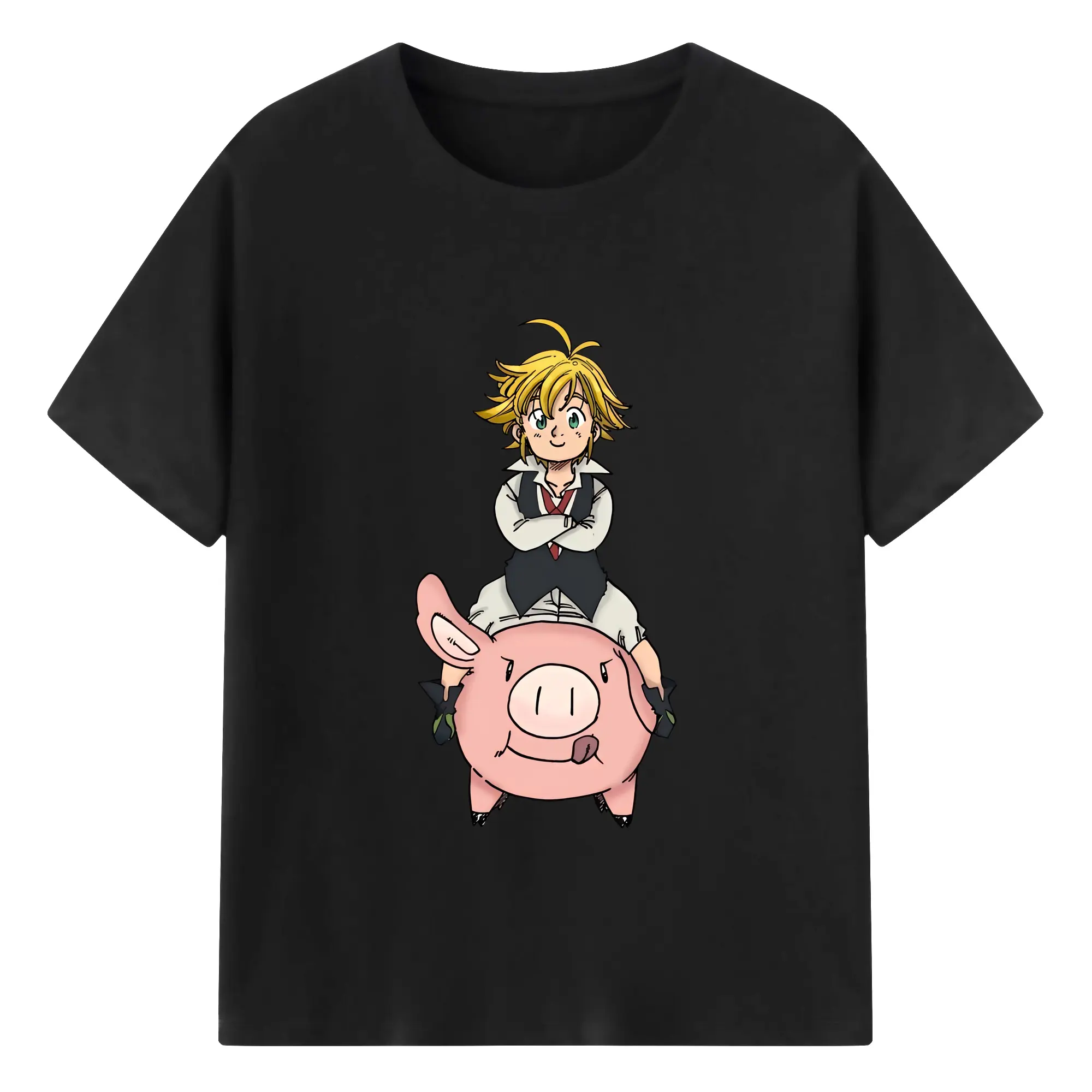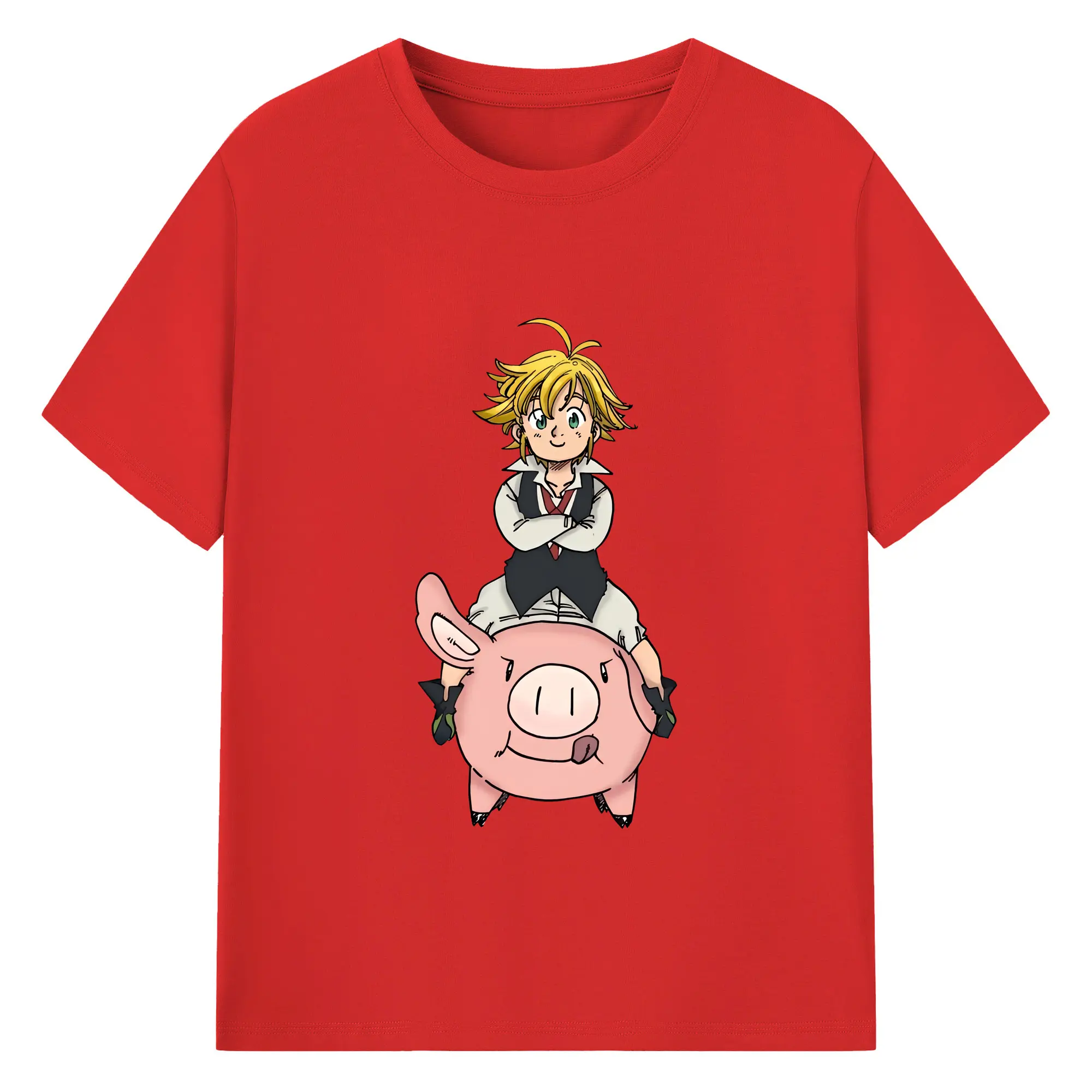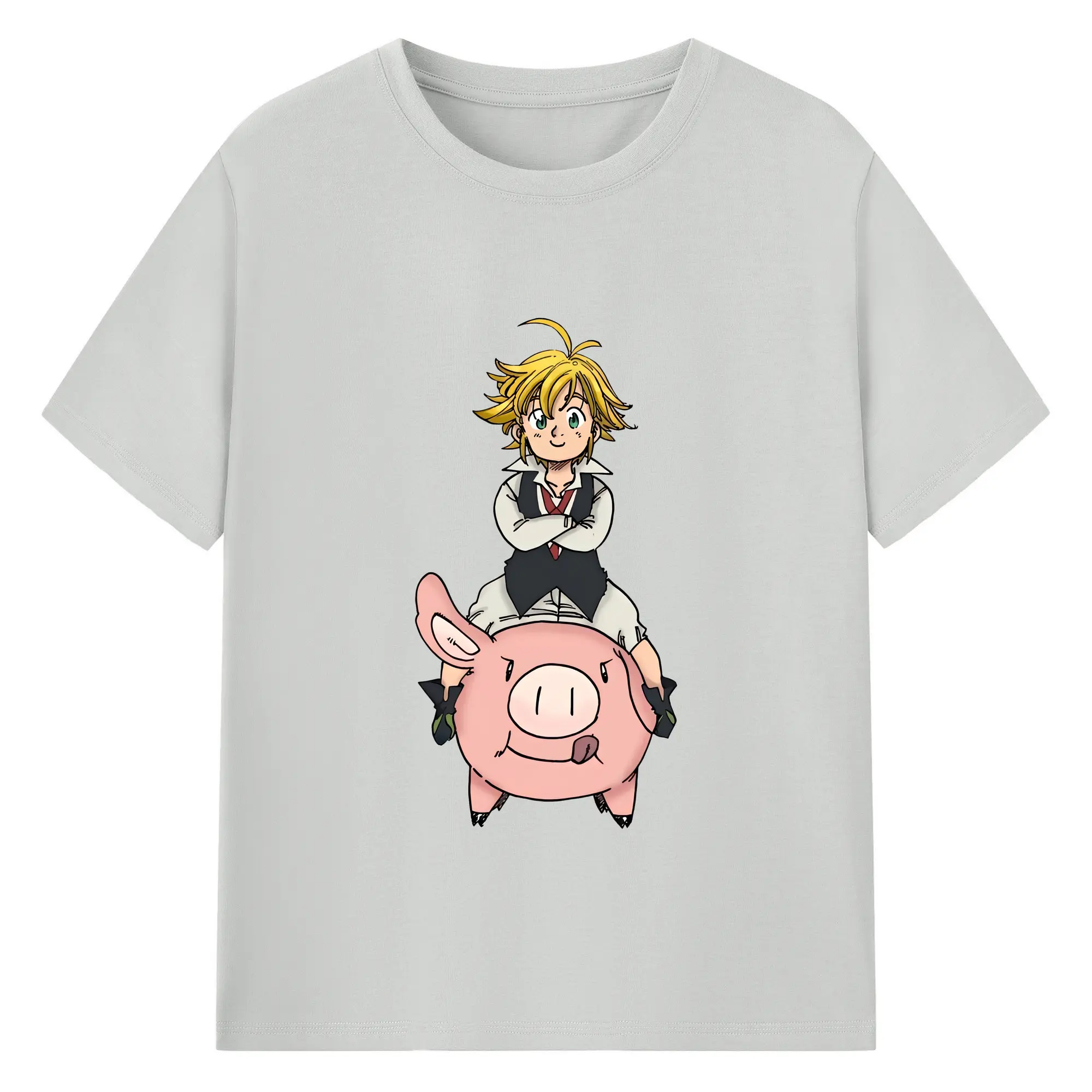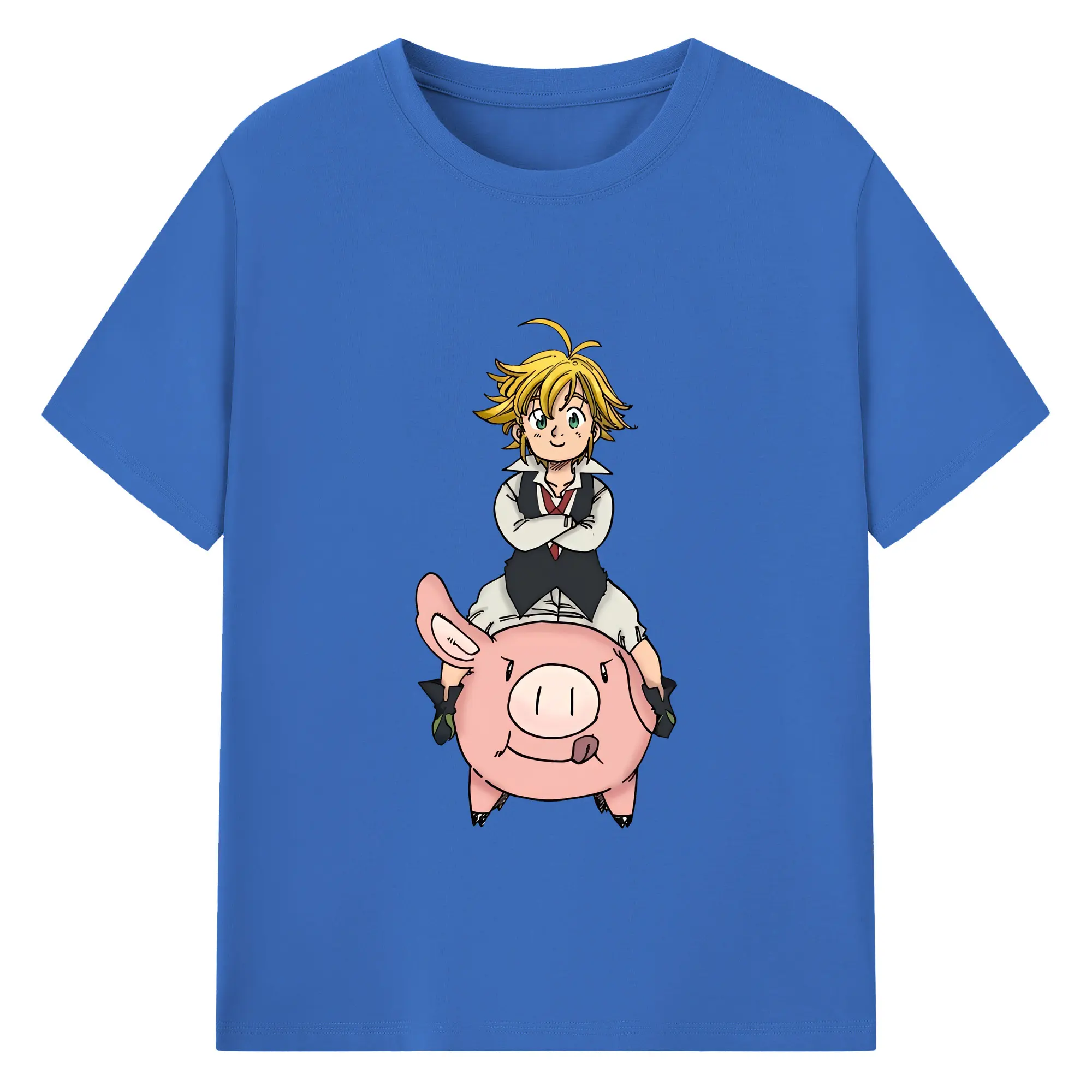 七つの大罪 グッズ メリオダス - 綿100% 半袖Tシャツ ・ バックプリント ・ 快適 通気性 ・ 日常使い 散歩 スポーツ用