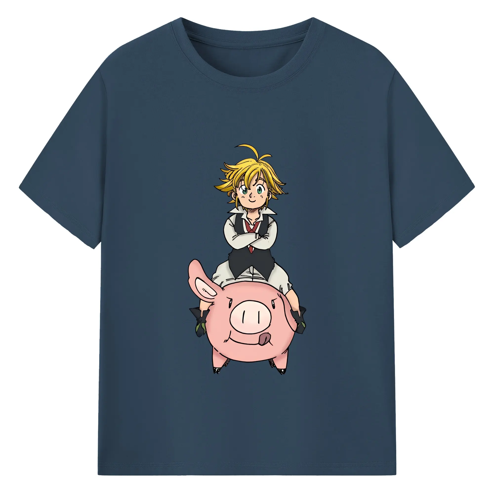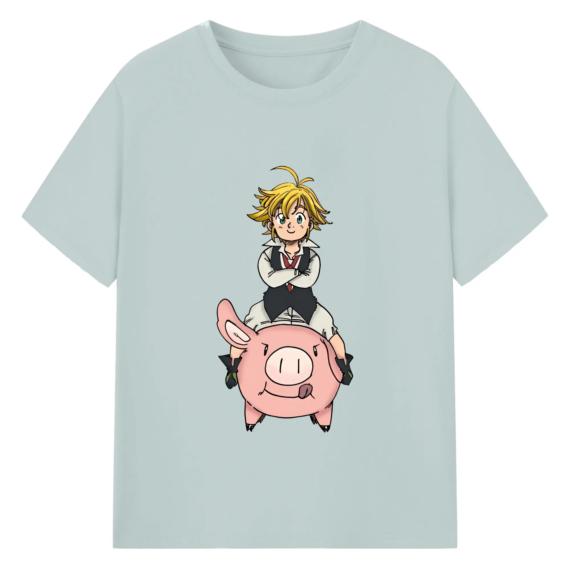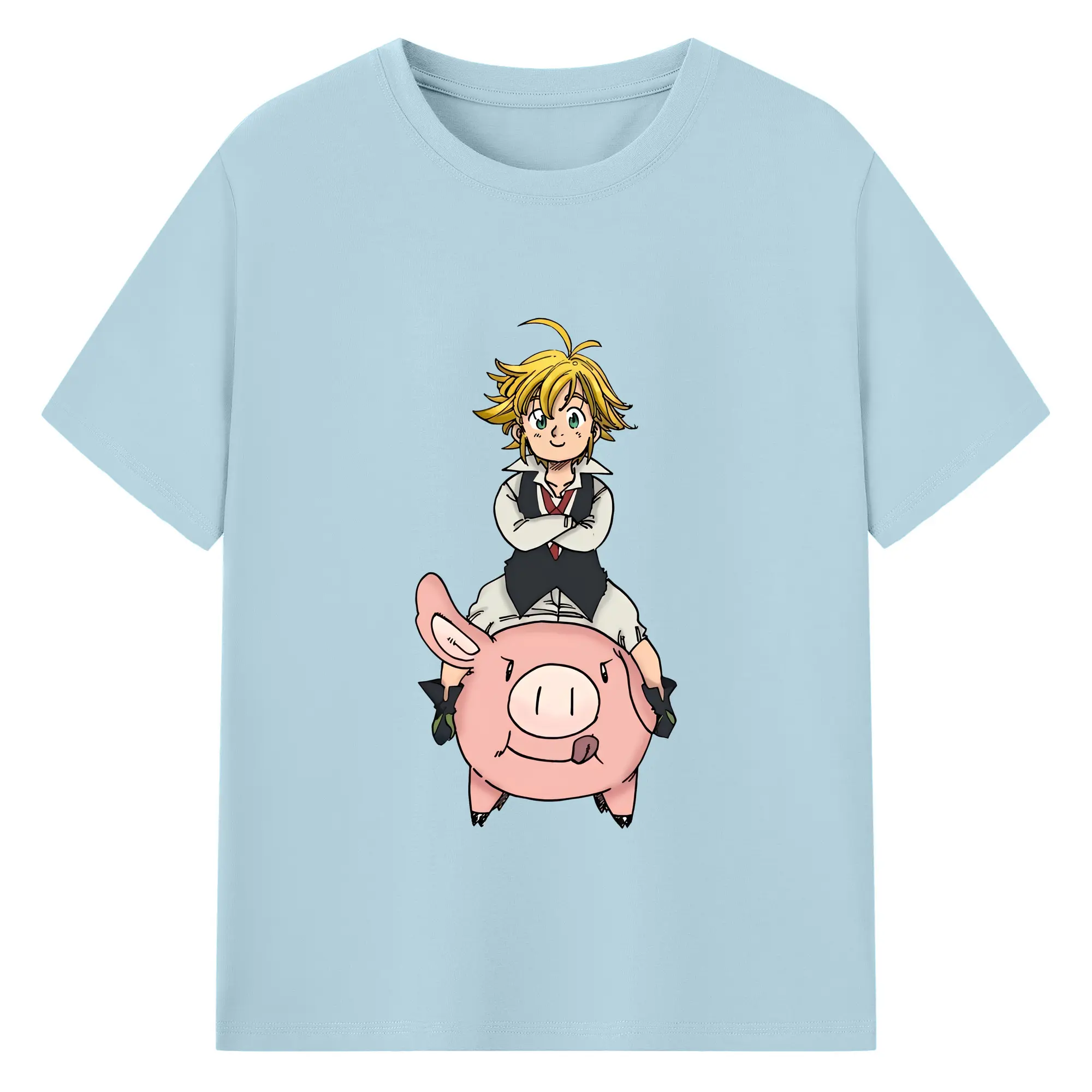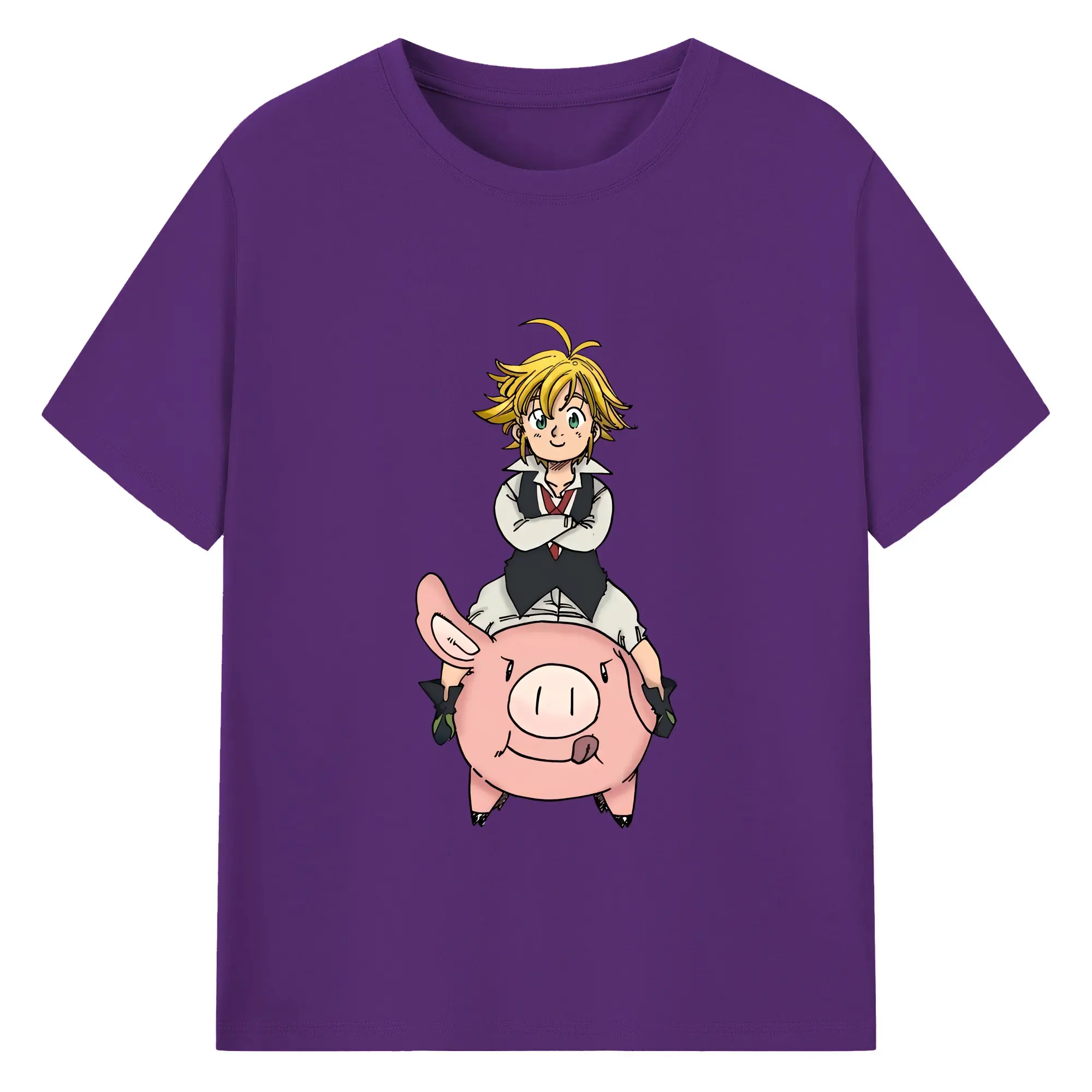 七つの大罪 グッズ メリオダス - 綿100% 半袖Tシャツ ・ バックプリント ・ 快適 通気性 ・ 日常使い 散歩 スポーツ用