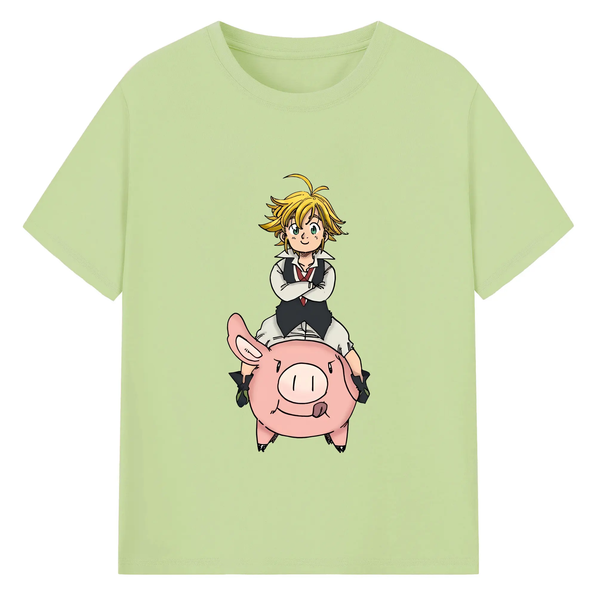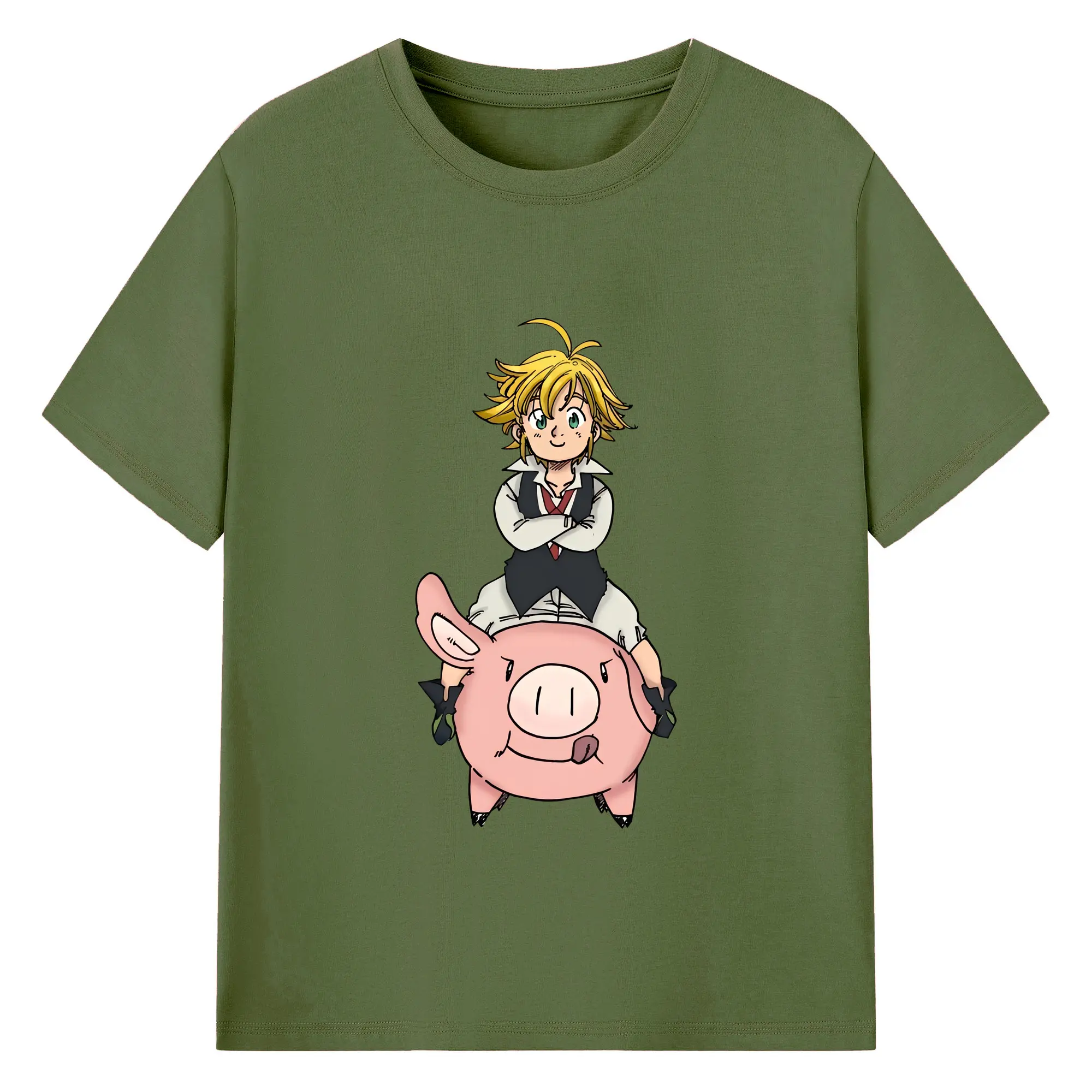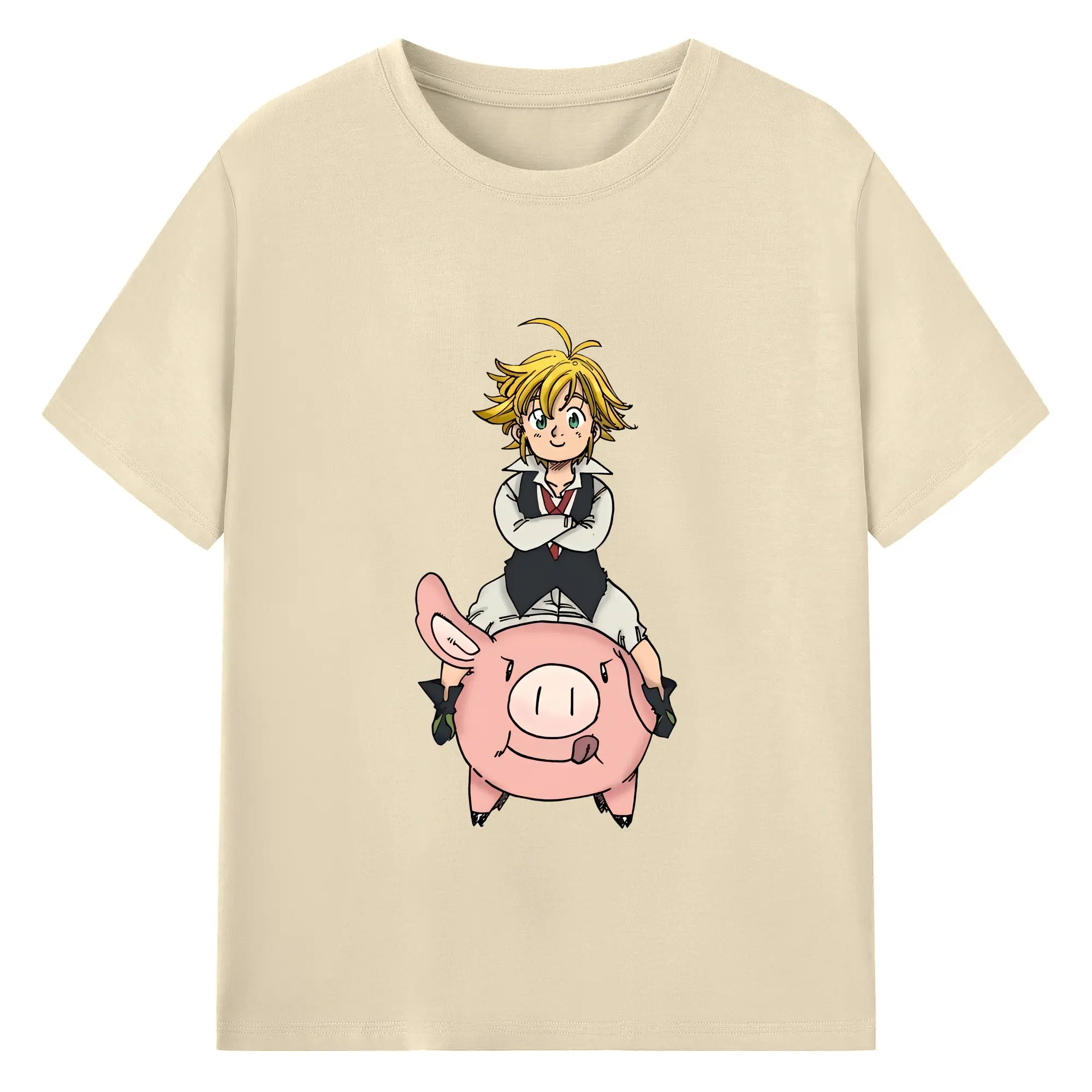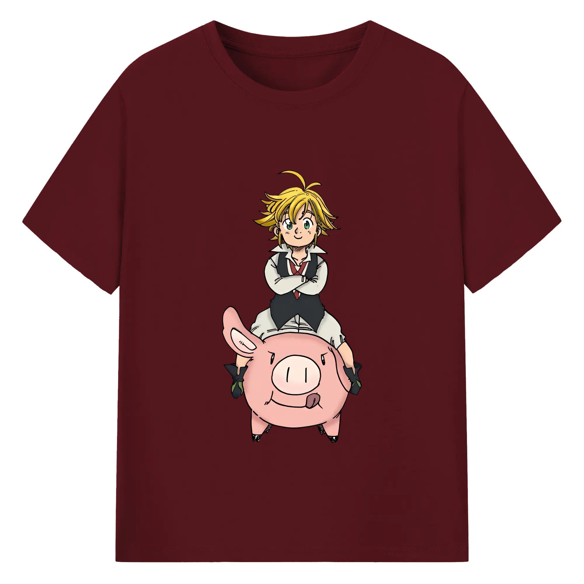 七つの大罪 グッズ メリオダス - 綿100% 半袖Tシャツ ・ バックプリント ・ 快適 通気性 ・ 日常使い 散歩 スポーツ用