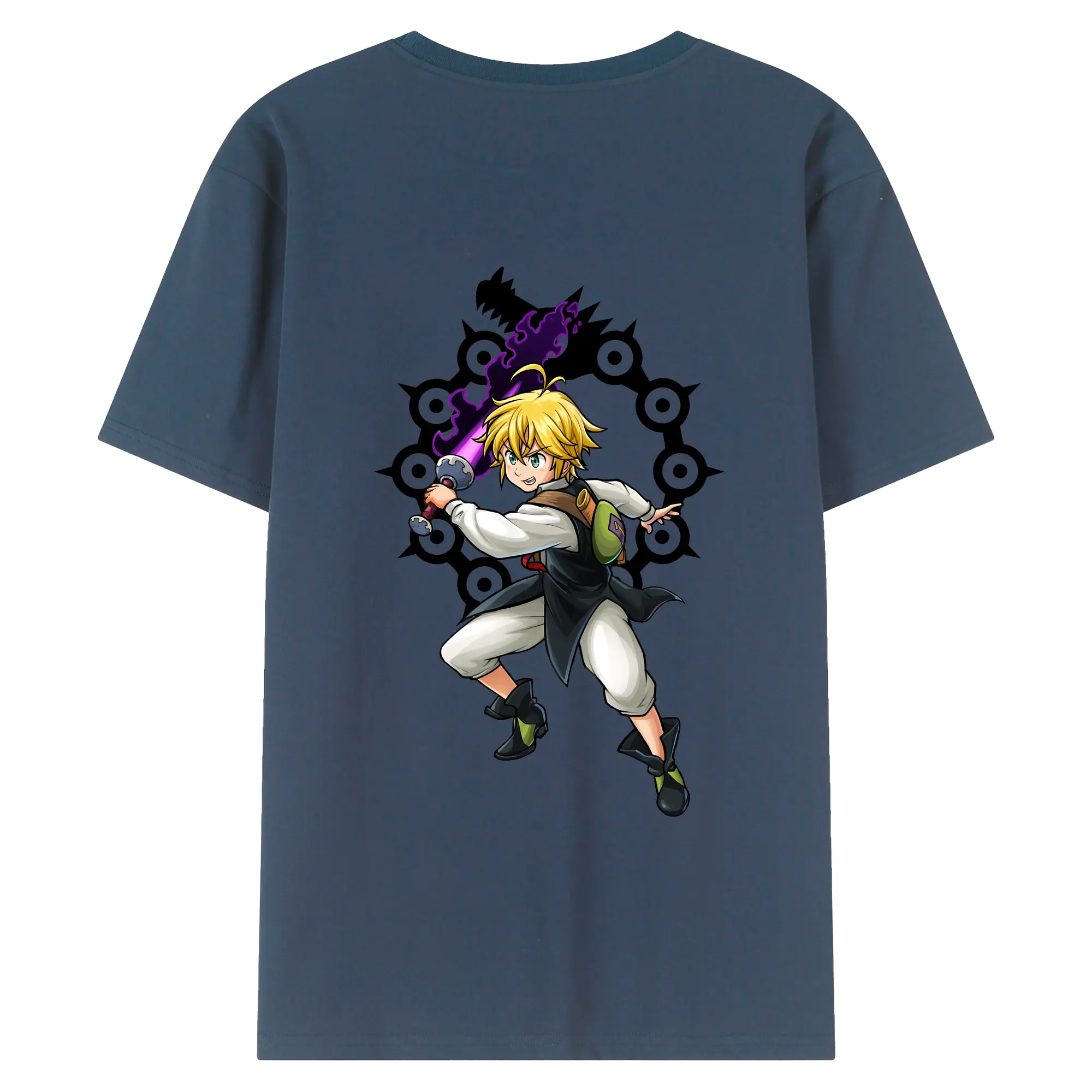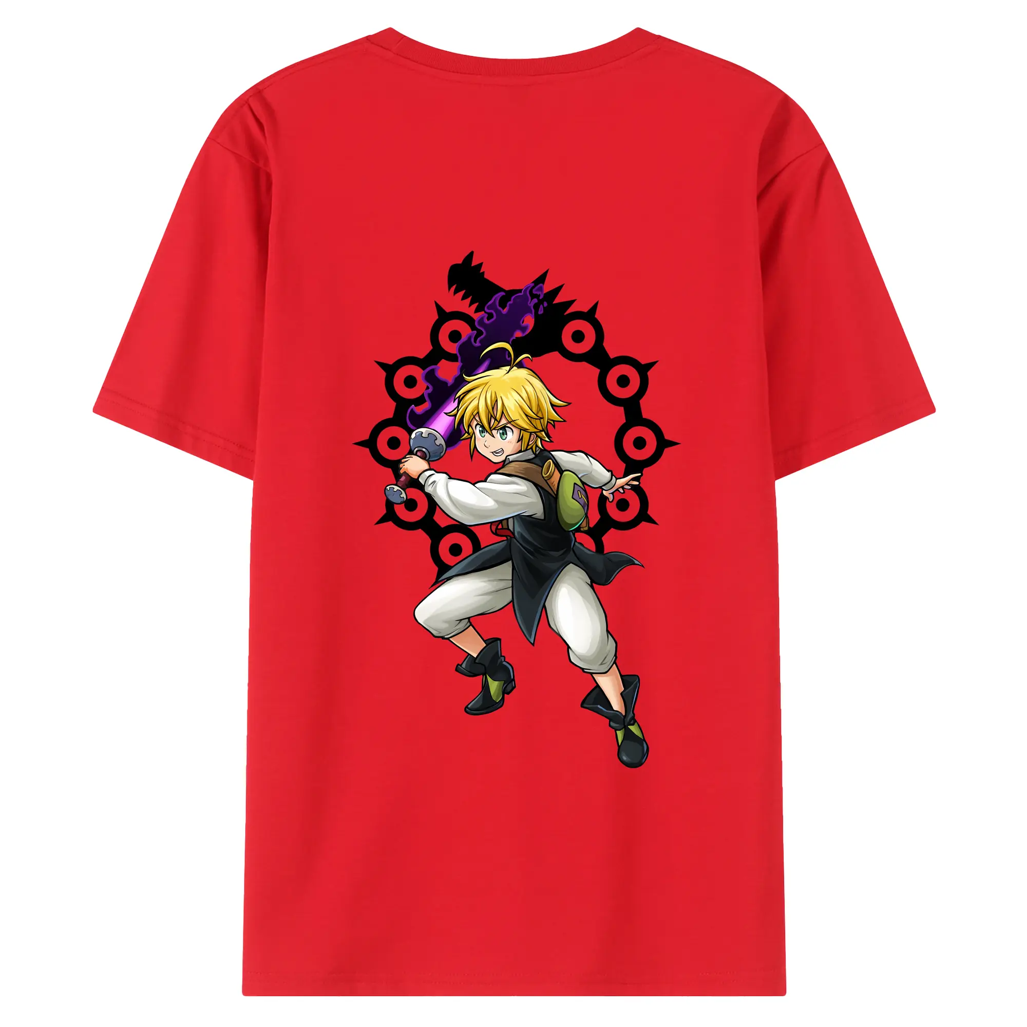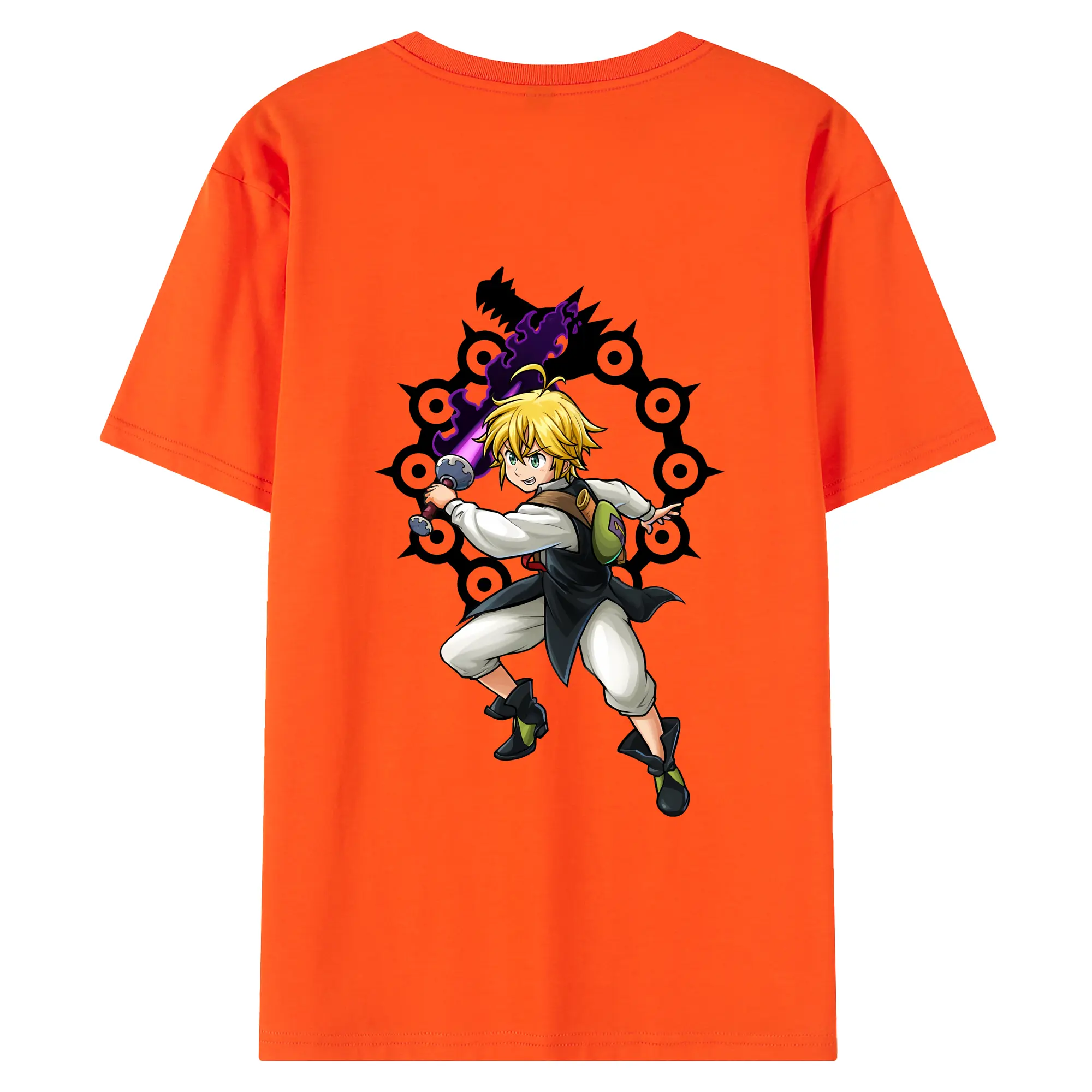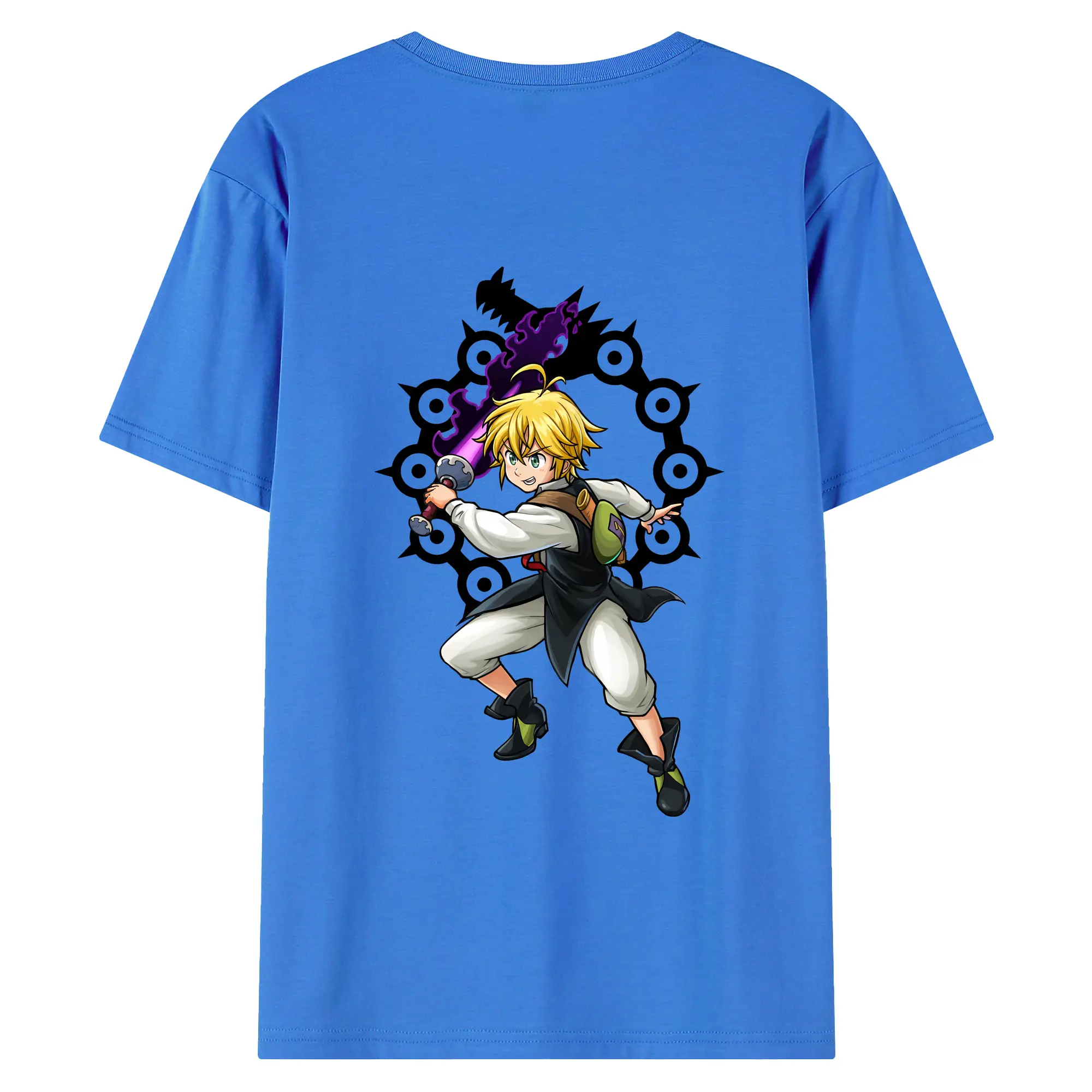 七つの大罪 グッズ メリオダス - 綿100% 半袖Tシャツ ・ フロントプリント ・ 快適 通気性 ・ 日常使い 散歩 スポーツ用