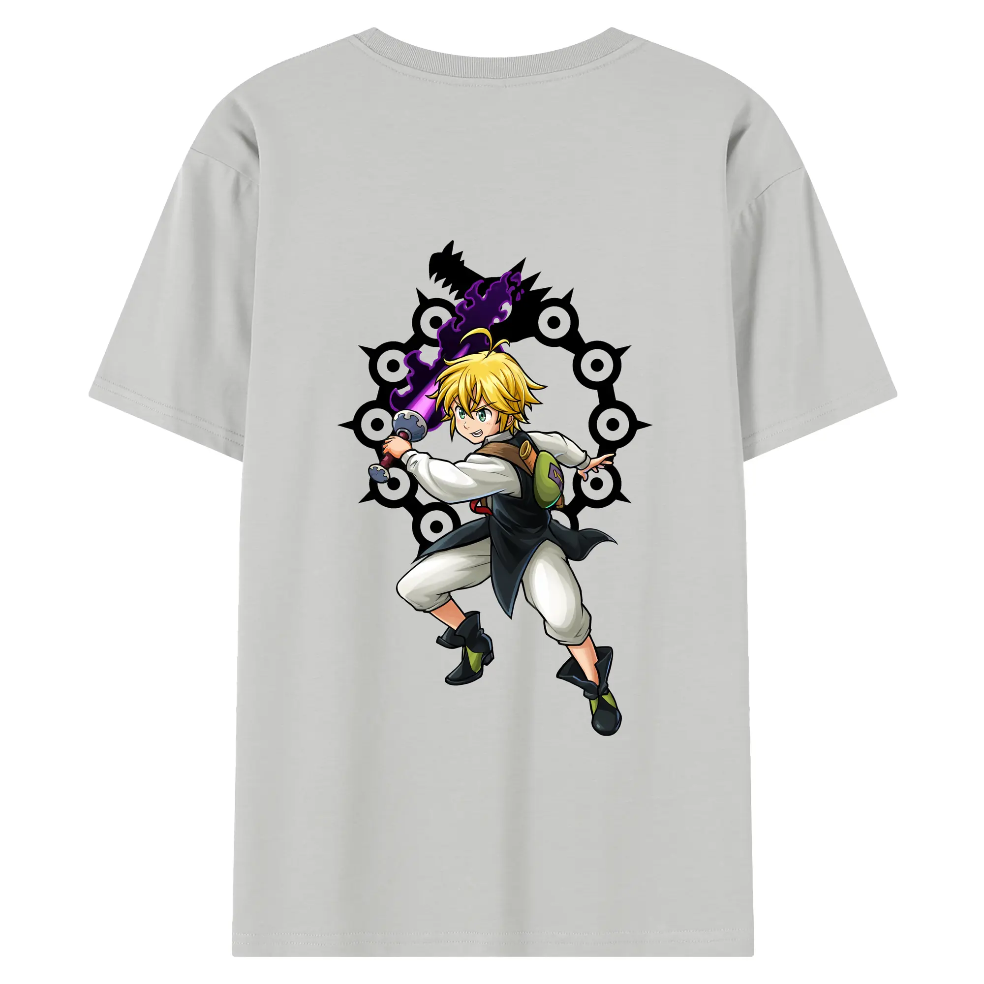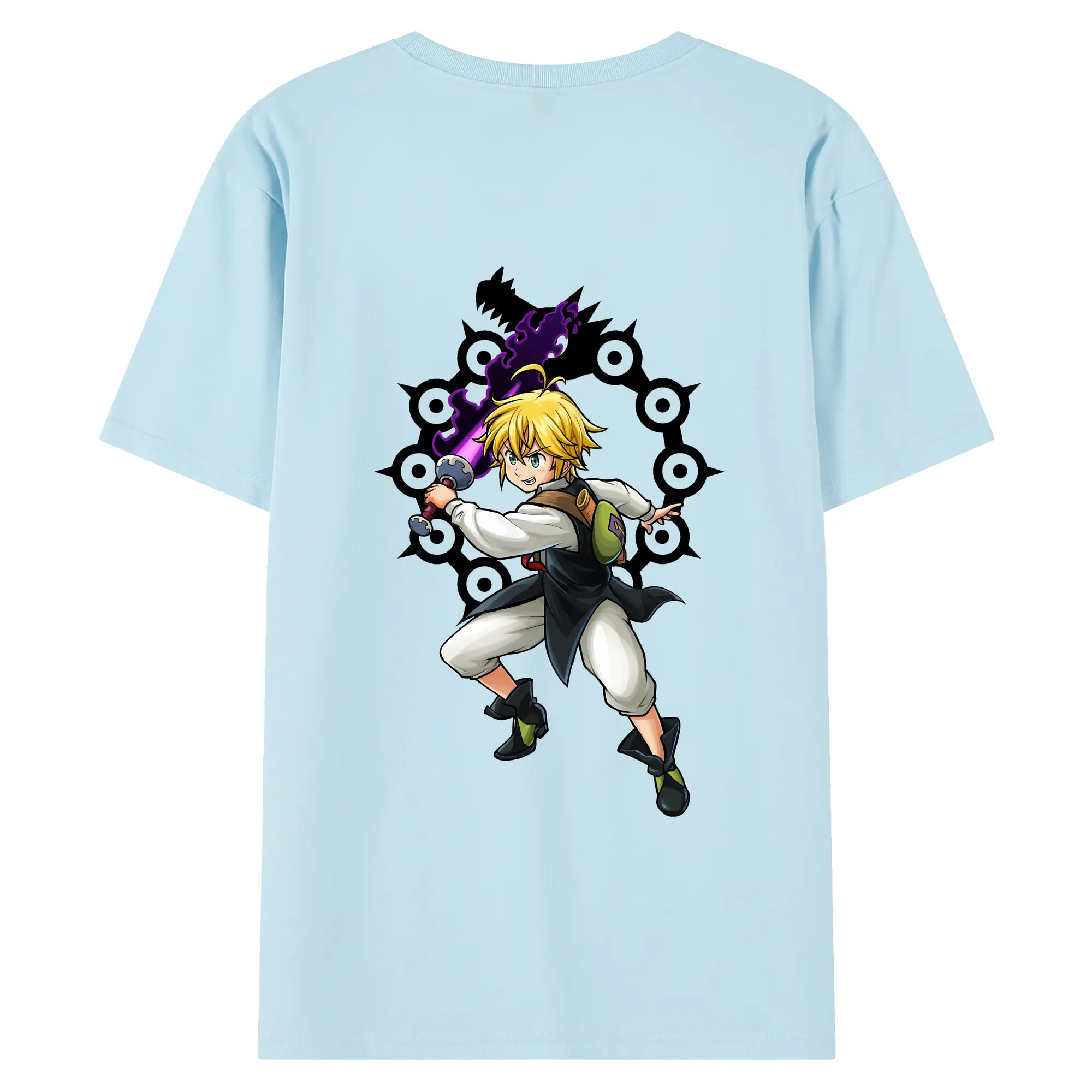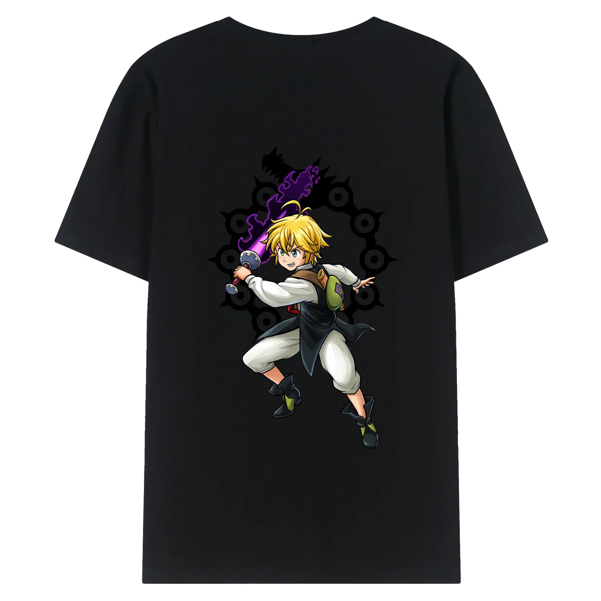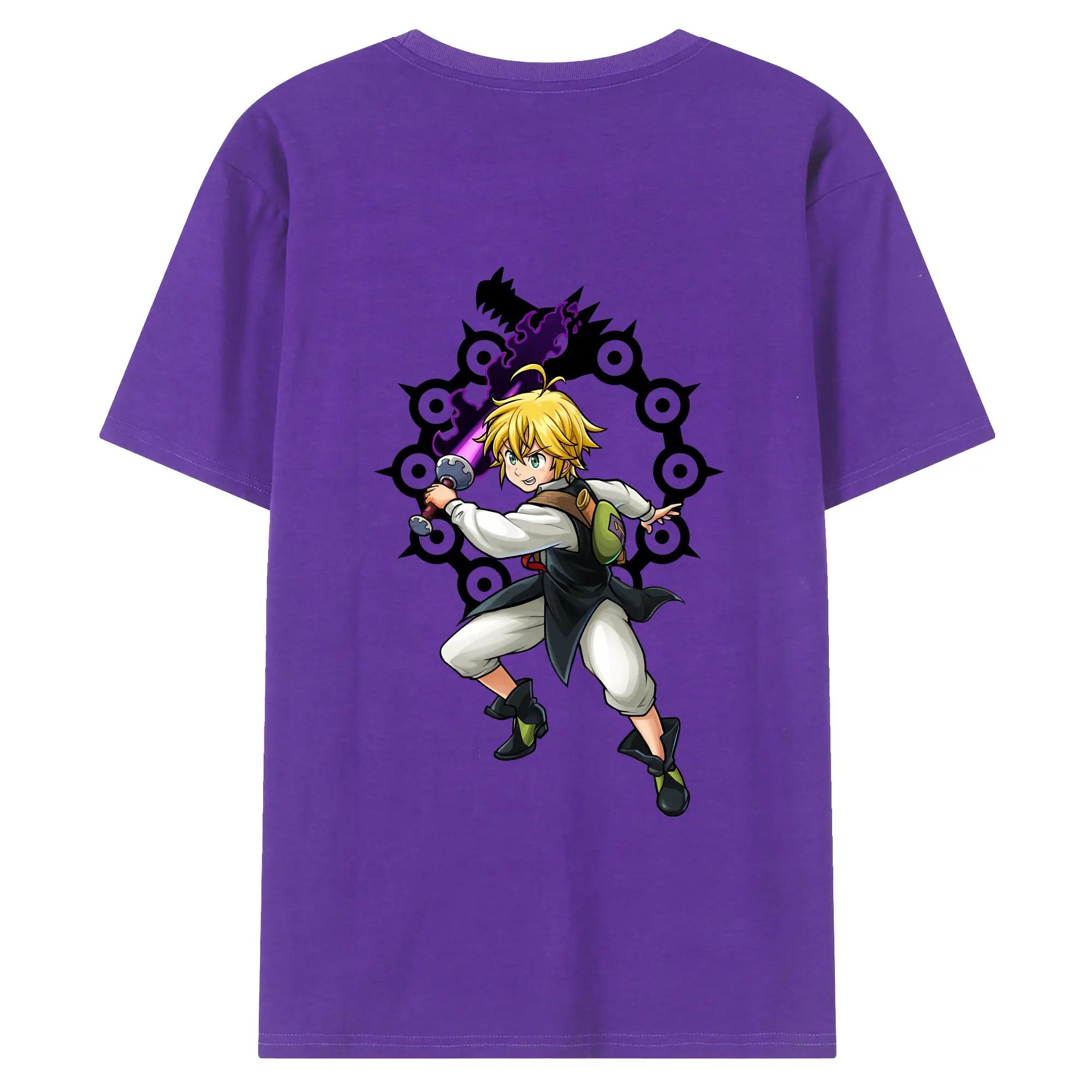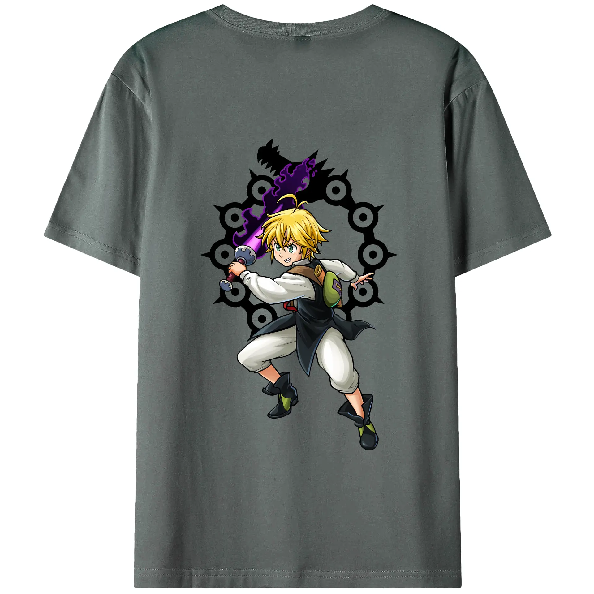 七つの大罪 グッズ メリオダス - 綿100% 半袖Tシャツ ・ フロントプリント ・ 快適 通気性 ・ 日常使い 散歩 スポーツ用