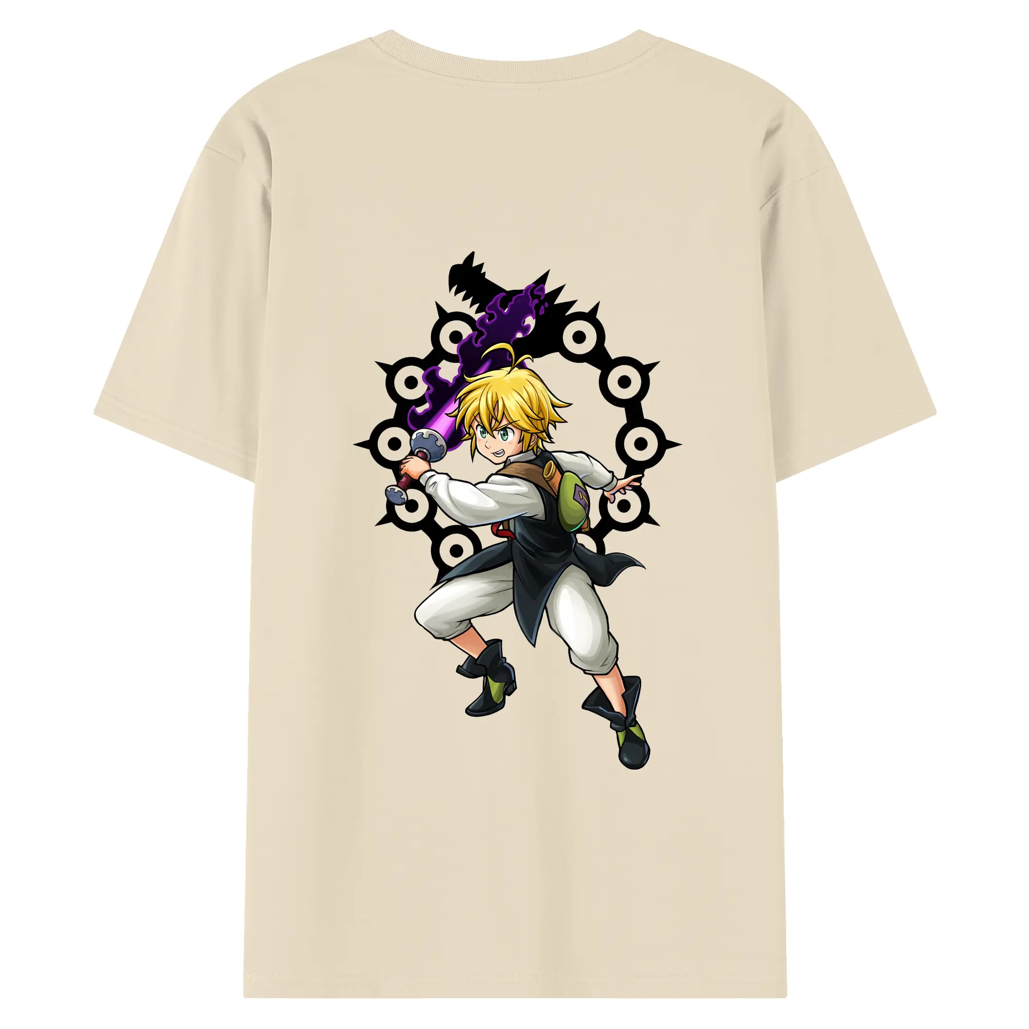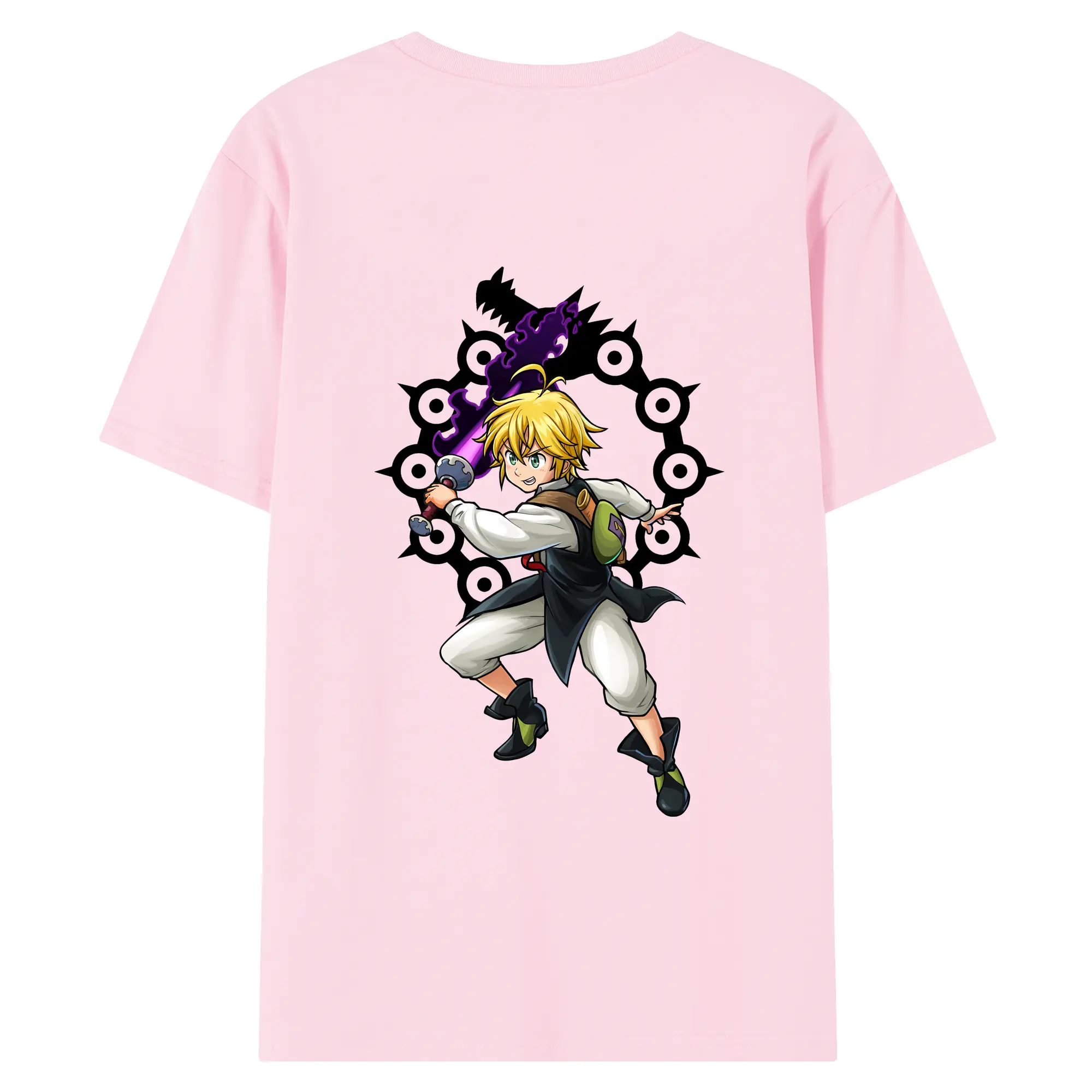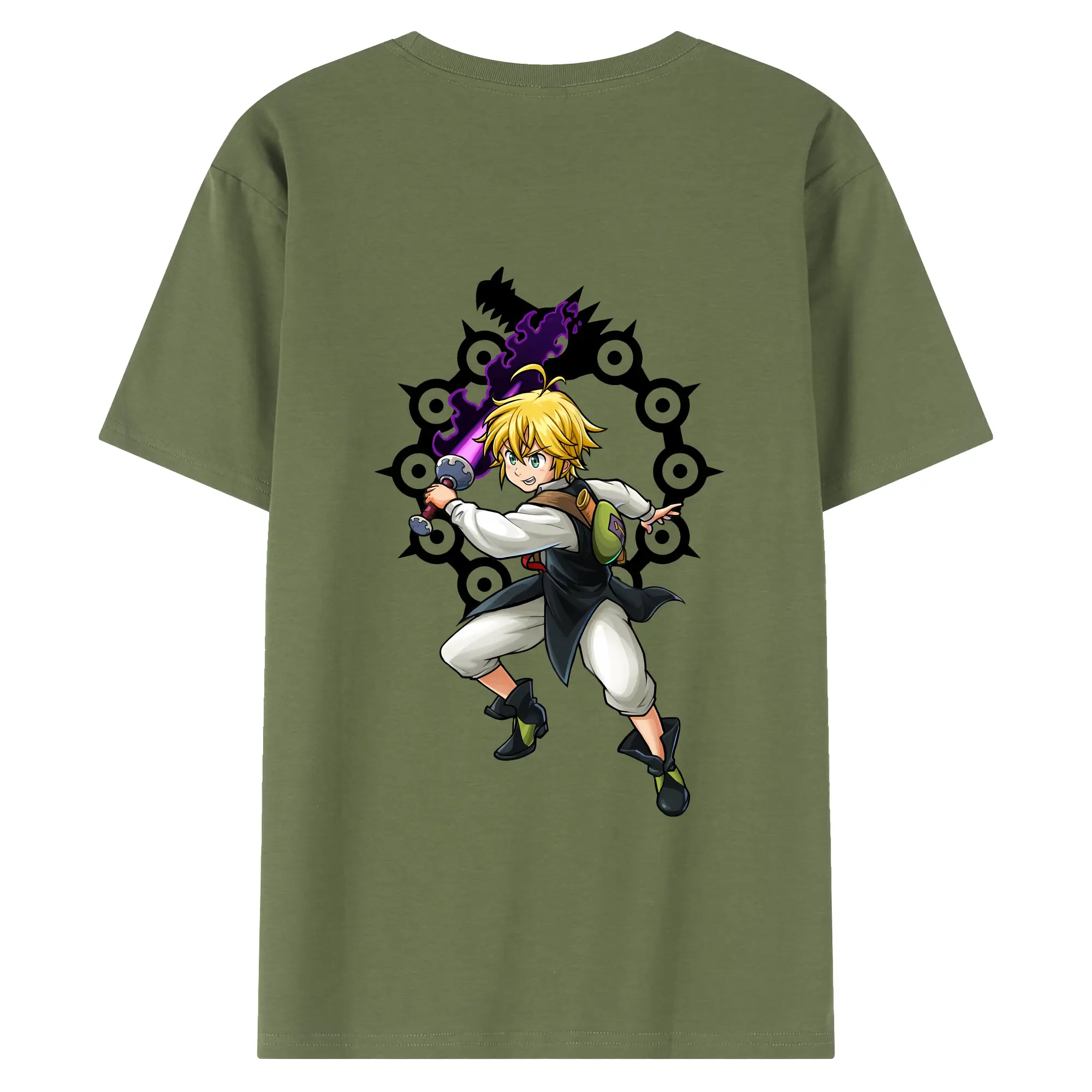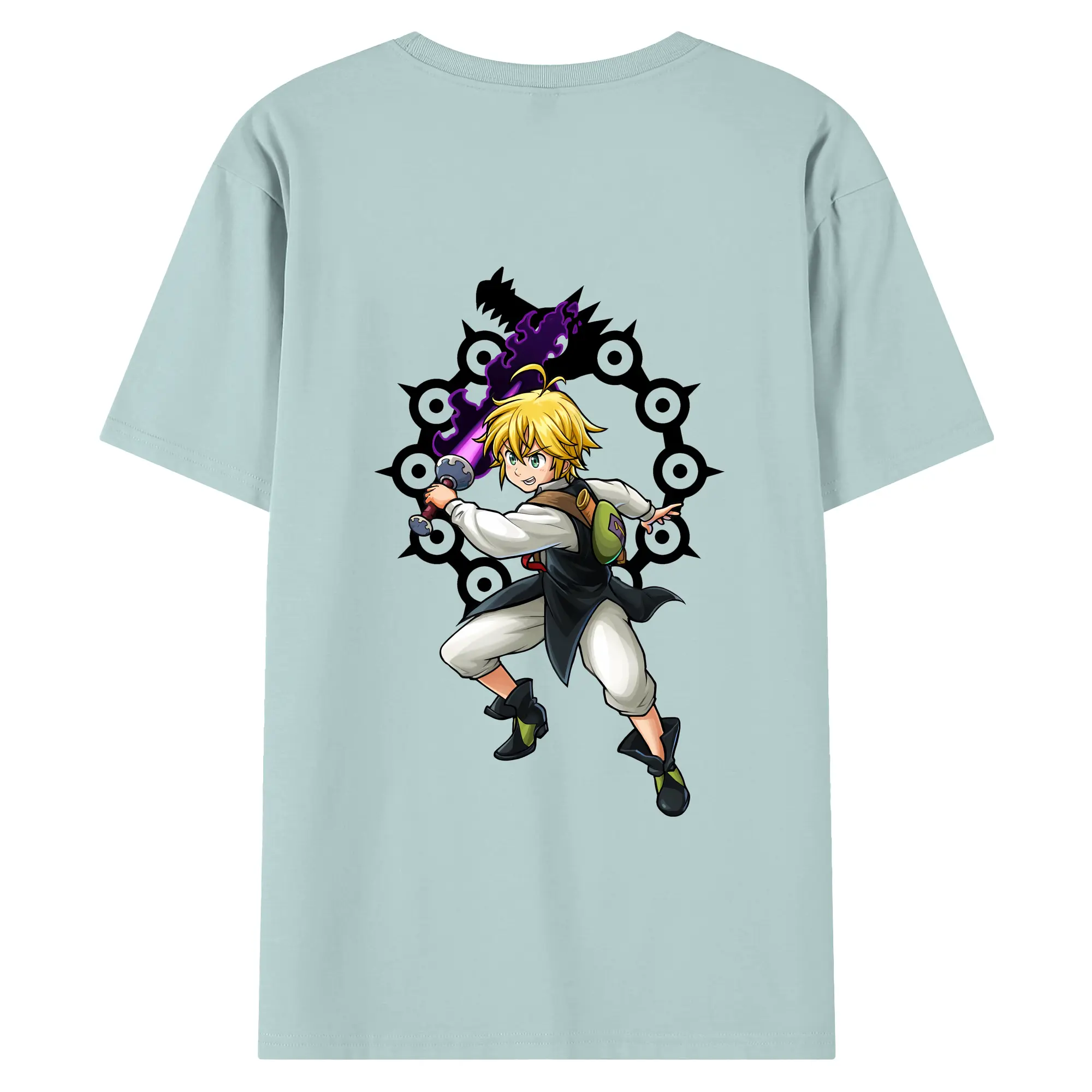 七つの大罪 グッズ メリオダス - 綿100% 半袖Tシャツ ・ フロントプリント ・ 快適 通気性 ・ 日常使い 散歩 スポーツ用
