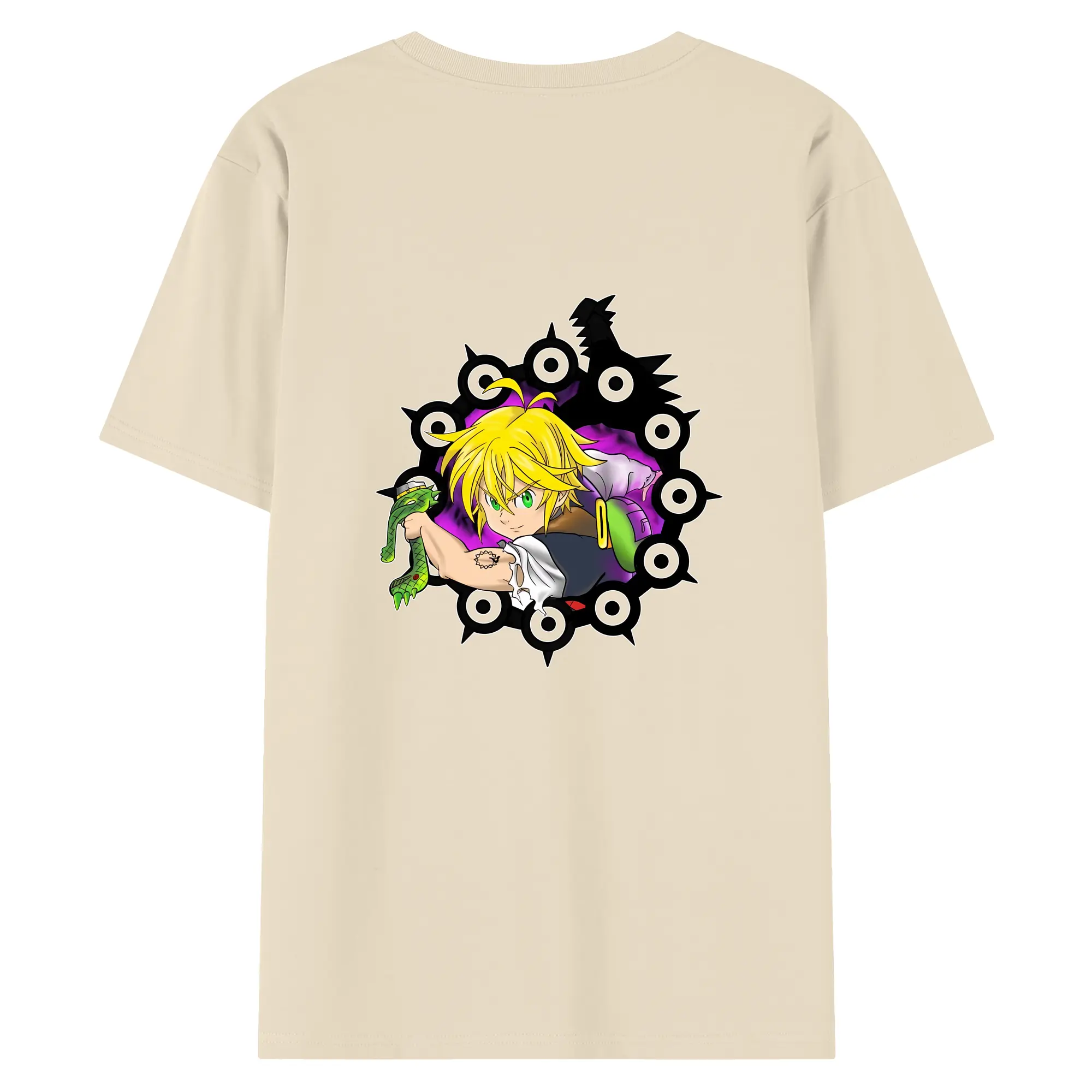 七つの大罪 グッズ メリオダス - 綿100% ヴィンテージ風 半袖Tシャツ ・ 背面プリント ・ 柔らか肌触り ・ 通気性 快適 ・ スポーツ カジュアル 外出用