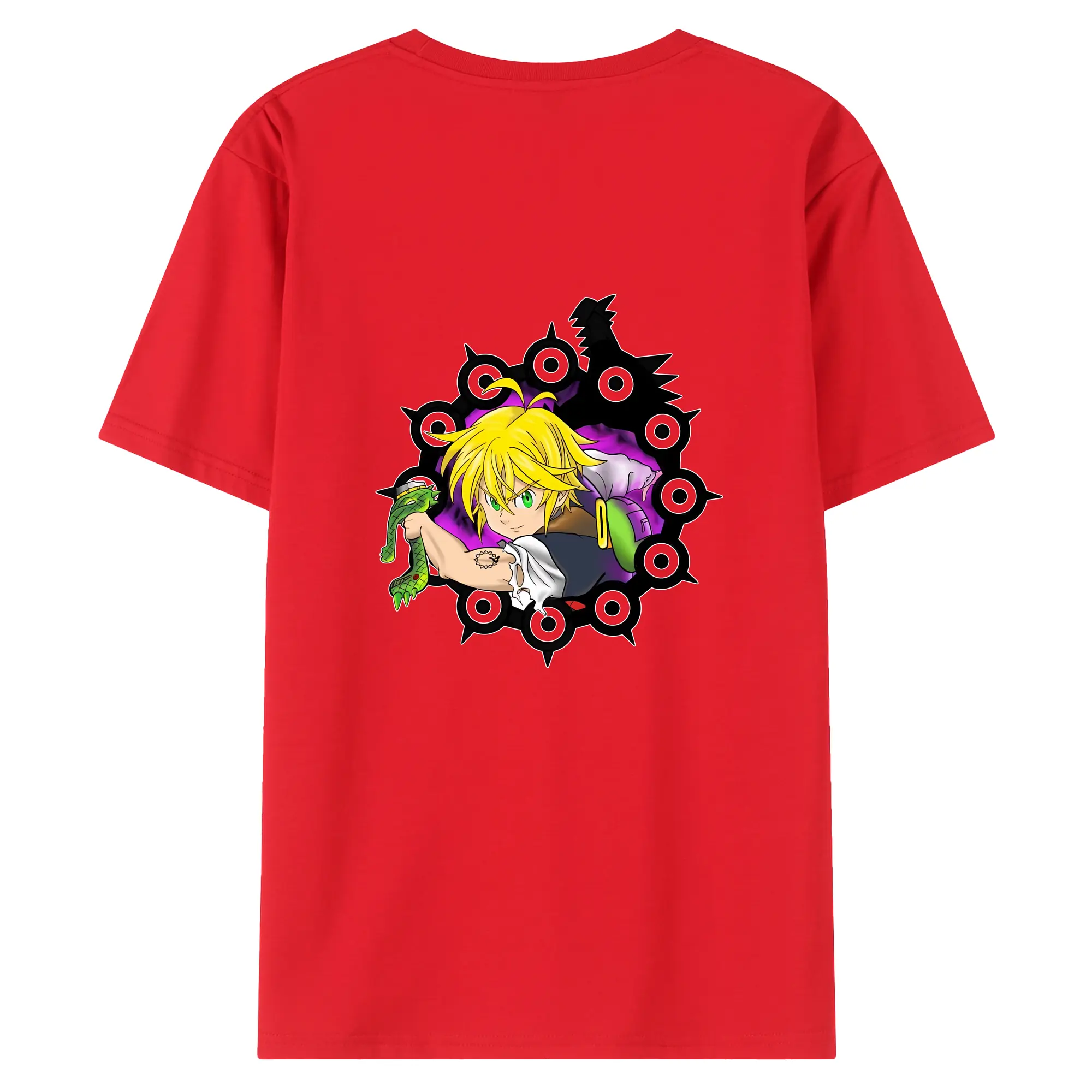 七つの大罪 グッズ メリオダス - 綿100% 半袖Tシャツ ・ フロントプリント ・ 快適 通気性 ・ 日常使い 散歩 スポーツ用