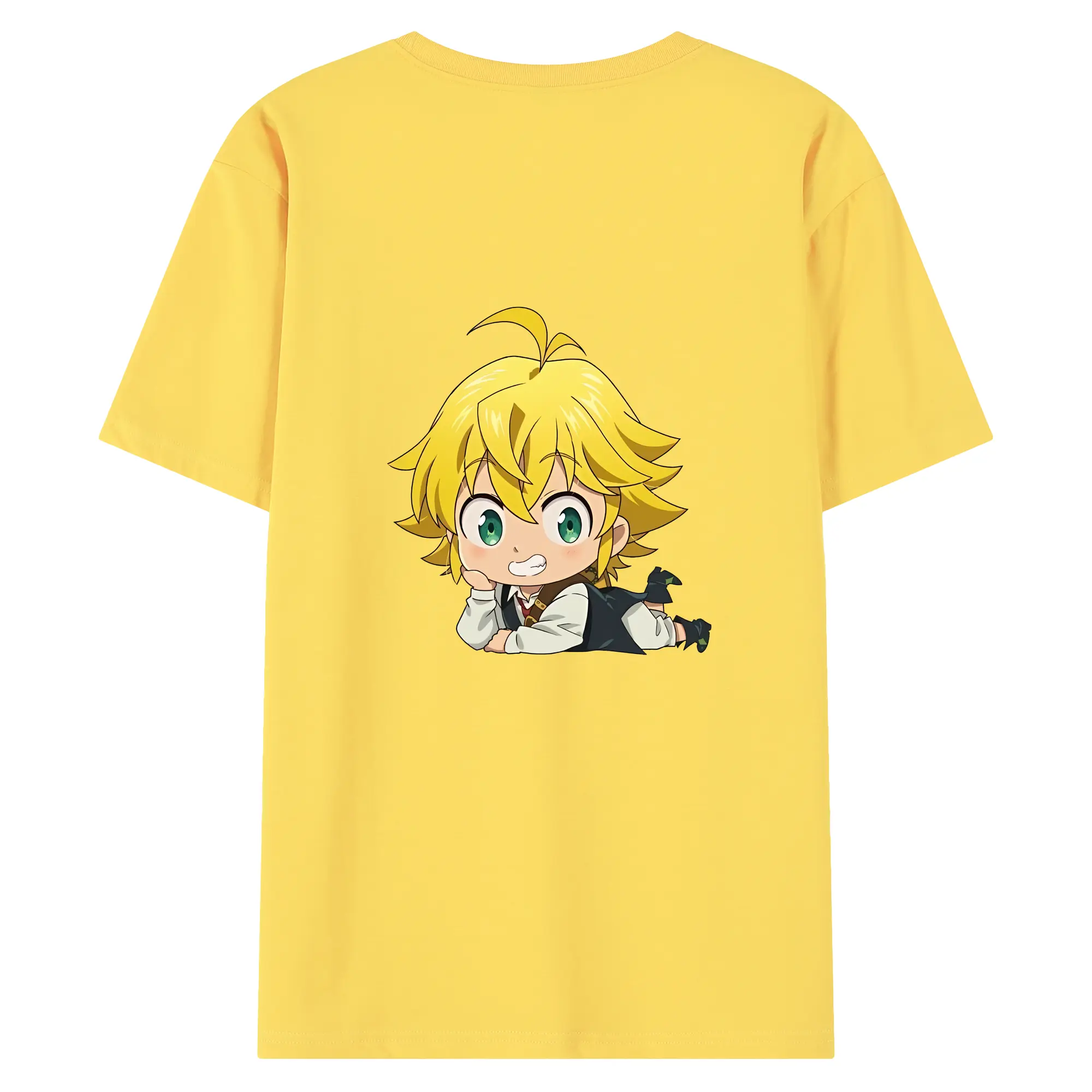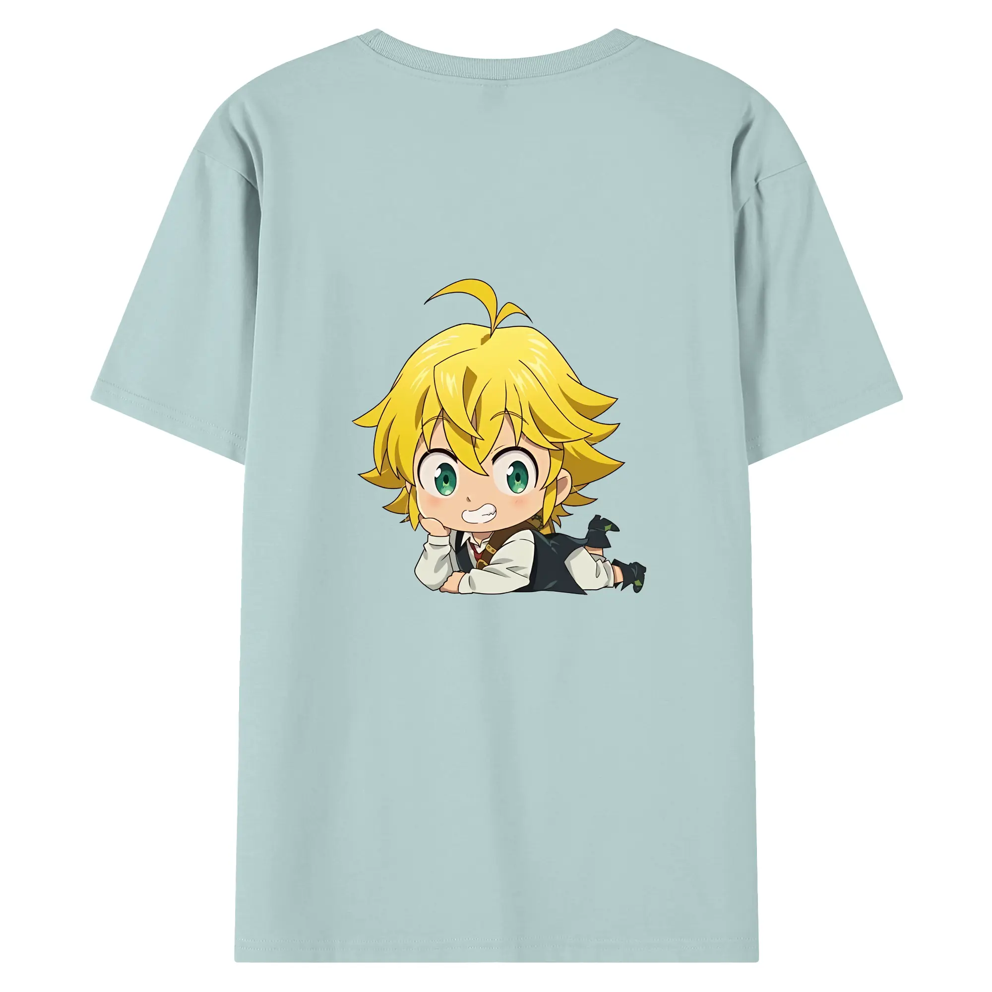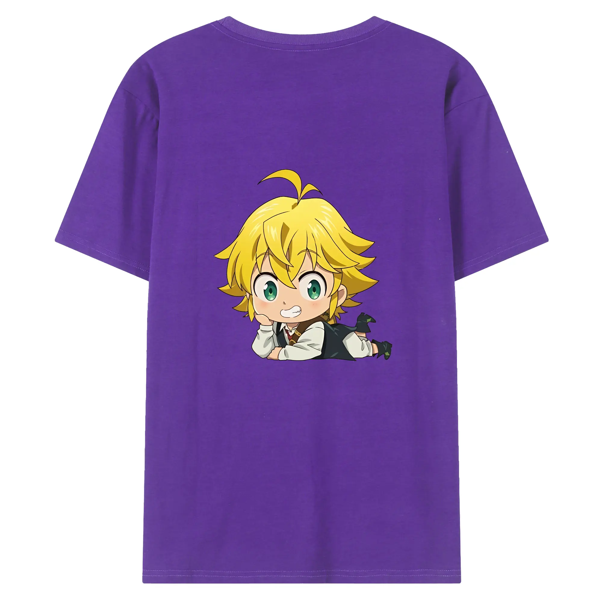 七つの大罪 グッズ メリオダス - 綿100% 半袖Tシャツ ・ フロントプリント ・ 快適 通気性 ・ 日常使い 散歩 スポーツ用