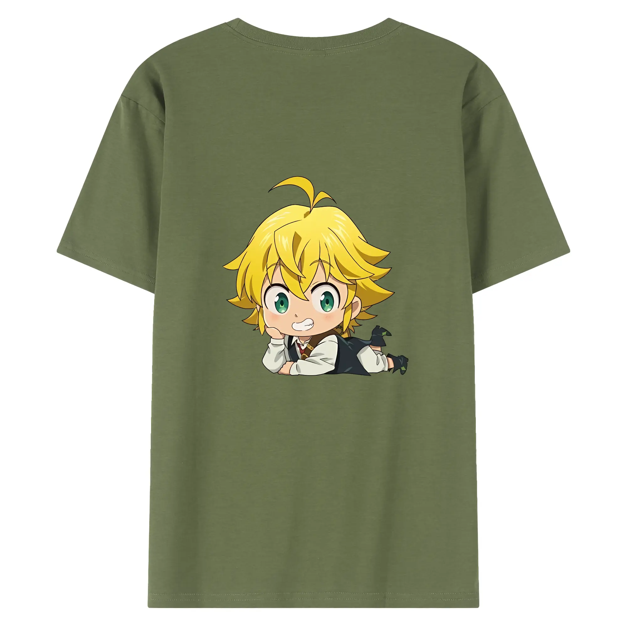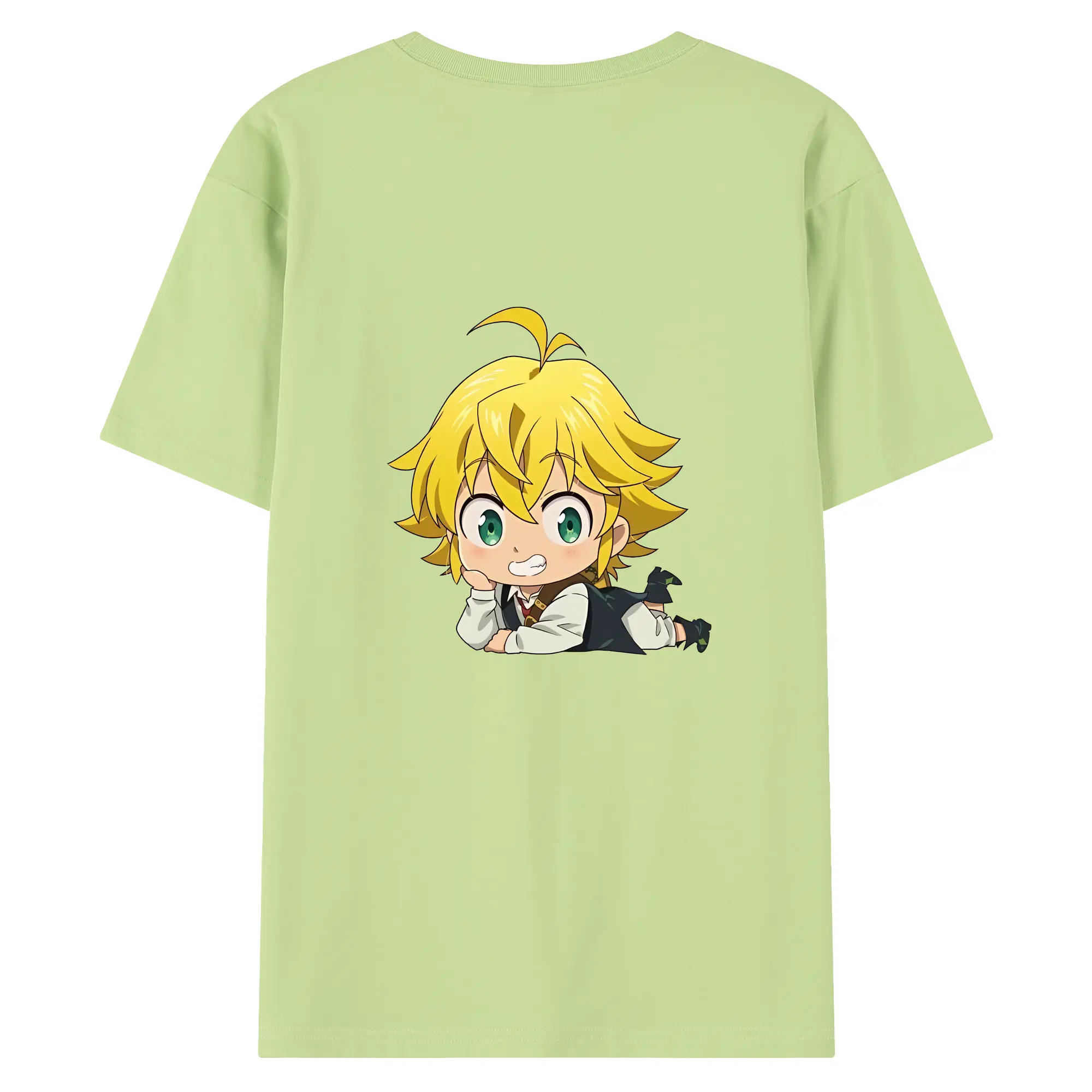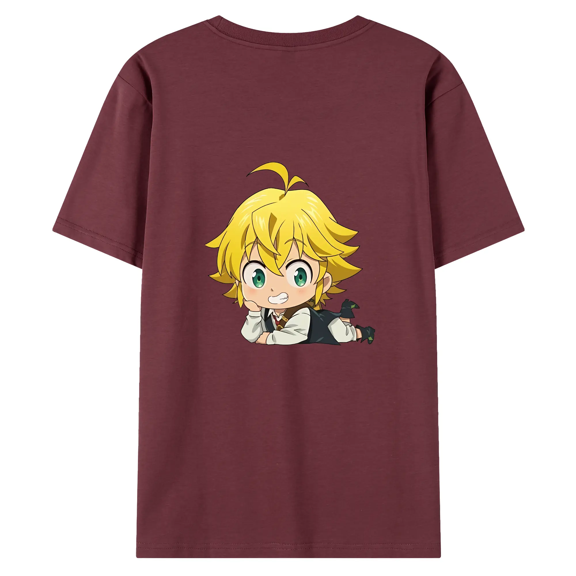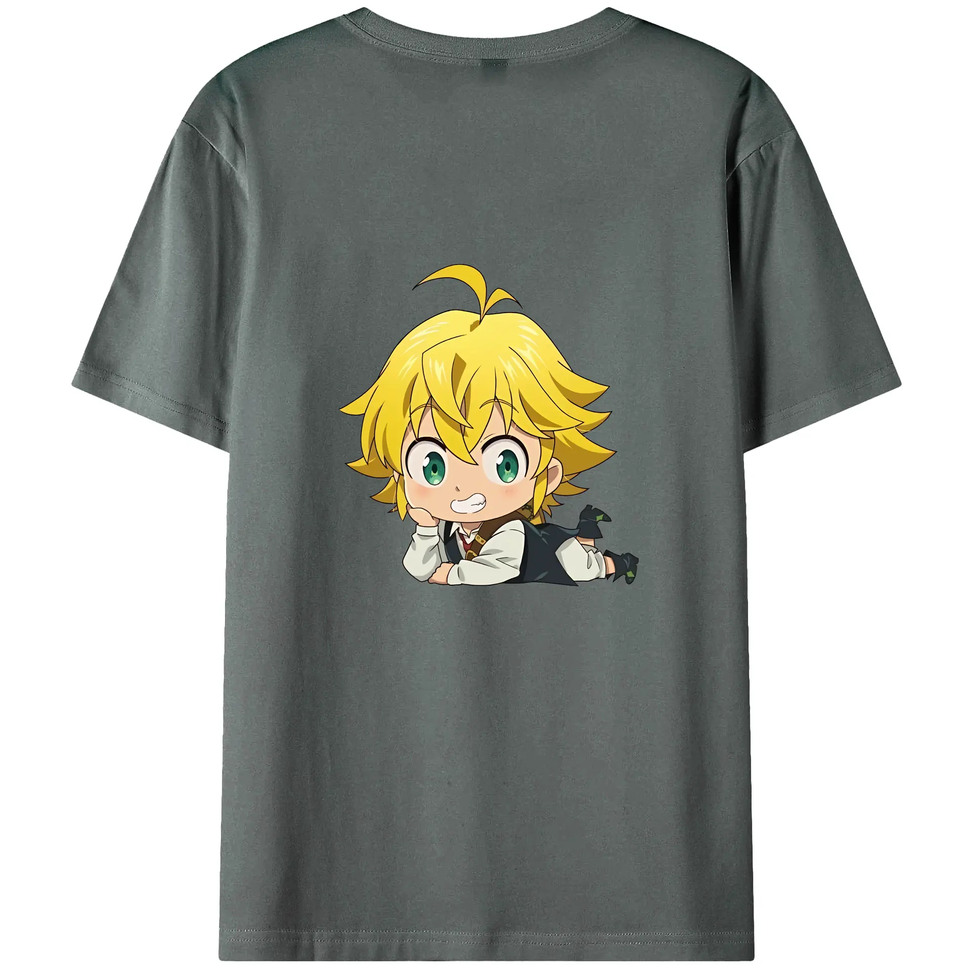 七つの大罪 グッズ メリオダス - 綿100% 半袖Tシャツ ・ フロントプリント ・ 快適 通気性 ・ 日常使い 散歩 スポーツ用
