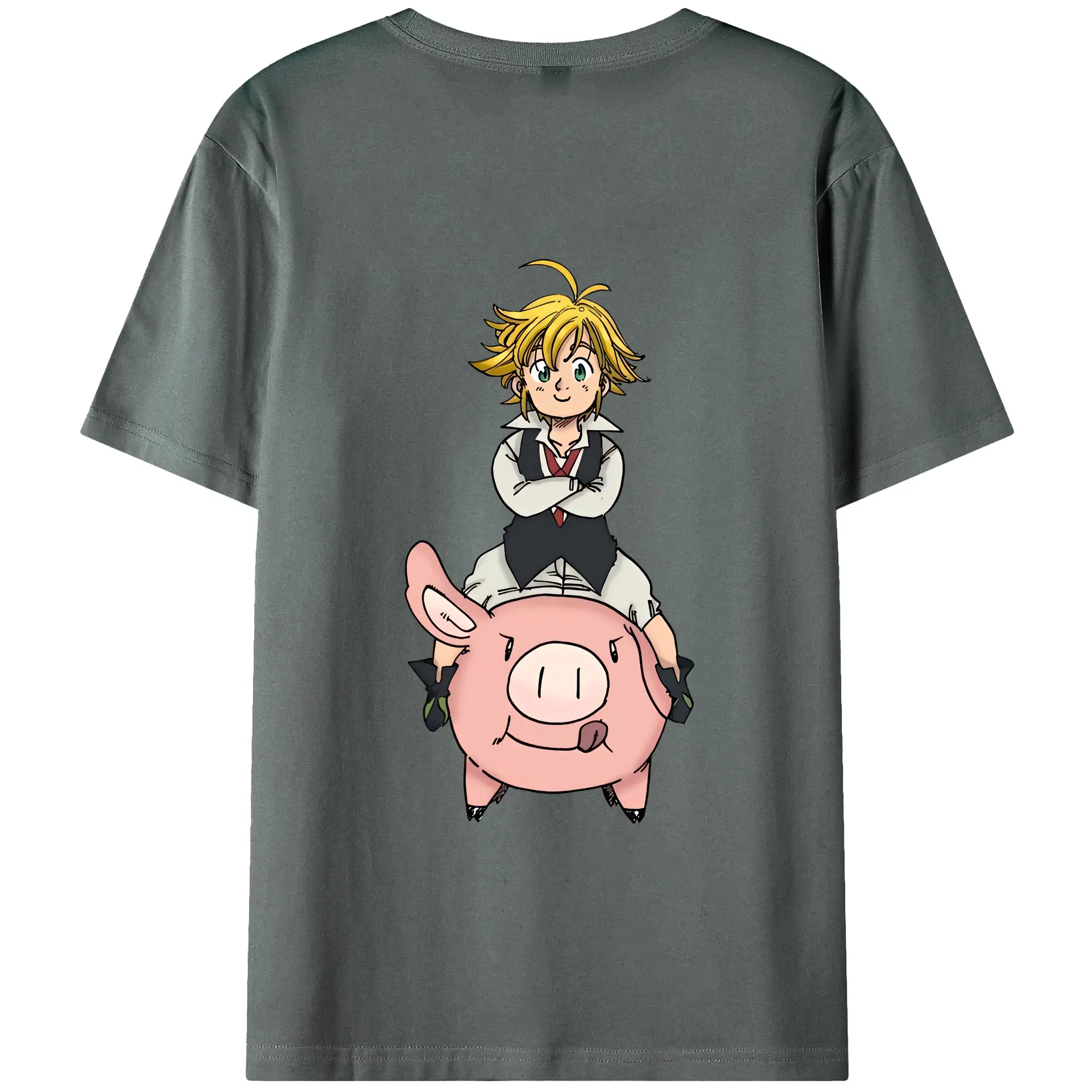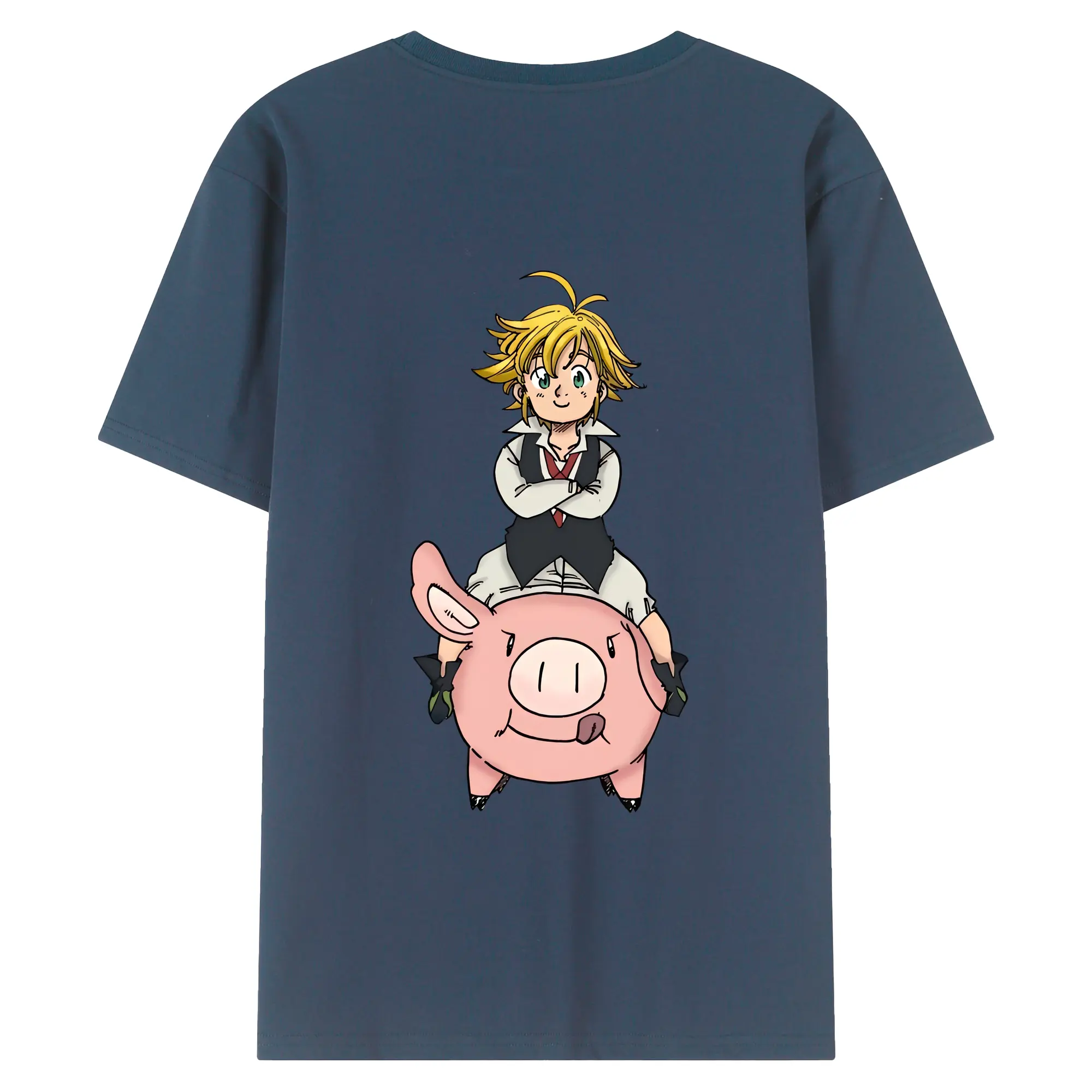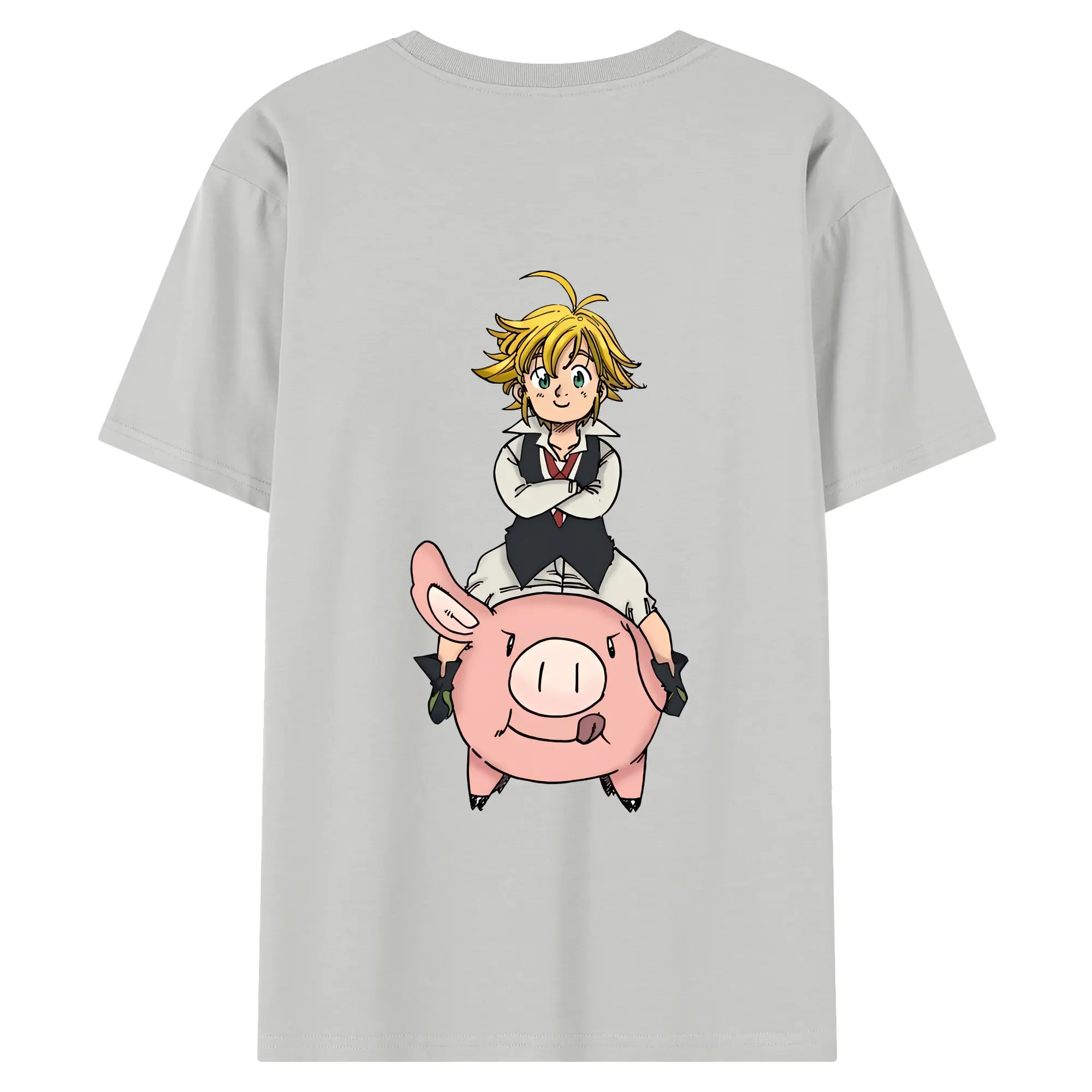 七つの大罪 グッズ メリオダス - 綿100% ヴィンテージ風 半袖Tシャツ ・ 背面プリント ・ 柔らか肌触り ・ 通気性 快適 ・ スポーツ カジュアル 外出用