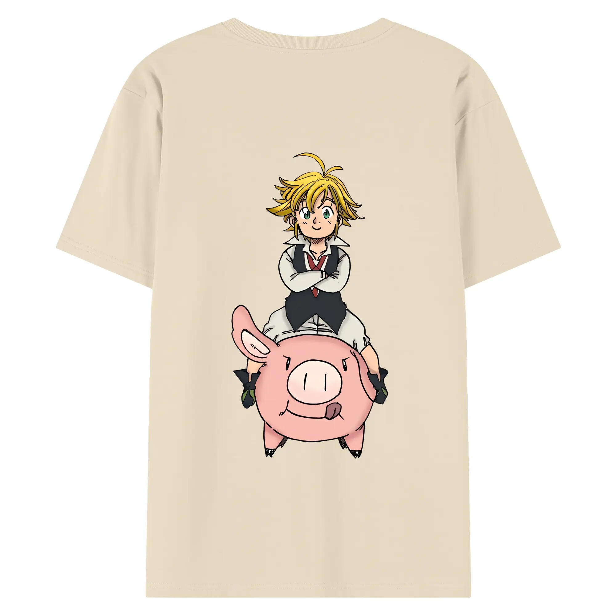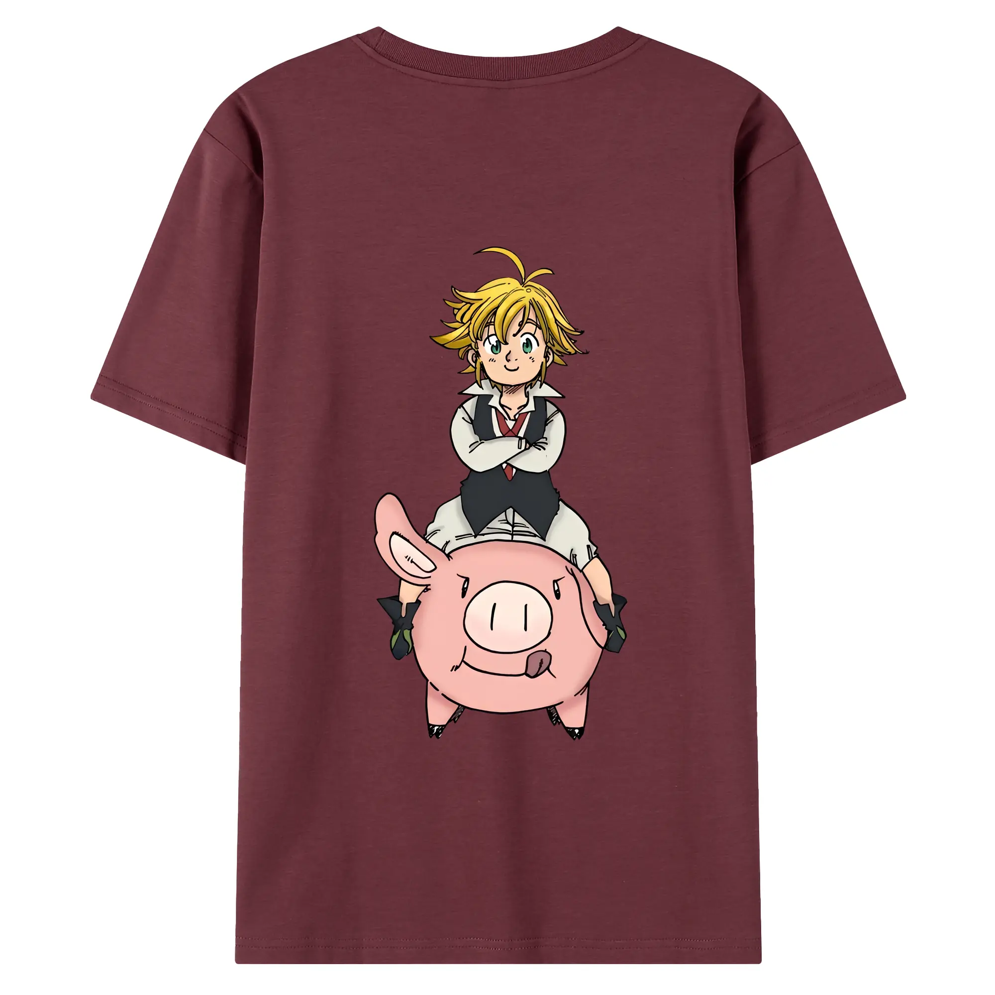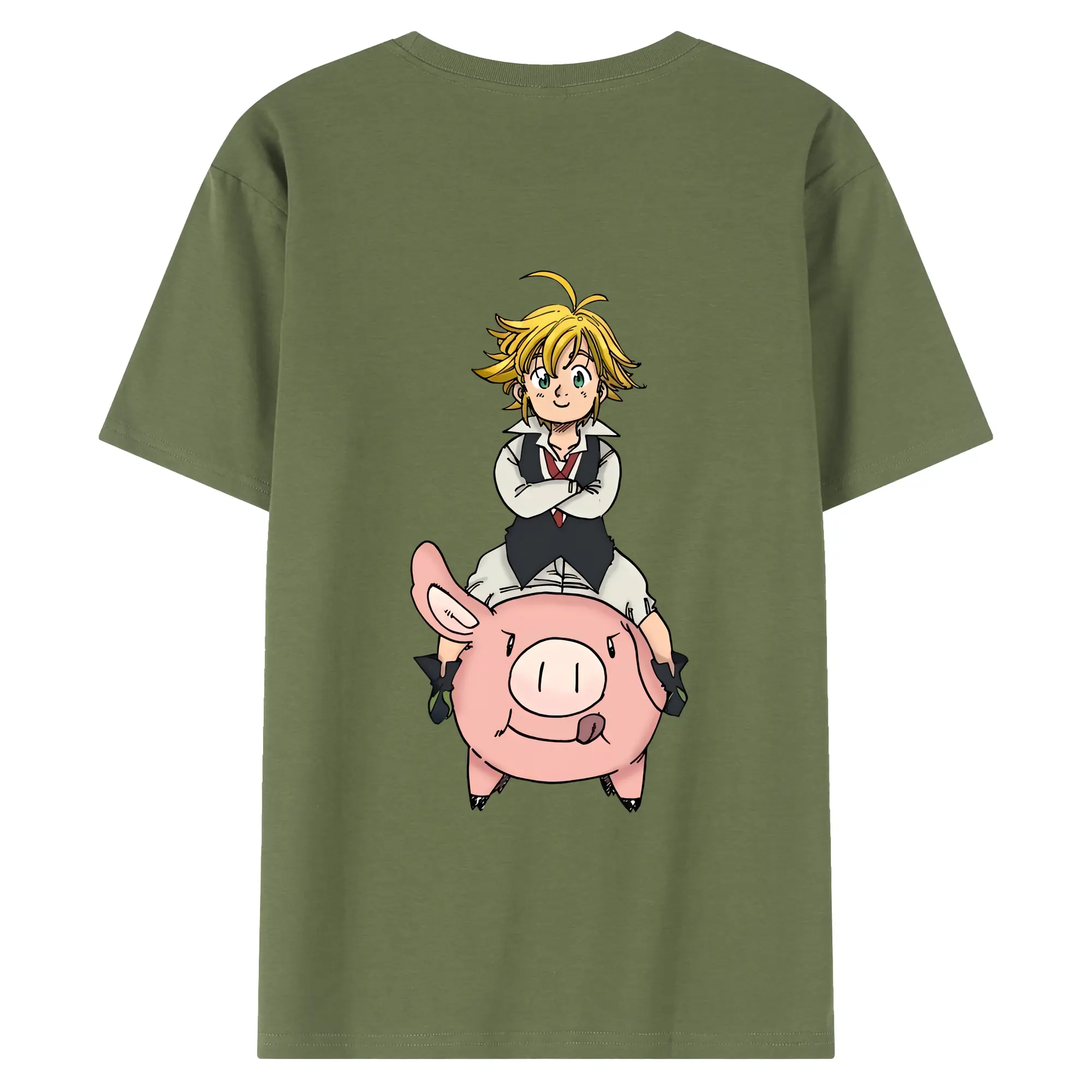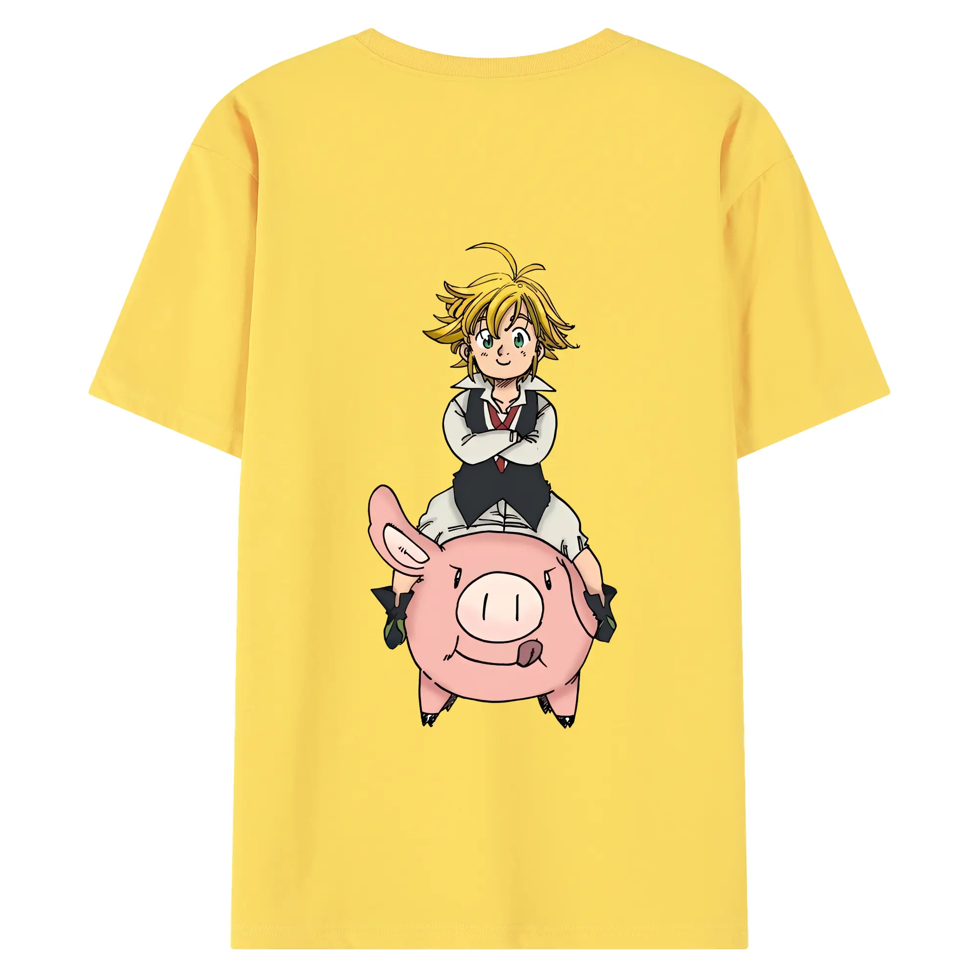 七つの大罪 グッズ メリオダス - 綿100% ヴィンテージ風 半袖Tシャツ ・ 背面プリント ・ 柔らか肌触り ・ 通気性 快適 ・ スポーツ カジュアル 外出用