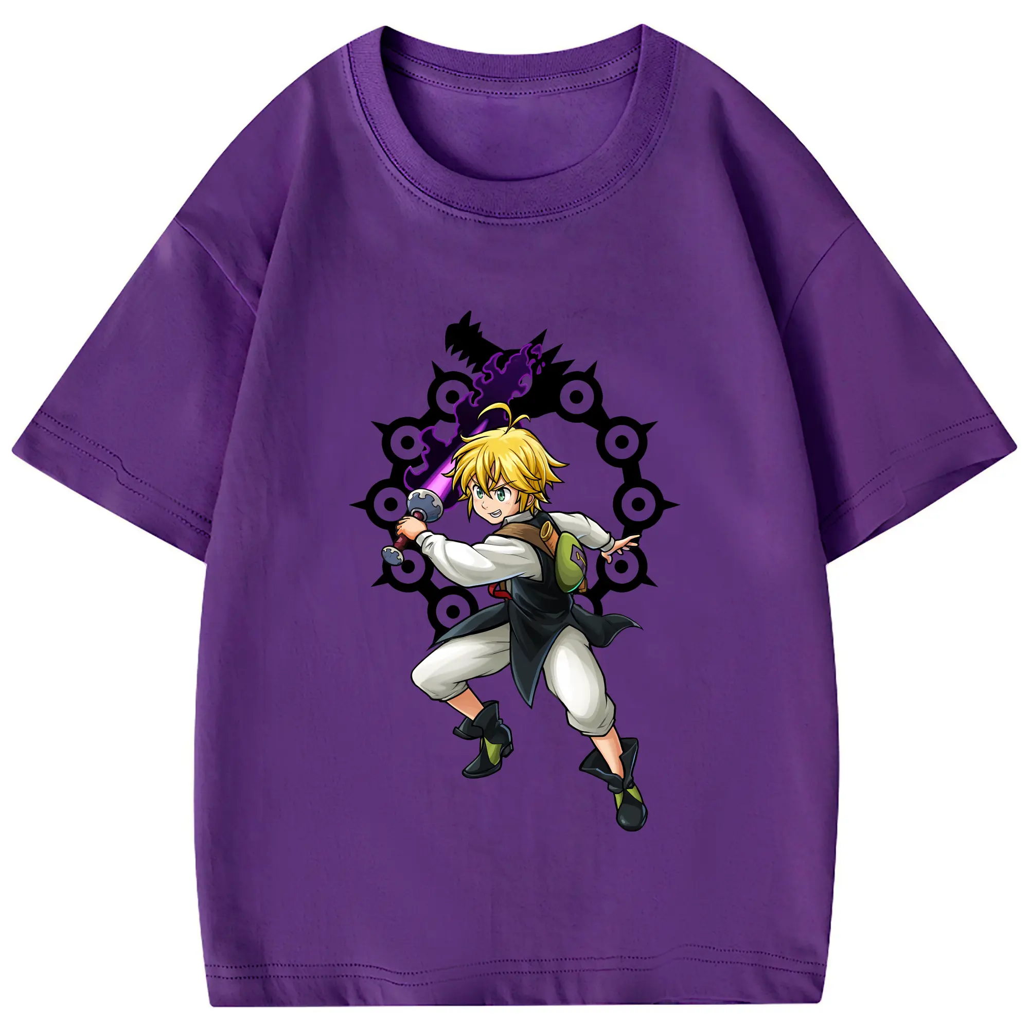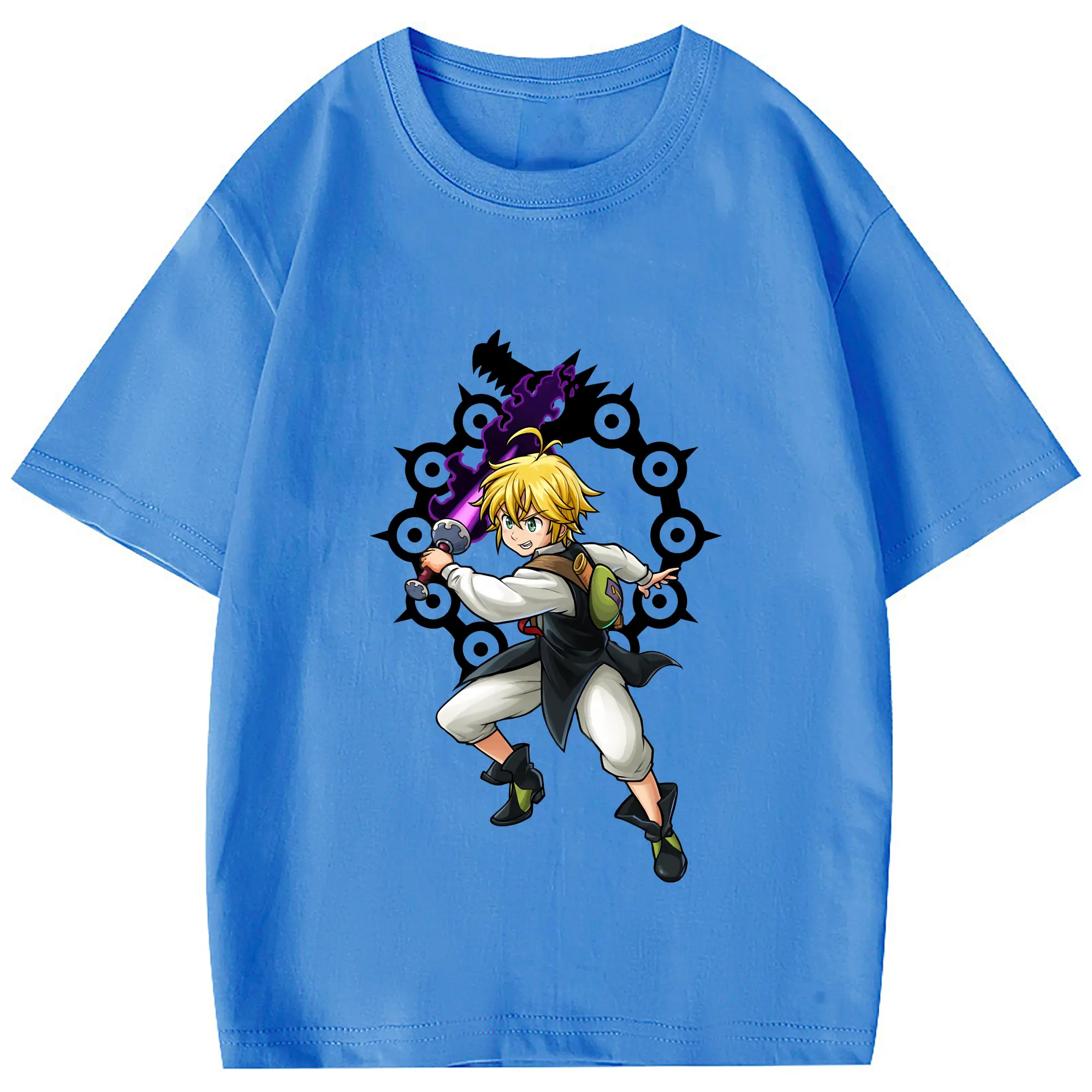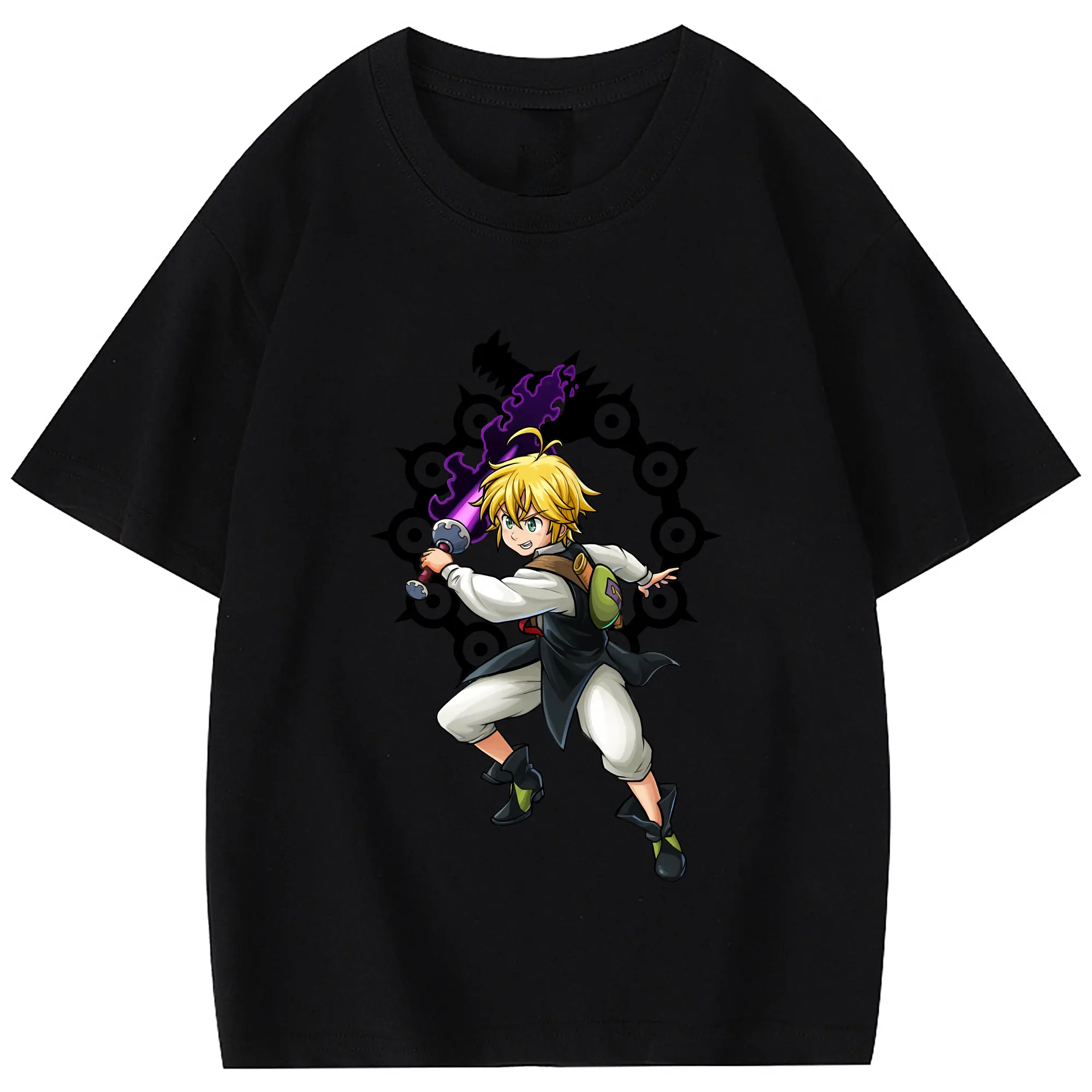 七つの大罪 グッズ メリオダス - 綿100% 半袖Tシャツ ・ フロントプリント ・ 快適 通気性 ・ 日常使い 散歩 スポーツ用