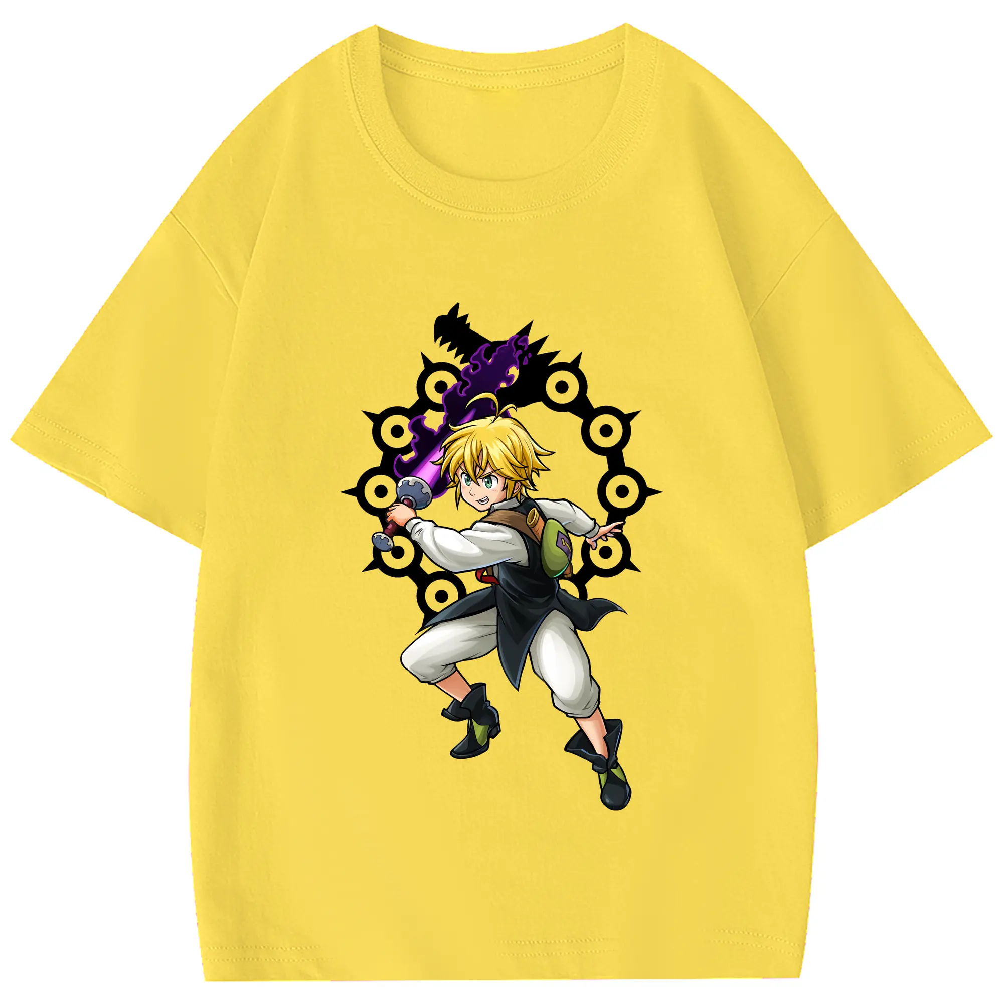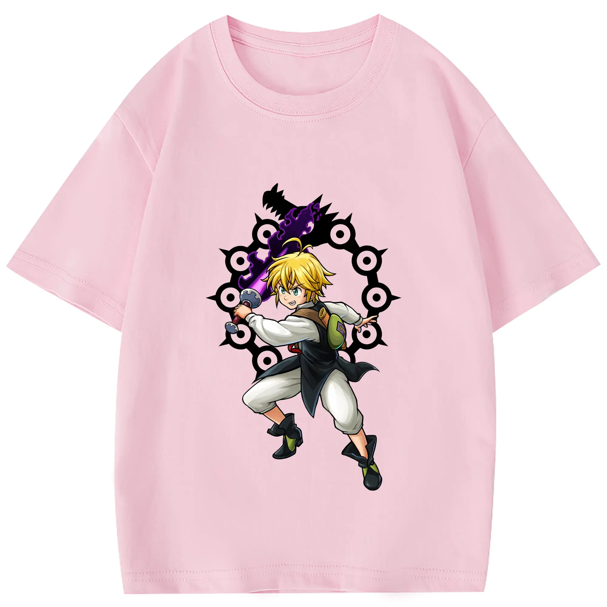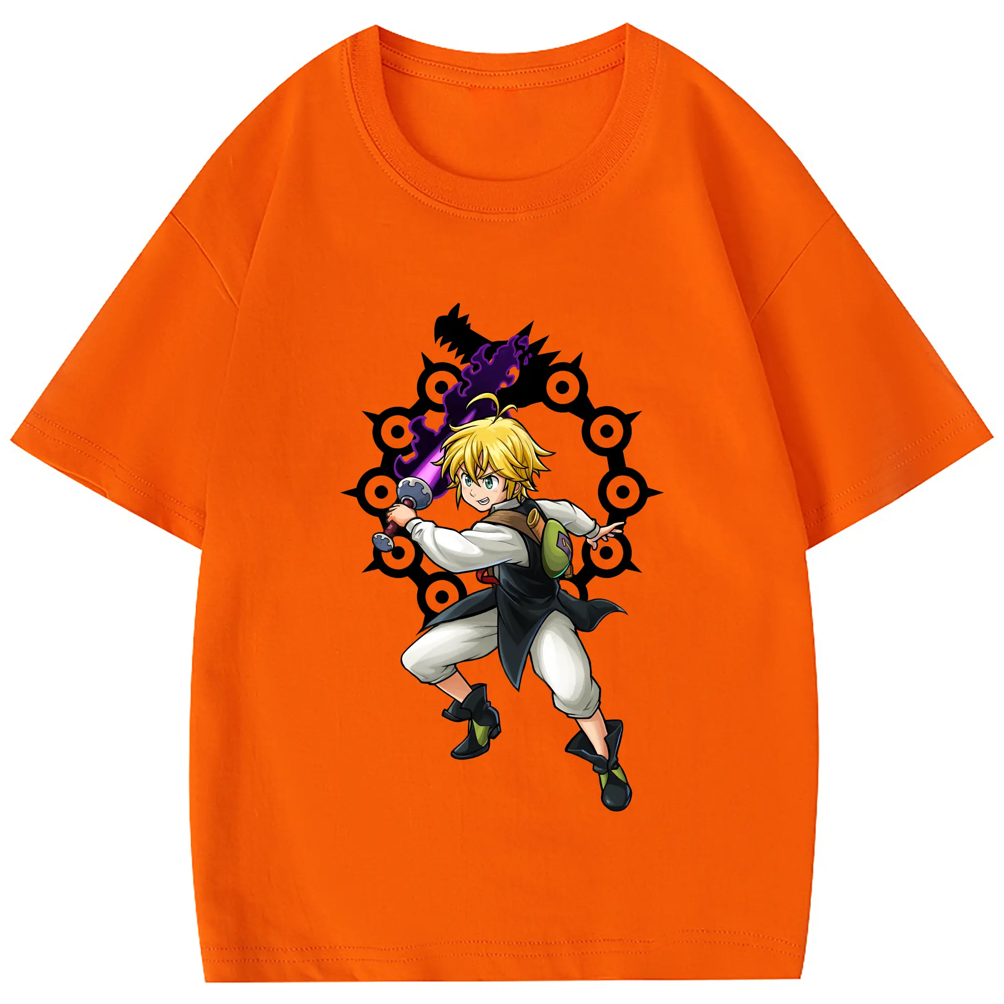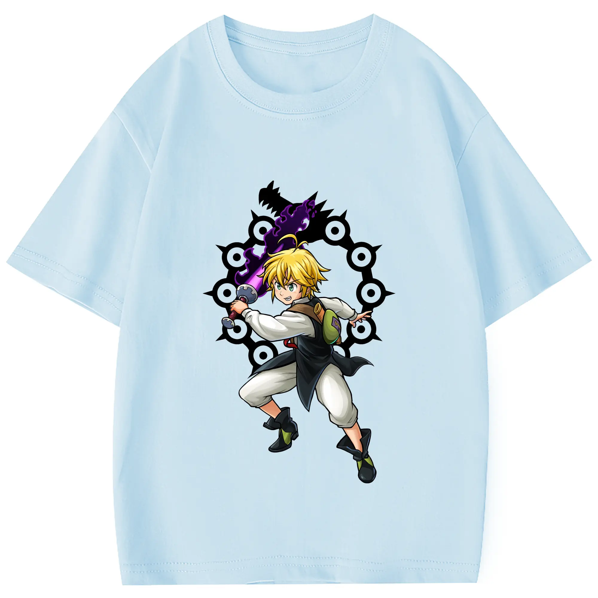 七つの大罪 グッズ メリオダス - 綿100% 半袖Tシャツ ・ フロントプリント ・ 快適 通気性 ・ 日常使い 散歩 スポーツ用