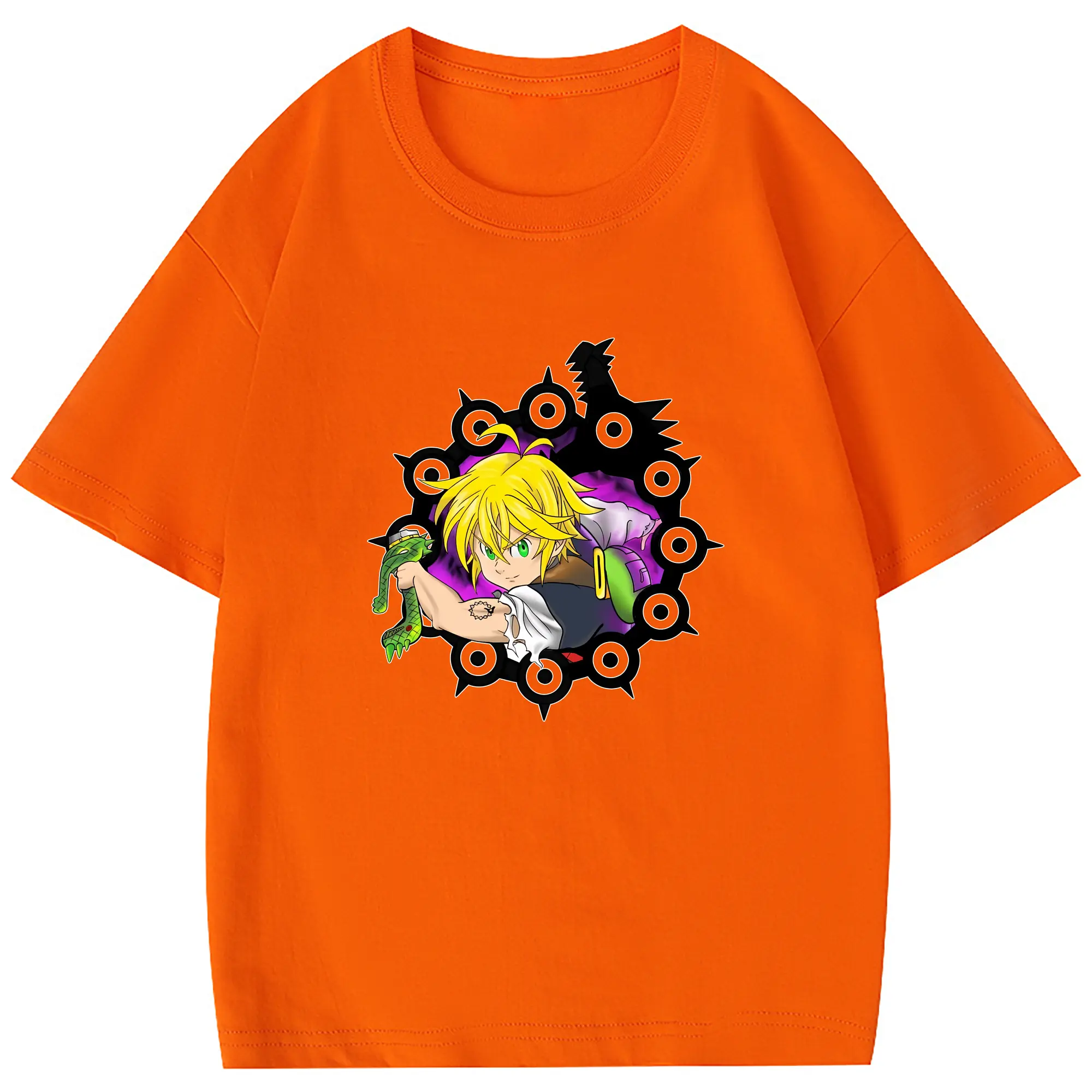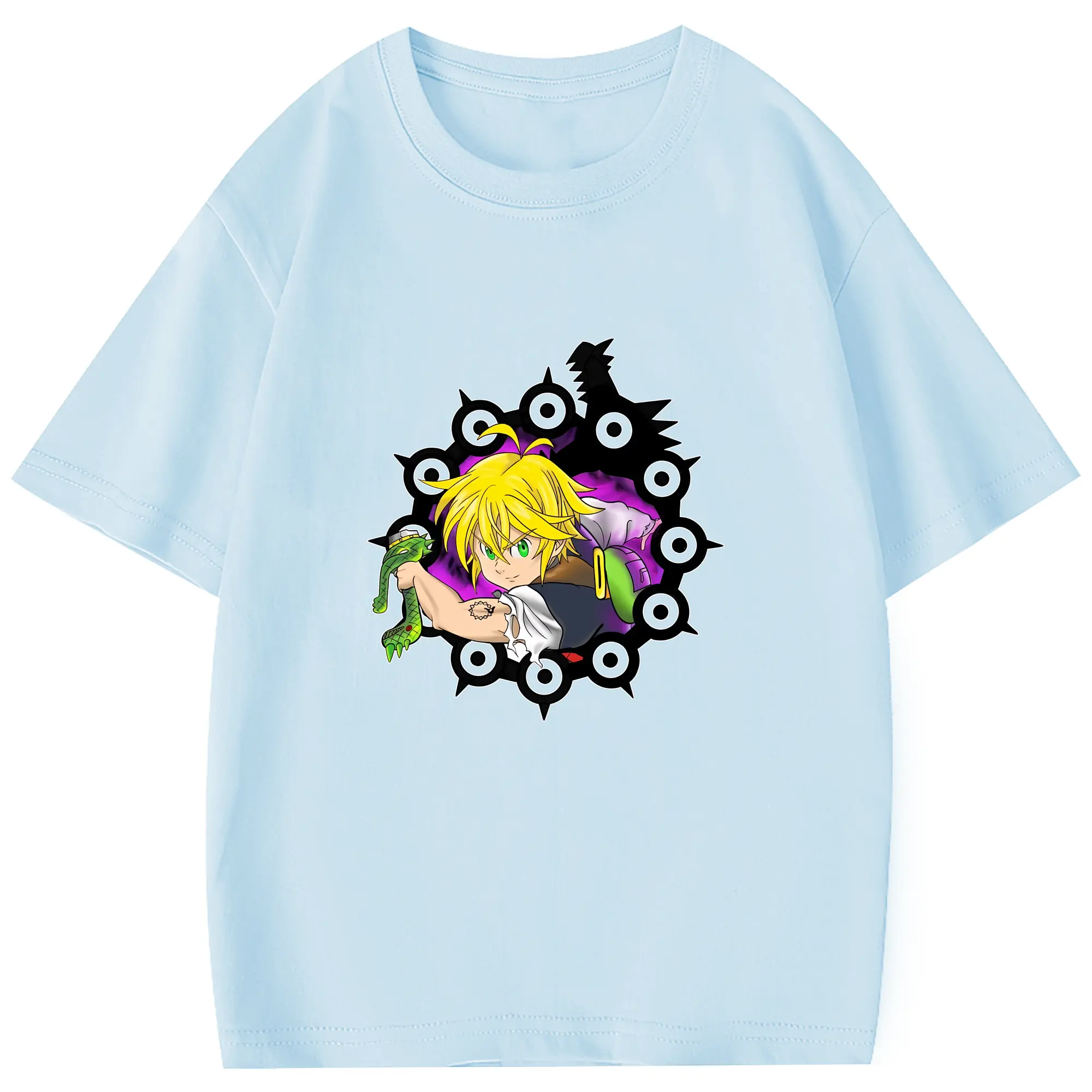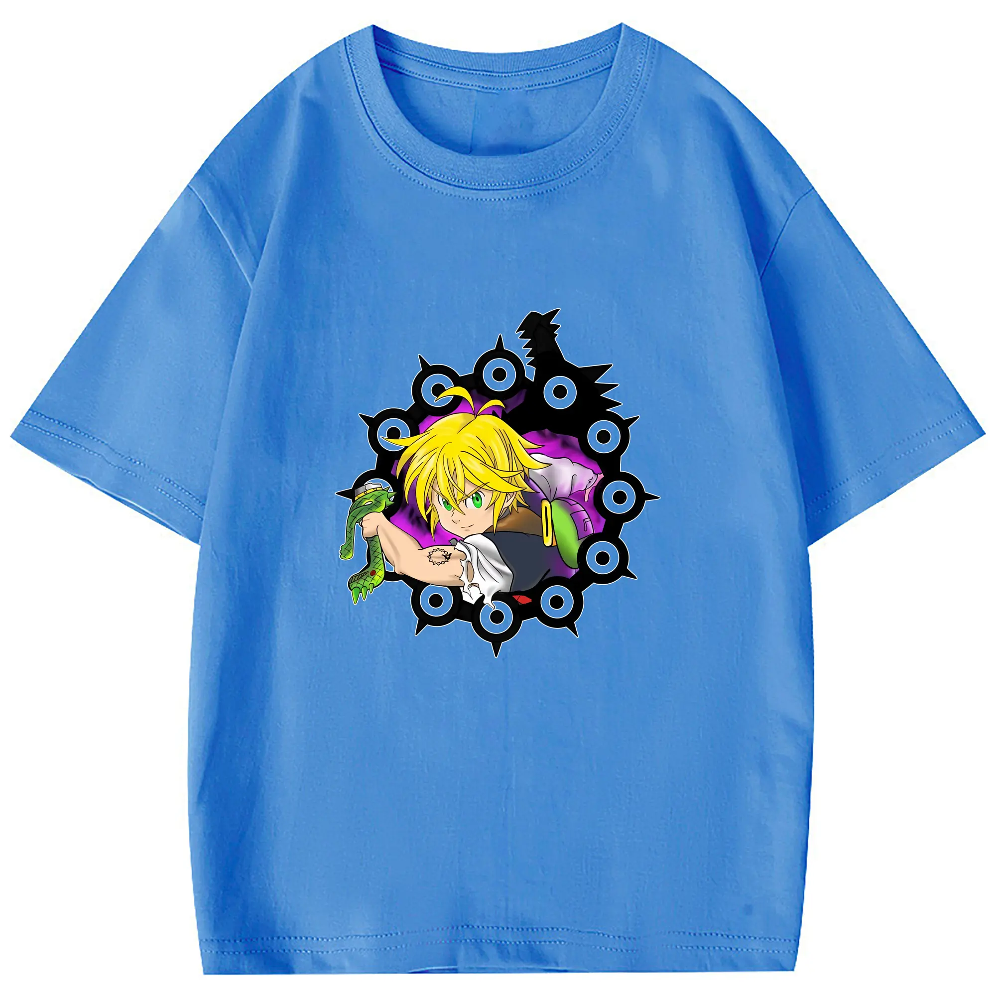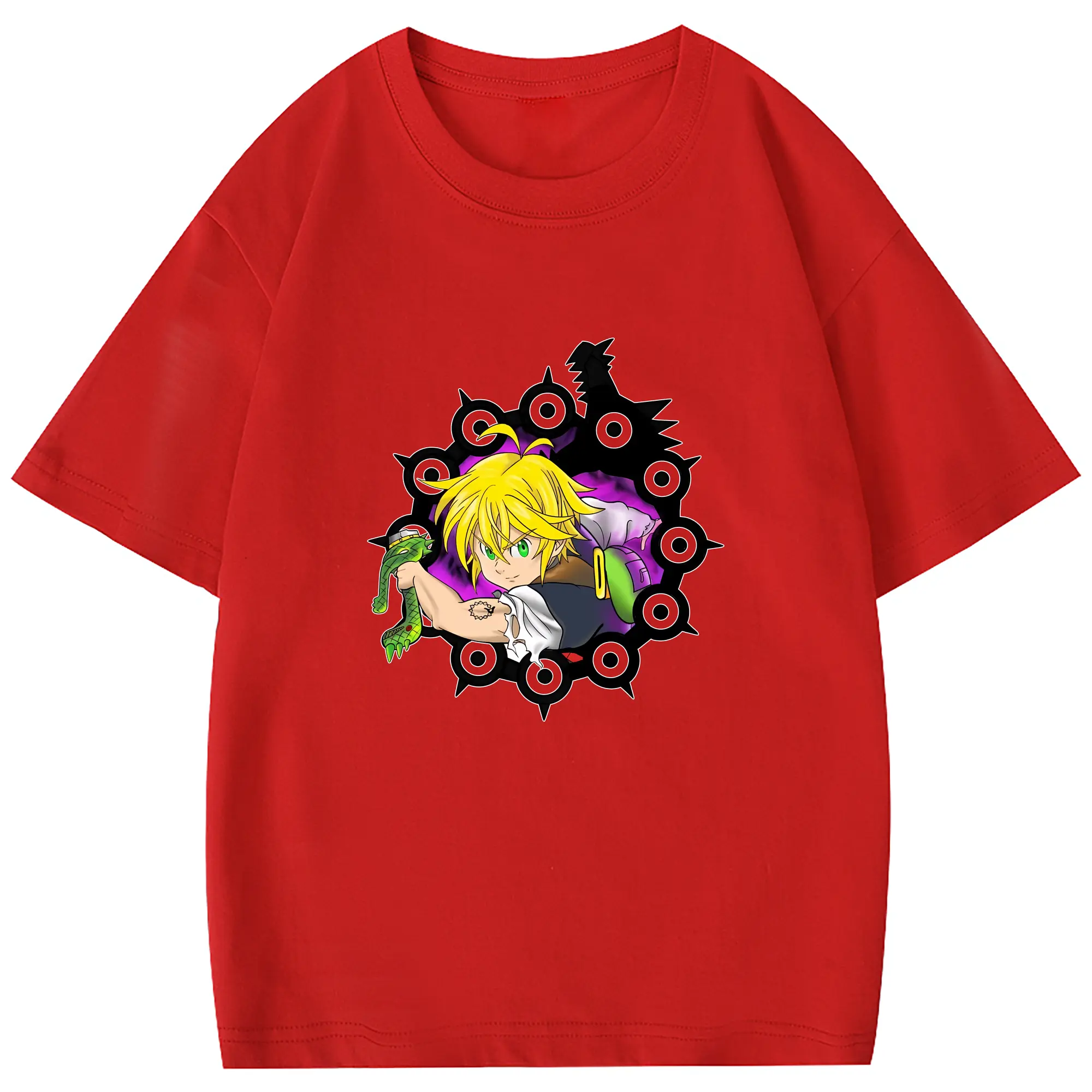 七つの大罪 グッズ メリオダス - 綿100% 半袖Tシャツ ・ フロントプリント ・ 快適 通気性 ・ 日常使い 散歩 スポーツ用