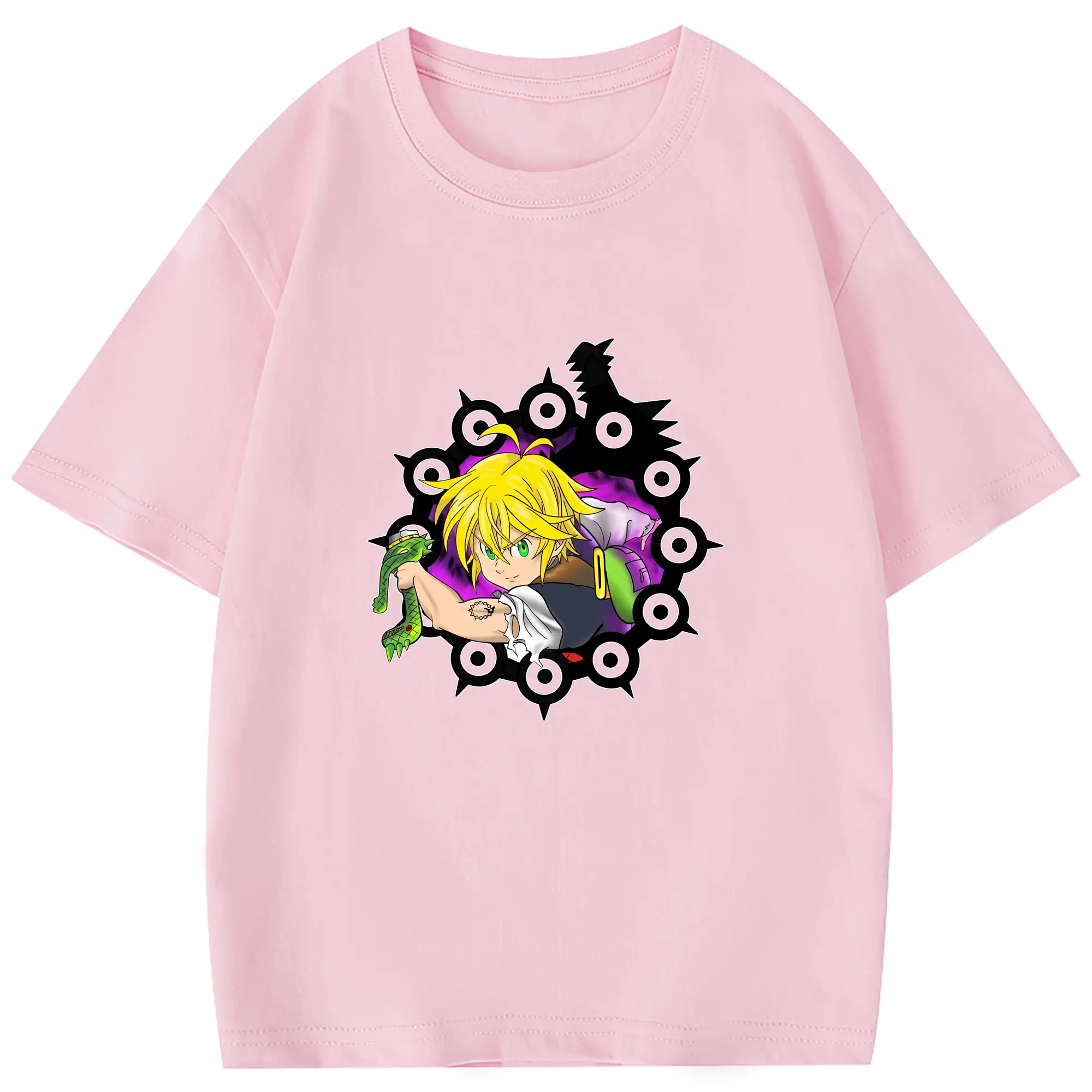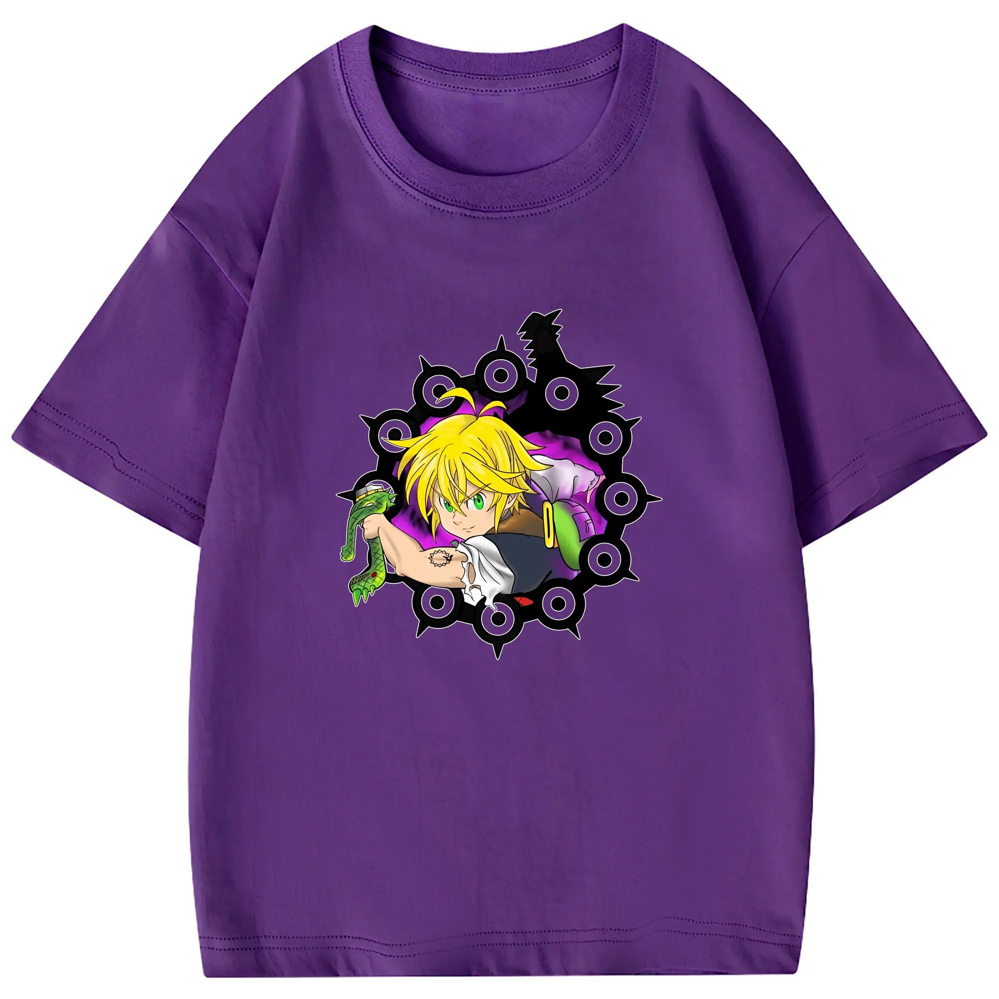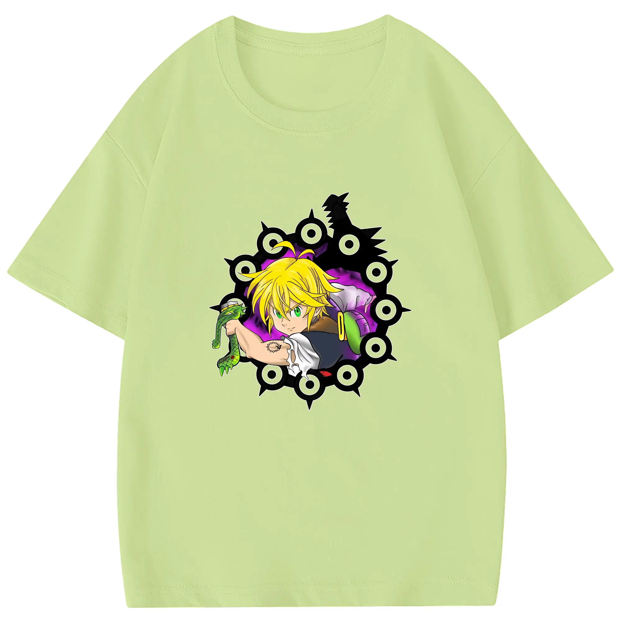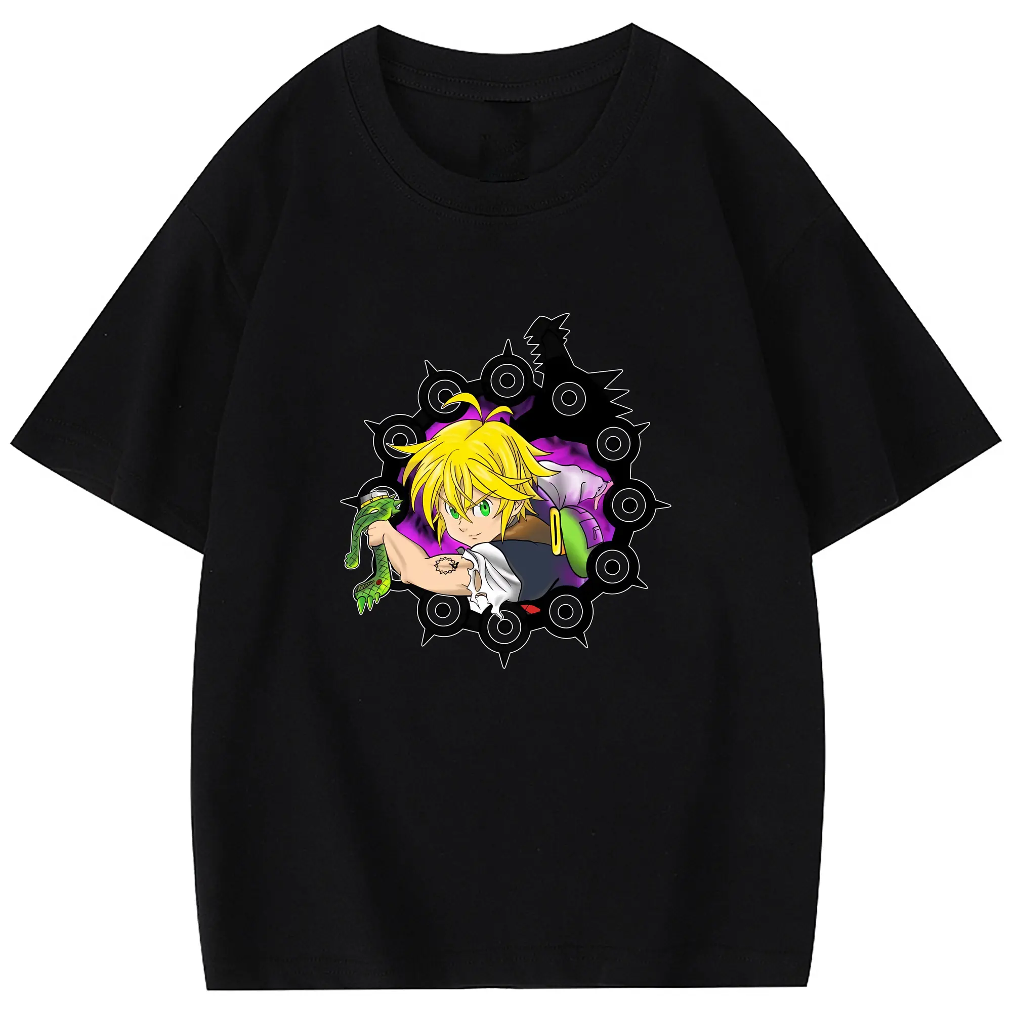 七つの大罪 グッズ メリオダス - 綿100% 半袖Tシャツ ・ フロントプリント ・ 快適 通気性 ・ 日常使い 散歩 スポーツ用