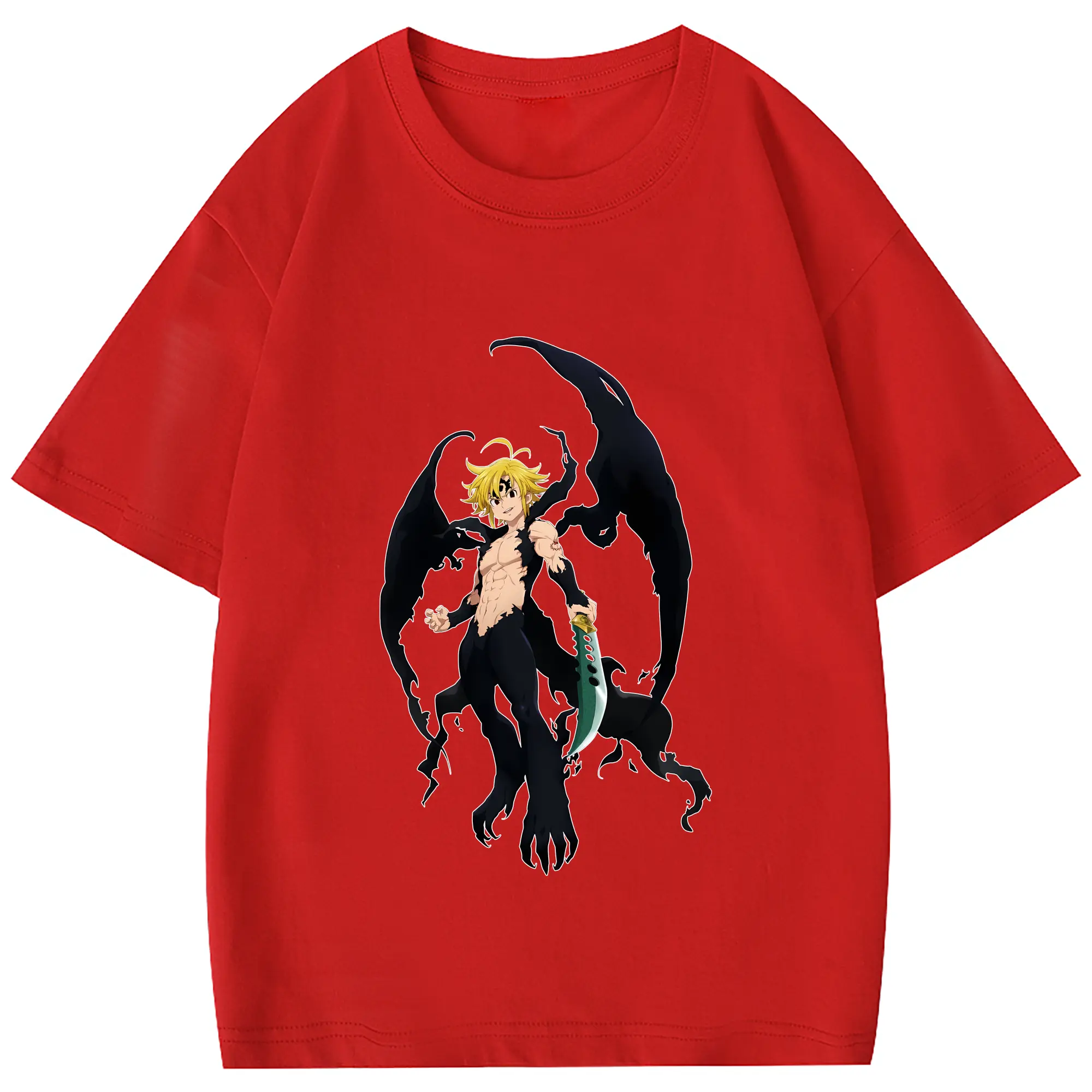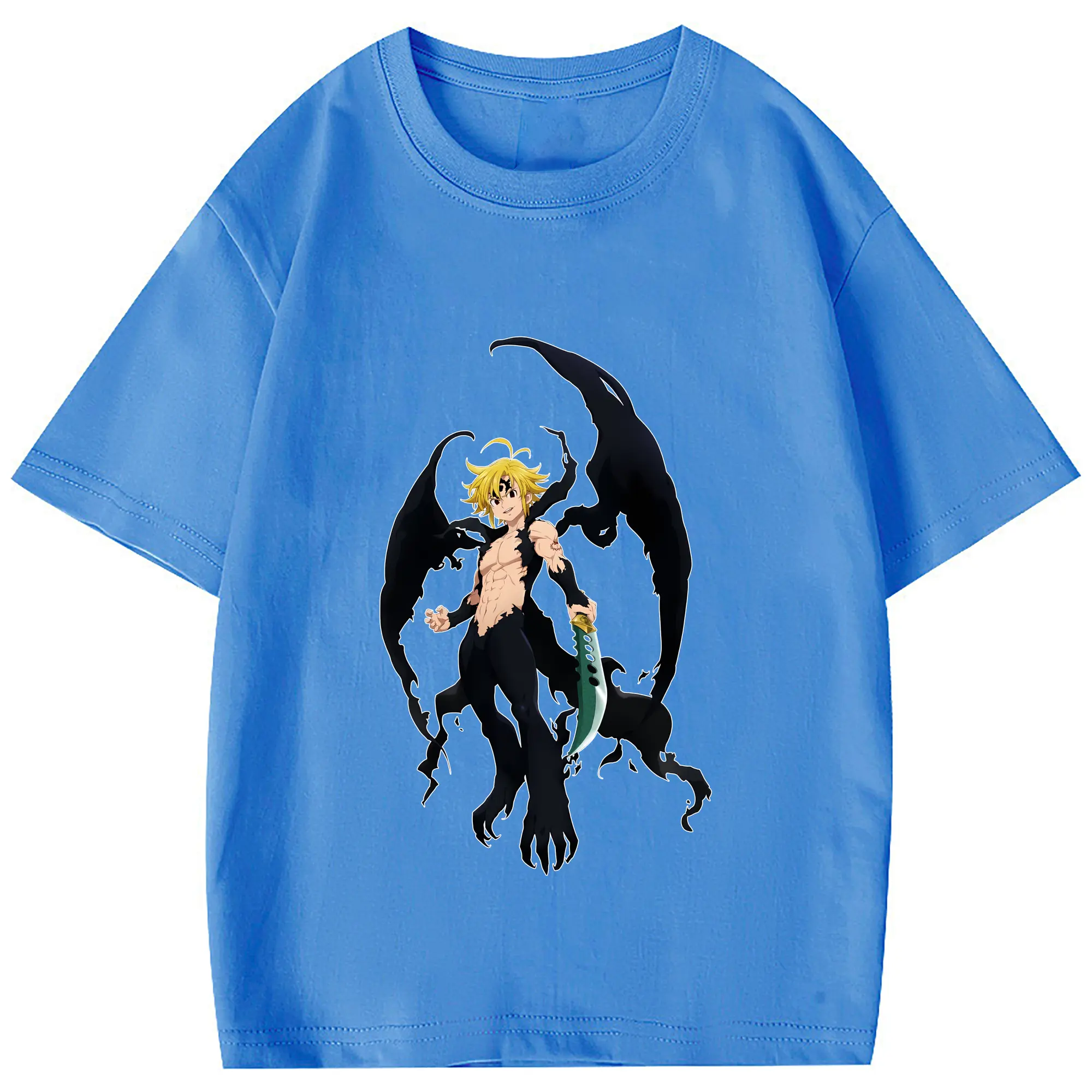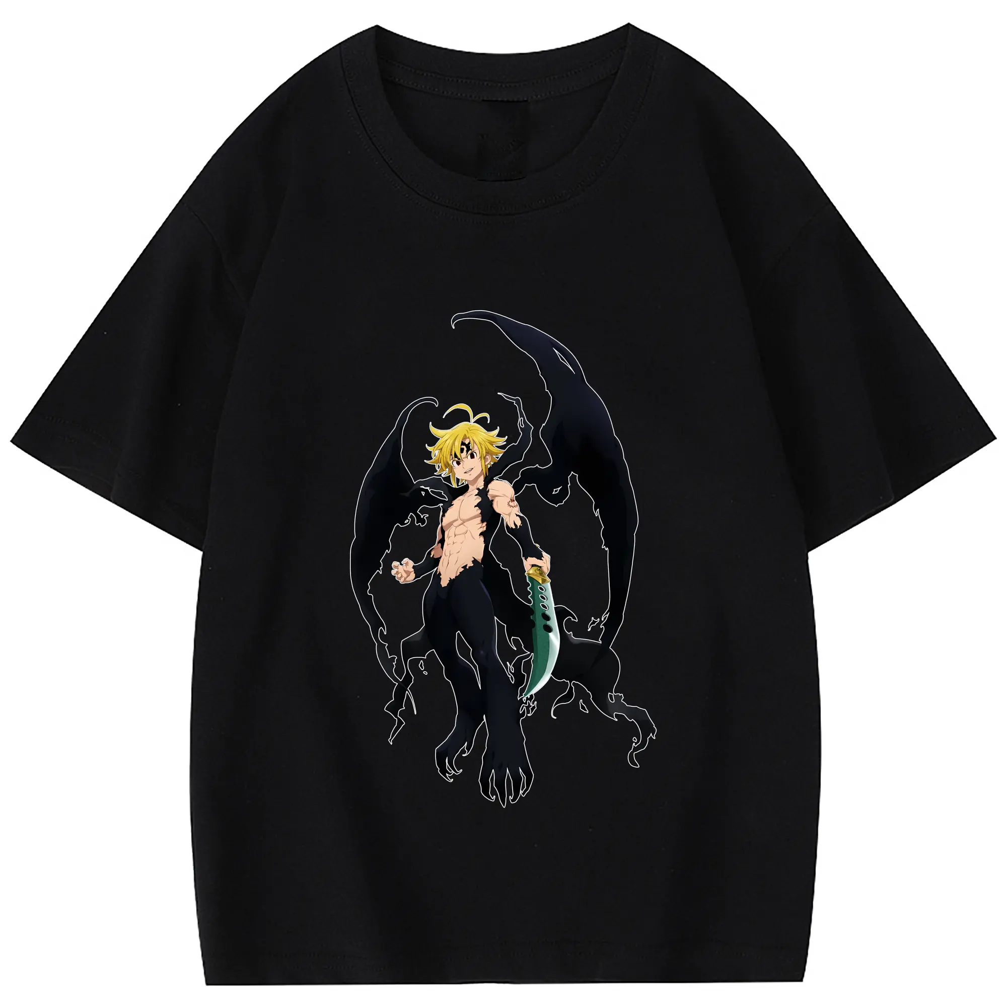 七つの大罪 グッズ メリオダス - 綿100% 半袖Tシャツ ・ フロントプリント ・ 快適 通気性 ・ 日常使い 散歩 スポーツ用