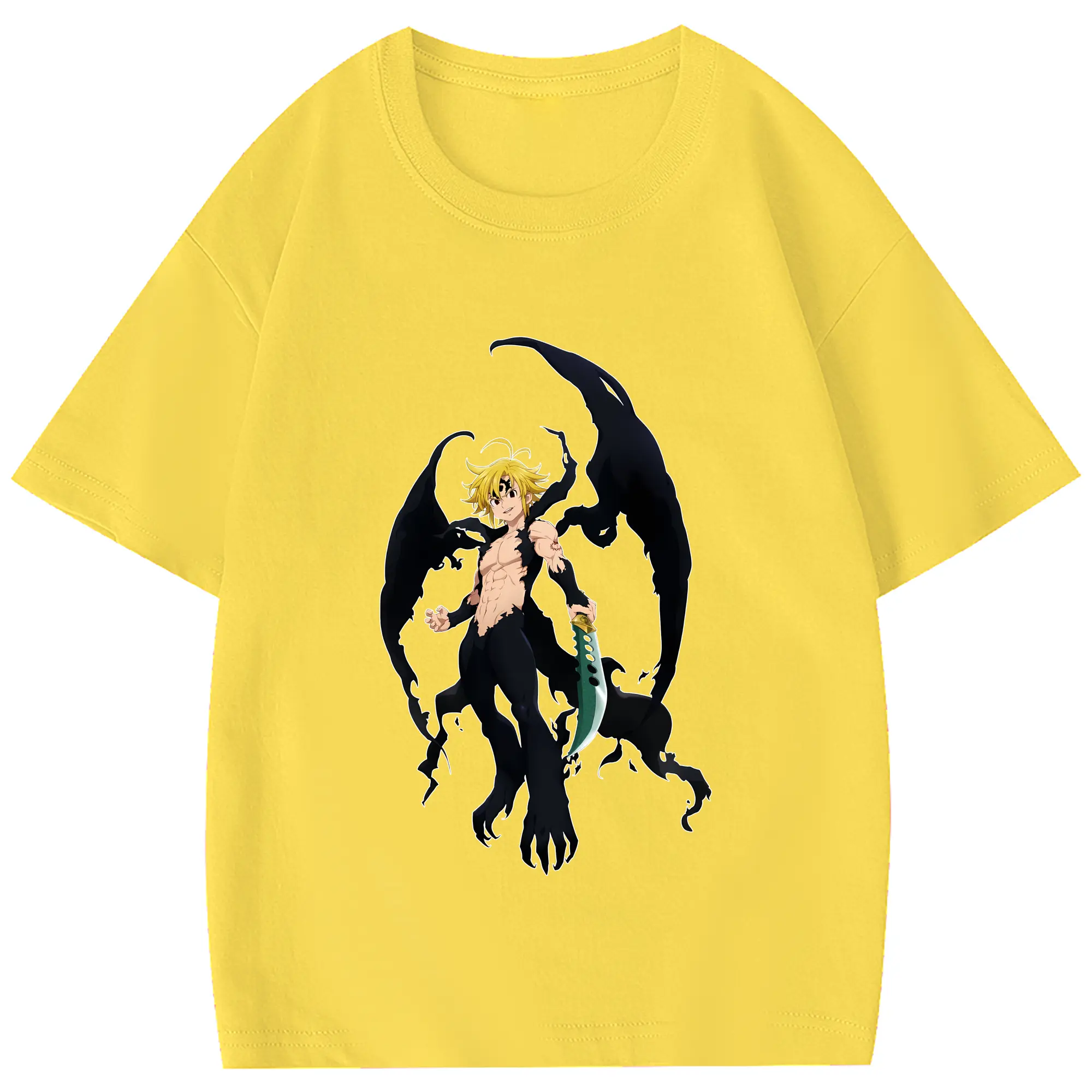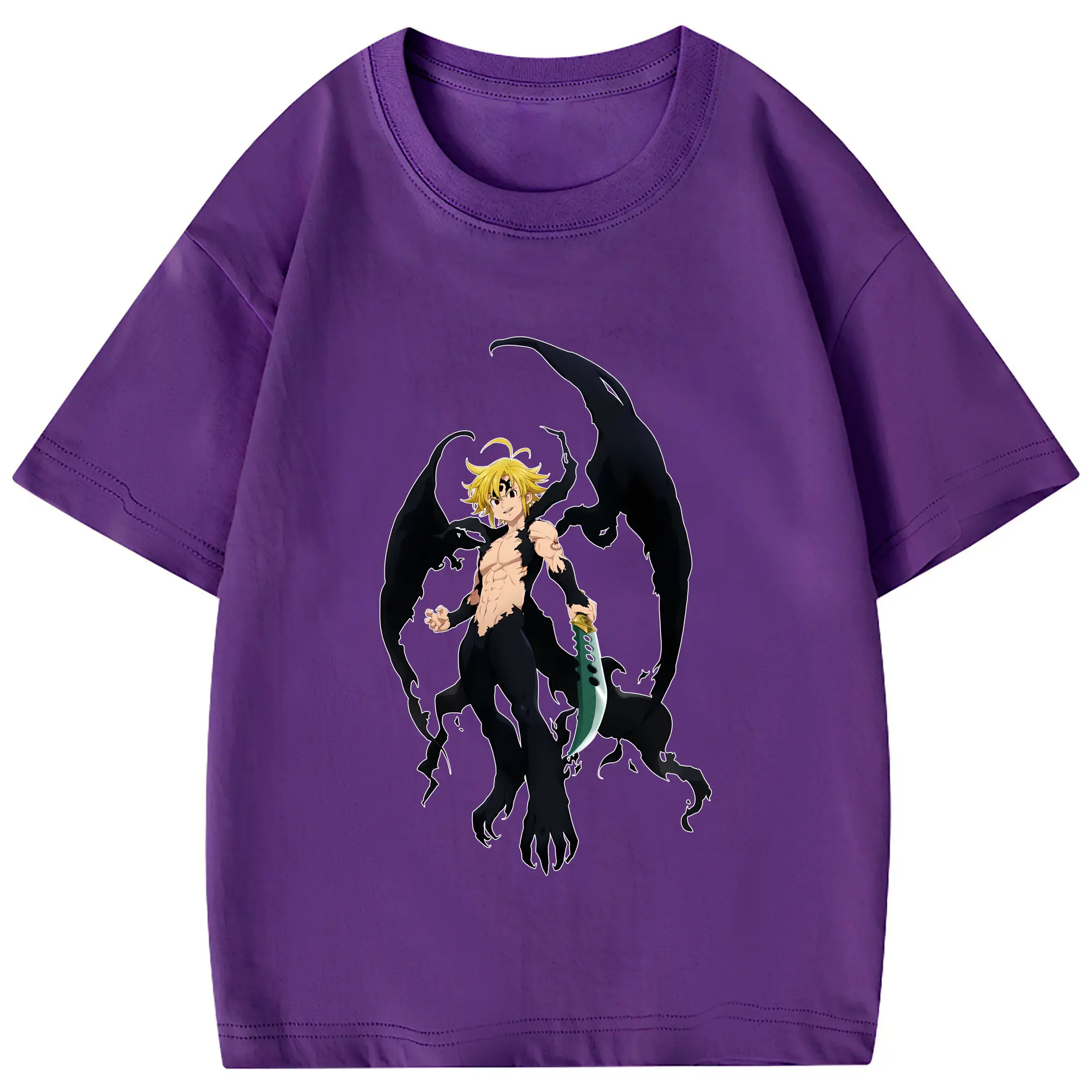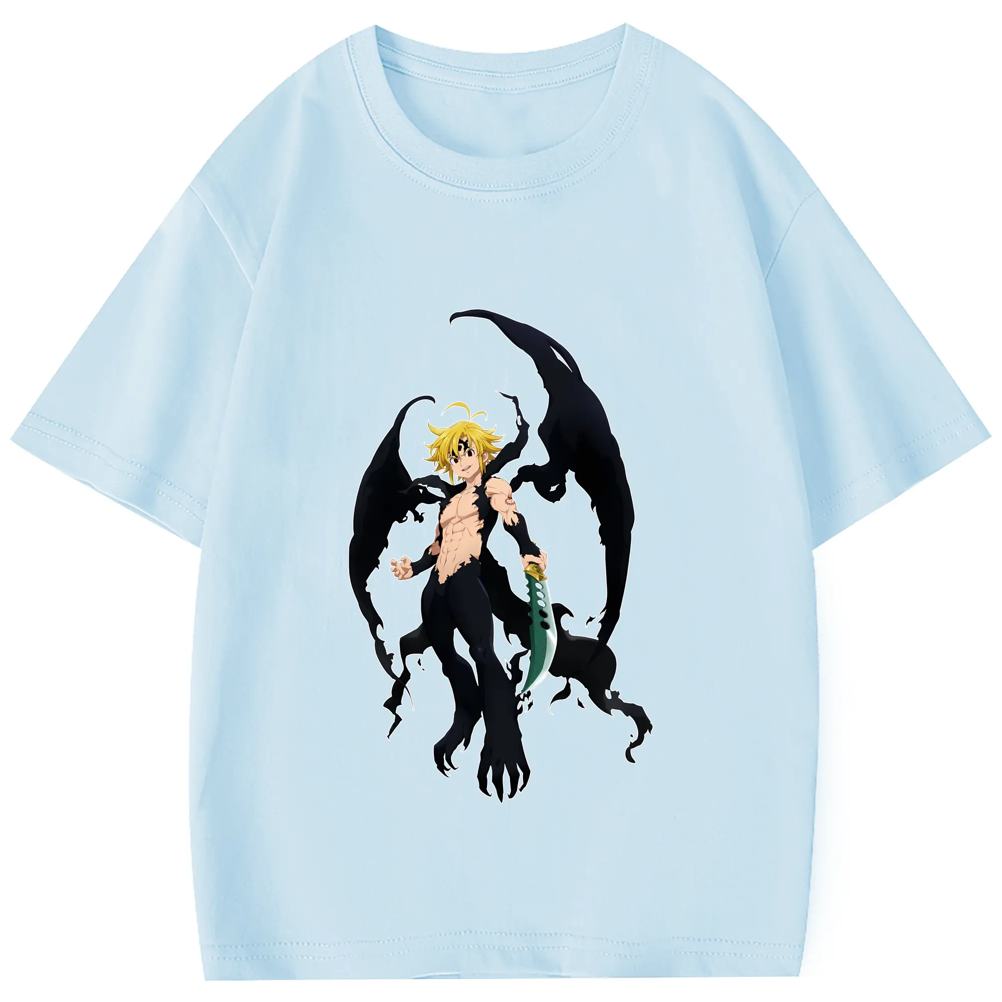 七つの大罪 グッズ メリオダス - 綿100% 半袖Tシャツ ・ フロントプリント ・ 快適 通気性 ・ 日常使い 散歩 スポーツ用