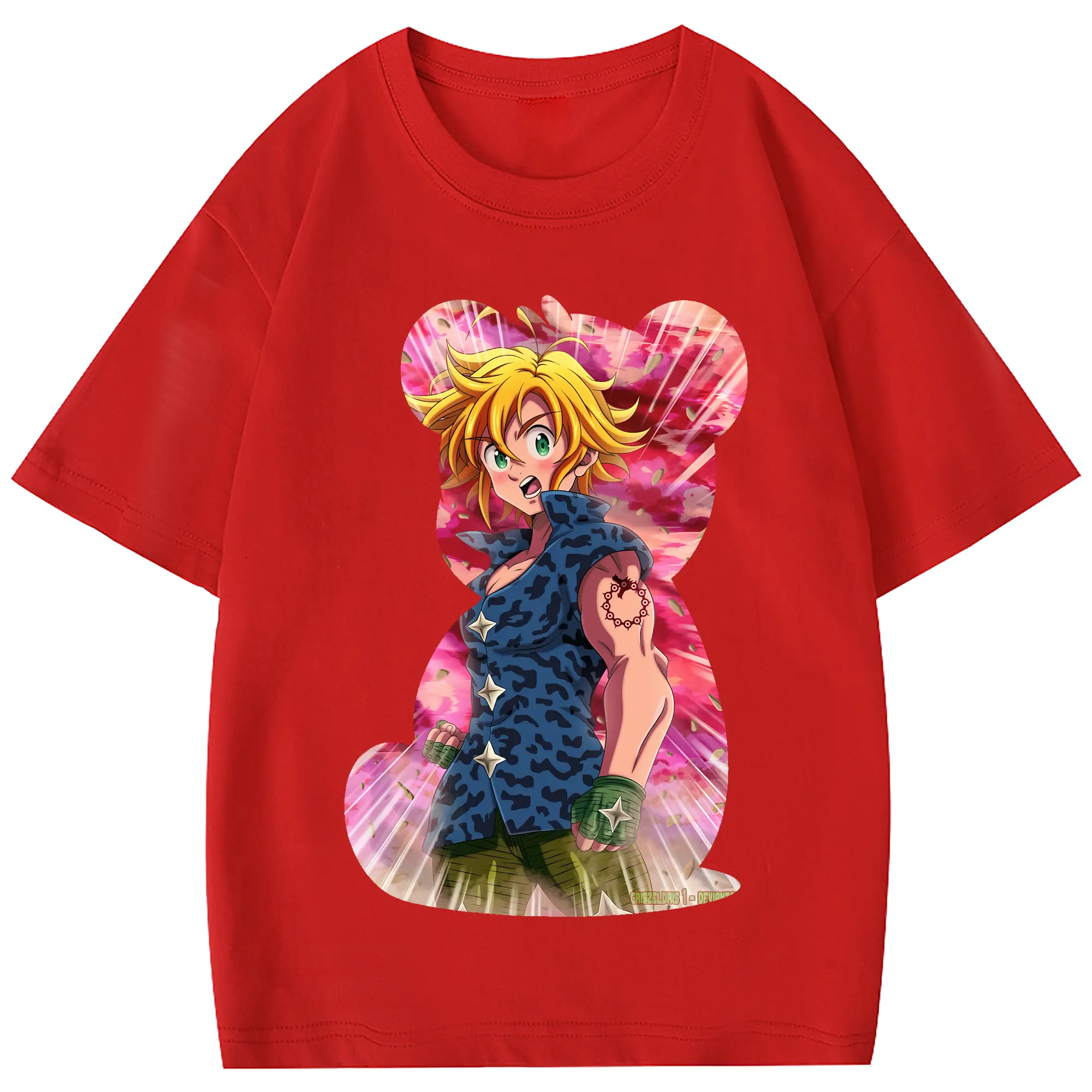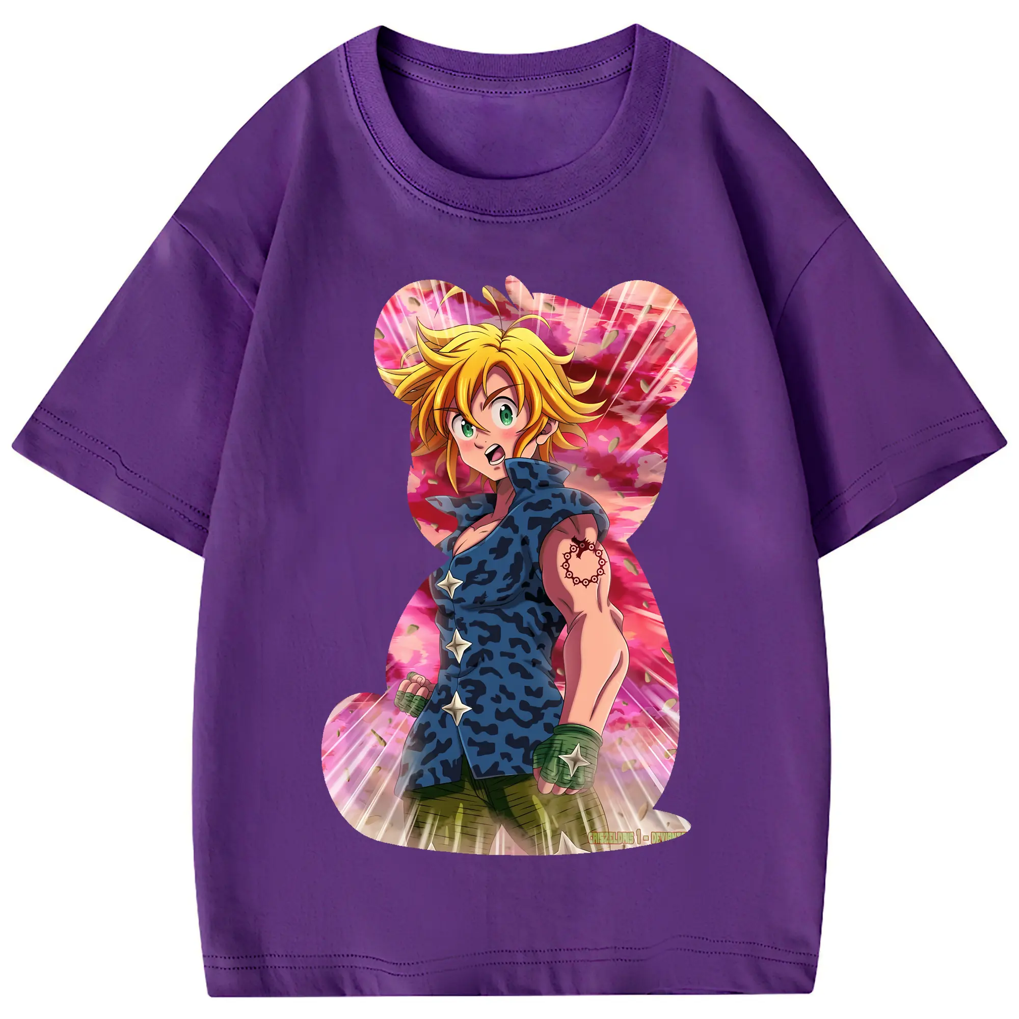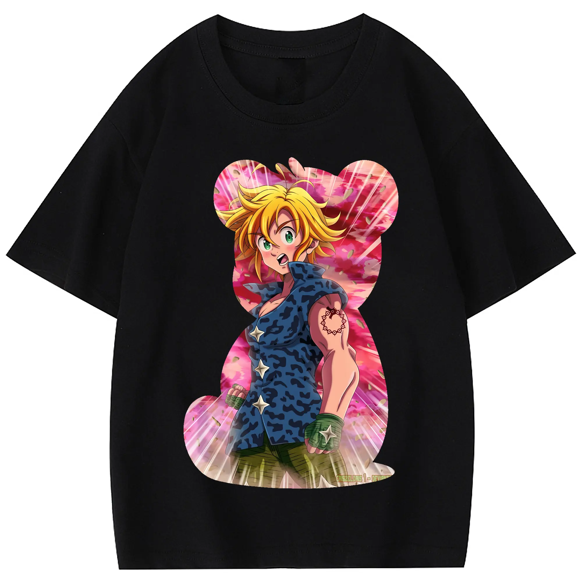七つの大罪 グッズ メリオダス - 綿100% 半袖Tシャツ ・ フロントプリント ・ 快適 通気性 ・ 日常使い 散歩 スポーツ用