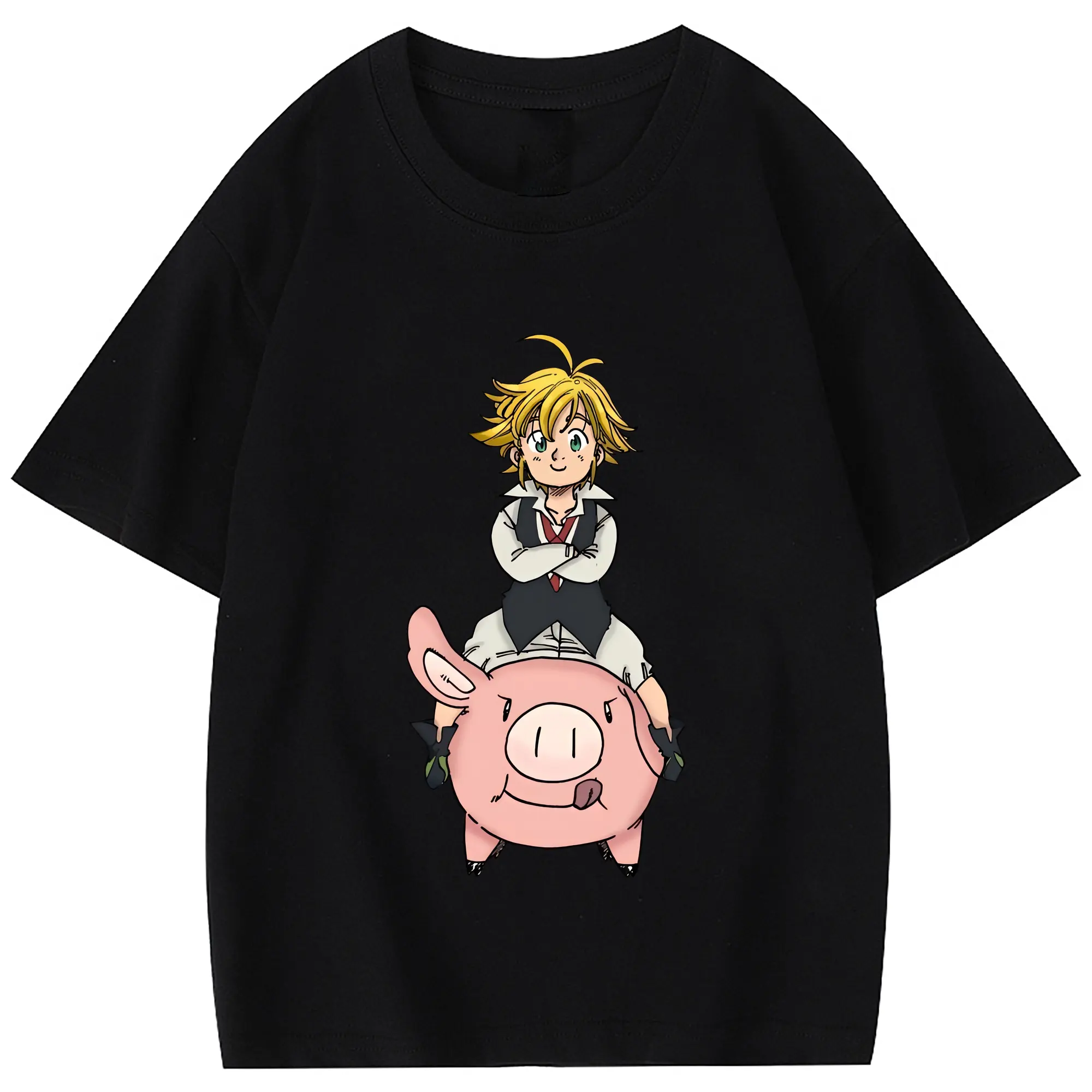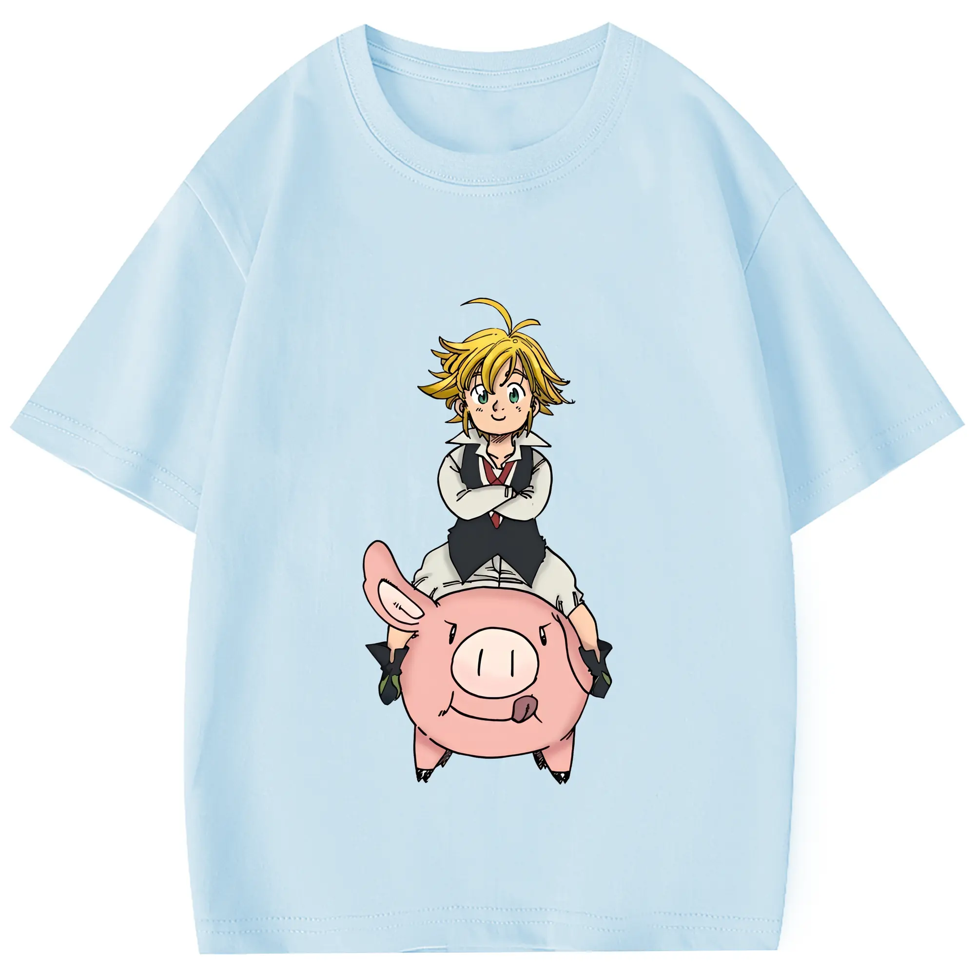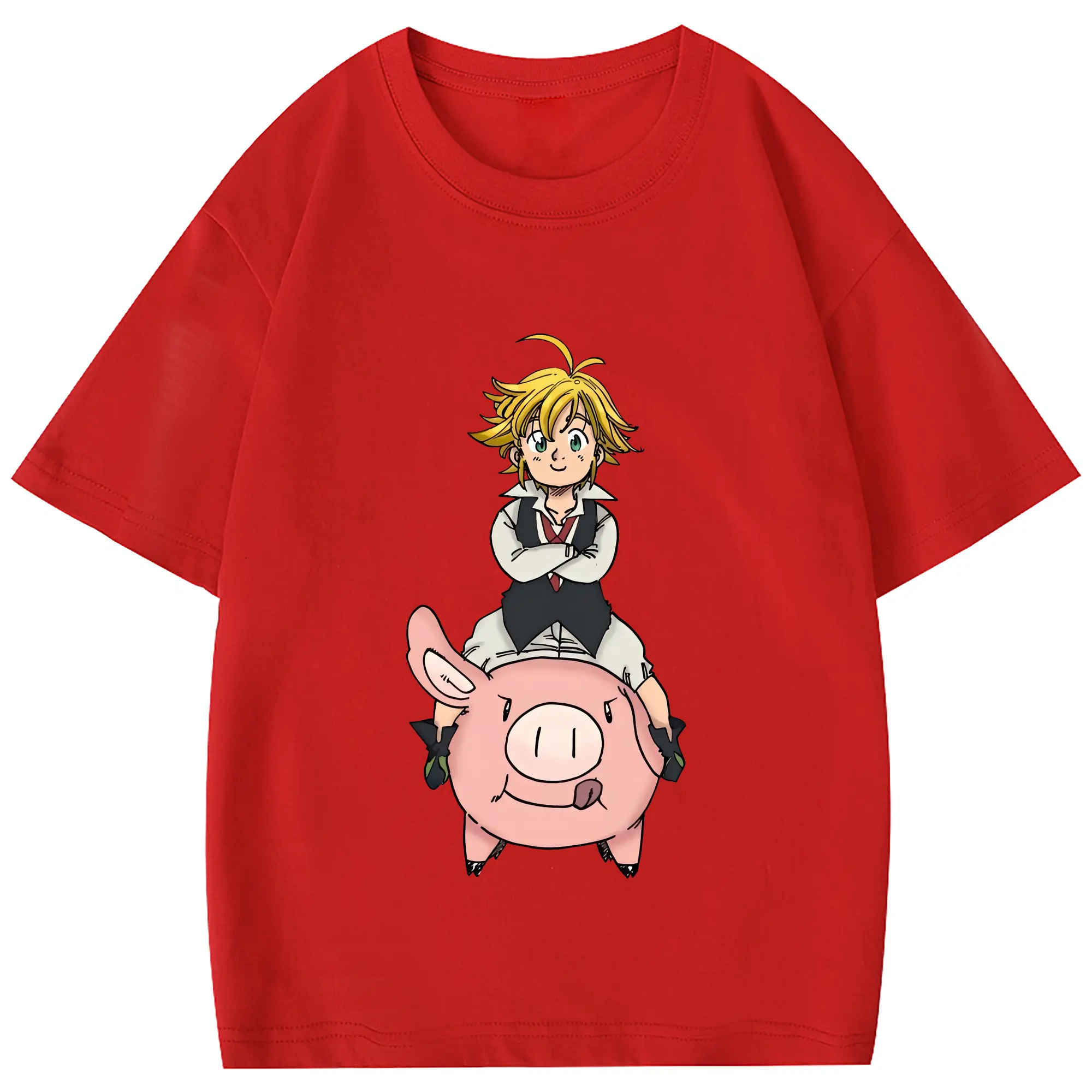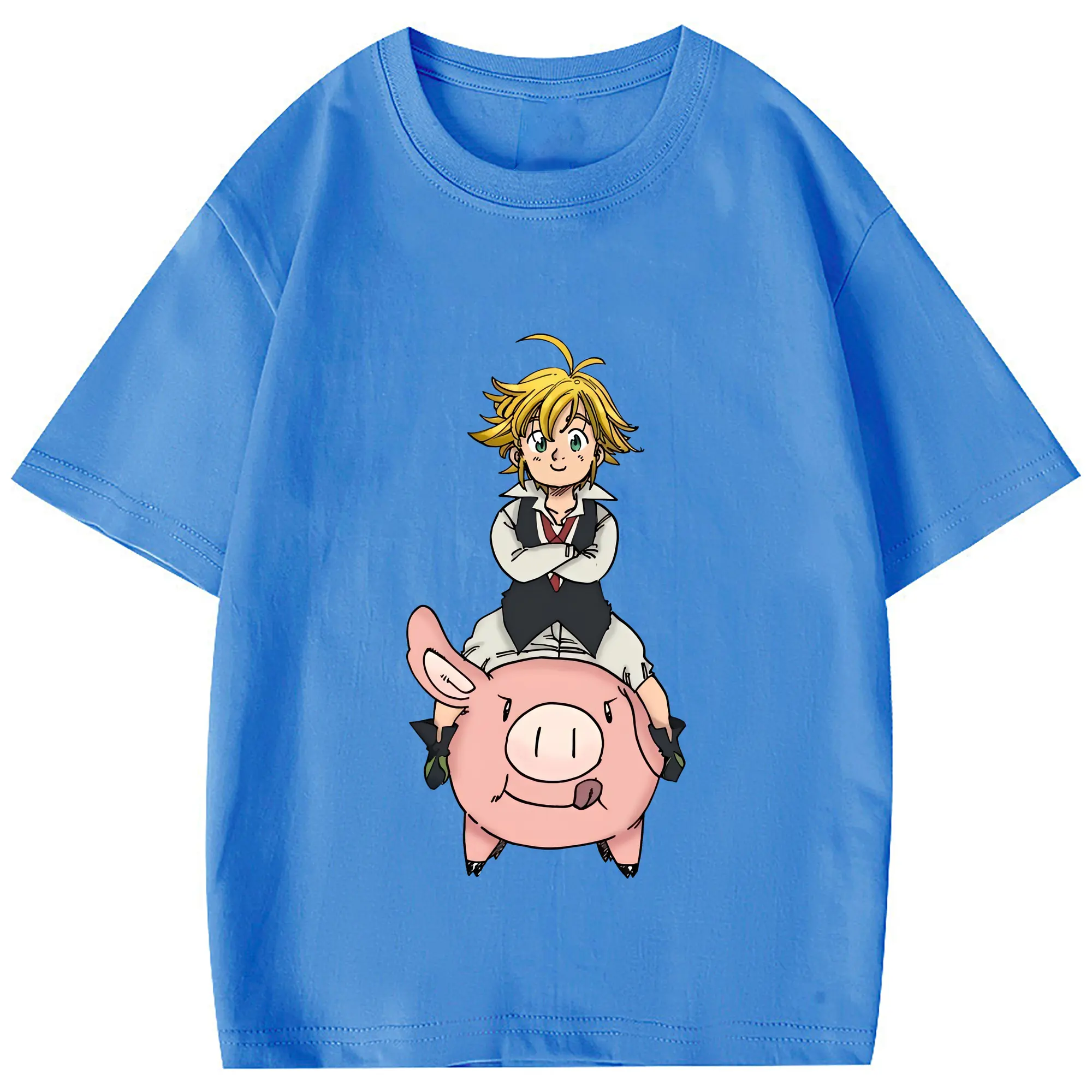 七つの大罪 グッズ メリオダス - 綿100% 半袖Tシャツ ・ フロントプリント ・ 快適 通気性 ・ 日常使い 散歩 スポーツ用