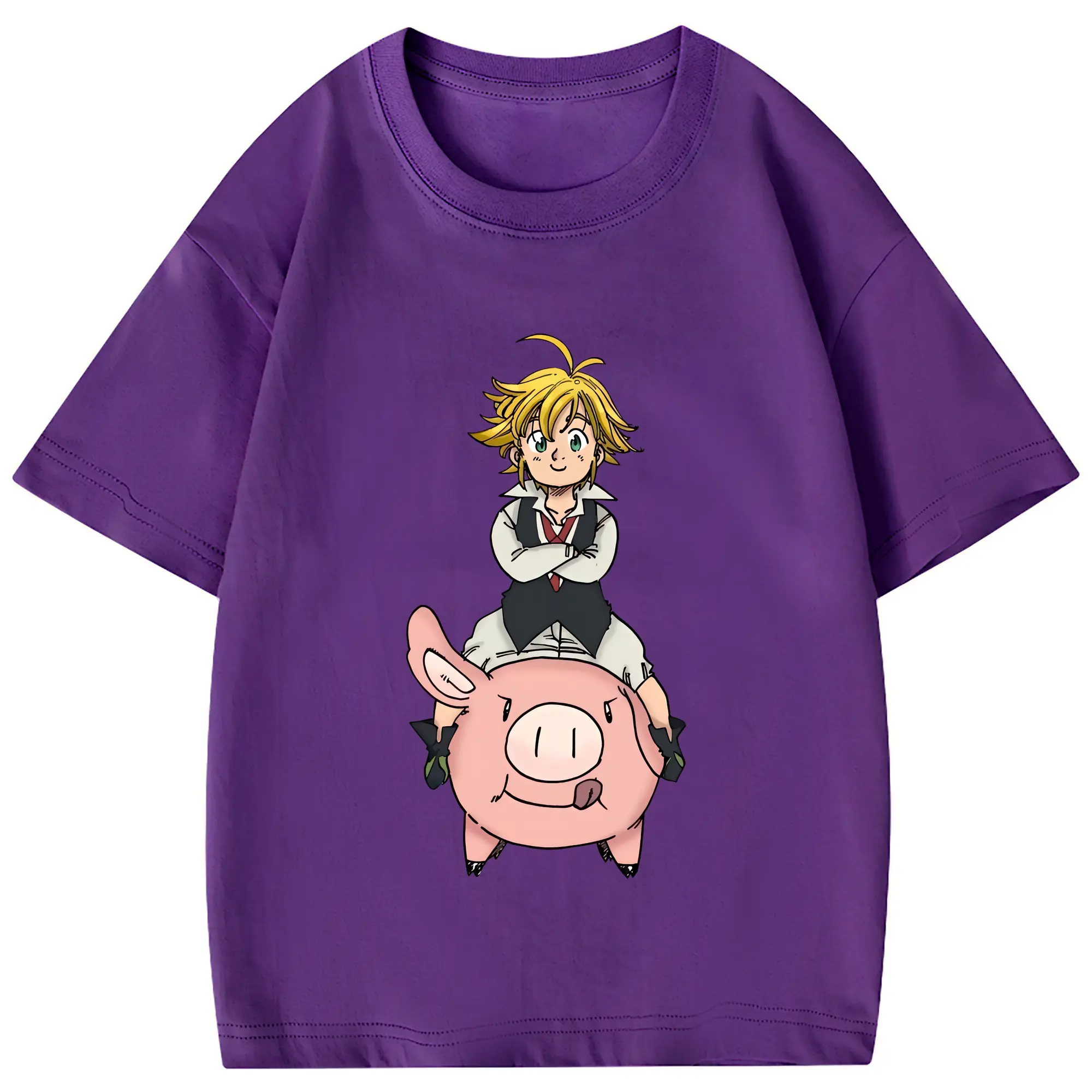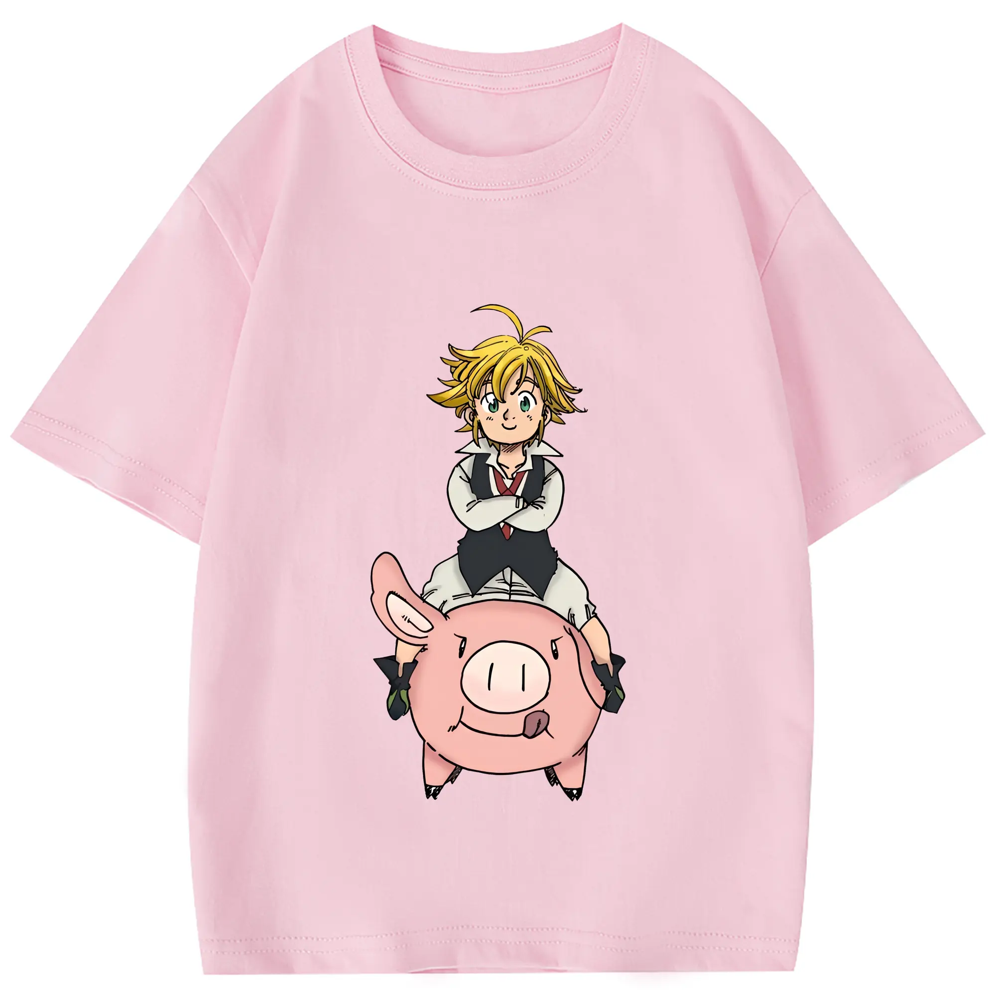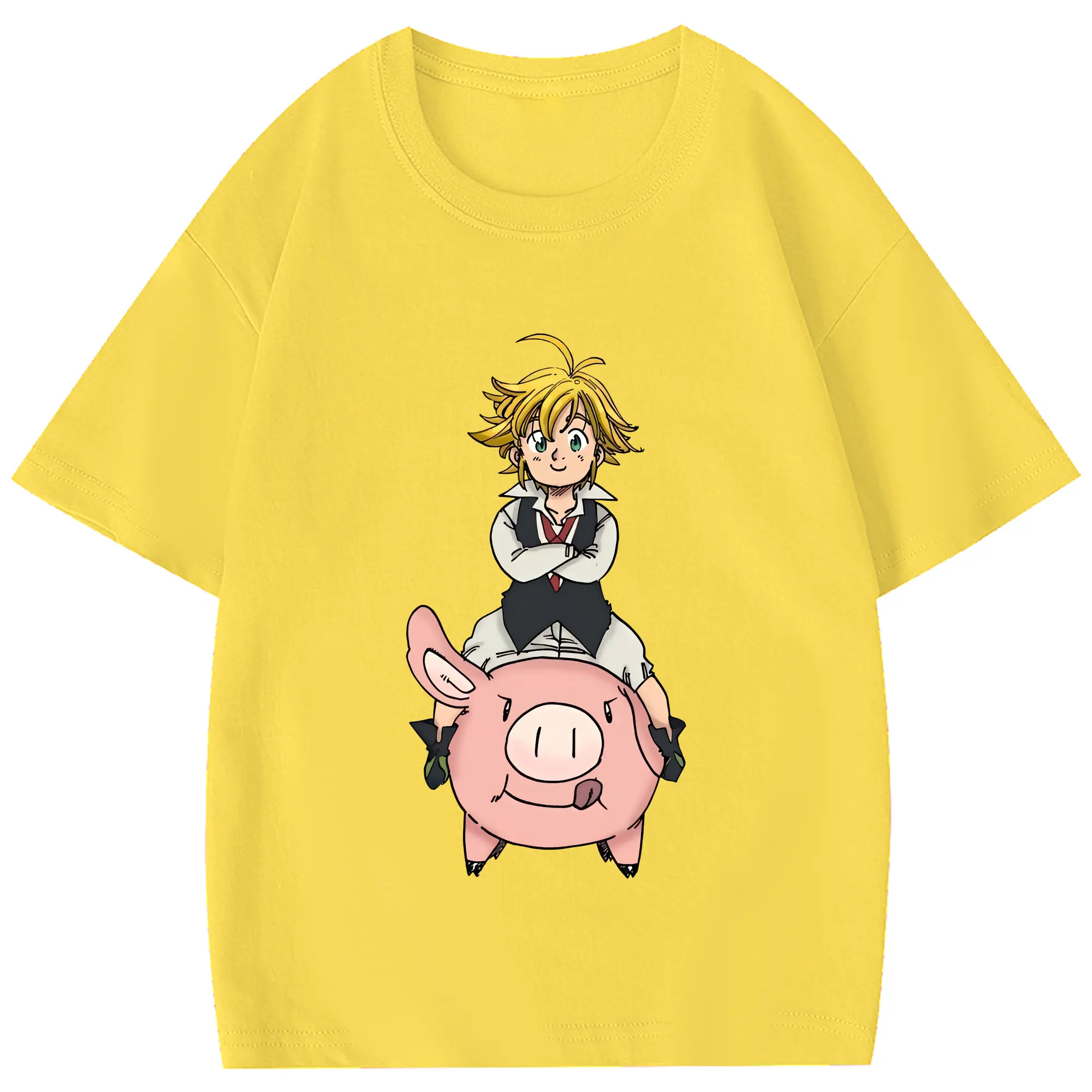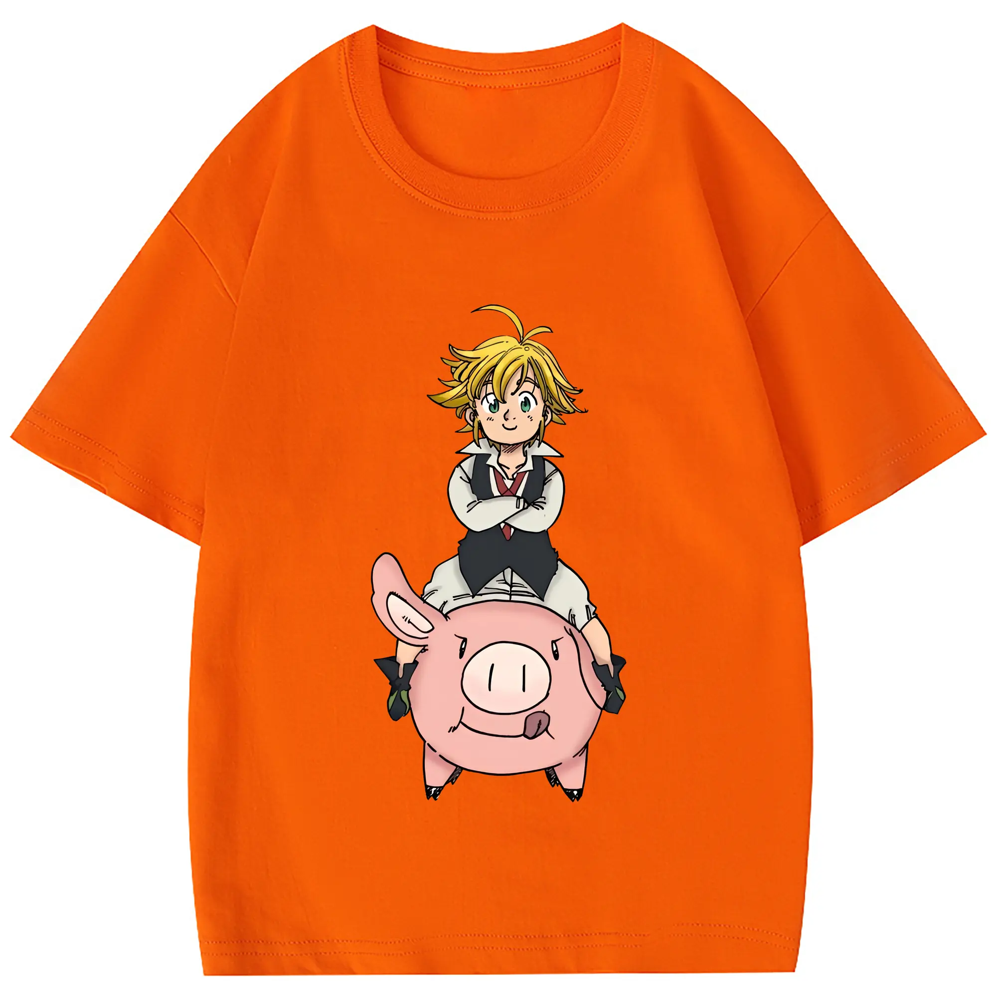 七つの大罪 グッズ メリオダス - 綿100% 半袖Tシャツ ・ フロントプリント ・ 快適 通気性 ・ 日常使い 散歩 スポーツ用