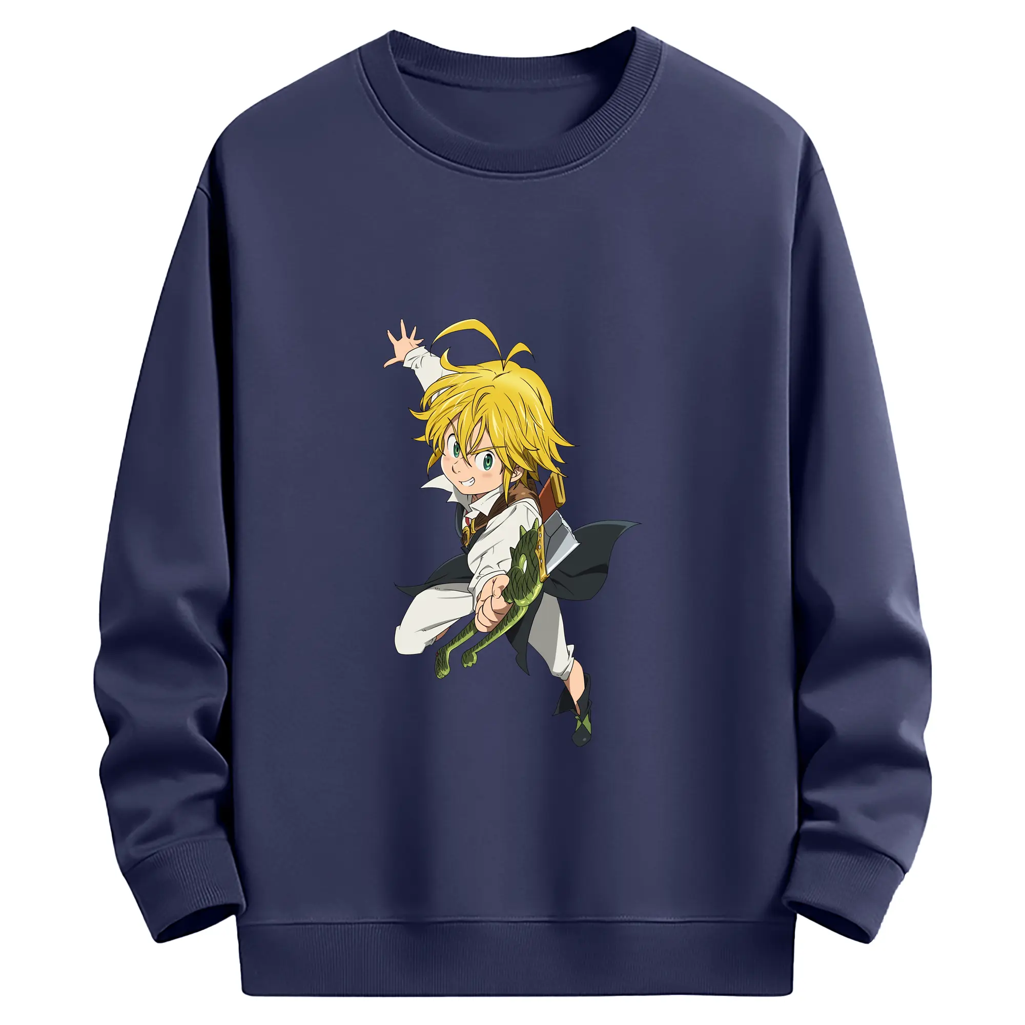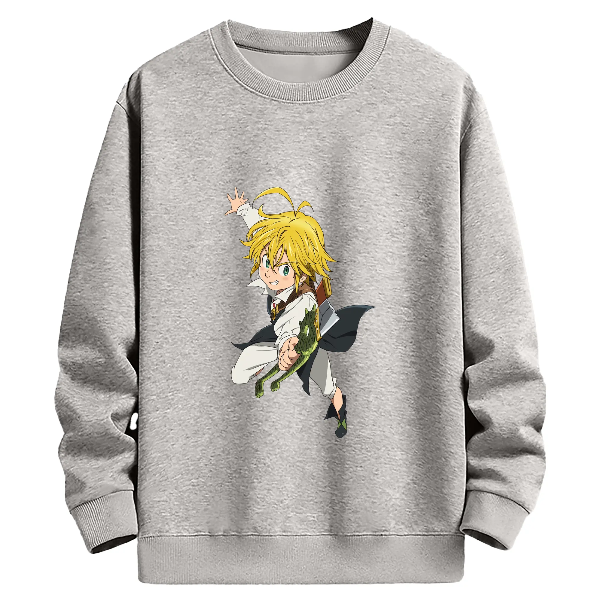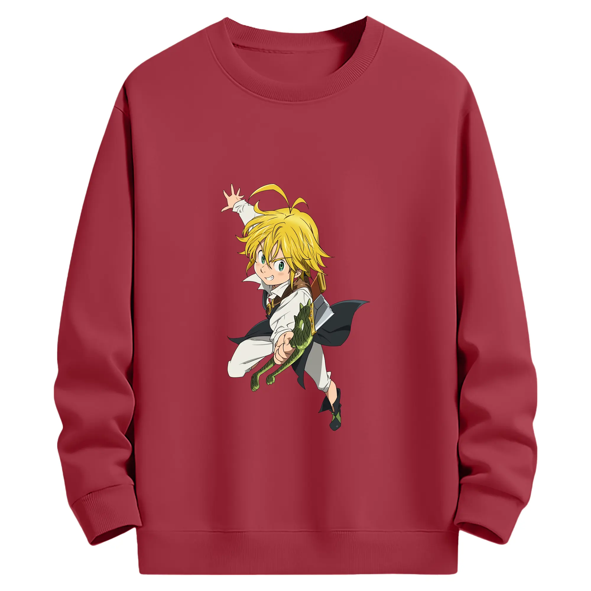 七つの大罪 グッズ メリオダス - 薄手 クルーネック スウェット 裏毛260g · ポリエステル 春秋向け カジュアル 男女兼用 · トレーナー デイリー スポーツ 散歩に最適