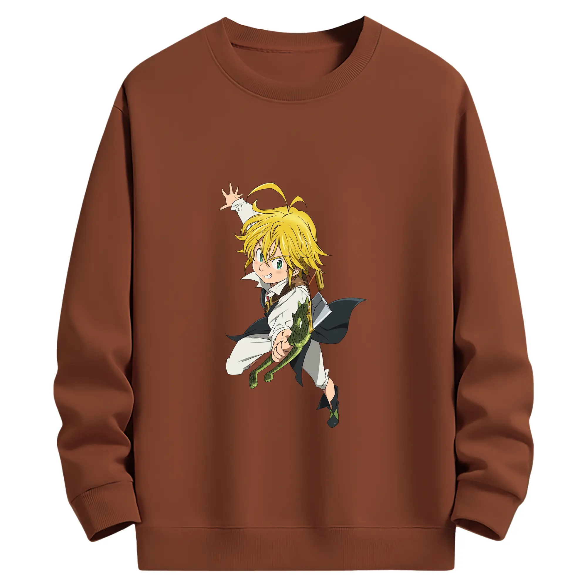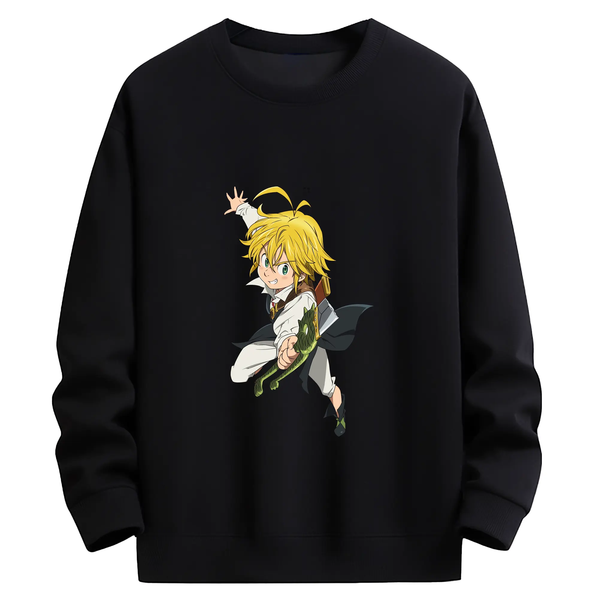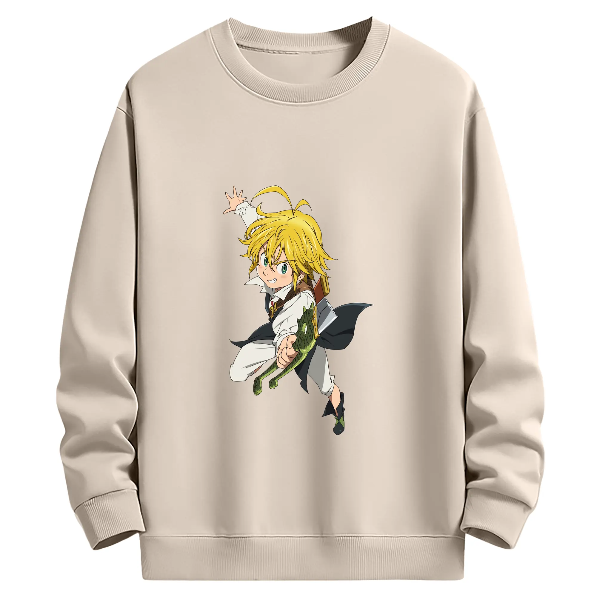 七つの大罪 グッズ メリオダス - 薄手 クルーネック スウェット 裏毛260g · ポリエステル 春秋向け カジュアル 男女兼用 · トレーナー デイリー スポーツ 散歩に最適