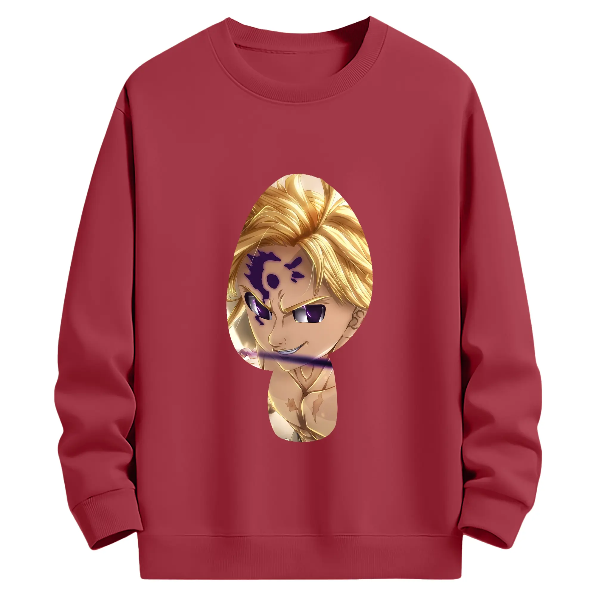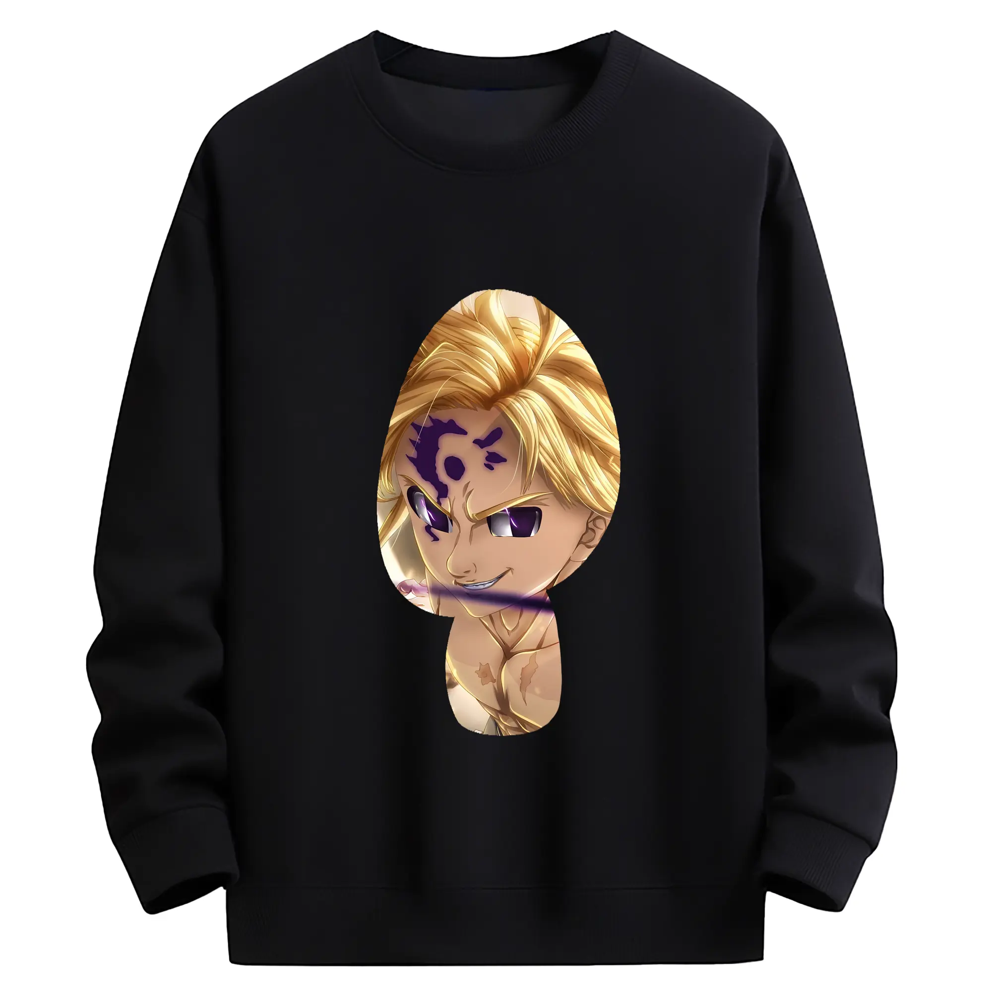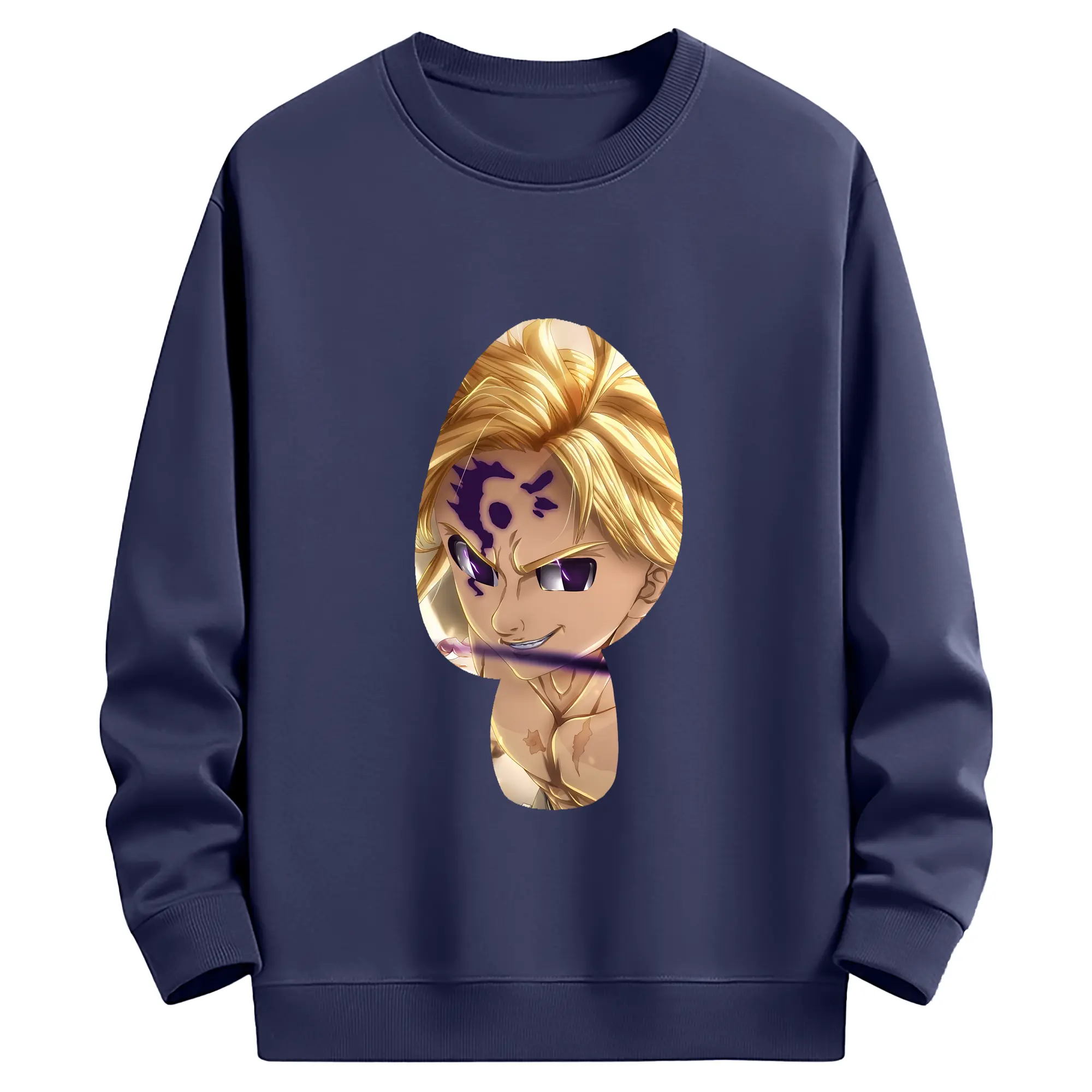 七つの大罪 グッズ メリオダス - 薄手 クルーネック スウェット 裏毛260g · ポリエステル 春秋向け カジュアル 男女兼用 · トレーナー デイリー スポーツ 散歩に最適