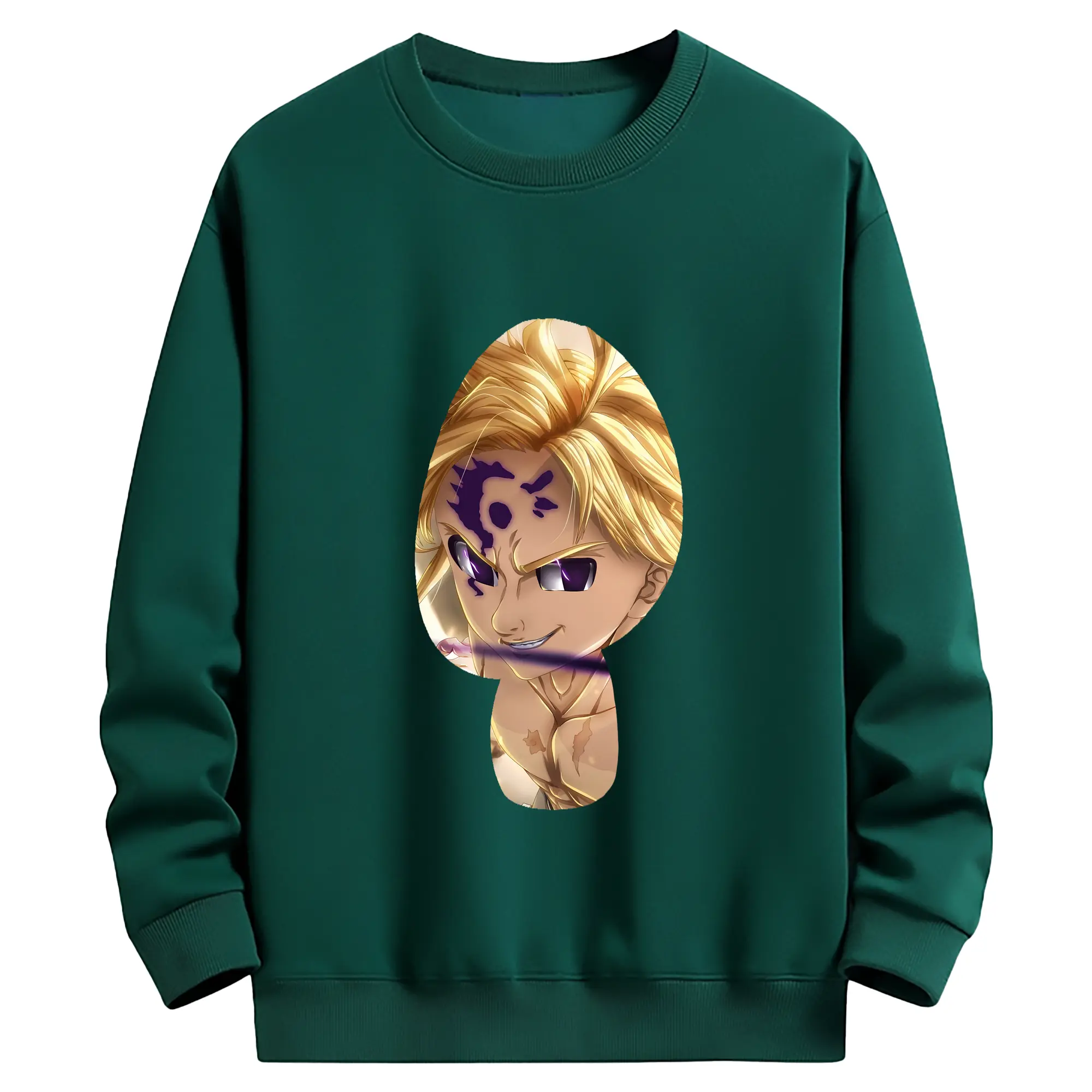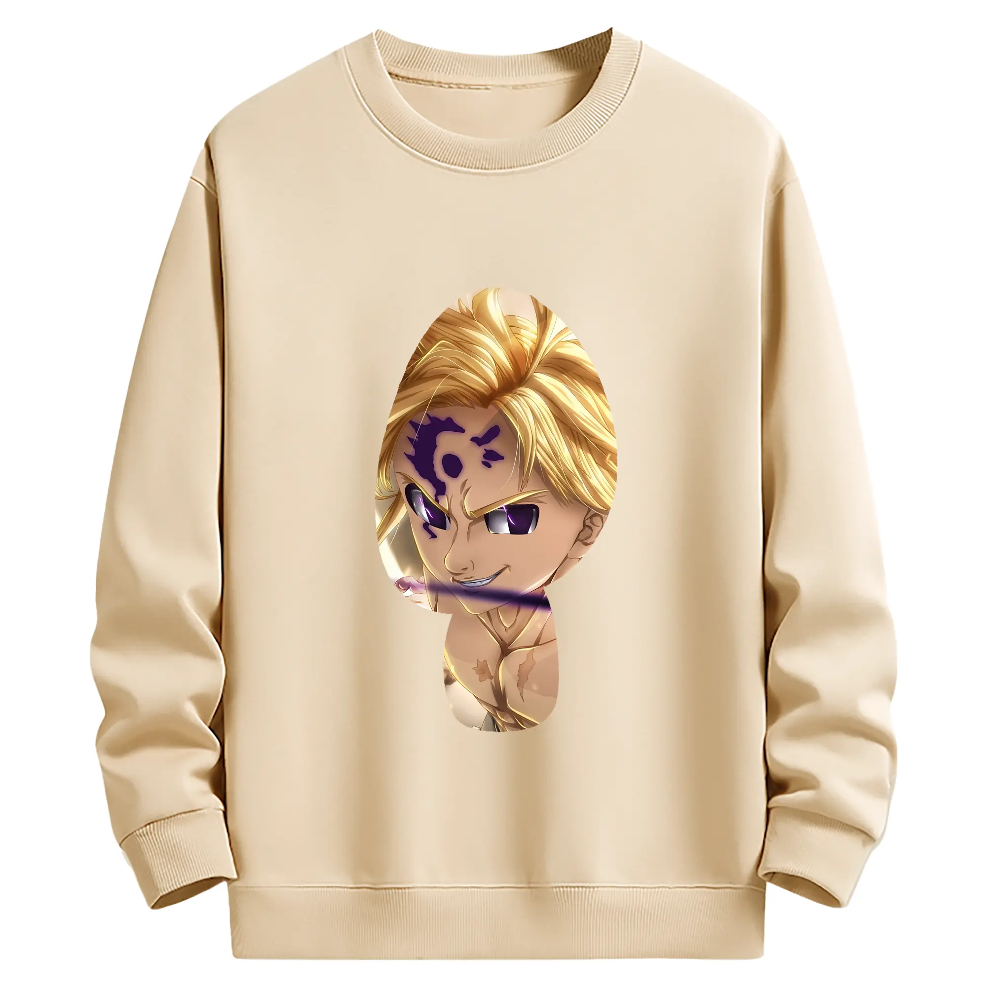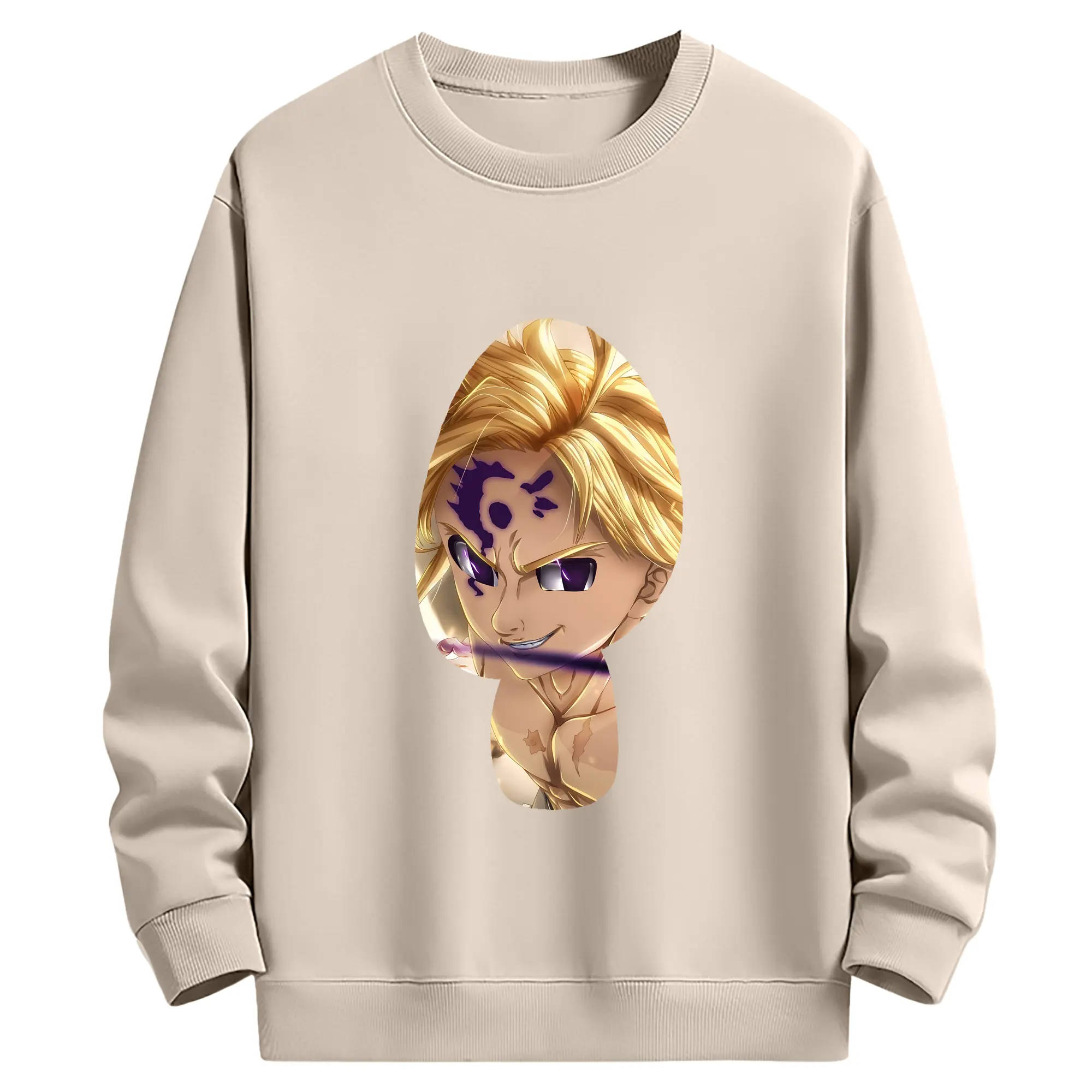 七つの大罪 グッズ メリオダス - 薄手 クルーネック スウェット 裏毛260g · ポリエステル 春秋向け カジュアル 男女兼用 · トレーナー デイリー スポーツ 散歩に最適