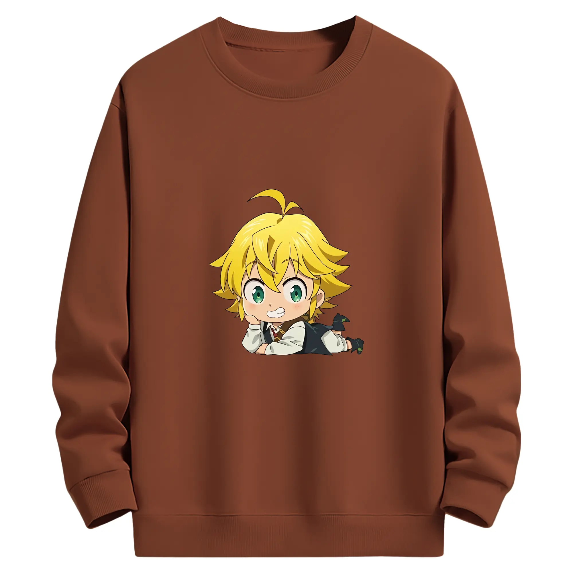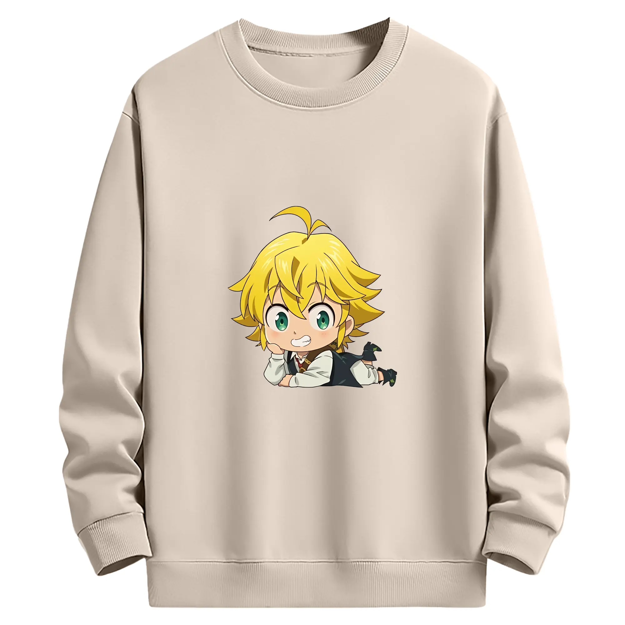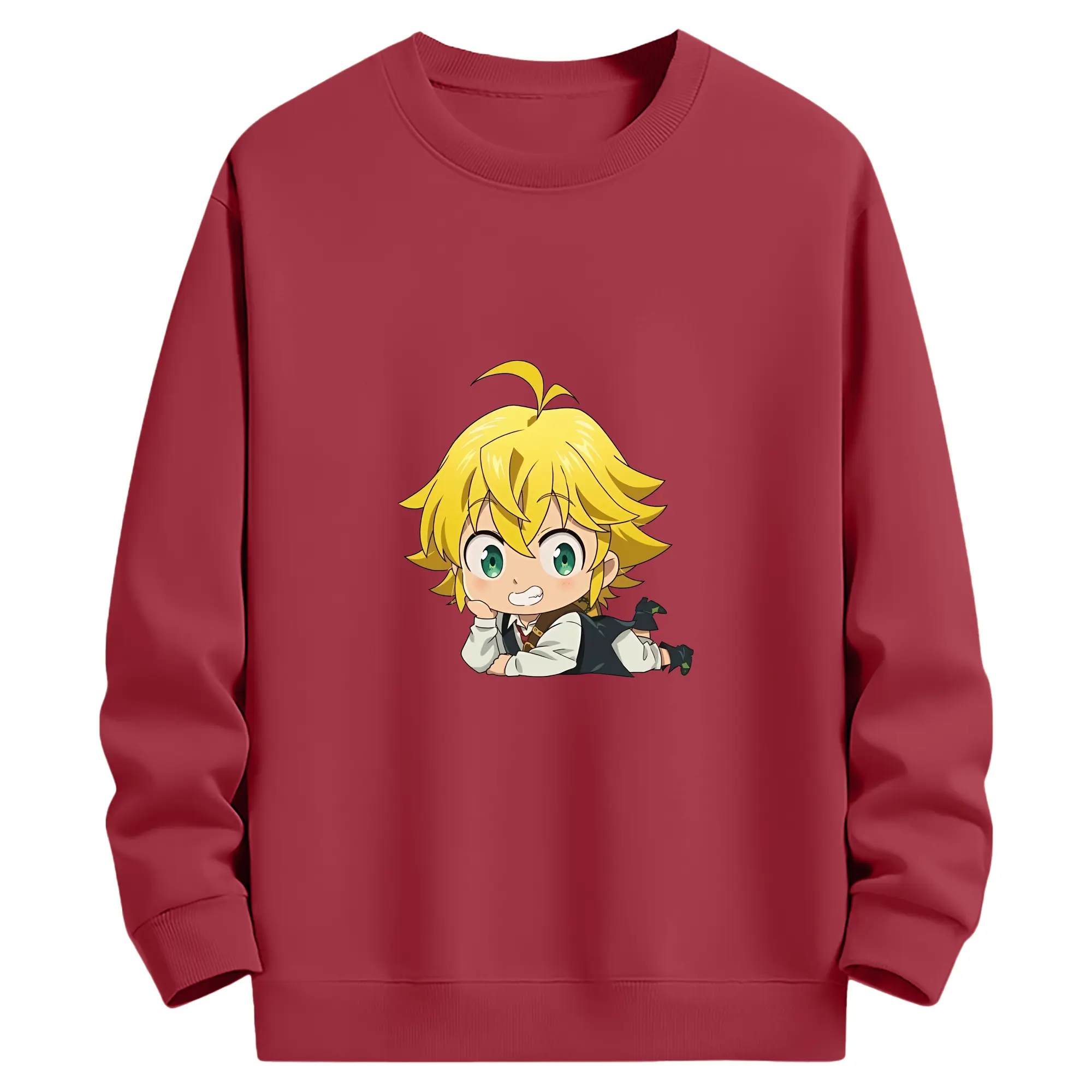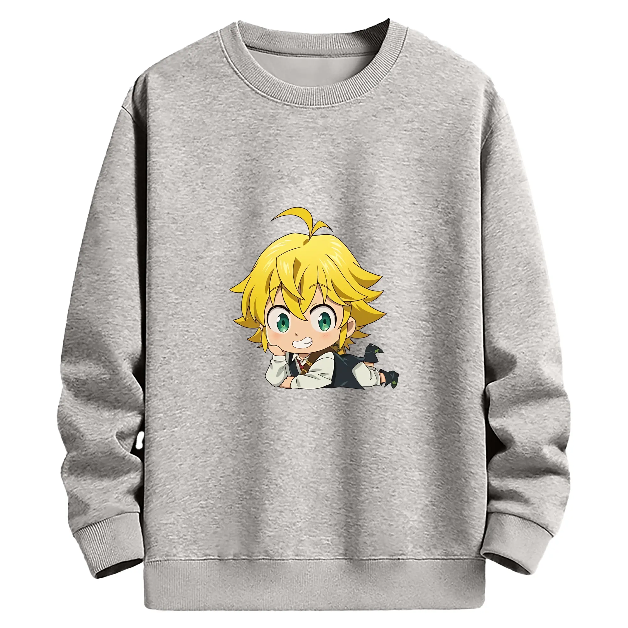 七つの大罪 グッズ メリオダス - 薄手 クルーネック スウェット 裏毛260g · ポリエステル 春秋向け カジュアル 男女兼用 · トレーナー デイリー スポーツ 散歩に最適