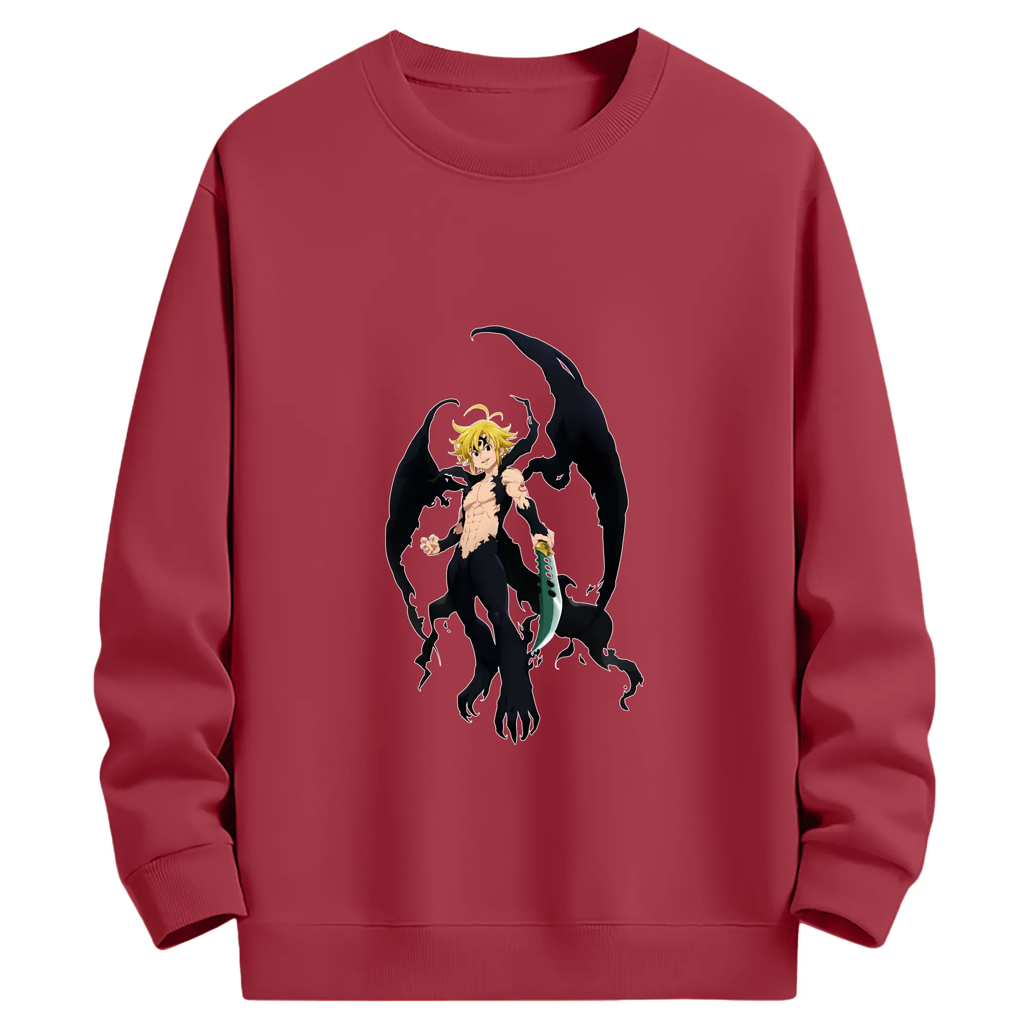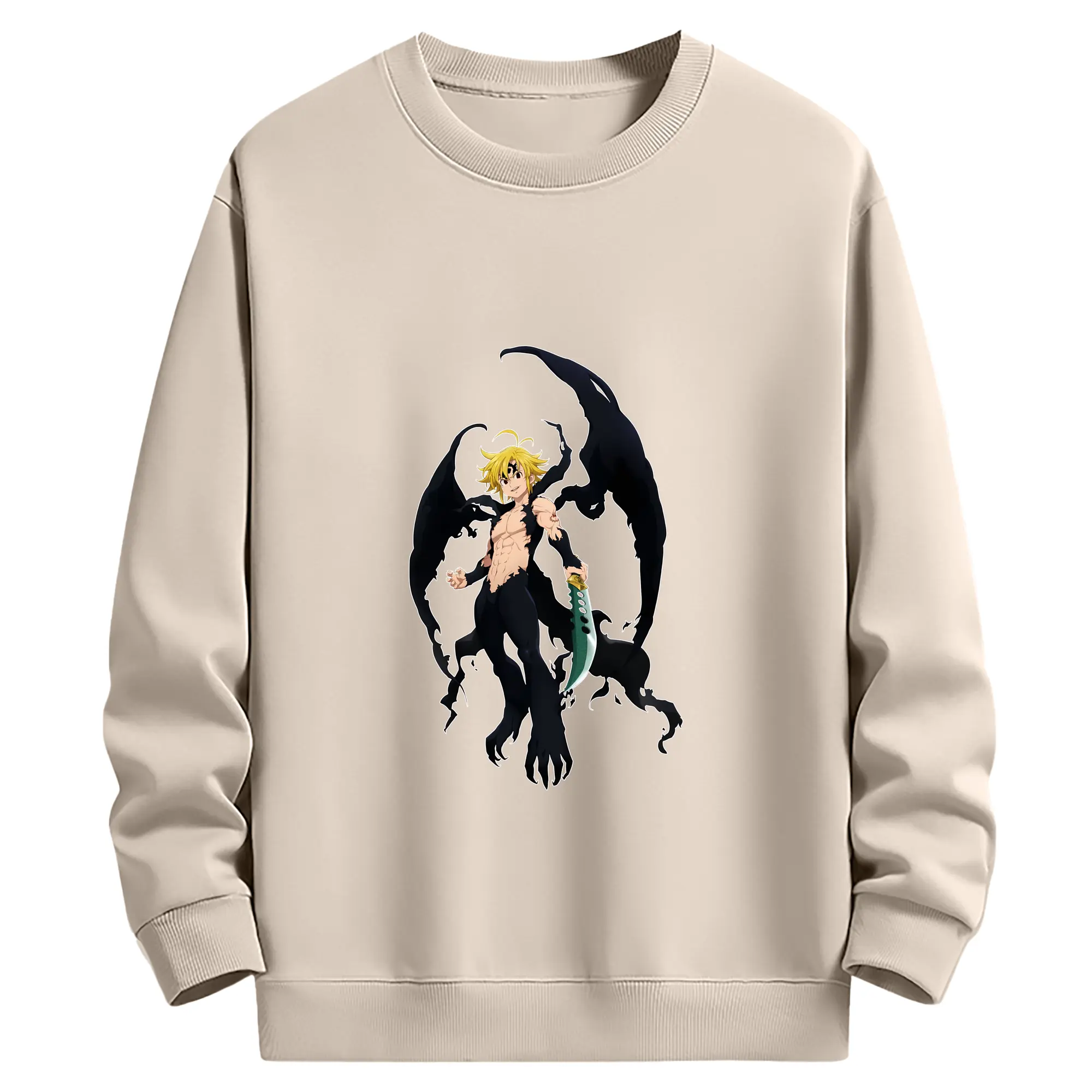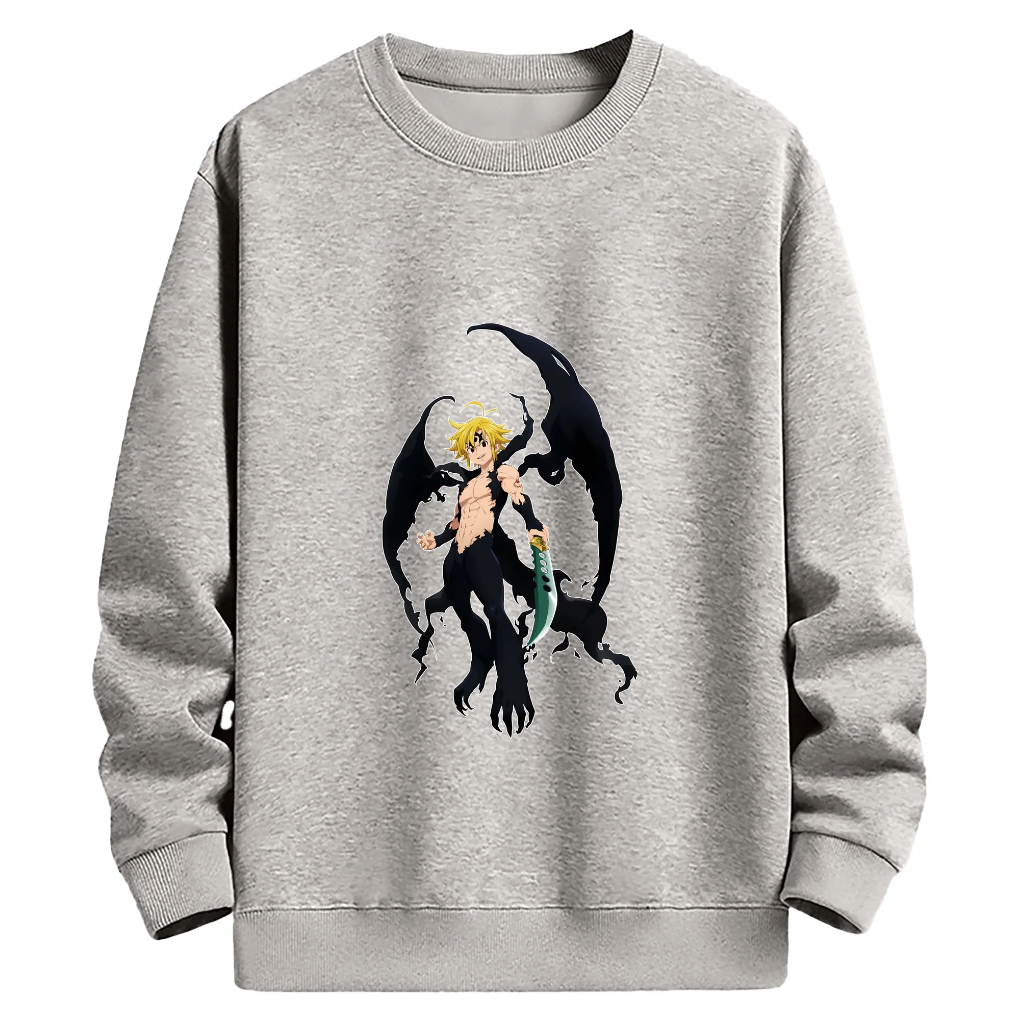 七つの大罪 グッズ メリオダス - 薄手 クルーネック スウェット 裏毛260g · ポリエステル 春秋向け カジュアル 男女兼用 · トレーナー デイリー スポーツ 散歩に最適