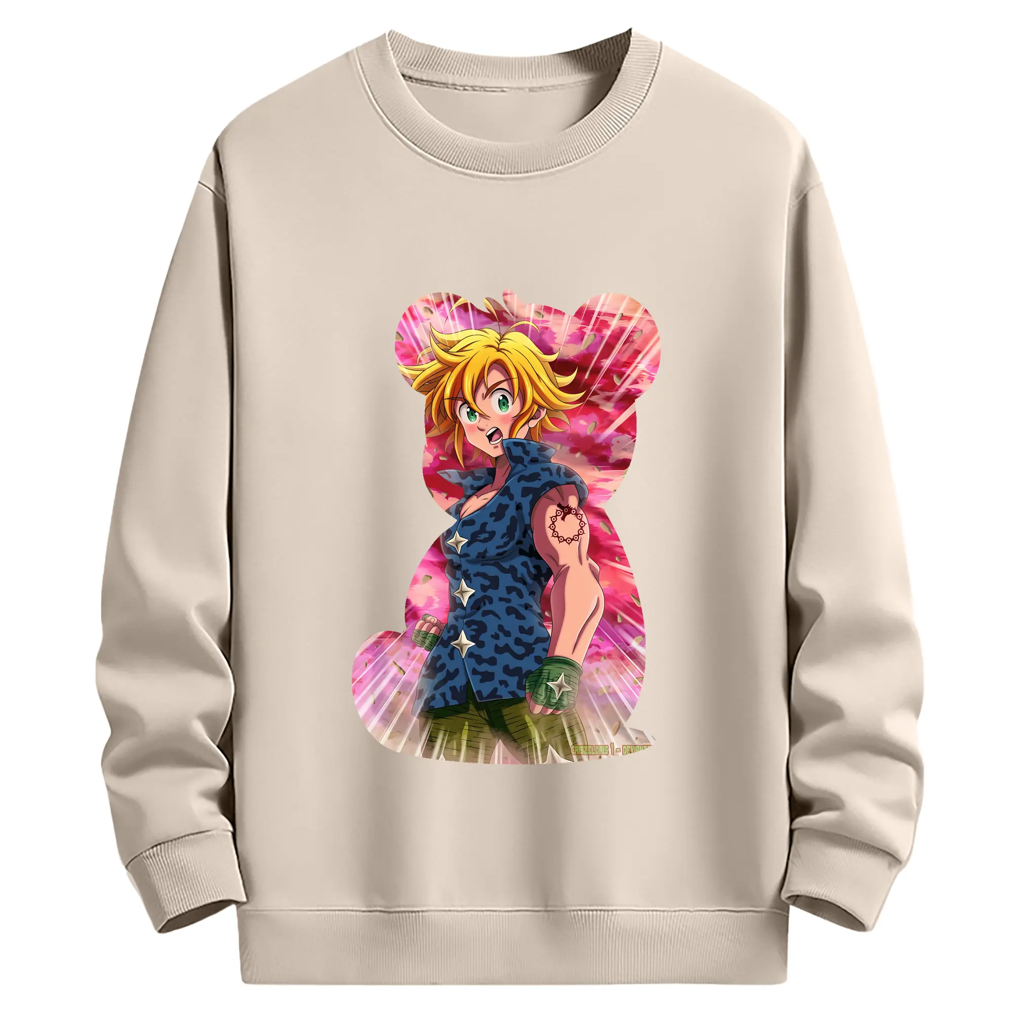 七つの大罪 グッズ メリオダス - 薄手 クルーネック スウェット 裏毛260g · ポリエステル 春秋向け カジュアル 男女兼用 · トレーナー デイリー スポーツ 散歩に最適
