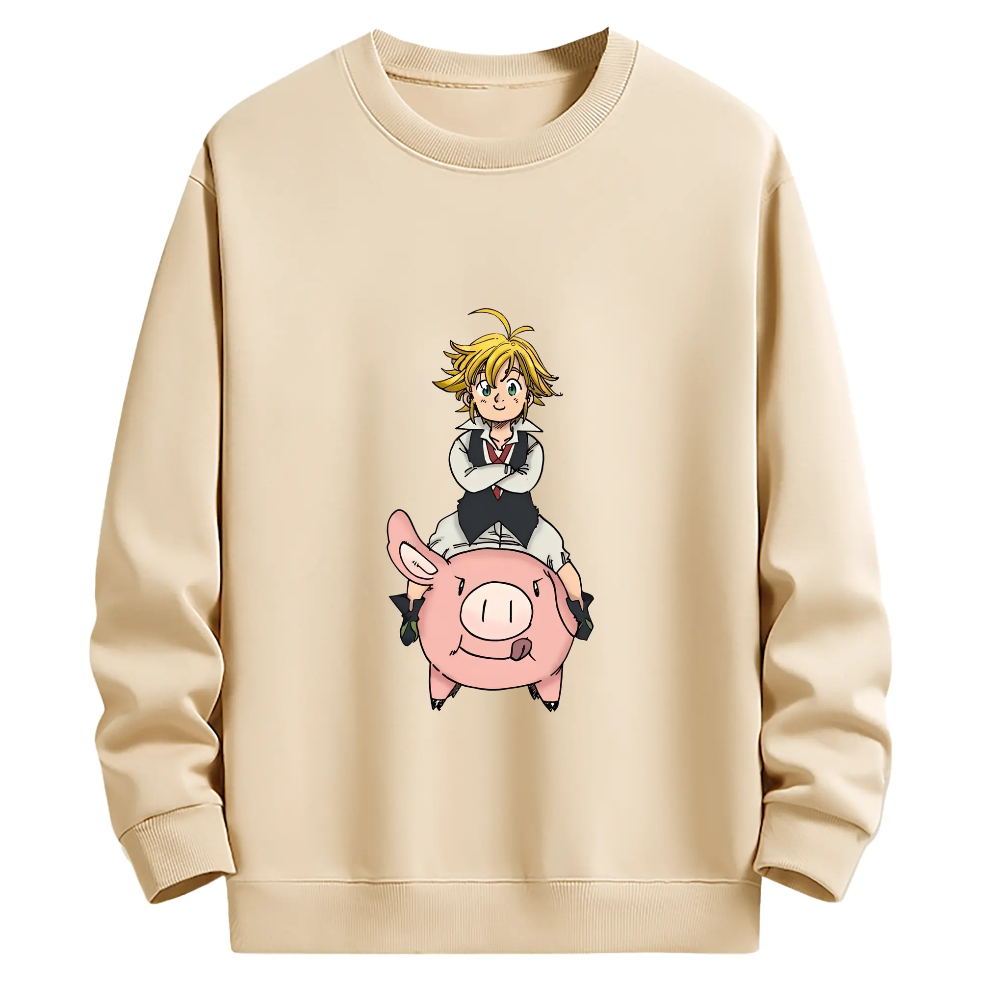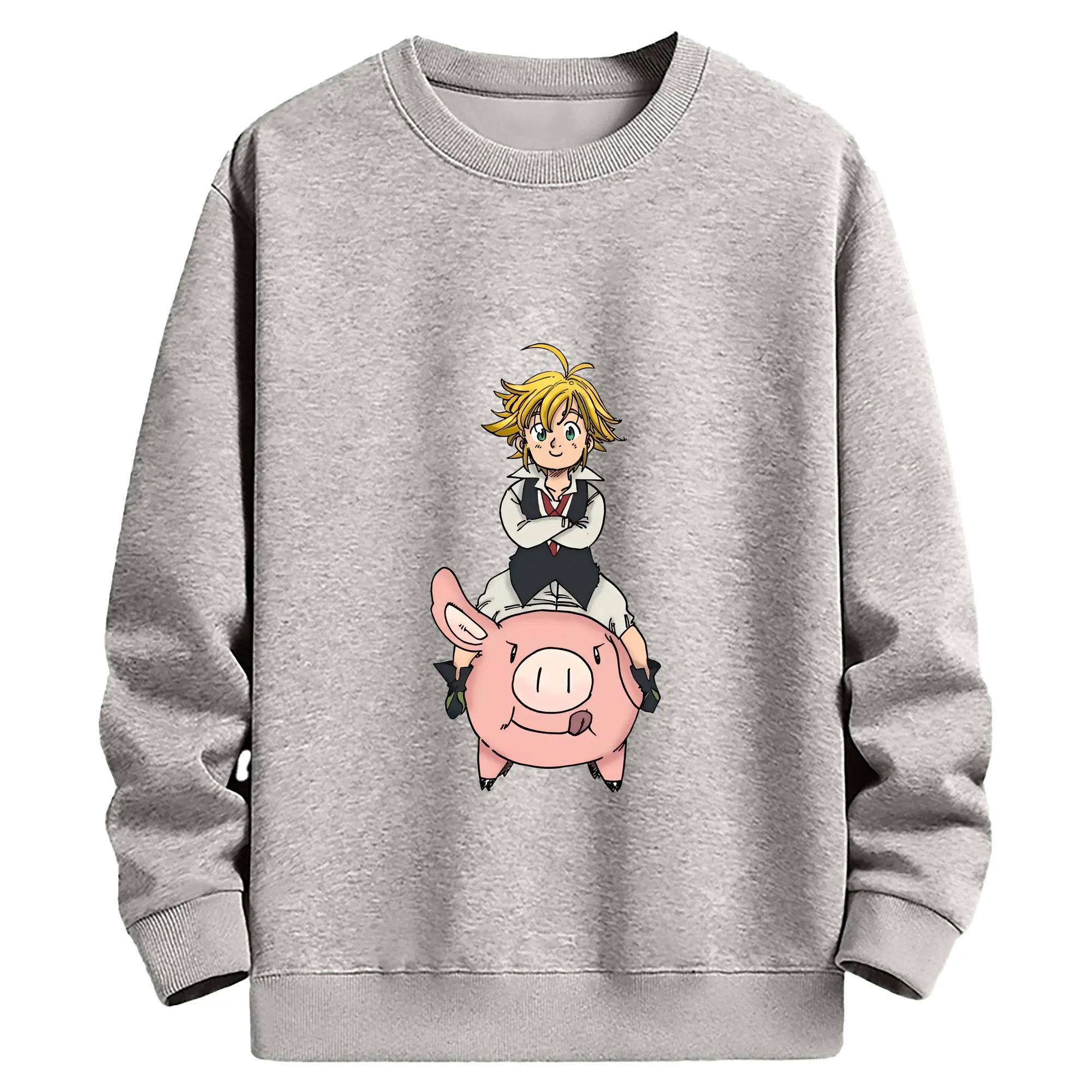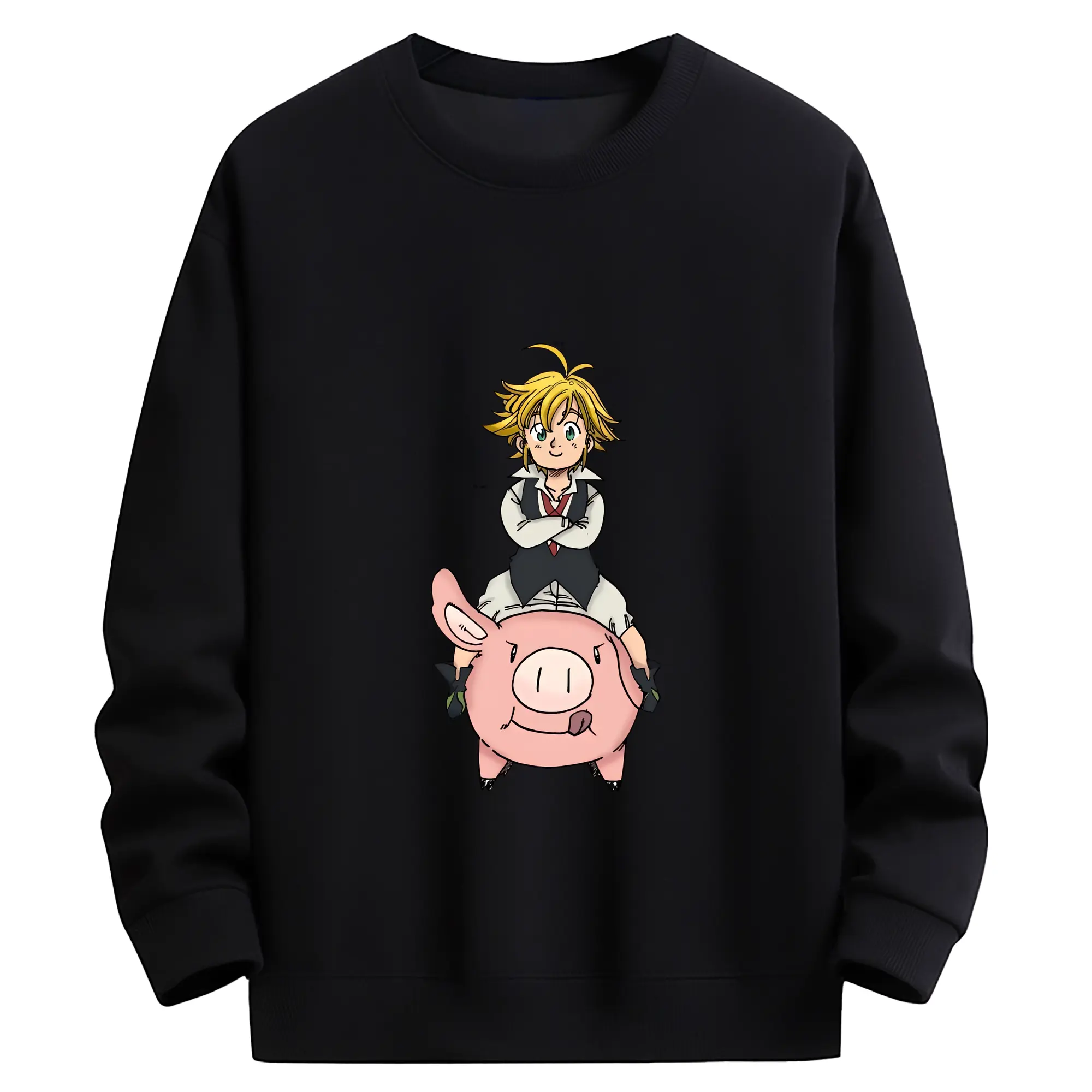 七つの大罪 グッズ メリオダス - 薄手 クルーネック スウェット 裏毛260g · ポリエステル 春秋向け カジュアル 男女兼用 · トレーナー デイリー スポーツ 散歩に最適