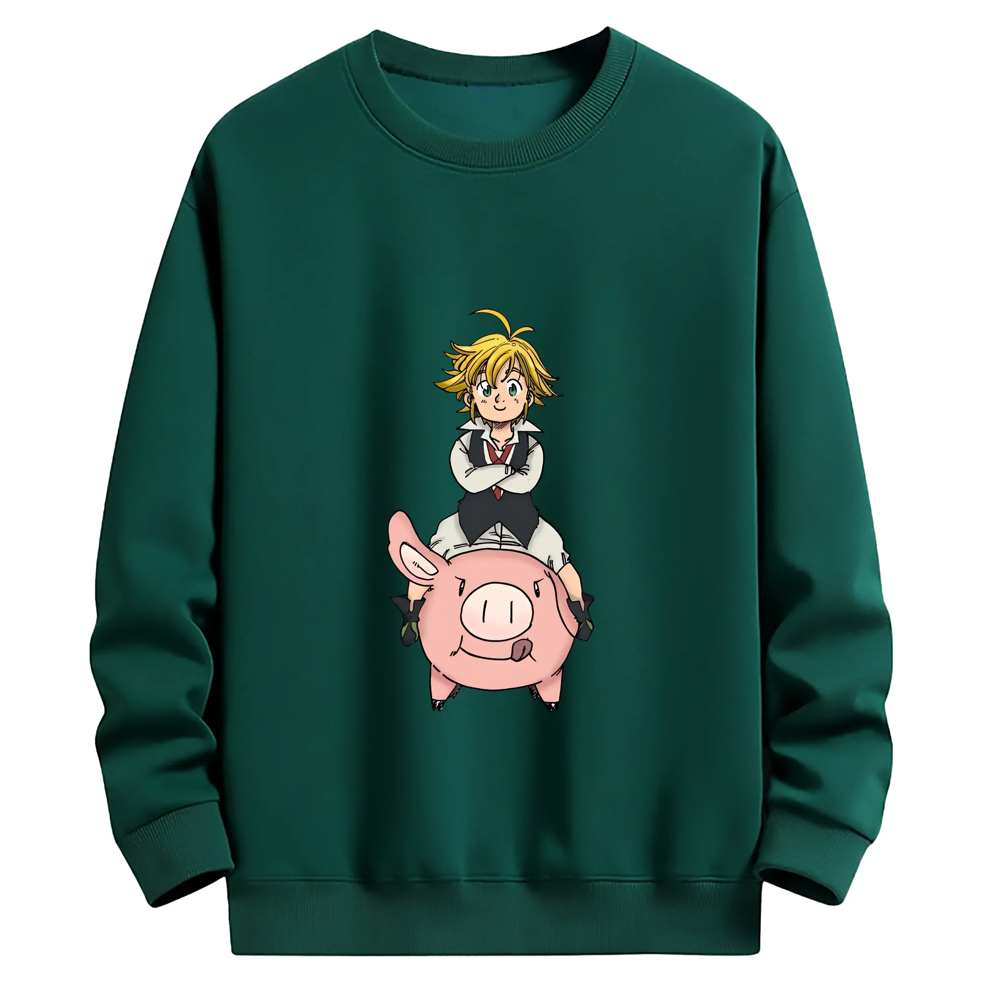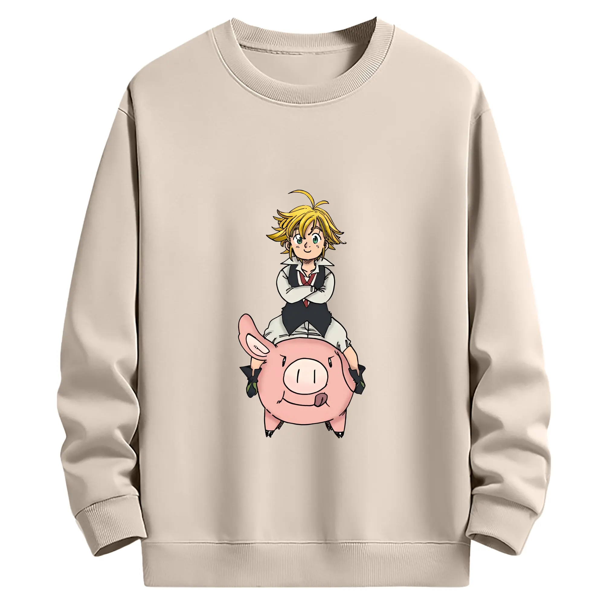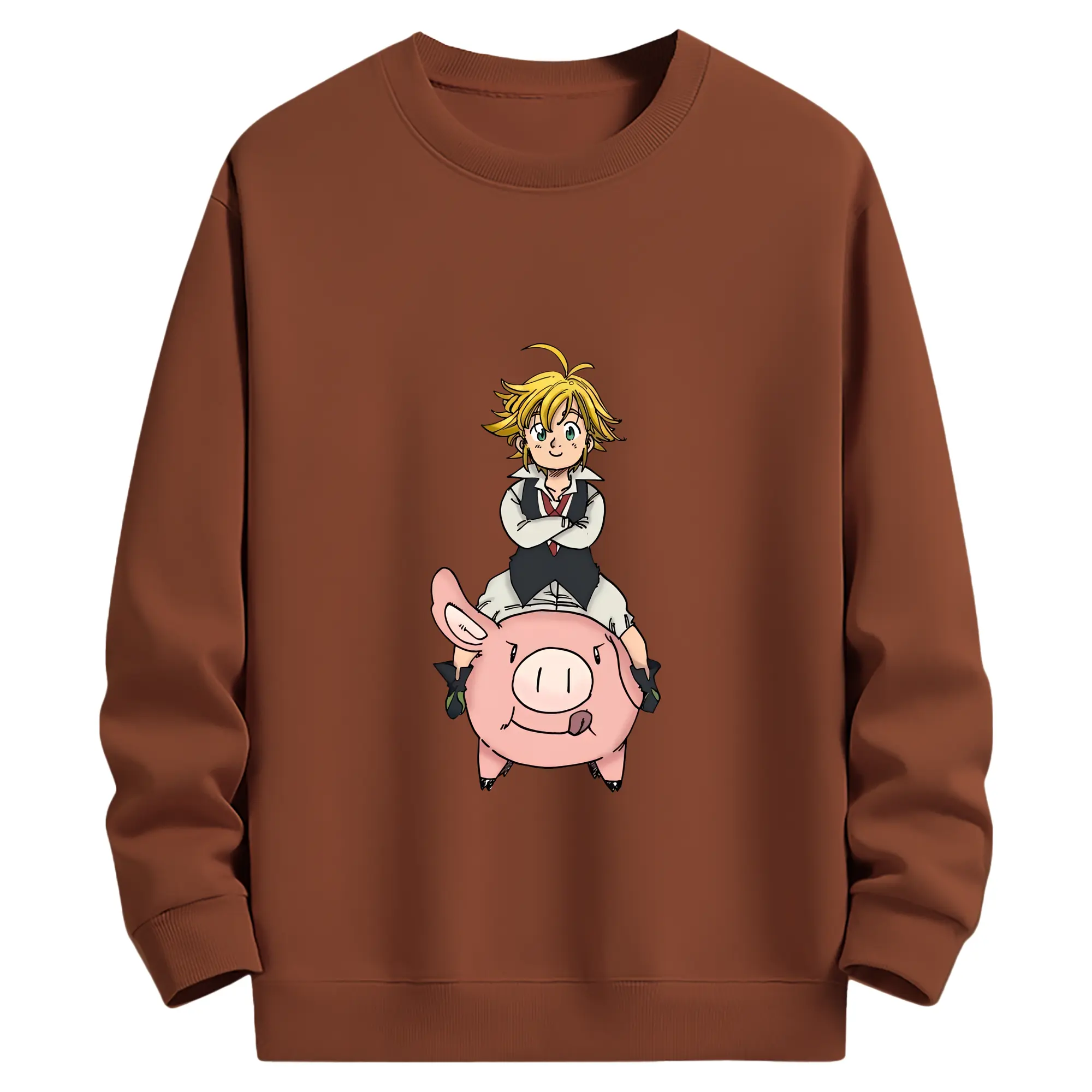 七つの大罪 グッズ メリオダス - 薄手 クルーネック スウェット 裏毛260g · ポリエステル 春秋向け カジュアル 男女兼用 · トレーナー デイリー スポーツ 散歩に最適